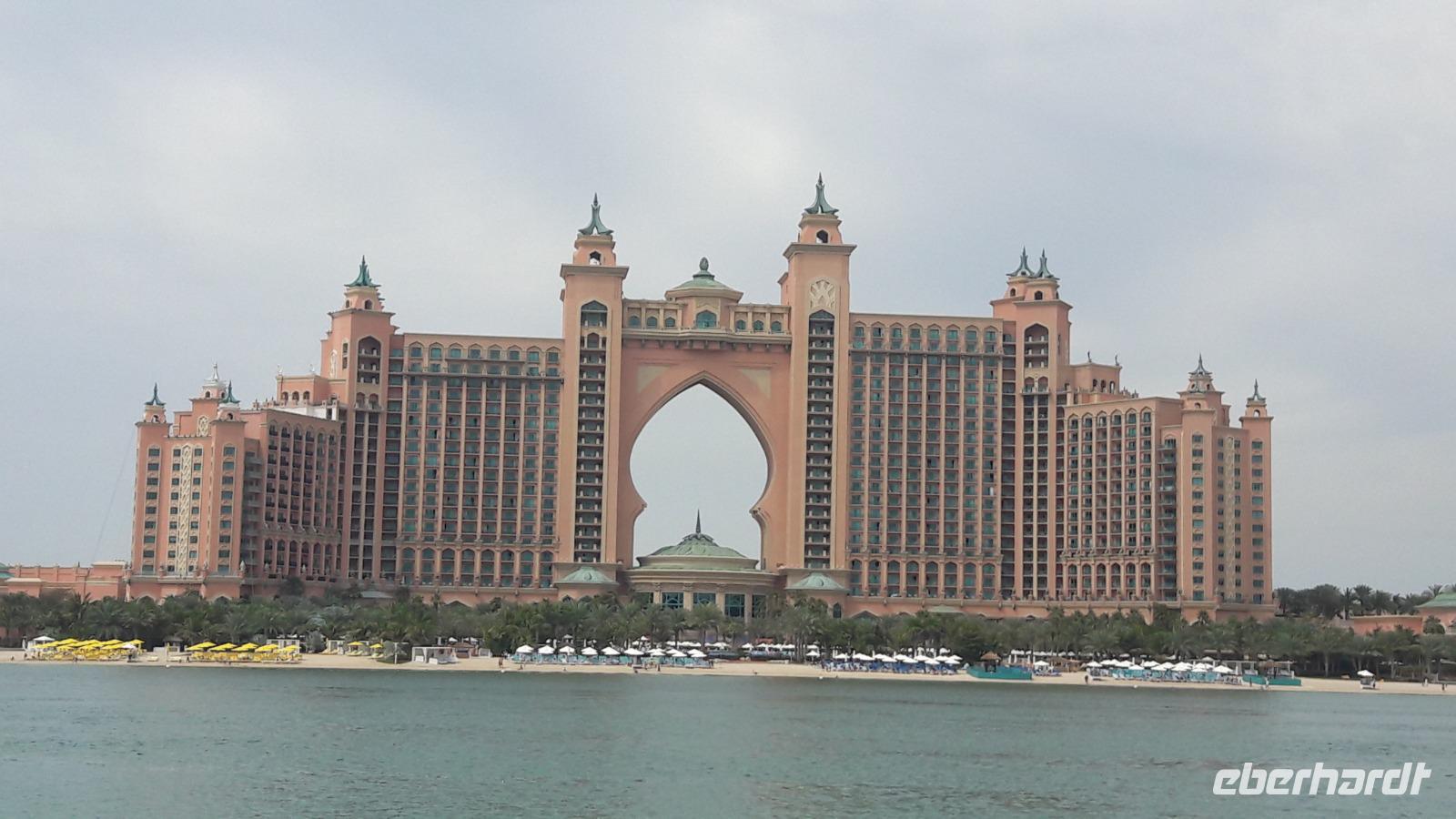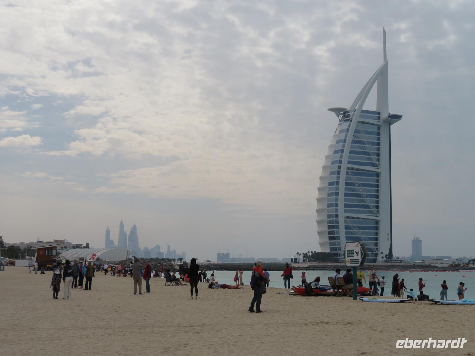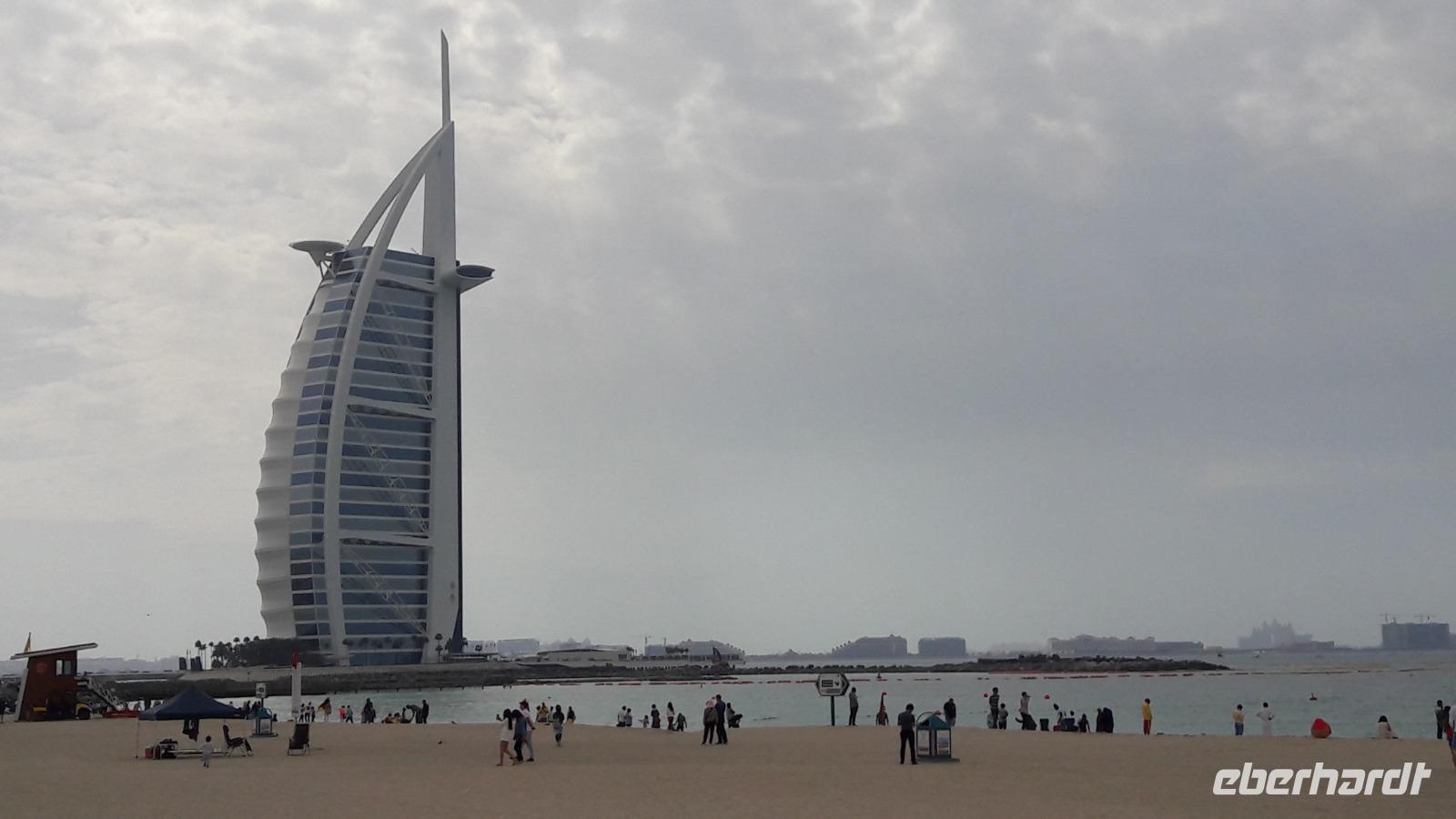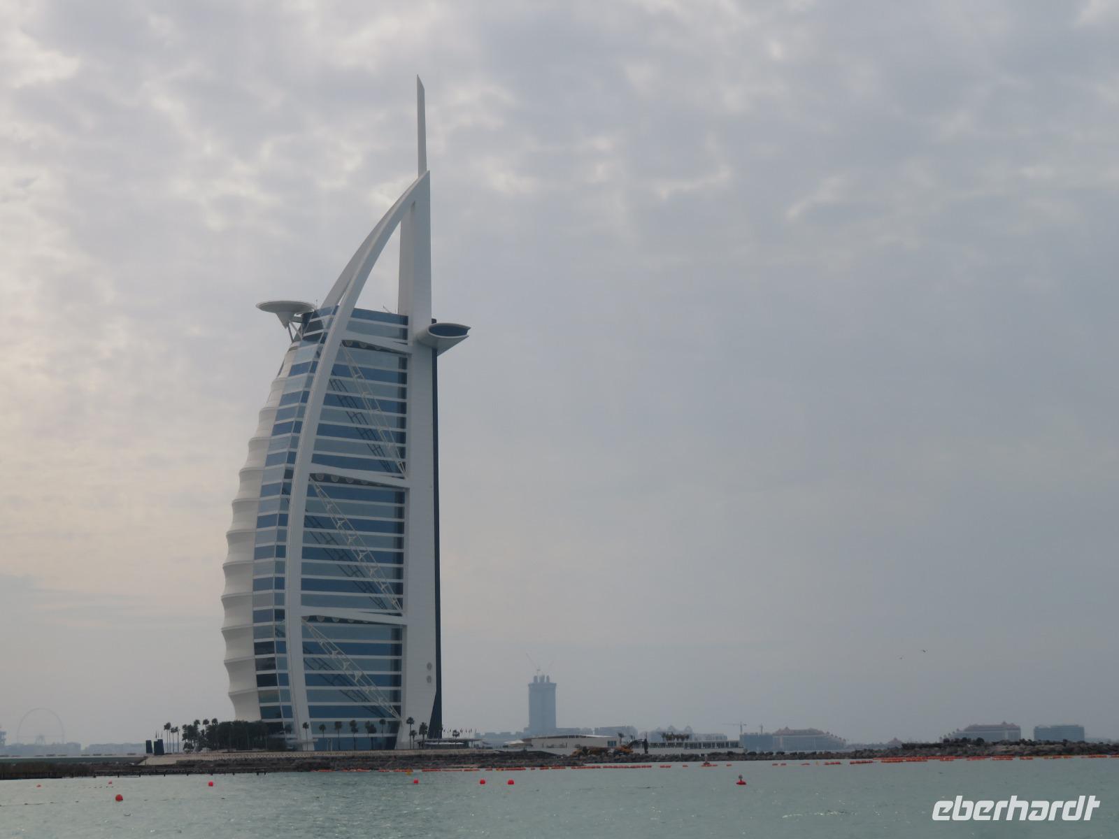 Letzte Station unserer Stadtrundfahrt ein Fotostopp am „Turm der Araber'' - dem luxuriösestem Hotel der Welt Burj Al Arab in Form eines aufgespanntem Surfsegels.