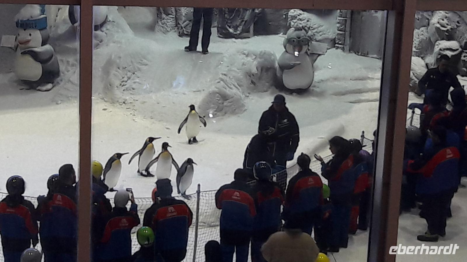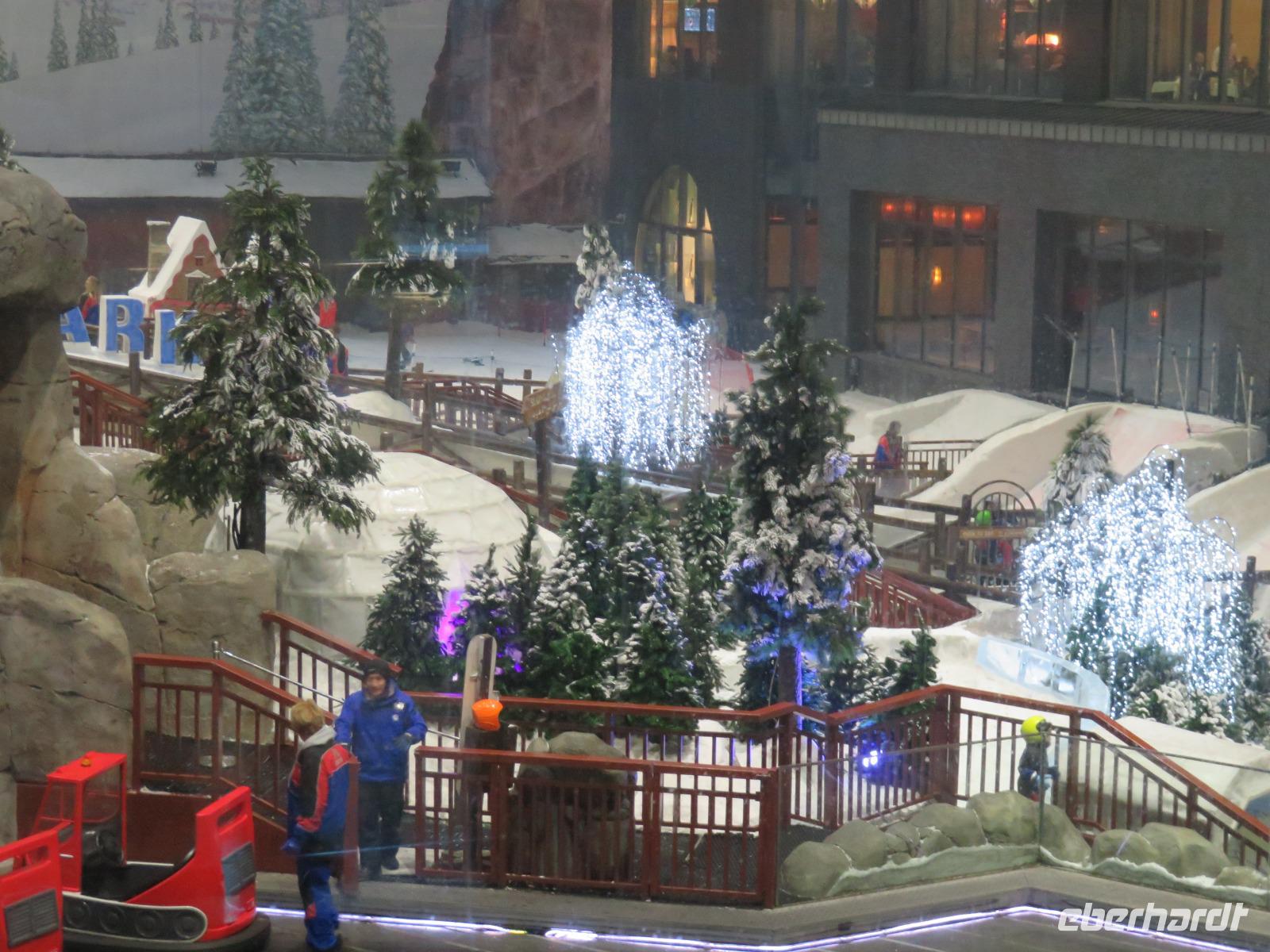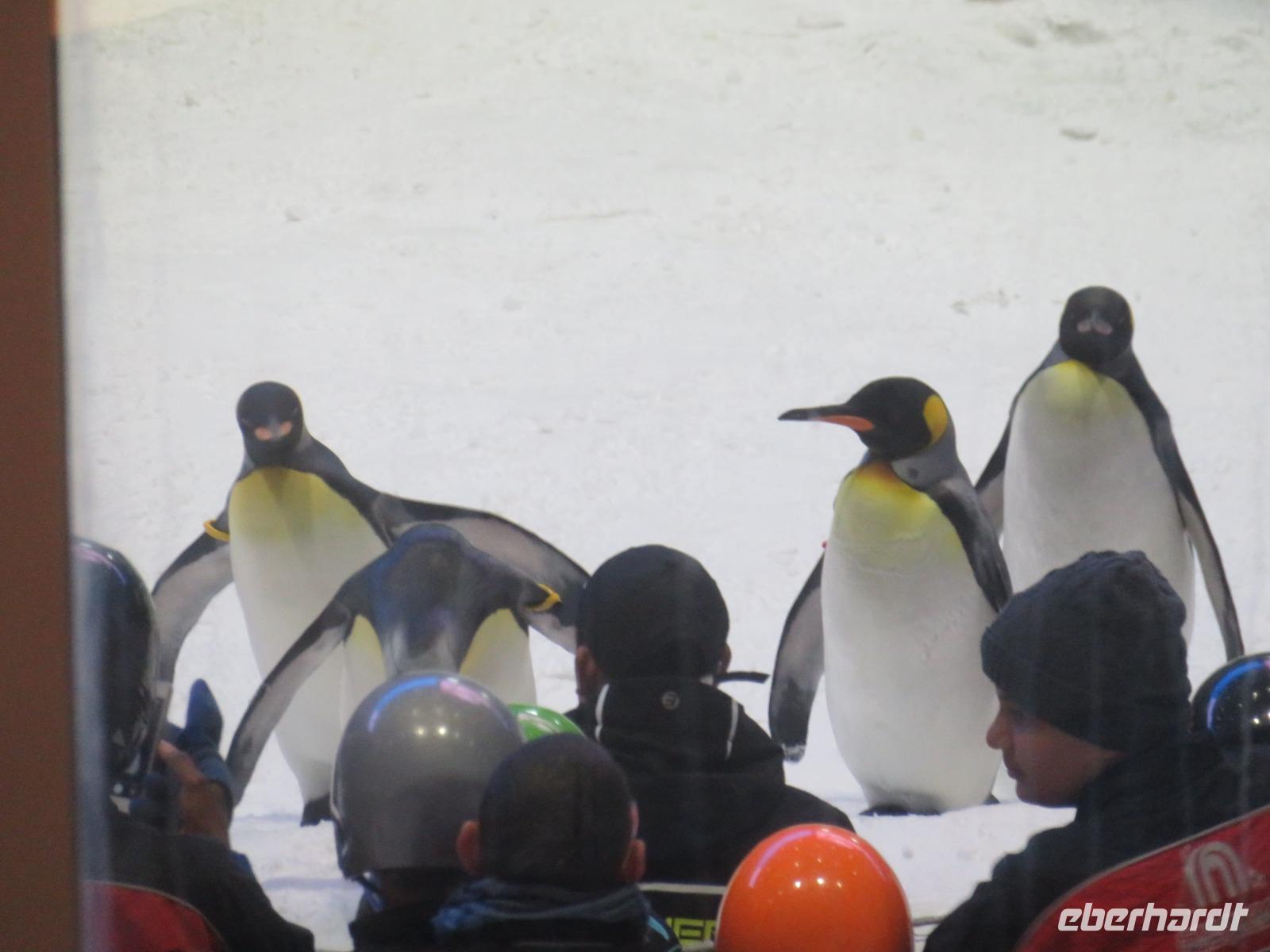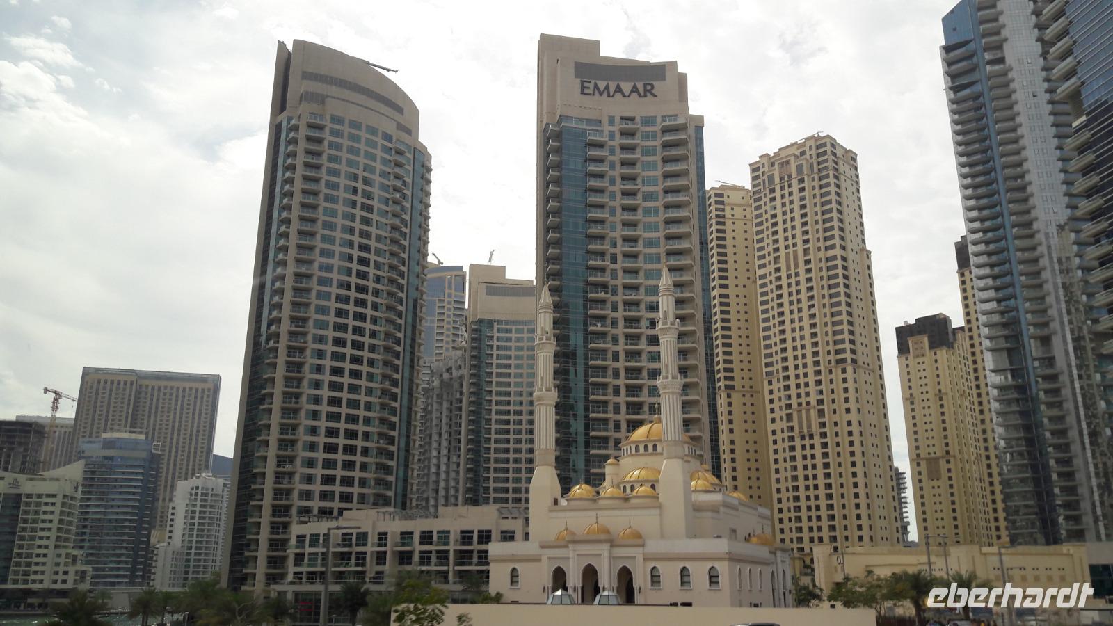 Die Dubai-Mall, das mit einer Gesamtfläche von 520000qm nur zweitgrößte Einkaufszentrum der Welt, war noch nicht geöffnet und so konnten wir in aller Ruhe den großen Wasserfall & das riesiges Meeres - Aquarium mit Haien, Rochen und vielerlei anderen Fischen bestaunen. Ohne anzustehen ging es auf das, im Januar 2010 eröffnet und mit 828m höchste Gebäude der Welt. Wir genossen die Auffahrt zur Aussichtsplattform im 124. Stockwerk in 452m Höhe, die wir mit einem der schnellsten Aufzüge der Welt in 10m pro Sekunde, erreichten. Der Blick von oben auf Dubai mit all seinen Sehenswürdigkeiten ist atemberaubend. Wieder unten angekommen hatten wir kurz Zeit zu einem Einkaufsbummel durch die 1200 Geschäfte & Boutiquen der Mall.Ein weiteres Wahrzeichen der Stadt erwartete uns - die Palmeninsel, die sogar im Weltraum zu erkennen sein soll. The Palm Jumeirah - ist den Visionen von Scheich Mohammed Bin Rashid Al Maktoum zu verdanken, der die Idee hatte, die künstliche Palmeninsel anlegen zu lassen. Ganze sieben Jahre (2001-2008) dauerte das 1,5 Milliarden US-Dollar teure Bauprojekt. Die künstliche Palmeninsel, erstreckt sich über eine Fläche von 560 Hektar, der Stamm hat eine Länge von 4 km , 17 Palmwedel und einen Halbmond runden das Gesamtbild ab. Zu den Highlights der künstlichen Palmeninsel zählt der Hotelkomplex "Atlantis", welcher direkt auf dem Sichelmond thront.Entlang der Dubai Marina, einer neu entstandenen Wohngegend mit vielen Wolkenkratzern und einem Jachthafen, begaben wir uns weiter zur Mall of Emirates. Auch diese Mall ist ganz einfach gigantisch. Das absolute Highlight natürlich die 85m hohe "Indoor Skiarena", wo Besucher zwischen Skifahren, Snowboarden, Rutschen oder Schneeballschlachten wählen können. Zur Bespaßung der kleinsten Besucher watscheln Pinguine durch die Schneelandschaft.