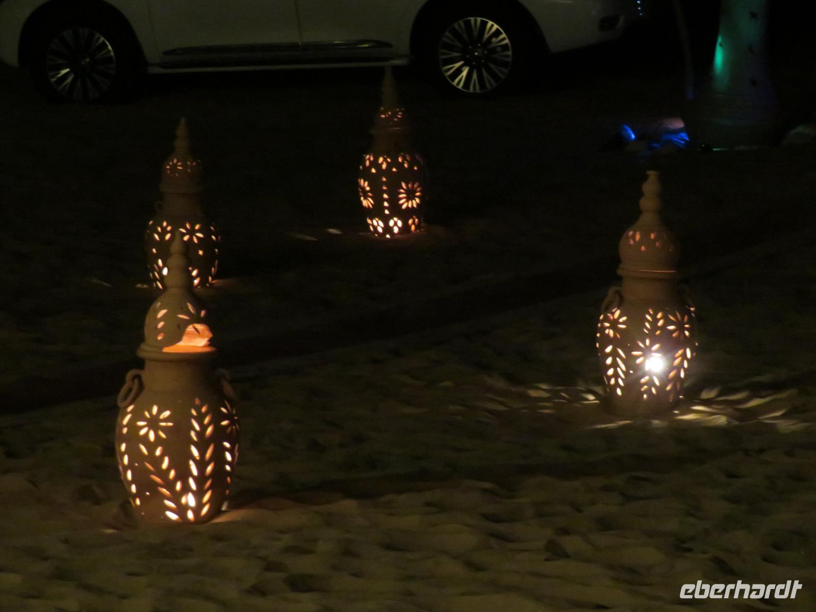 Danach stürzten wir uns in das bunte Treiben im Muttrah-Souk. Überall duftete es nach Gewürzen und Weihrauch. Bunte Stoffe, edelste Tücher, Gold- bzw. Silberschmuck in den Auslagen, sowie allerlei Krimskrams erfüllen hier jede Erwartung an einen orientalischen Basar!