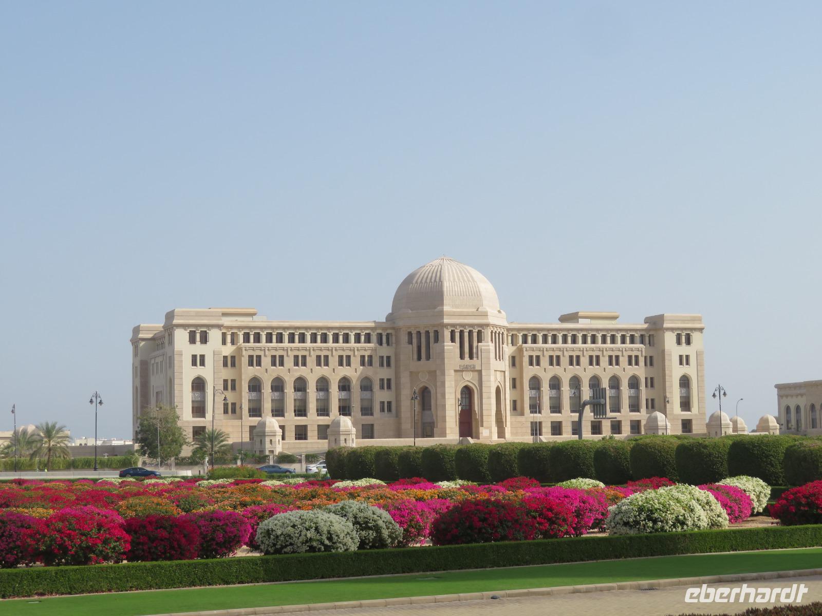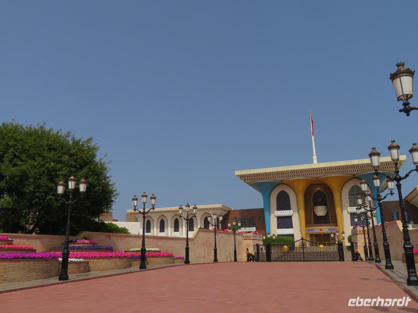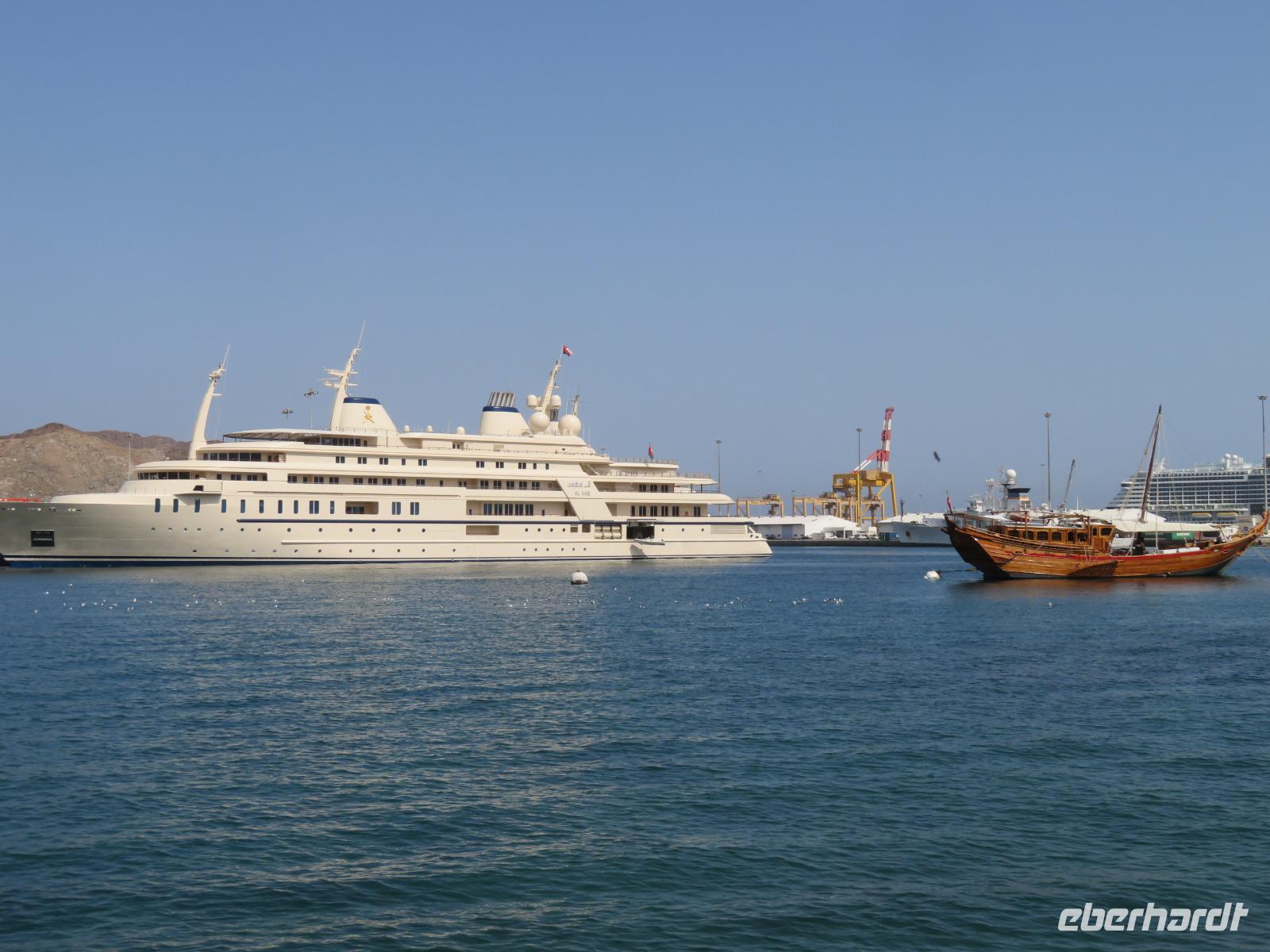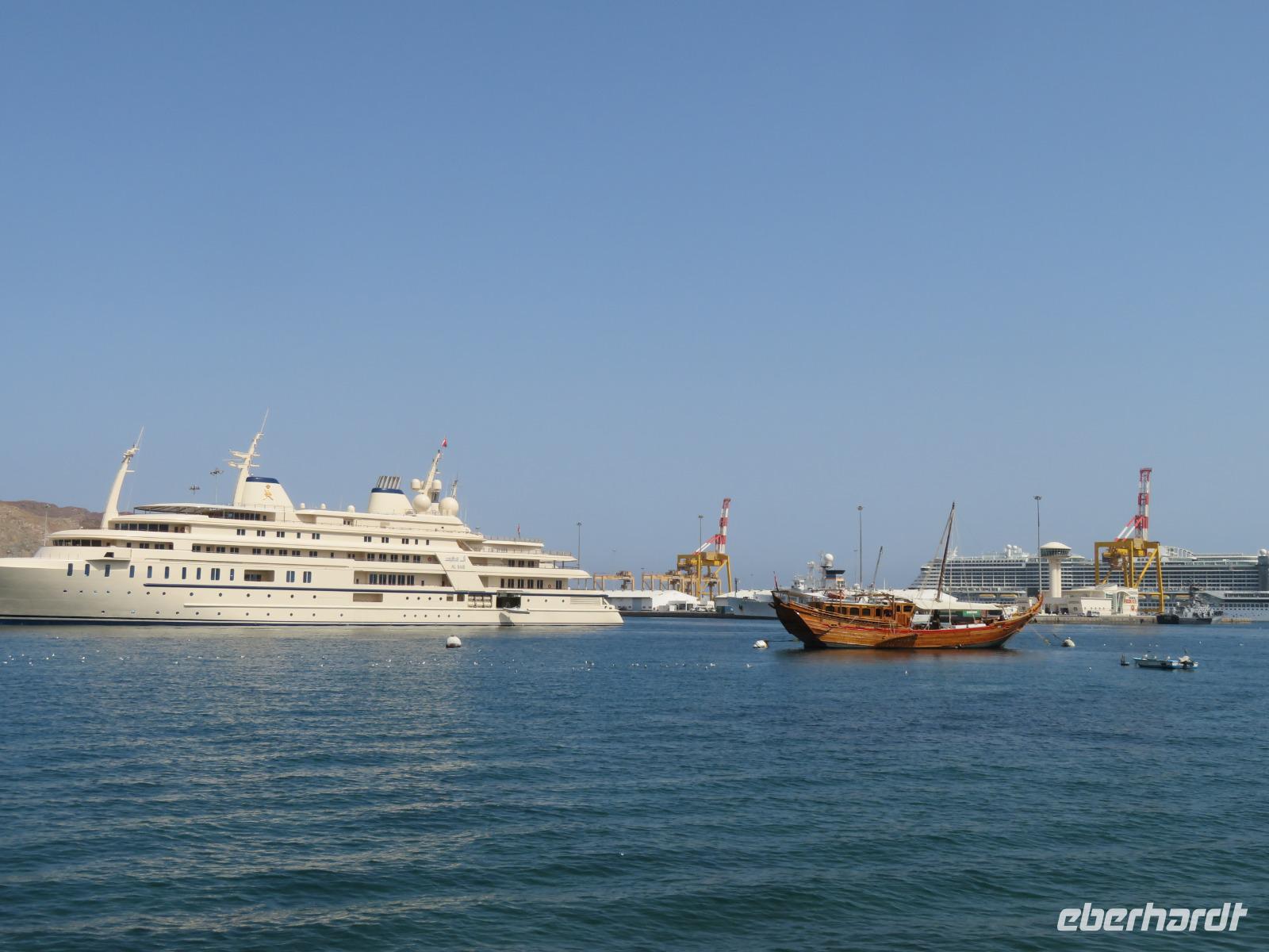 Anschließend statteten wir dem im Jahre 1998 eröffneten Bait Al Zibair-Museum in Alt Muscat einen Besuch ab. Das private Museum zeigt omanische Kunst- und Alltagsgegenstände wie traditionelle Waffen, Juwelen, Kleidung, alte Haushaltsgegenstände und einige Exponate, die die omanische Land- und Stadtwelt darstellte. Nach einer kurzen Stippvisite am Palast des Sultans ging es zurück in den Hafen vom Muscat auf unser Schiffchen. Den restlichen Nachmittag konnten wir an Bord der AIDAprima genießen. Am Abend verließ unser schwimmendes Hotel den Hafen von Muscat um die 740 km bis AbuDabi in Angriff zu nehmen.