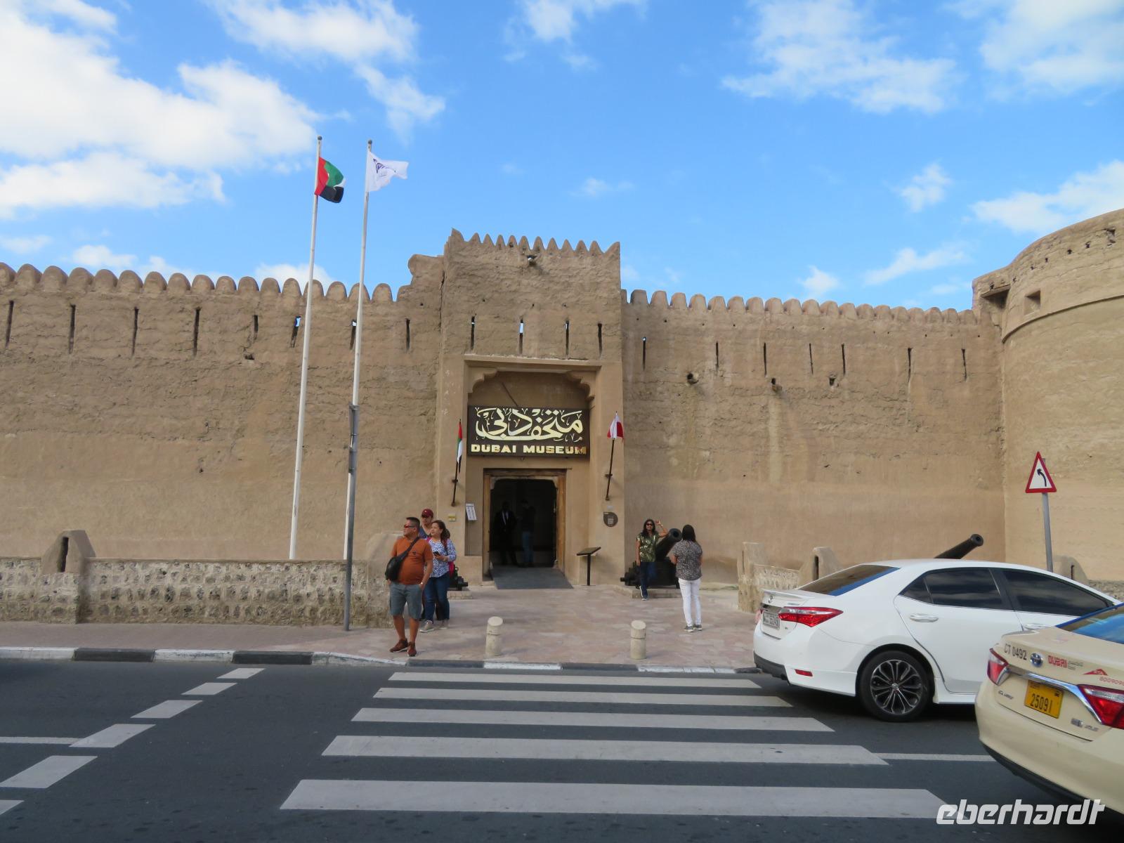 Nachdem alle Gäste in Kesselsdorf bzw. am Dresdner Flughafen mit Ihrem Transfer oder in Eigenregie zu uns gestoßen sind, konnte die 2-stündige Fahrt nach Prag mit unserem Busfahrer Sergey starten. Bei kalten 3 Grad Celsius und ein wenig Schneefall kamen wir ca. 13:00 Uhr leicht verspätet am Flughafen an. Nach dem Check-In, der Passkontrolle und für einen Flughafen ungewöhnliche Sicherheitskontrolle direkt am Gate, flogen wir mit der Fluggesellschaft Emirates Airline im Airbus A380-800 nach Dubai. Die 6 Stunden Flugzeit vergingen buchstäblich wie im Flug. Dafür sorgten der perfekte Service und das vielfältige Unterhaltungsangebot an Bord. 23:50 Uhr Ortszeit landeten wir erschöpft mit 3 Stunden Zeitverschiebung auf dem Dubai International Airport. Nach der Pass- und Sicherheitskontrolle trafen wir auf Hassan, unserem Reiseleiter für die nächsten 2 Tage. Mit dem Bus fuhren wir gemeinsam in den von vorwiegend Indern besiedelten Teil der Stadt, zu unserem Hotel für die nächsten 2 Nächte, das ‚Arabian Courtyard Hotel'. Nach einem zügigen Check-In freuten wir uns auf einen facettenreichen Aufenthalt im Orient.