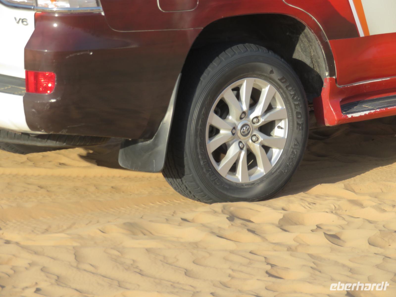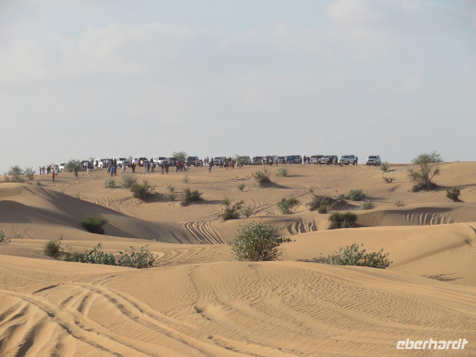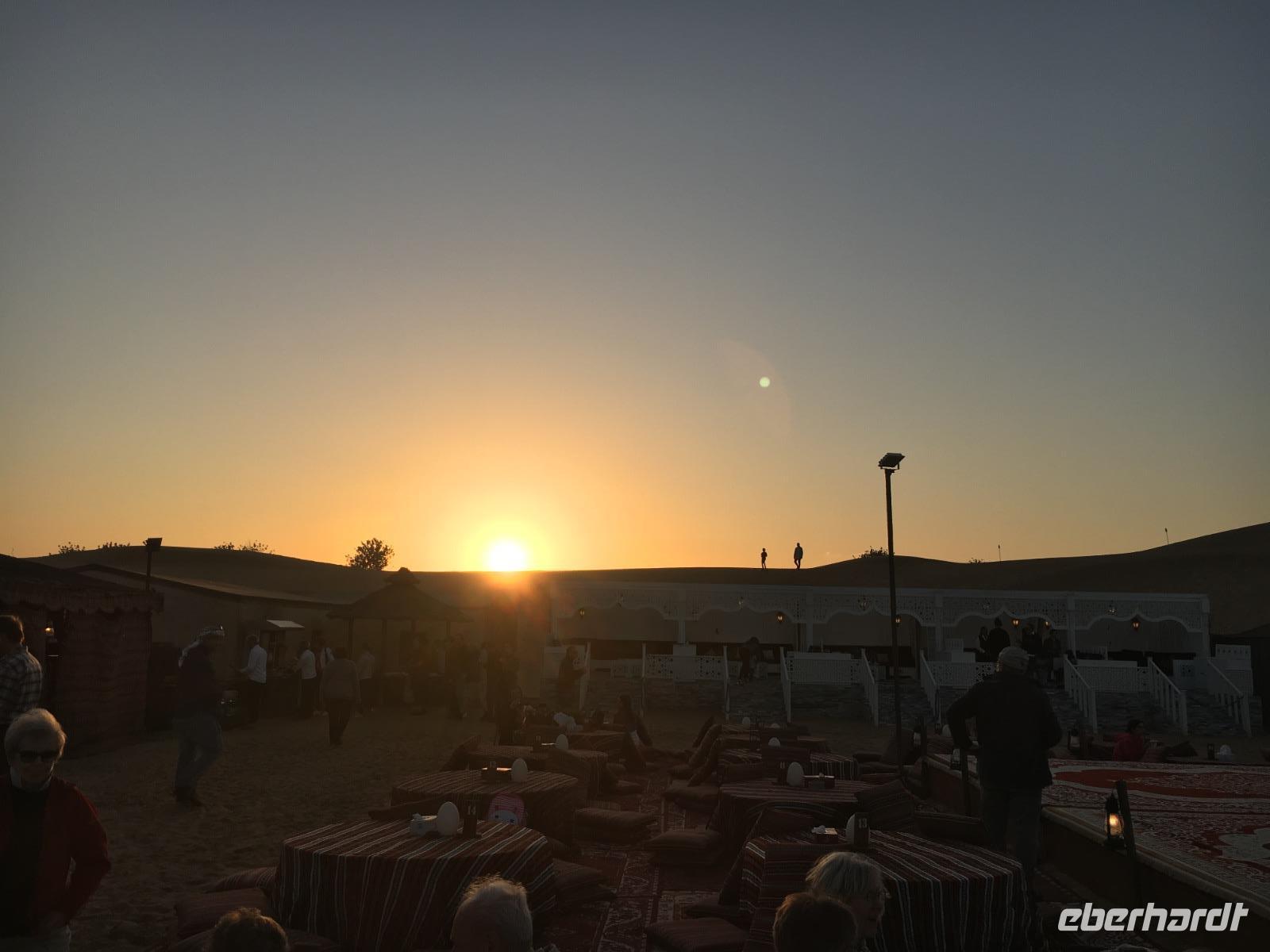 Nach einer sehr kurzen Nacht trafen wir 10:00 Uhr auf unseren Reiseleiter Hassan. Er lebt mit seiner Familie in Ägypten und arbeitet 10 Monate des Jahres als Reiseleiter im Orient. Der Weg führte uns zunächst zu Fuß durch die kleinen und sehr eng bebauten Gassen des alten Dubai in Richtung ‚Dubai Creek', die Lebensader der Stadt. Der 14 km lange und um weitere 12 km erweiterte Creek, teilt Dubai in die Stadtteile Bur Dubai und Deira. Wir überquerten mit einem abenteuerlich aussehenden Wassertaxi, auch Abra genannt, die Wasserstraße. Hier lag bereits der Duft von zahlreichen Gewürzen in der Luft. Wenige Meter zu Fuß, standen wir genau zwischen Gewürz- und Gold Souk. Hier befindet sich ein 64 kg schwerer Ring, aus reinem Gold, natürlich der größte der Welt. Alles was hier glänzt, ist auch tatsächlich Gold. Jeder Händler versucht auf seine eigene Art und Weise die Touristen zum Kauf zu animieren. Das Verhandeln der Preise gehört hier zum guten Ton. Wenn ein Verkäufer den akzeptierten Preis als zu hoch empfindet, legt er eben noch ein paar Kleinigkeiten oben drauf. Nachdem jeder, der das wolle, sein Verhandlungsgeschick unter Beweis stellen konnte, ging es mit dem Abra zurück. Am Dubai Museum angekommen, welches direkt auf der gegenüberliegenden Straßenseite unseres Hotels lag, bekamen wir einen Eindruck vom früheren Leben der Beduinen in Dubai. Das Museum wurde 1971 eröffnet. Die Eingangstür stammt aus dem ehemaligen Wohnhaus von Scheich Saeed Al Maktum, dem Urgroßvater des heutigen Herrschers, Scheich Muhammad bin Raschid Al Maktum. Nach dem Mittagessen in unserem Hotel und einer kleinen Verschnaufpause, holte uns Ibrahim, unser Reiseleiter für die Wüstensafari, 15:30 Uhr mit fünf Jeeps ab. 45 Minuten später erreichten wir das Ende der Stadt und standen mitten in der Wüste. Nach einem kurzen Stopp, um ein wenig Luft von den Rädern zu lassen, fuhren wir rasant über die Dünen in Richtung Wüstencamp. Dort erwartete uns ein Abend voller Highlights. Eine Falkenshow, ein fantastisches BBQ, eine Bauchtänzerin und vieles mehr. Gegen 21:00 Uhr erreichten wir wieder unser Hotel und nun hieß es Koffer packen. Ab morgen heißt unser Hotel AIDA.