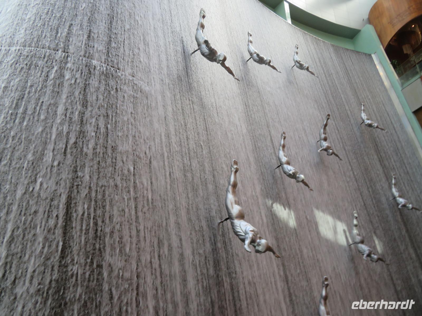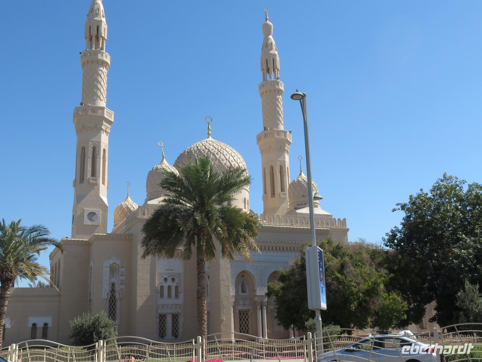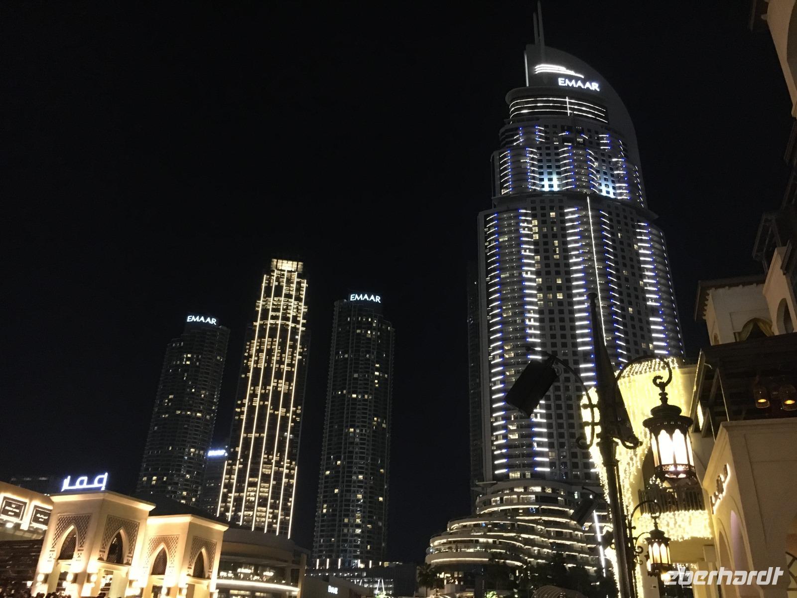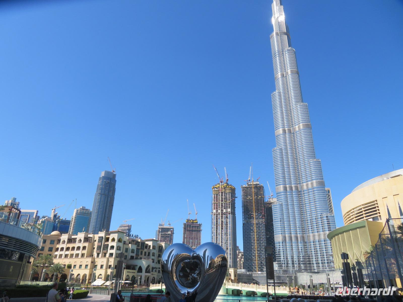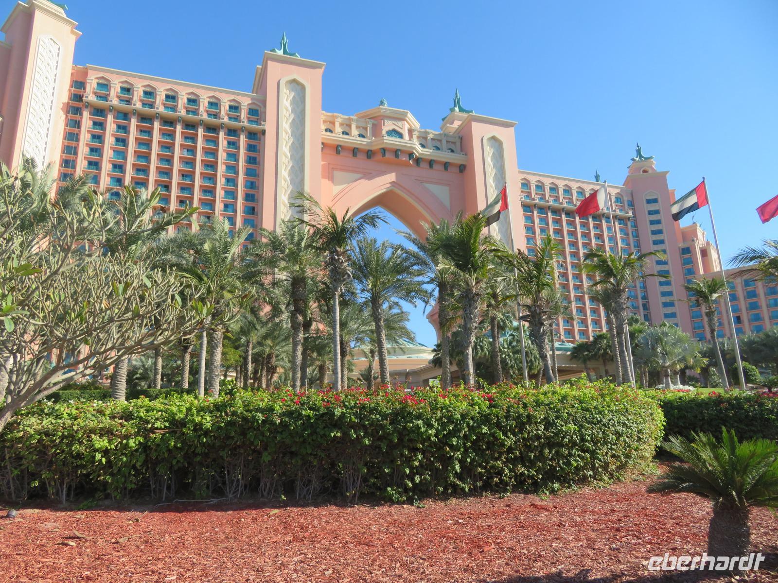 Heute trafen wir bereits um 9:00 Uhr wieder auf Hassan, um uns durch das neue moderne Dubai führen zu lassen. Unser Bus hielt direkt in der unteren Etage der riesigen Dubai Mall, das zweitgrößte Einkaufscenter der Welt, nach der South China Mall in Dungguan. Nach einem kurzen Spaziergang durch die gigantische Mall, endeten wir am Eingang des Burj Khalifa, der noch höchste Wolkenkratzer der Welt und eines der beiden Wahrzeichen der Stadt. Der schnellste Aufzug der Welt brachte uns in 45 Sekunden, also mit einer Geschwindigkeit von 10m/sec, auf die 124. Etage, auf 452 Meter. Eine Treppe führt noch auf die 125 Etage. Von oben konnten wir schon den künstlich angelegten See Lake Dubai sehen, in dem täglich ab 18:00 Uhr die weltbekannten ‚Dubai Fountain' abwechselnd zu arabischer und europäischer Musik tanzen, die größten Wasserspiele der Welt. Der Burj Khalifa, mit einer Höhe von 828 Meter, stellt aber noch weitere Weltrekorde auf. Das höchste Hotel, die höchste Bibliothek und das höchste Restaurant. Nach einem kleinen Einkaufsbummel in der Dubai Mall, liefen wir gemeinsam an einem riesigen Indoor-Wasserfall, einer Eislaufbahn und ein Aquarium mit der größten Acrylglas-Scheibe der Welt vorbei. Über drei Etagen erstreckt sich das Wasserbecken mit über 33.000 Meeresbewohnern, die durch ein 32 Meter breites und 8 Meter hohes Acrylglasfenster beobachten werden können. Wieder am Bus angekommen ging es direkt weiter zu einem kurzen Fotostopp am Burj Al Arab, das bekannteste Wahrzeichen der Stadt. Ein segelförmiges, auf einer künstlich aufgeschütteten Insel gebautes 7 Sterne Hotel, eines der luxuriösesten Hotels der Welt. Beim anschließenden Besuch der Mall of Emirates, blieb Zeit für ein kleines Mittagessen. Dabei konnten wir einen Blick in die integrierte Wintersporthalle werfen. Fünf Skipisten mit zwei Liftanlagen und der größte Indoor-Snowpark der Welt, lassen die Herzen von Wintersportlern höherschlagen. Weiter ging es mit dem Bus, der uns direkt an der ersten Station der Palm Jumeirah Monorail heraus lies. Wir fuhren bis zur Endstadion, auf der Palm Jumeirah, einer riesigen künstlich aufgeschütteten Insel in der Gestalt einer Palme. Auf dem Außenring befindet sich das ‚Atlantis The Palm Dubai Hotel', welches an die gleichnamige Insel erinnert. Nach einer kurzen Innenbesichtigung des Einkaufsbereichs des Hotels, sammelte uns unser Busfahrer wieder ein. Unser nächster Halt hieß AIDA. Wir verabschiedeten uns von Hassan und verschwanden im Cruise Ship Terminal im Port Rashid. Unsere Reisepässe gaben wir ab und erhielten die Bordkarten. Nach einer Sicherheitskontrolle betraten wir ca. 17:30 Uhr das Schiff und konnten unsere Kabinen aufsuchen. Einige Gäste genossen bereits am Abend die Annehmlichkeiten, die eine AIDA Kreuzfahrt mit sich bringt, mit anderen Gästen traf ich mich um 19:00 Uhr, um das Schiff noch einmal zu verlassen. Wir setzten uns in zwei Taxen und ließen uns nochmal in die Dubai Mall fahren. Dort erlebten wir eine spektakuläre Lasershow an der Fassade des Burj Khalifa und unfassbar schöne Wasserspiele. Die Fontänen schießen das Wasser bis zu 150 Meter hoch in einer perfekten Symbiose mit der Musik. Verzaubert von dem Spektakel, fuhren wir mittels Taxi wieder zur AIDA zurück.