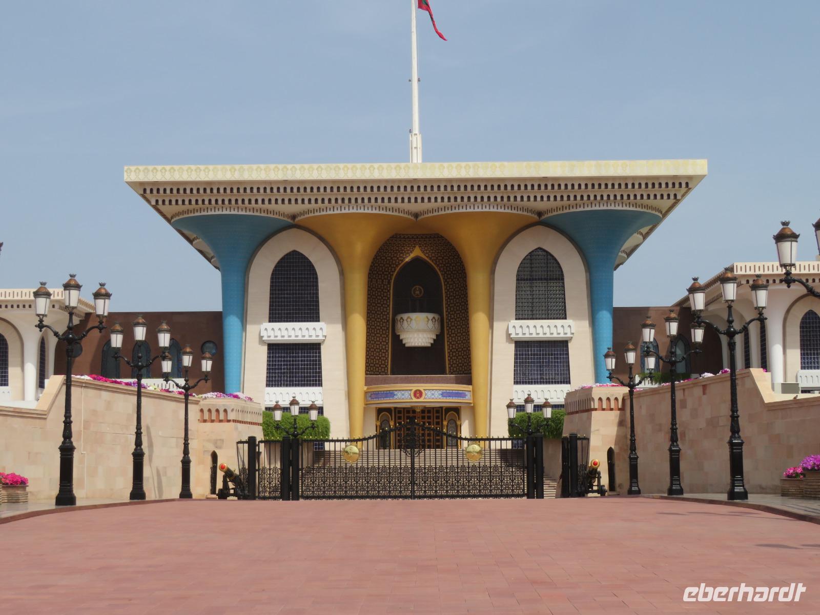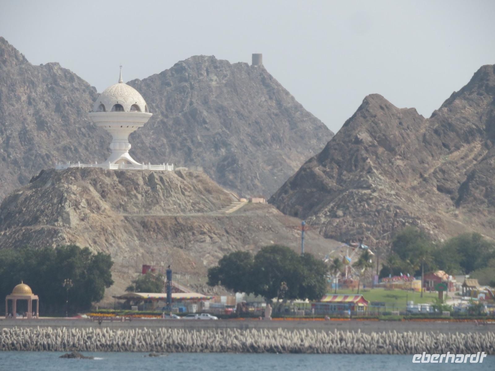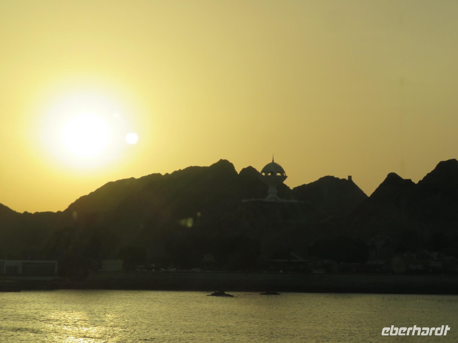 Um 7:00 Uhr liefen wir pünktlich zum Sonnenaufgang im Hafen Muscats, Port Sultan Qabus Cruise Terminal, ein. Der Weihrauchbrenner, das Wahrzeichen von Muscat, sah fantastisch im Licht der aufgehenden Sonne aus. In der neu ernannten Hauptstadt des Omans, fanden wir ein ganz anderes Bild vor. Ein großer Kontrast zu Dubai, aber dennoch genauso einzigartig und schön. Die meisten Gäste nahmen am optionalen AIDA-Ausflug „Mystisches Muscat" teil. Wir trafen uns 7:45 Uhr auf Deck 3, direkt am Ausgang des Schiffes. Nach einer kurzen Wartezeit öffnete die AIDA ihre Pforten. Unser indischer Reiseleiter führte uns als erstes durch die Sultan Qabus Moschee, die größte Moschee des Sultanats Oman. Lange Bekleidung und Kopftuch für die Damen sind dabei natürlich Pflicht. Getrennte Gebetshallen für Männer und Frauen, wobei die für Männer deutlich prunkvoller ausgestaltet ist, ließen uns staunen. Zahlreiche Kronleuchter schmücken die Decke, wobei einer ganz besonders ins Auge stach. Mit seinen 8 mal 14 Meter und mit Swarowski-Kristallen aus Österreich besetzt, gilt er als größter freihängender Kronleuchter der Welt. Zurück an der Corniche Mutrah angekommen, so wird die Promenade hier genannt, blieb uns etwas Zeit um uns im Mutrah Souk ein Souvenir zu kaufen. An jedem Verkaufstand konnten wir den Weihrauch riechen, eine Art Allheilmittel der Omanis. Nach einer sehr kurzen Busfahrt kamen wir am Al-Zubair-Museum an. Hier fanden wir zahlreiche omanische Kunst- und Alltagsgegenstände, Briefmarken, Münzen und traditionelle Waffen vor. Unser nächster Halt führte uns zum Al-Alam-Palast, der Sultanspalast, einer der drei Residenzen des Oberhaupts des Landes. Zum heutigen Tag gab es etwas mehr Aufregung, da der frisch ernannte Sultan in einer seiner drei Residenzen erwartet wurde. Welche genau, wird der Öffentlichkeit aus Sicherheitsgründen nicht verraten. Einen 5-minütigen Fußmarsch später, sahen wir dann das Fort Al-Mirani, welches von Portugiesen gebaut wurde. Um 13:00 Uhr kamen wir wieder am Schiff an und verließen um 18:00 Uhr den Hafen Muscats.