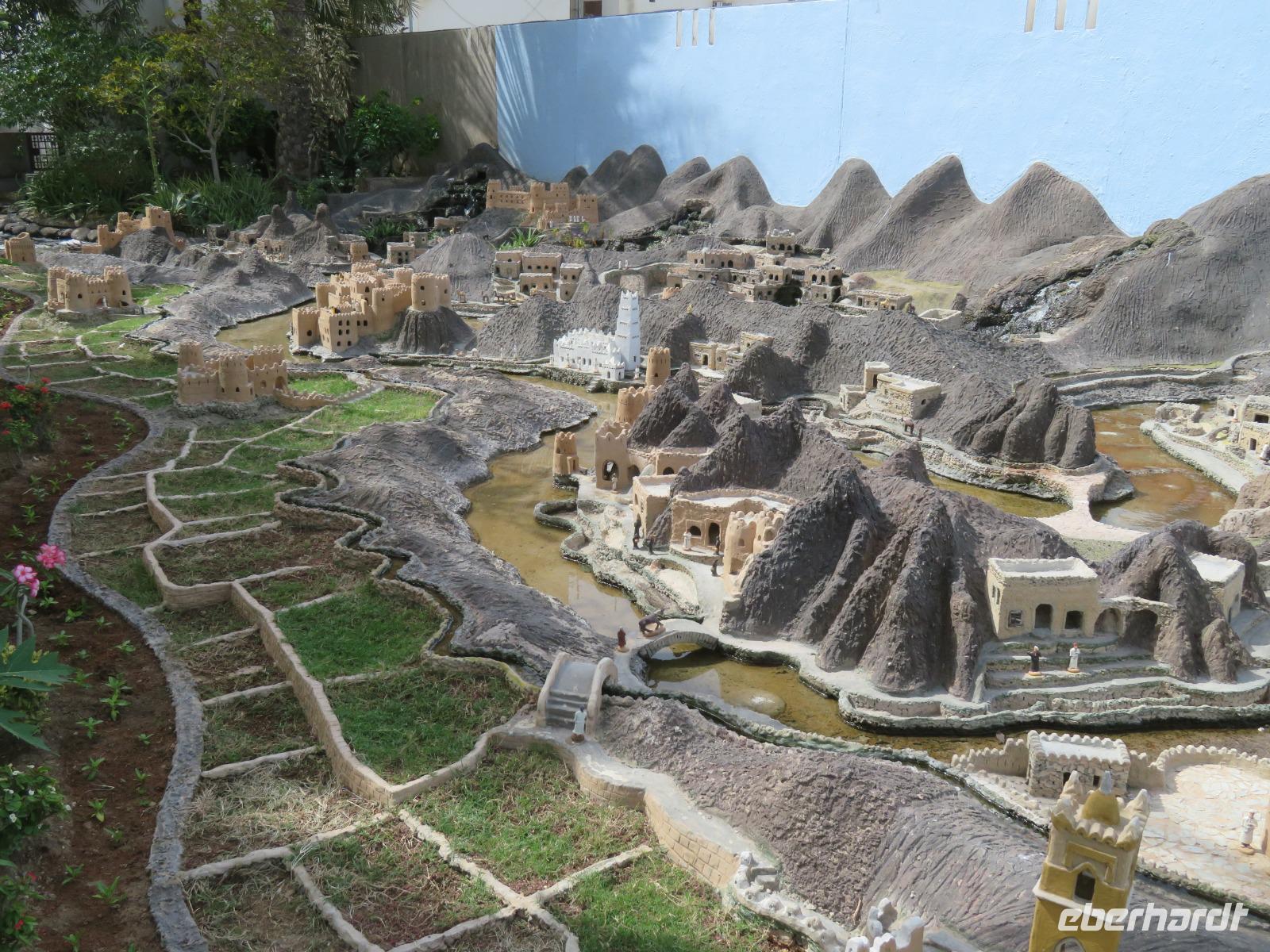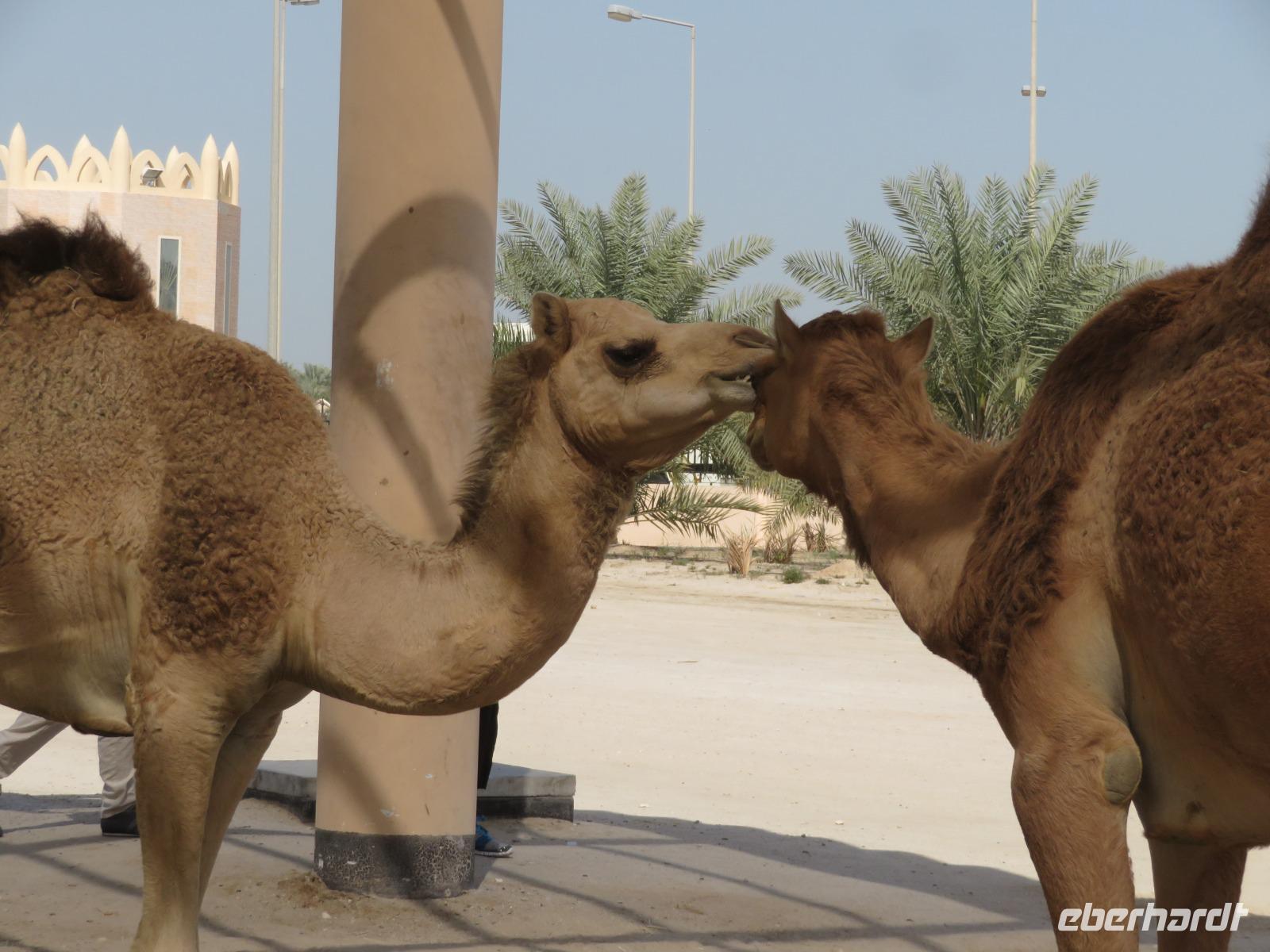 Durch die Zeitverschiebung von minus einer Stunde gegenüber Dubai, trafen wir uns heute erst um 10 Uhr Bordzeit mit unserer heutigen Reiseleiterin Vendy am Khalifa Bin Salman Port in Al Manama. In Kalifornien geboren und mit einem deutschen Mann verheiratet führte sie jetzt deutsch- und englischsprachige Gäste durch das kleine Königreich. Mit einem Shuttlebus fuhren wir zunächst in zwei Gruppen zum Hafenausgang, um dann in einen größeren Bus umzusteigen. Nach ca. 20 Minuten hielten wir am modernen Nationalmuseum. Die hier erzählte und bildhaft dargestellte Geschichte des Landes geht bis 3.000 vor Christus zurück. In früheren Zeiten verdienten die Bahrainis hauptsächlich durch das Perlentauchen Ihr Geld, bis Chinesen die Zuchtperle erfanden und dadurch die Nachfrage stark sank. Besonders große und gleichmäßige Perlen finden heute noch ihren Platz auf den Kronen der Staatsoberhäupter diverser Königshäuser. Weiter ging es durch die Vergangenheit. Unser nächster Halt führte uns zum Bahrain Fort, eine Burg die von den Portugiesen gebaut und 2005 in die Liste der UNESCO-Weltkulturerbe aufgenommen wurde. Aus dem Persischen Golf wird immer mehr Land aufgeschüttet und Bahrain wächst und wächst. Wo sich vor 10 Jahren noch Wasser befand, stehen nun viele Wohn- und Bürokomplexe. Während der Busfahrt zu unserem nächsten Stopp, plauderte Vendy etwas aus dem Nähkästchen. Als reichstes Emirat bekommen die Einheimischen hier jede Menge Unterstützung von der Regierung. Das Benzin kostet nur 0,40 € pro Liter, kostenlose Schulbildung und Krankenversorgung, Trinkwasser und Strom. Ein Bahraini darf bereits nach 20 Arbeitsjahren in Rente gehen und bekommt weiterhin 100 % seines Einkommens. Wenn ein Bahraini in z.B. Deutschland studieren möchte, werden die Kosten von der Regierung übernommen. Am ‚Al Jasra Handicrafts centre' angekommen, warfen wir einen Blick auf die Handwerkskunst. Ein Weber, ein Töpfer und andere Handwerker fertigten live landestypische Kleidung bzw. Vasen und Gefäße an. Weiter ging es zu der Kamelfarm des Kronprinzen. 500 Kamele hält er hier als Hobby und nimmt regelmäßig an Kamelrennen teil. Eine sehr alte Tradition. Nach einem lehrreichen und sehr unterhaltsamen Tag kamen wir gegen 16:00 Uhr wieder am Schiff an. 17:00 Uhr sollte die Reise dann weiter gehen an einen Hafen, den wir bereits kannten, Dubai.