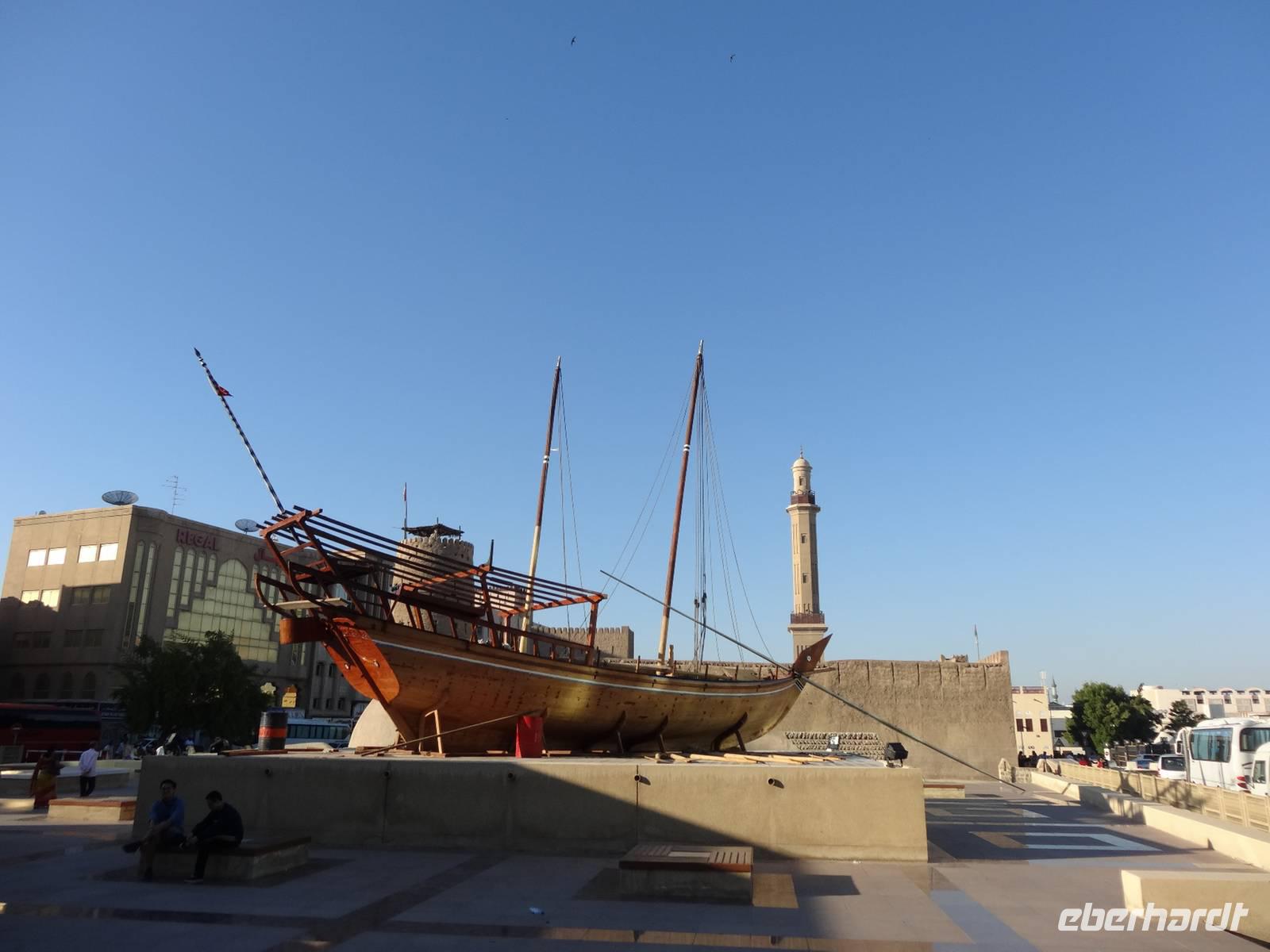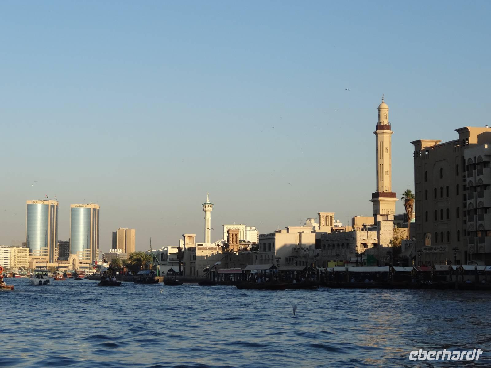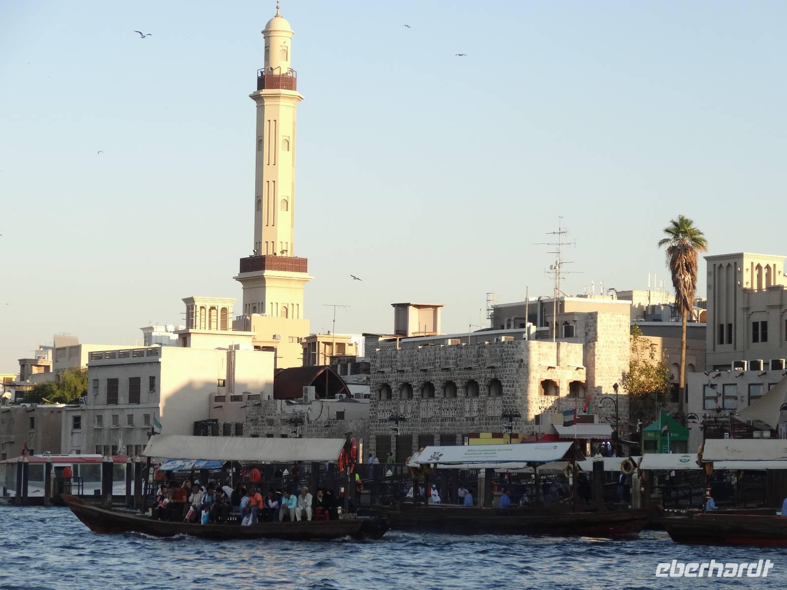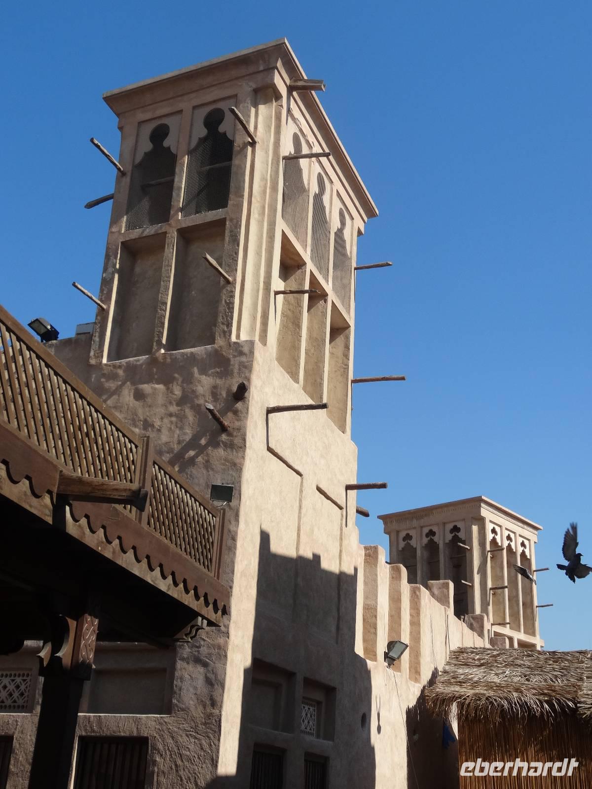 Wer einen leichten Schlaf hat, wird am frühen Morgen das erste Mal vom Rufen des Muezzin geweckt ... Nach dem Frühstück zeigt uns Anja die schöne Umgebung des Hotels. Wir spazieren durch die nahe gelegene Bastakiya, den historischen, unter Denkmalschutz stehenden Stadtteil Dubais. Auf dem Weg zum Dubai Creek bummeln wir durch enge Gassen und sehen einige der traditionellen Windtürme.