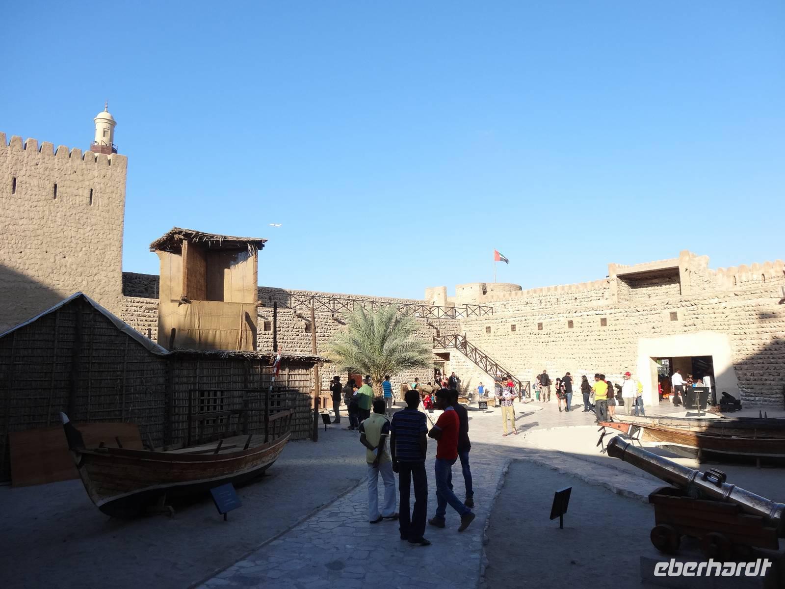 Skifahren in der Wüste? Kein Problem! In Dubai ist alles möglich! So schauen wir danach den Emiratis in der Mall of the Emirates beim Abfahrtsski, Bobfahren und Rodeln zu. Die 85 Meter hohe Indoor-Skiarena beeindruckt als weißes Winterwunderland mit Kunstschnee und alpinen Illusionen. Nach einem Mittagsimbiss in der Shopping-Mall geht es nun zurück nach Bur Dubai. Wir besuchen das direkt gegenüber unserem Hotel gelegene Dubai Museum. In dem 1787 erbauten Al-Fahidi Fort befindet sich heute ein ausgezeichnetes, heimatkundliches Museum. Eindrucksvolle Bilder zeigen, dass Dubai noch bis in die zweite Hälfte des 19. Jahrhunderts ein kleines Fischer- und Perlentaucherdorf war. Der Großteil des Museums liegt unter der Erde. Hier erfahren wir viel über die Perlentaucherei, Falkenjagd, Kamelzucht und das Leben in der Wüste, was durch realitätsnah gestaltete „Bilder" sehr gut verdeutlicht wird.