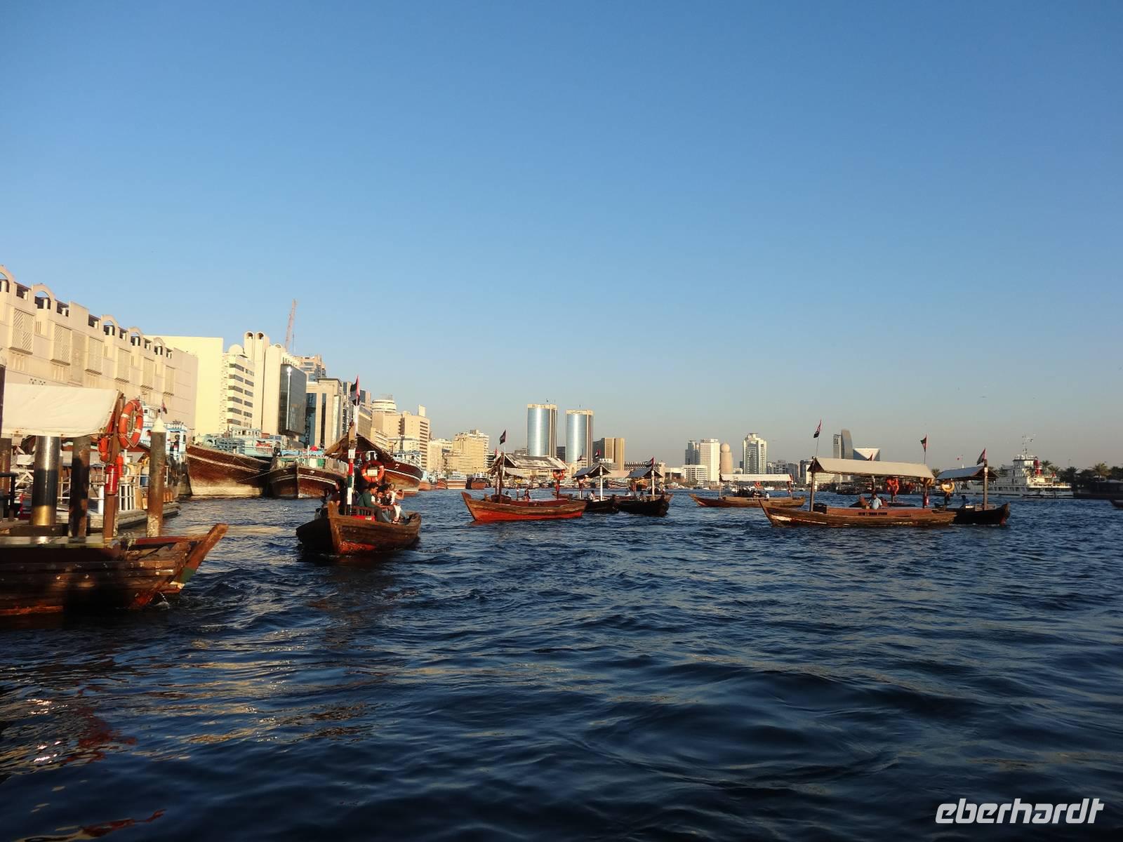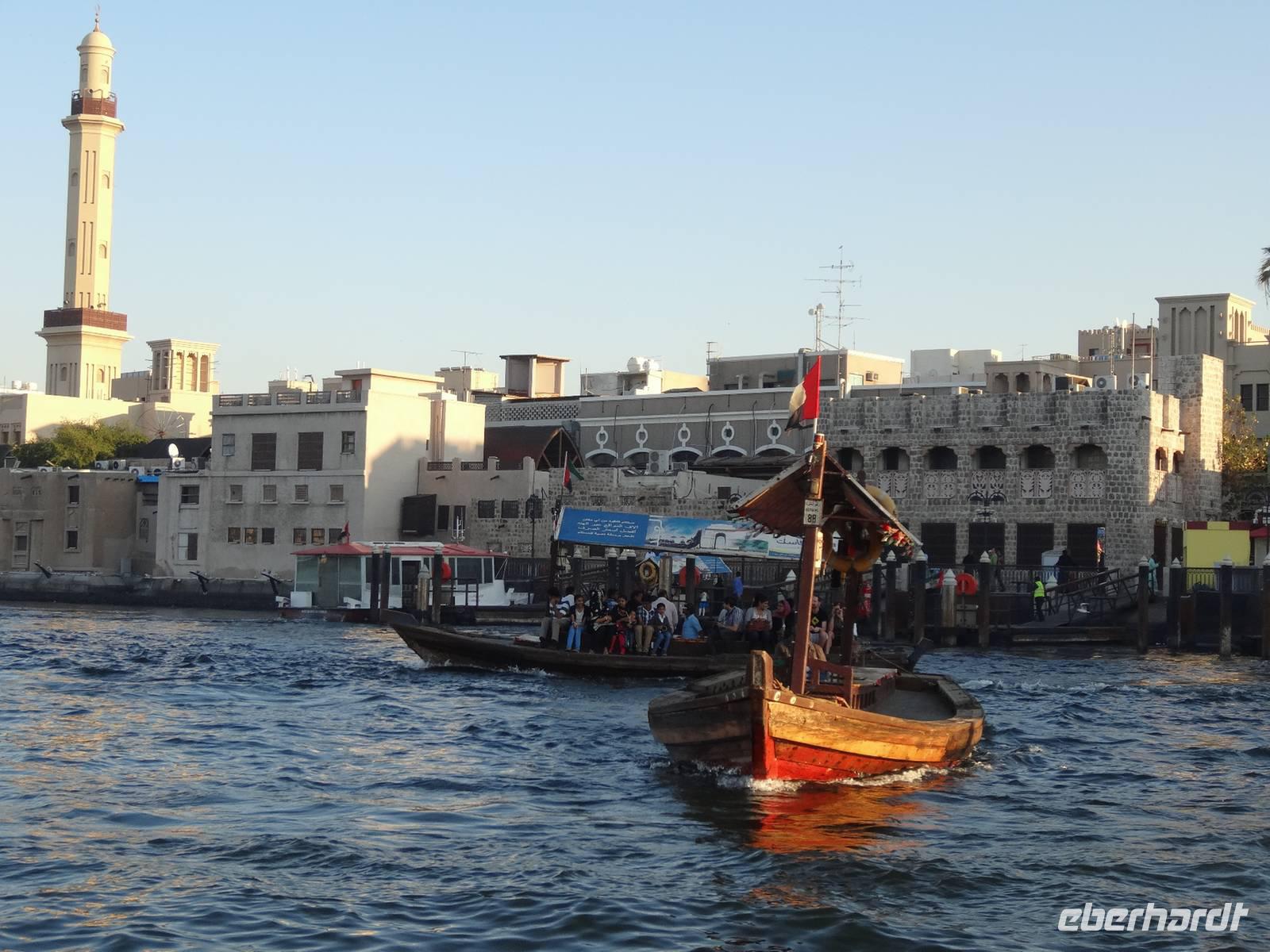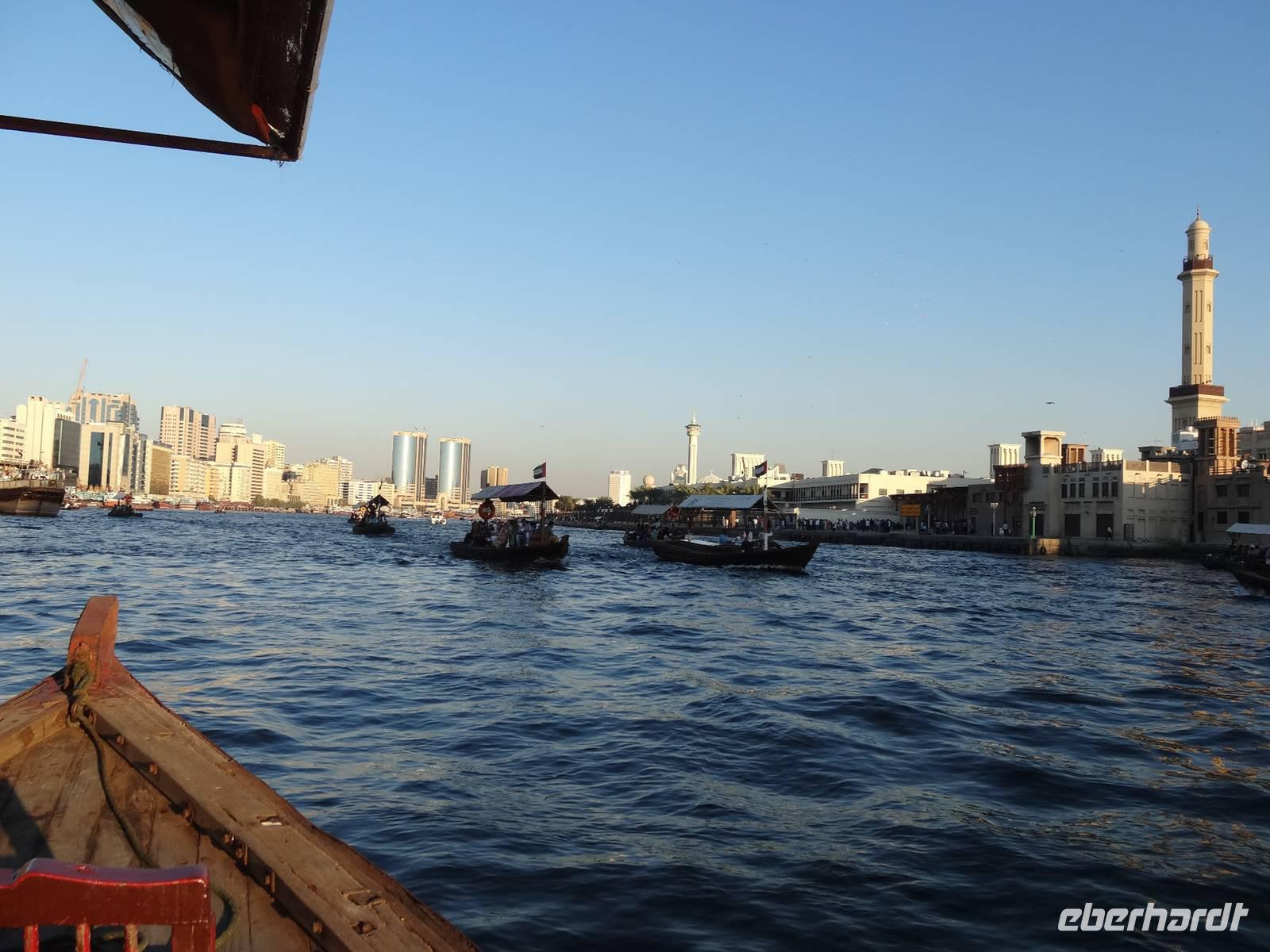 Den Nachmittag nutzen einige, um noch einmal mit einer Abra auf dem Dubai Creek zu fahren, andere Gäste locken nochmals die funkelnden Schmuckstücke im Goldsouk .