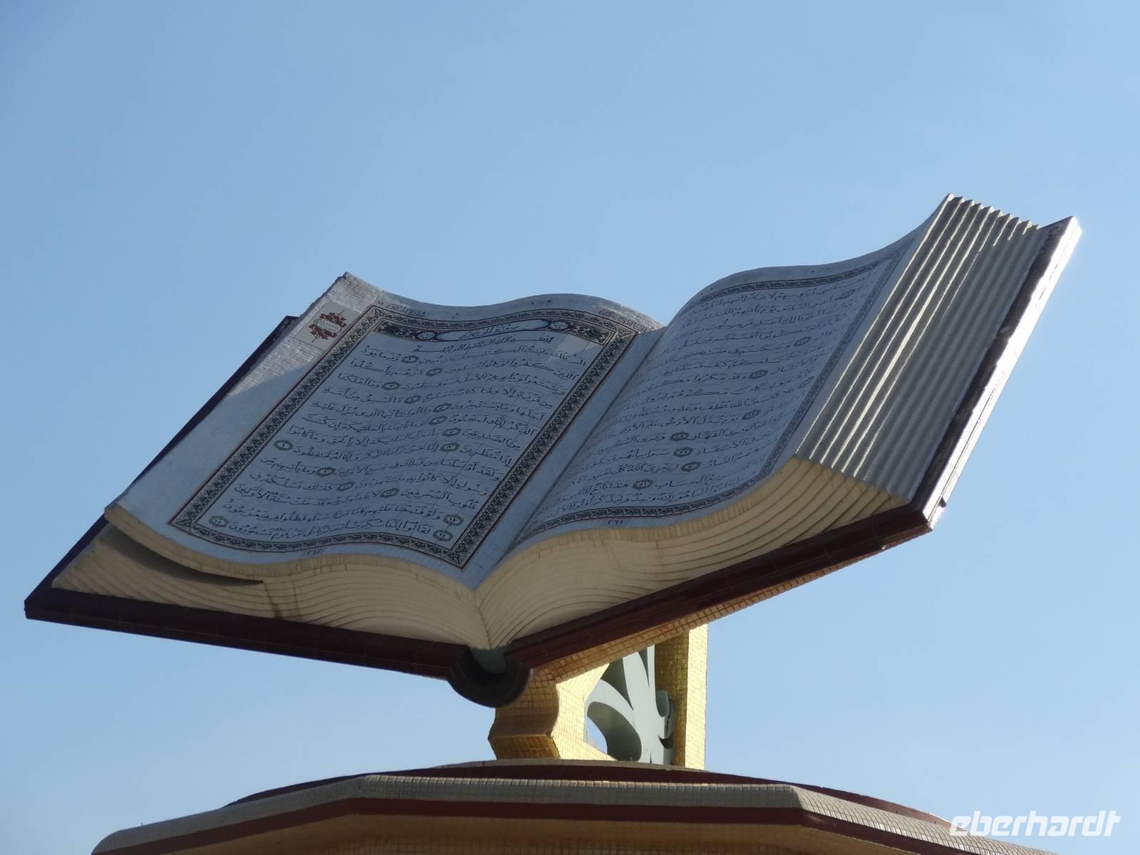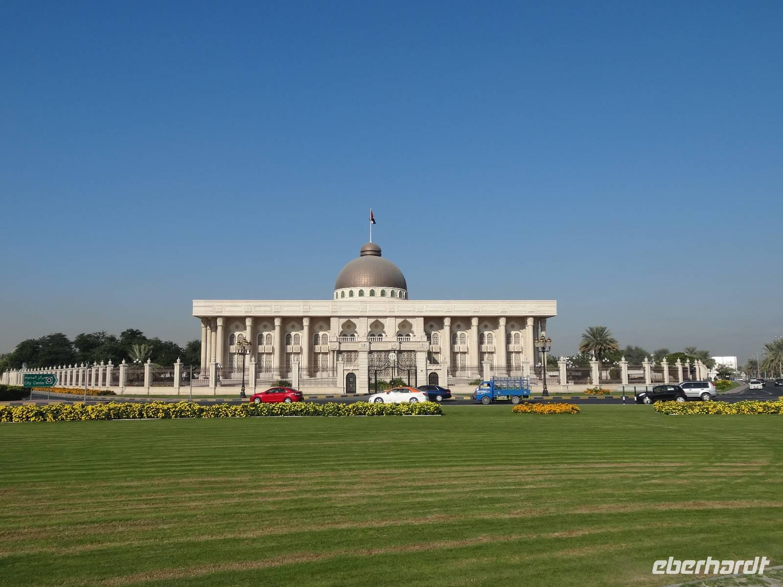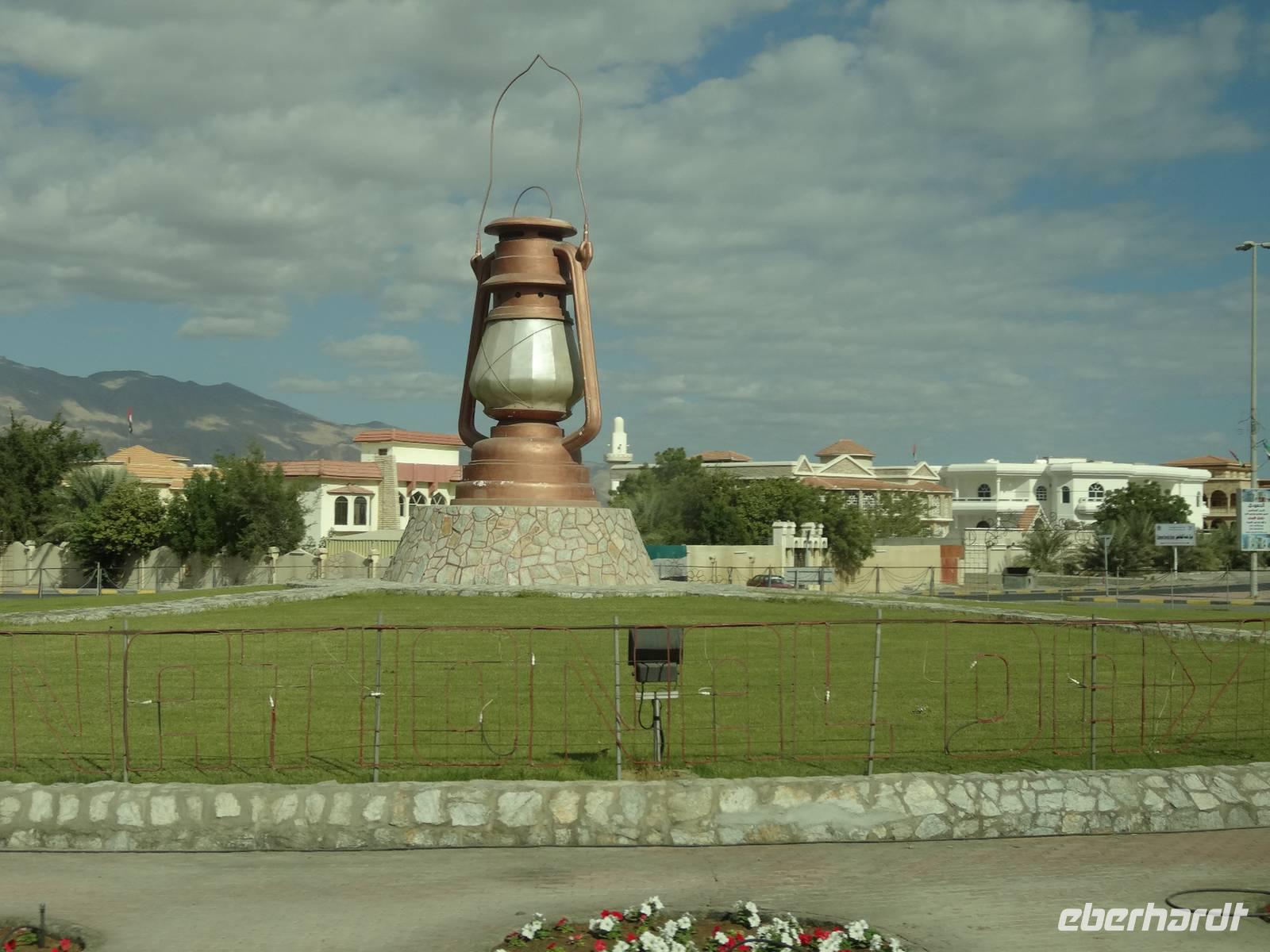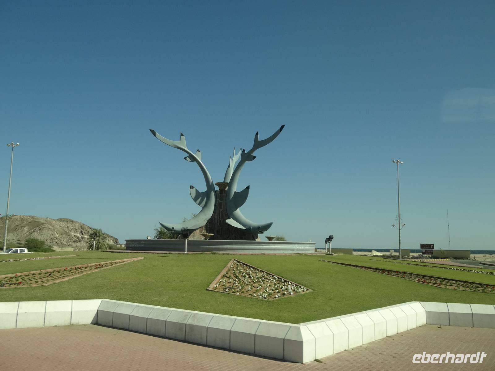 Nach dem Frühstück starten wir unseren Ausflug ins Nachbaremirat Sharjah. 25 Kilometer Fahrt liegen vor uns bis ins „Emirat der aufgehenden Sonne". Sharjah ist trotz seiner Nähe zu Dubai ganz anders: strenger, bodenständiger, traditioneller. Weniger pompöse Wolkenkratzer, mehr Kunst, Kultur und Bildung. Dies verdankt das Emirat seinem Scheich Dr. Sultan-bin-Mohammed Al Quasimi, dessen Architekturstudium sich in vielen Bauwerken Sharjas widerspiegelt. Er ist der Kunstinteressierte und Intellektuelle von den sieben Emiren. Hier im drittgrößten Emirat ist auch der Konsum von Alkohol strengstens verboten und die zünftigen Kleidervorschriften sind strenger, wohl begründet durch die enge Freundschaft des Scheichs zum König von Saudi Arabien. Zunächst halten wir am berühmten, liebevoll gestalteten Kreisverkehr „Cultural Square", in dessen Mitte ein riesiger aufgeschlagener Koran im Lesegestellt thront. Wir fahren entlang der Strandpromenade und besuchen den Souk Al-Masqoof, den alten Souk im Herzen der alten Stadt. Hier findet man laut Anja die preiswerteste Auswahl an Pashmina-Schals und das wilde Handeln nimmt hier seinen Lauf ...