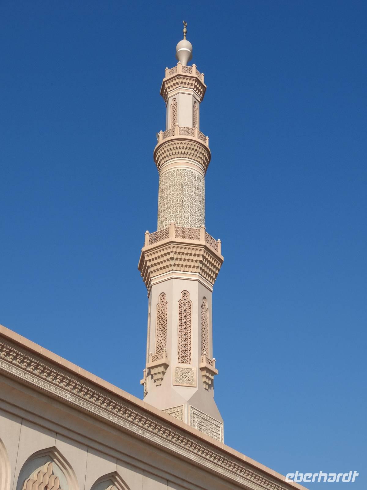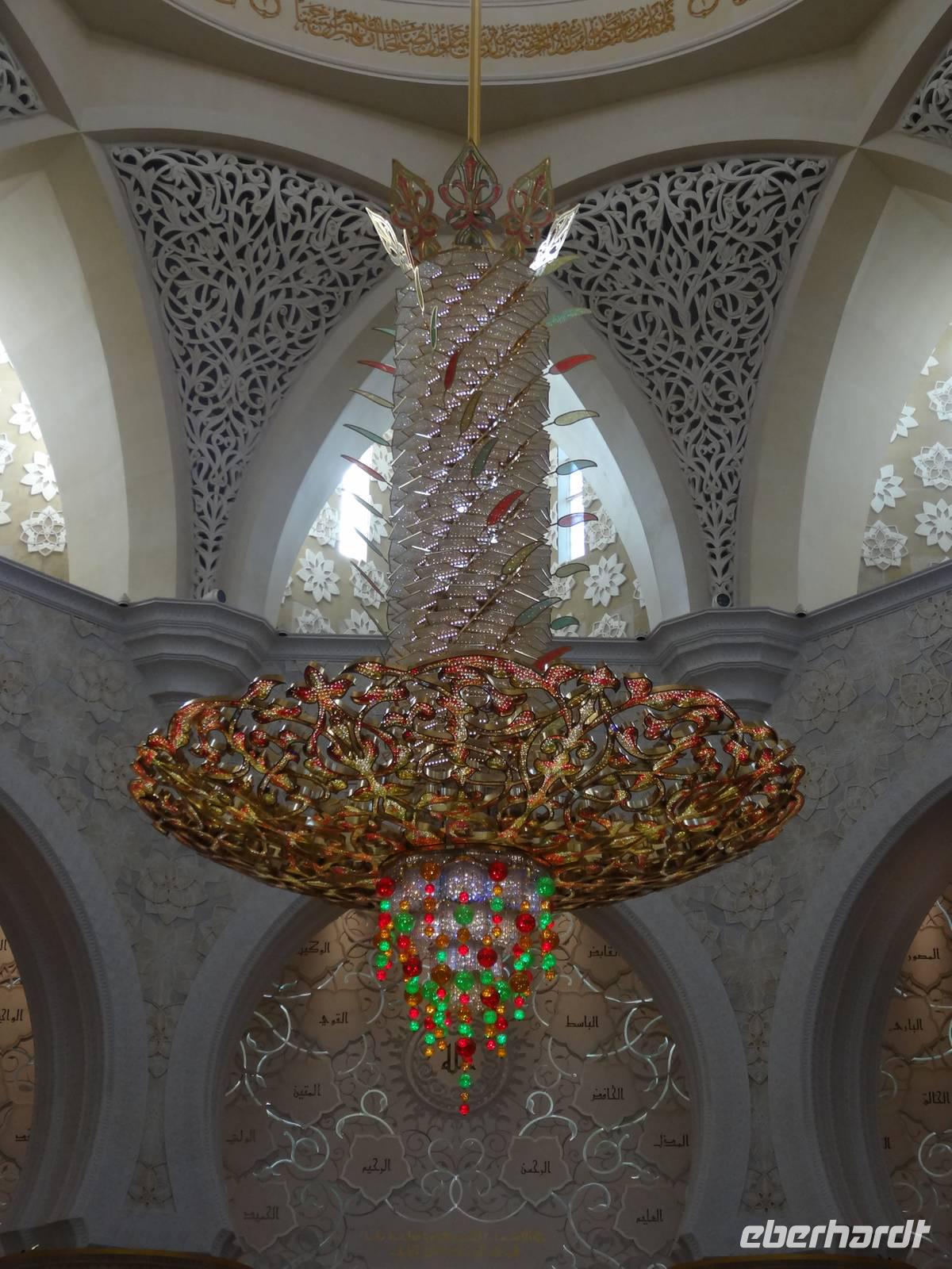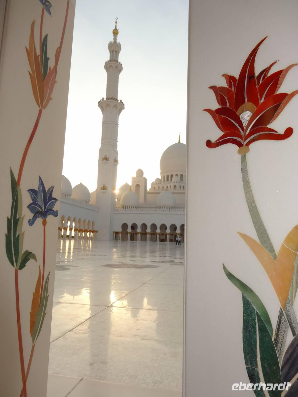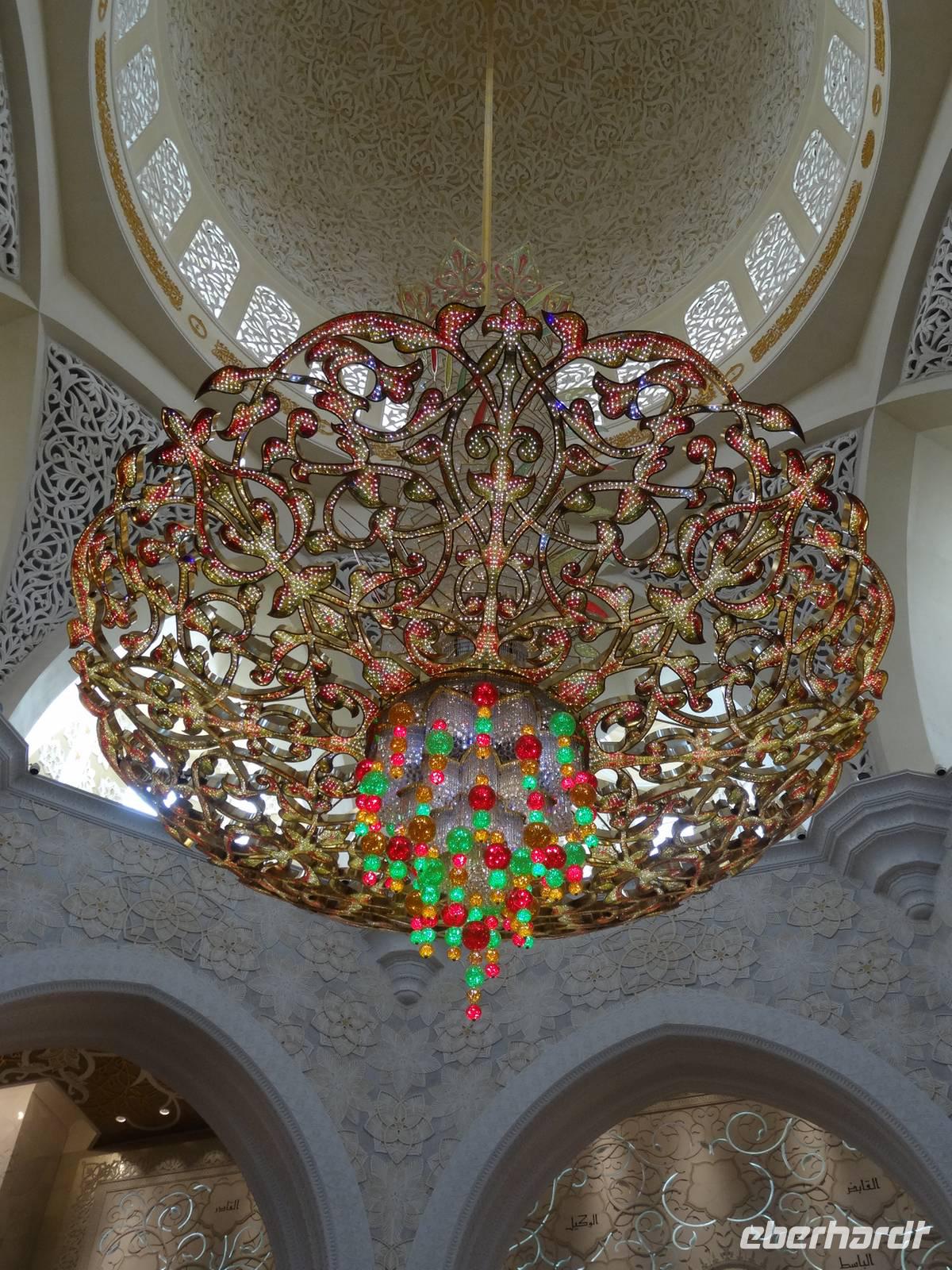 Abschließender Höhepunkt ist der Besuch der Großen Moschee Sheikh Zayed. Das aus schneeweißem Marmor erbaute und erst 2008 eröffnete Gotteshaus ist die drittgrößte Moschee der Welt. Die Moschee ist eindrucksvoll mit Intarsien aus Halbedelsteinen, dem größten handgeknüpften iranischen Teppich der Welt und fantastischen Kronleuchtern aus Gold und Swarowski-Kristallen gestaltet. Zu hohen muslimischen Feiertagen finden hier bis zu 40.000 Menschen Platz.