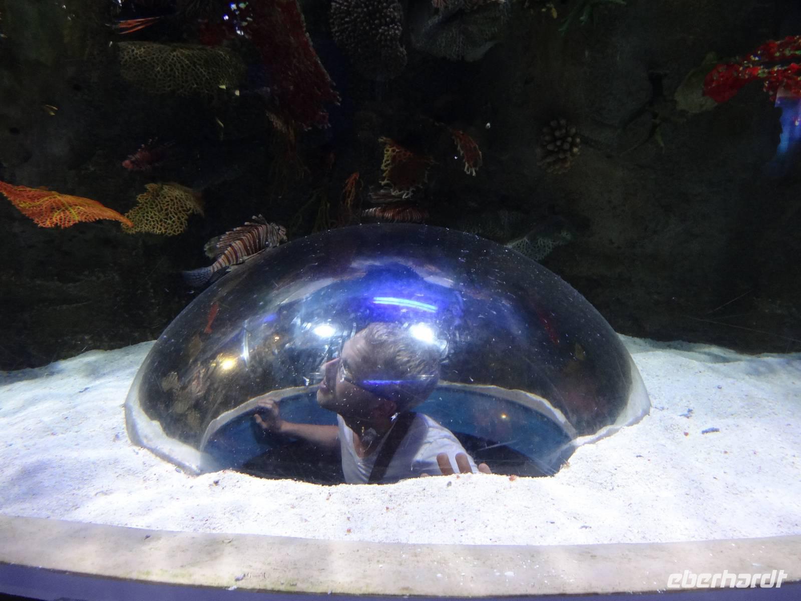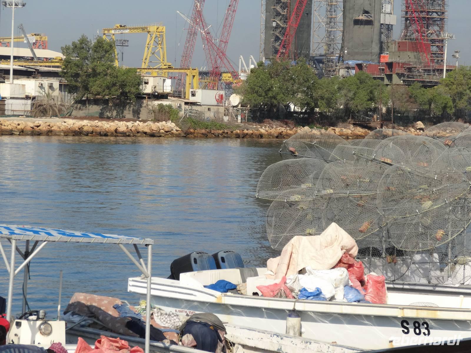 Nächster Halt ist der Blaue Souk, der durch seine typisch islamische Architektur beeindruckt. Dieses im Inneren moderne Shopping-Paradies verdient seinen Namen aufgrund der blauen Dachgewölbe und der blaugemusterten Verzierungen an den Außenfassaden. Vom Souk hat man auch einen herrlichen Blick auf die Lagune und die berühmte Faisal-Moschee. Anschließend führte uns Anja zum Fischmarkt, auf dem wir den frischen Fang des Tages begutachten: vom Babyhai bis zum Thunfisch kommt uns eine riesige Vielfalt unter die Linse! Nun geht es zurück nach Dubai, denn heute erwartet uns im wahrsten Sinne des Wortes noch ein echter Höhepunkt!