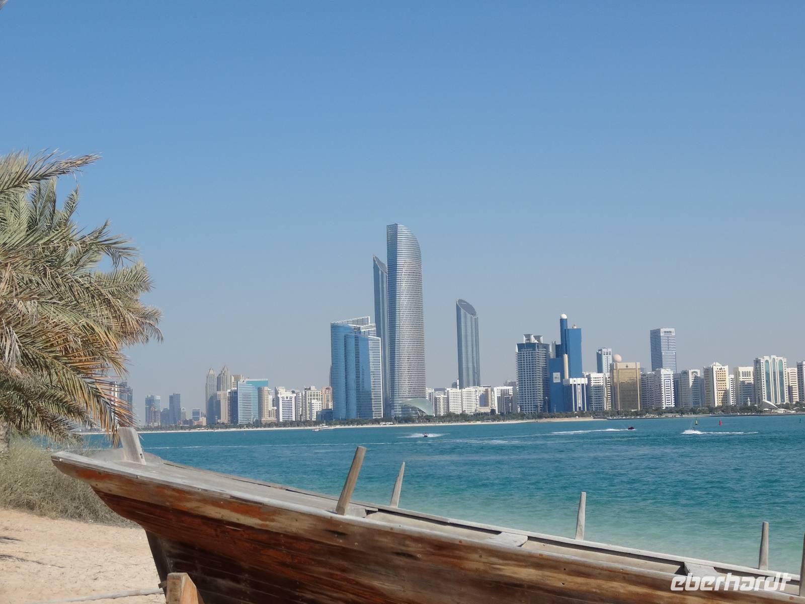 Mittags fahren wir weiter auf die Insel Abu Dhabi, deren Fläche sich in den letzten wenigen Jahrzehnten künstlich verdoppelt hat.