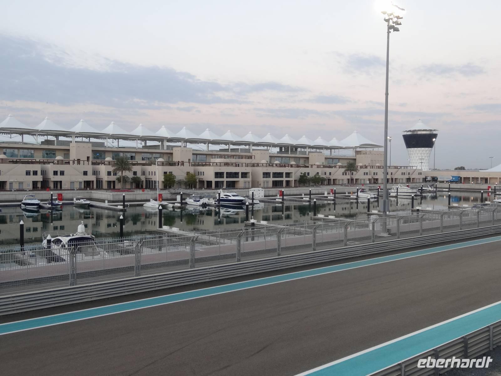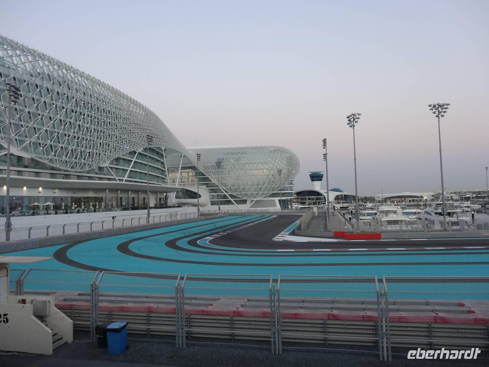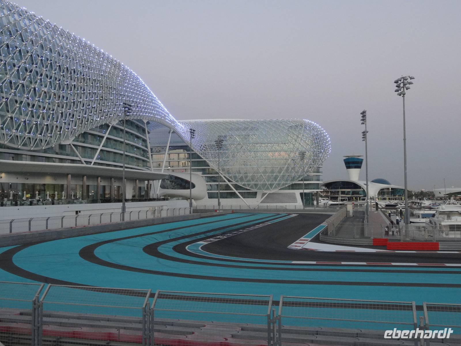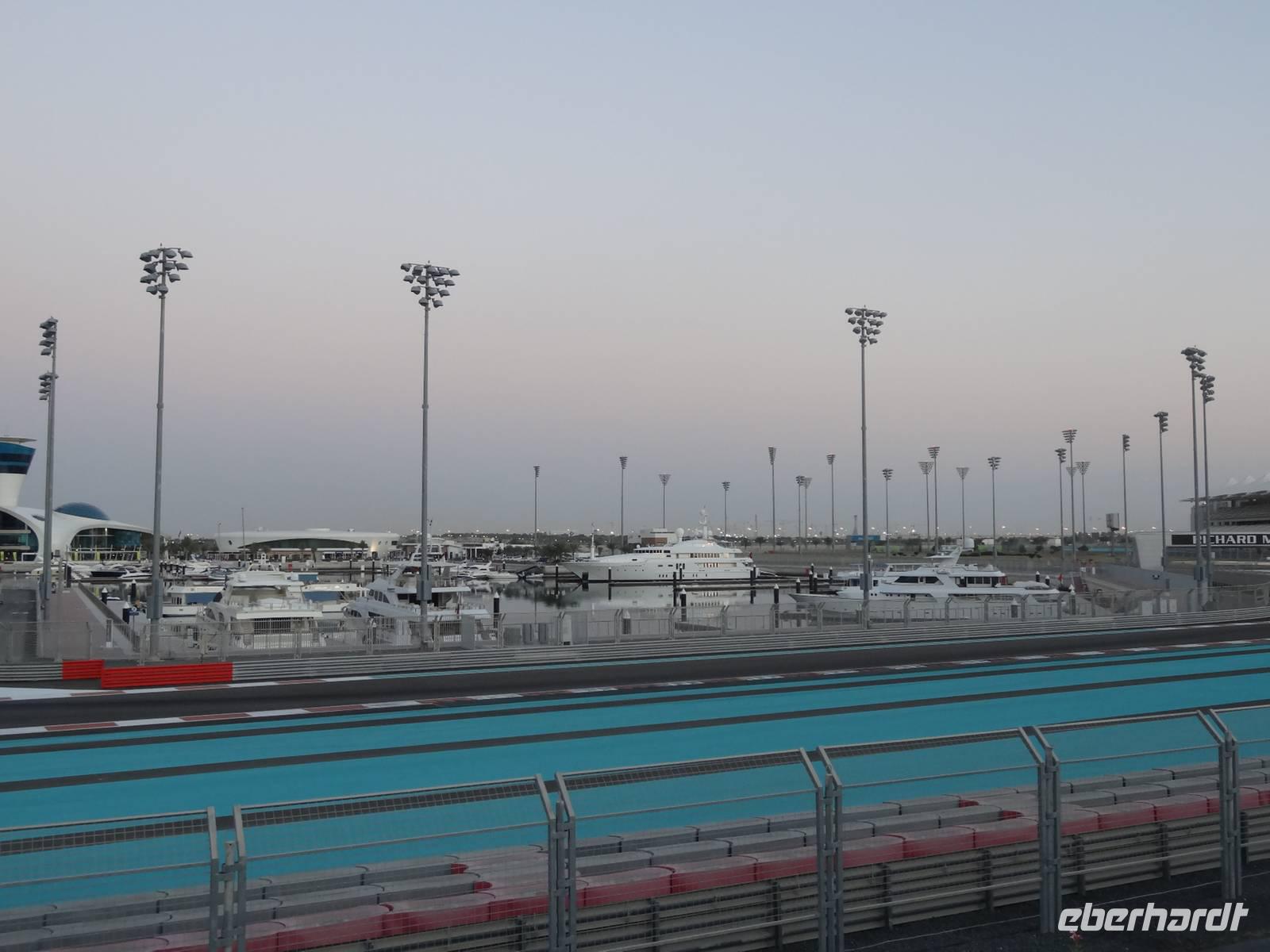 Die Sonne geht bald unter und wir legen unseren letzten Stopp zum Sonnenuntergang auf Yas Island ein. Die Insel zählt zu den größten im Emirat Abu Dhabi. Zweifelsohne sind die Formel 1-Rennstrecke und die Ferrari-World die derzeit bekanntesten Werke des Scheichs. Hier entstehen auch viele Luxushotels und Shopping-Malls. Somit ist Yas Island eines der spektakulärsten und teuersten Projekte in den Vereinigten Arabischen Emiraten.
