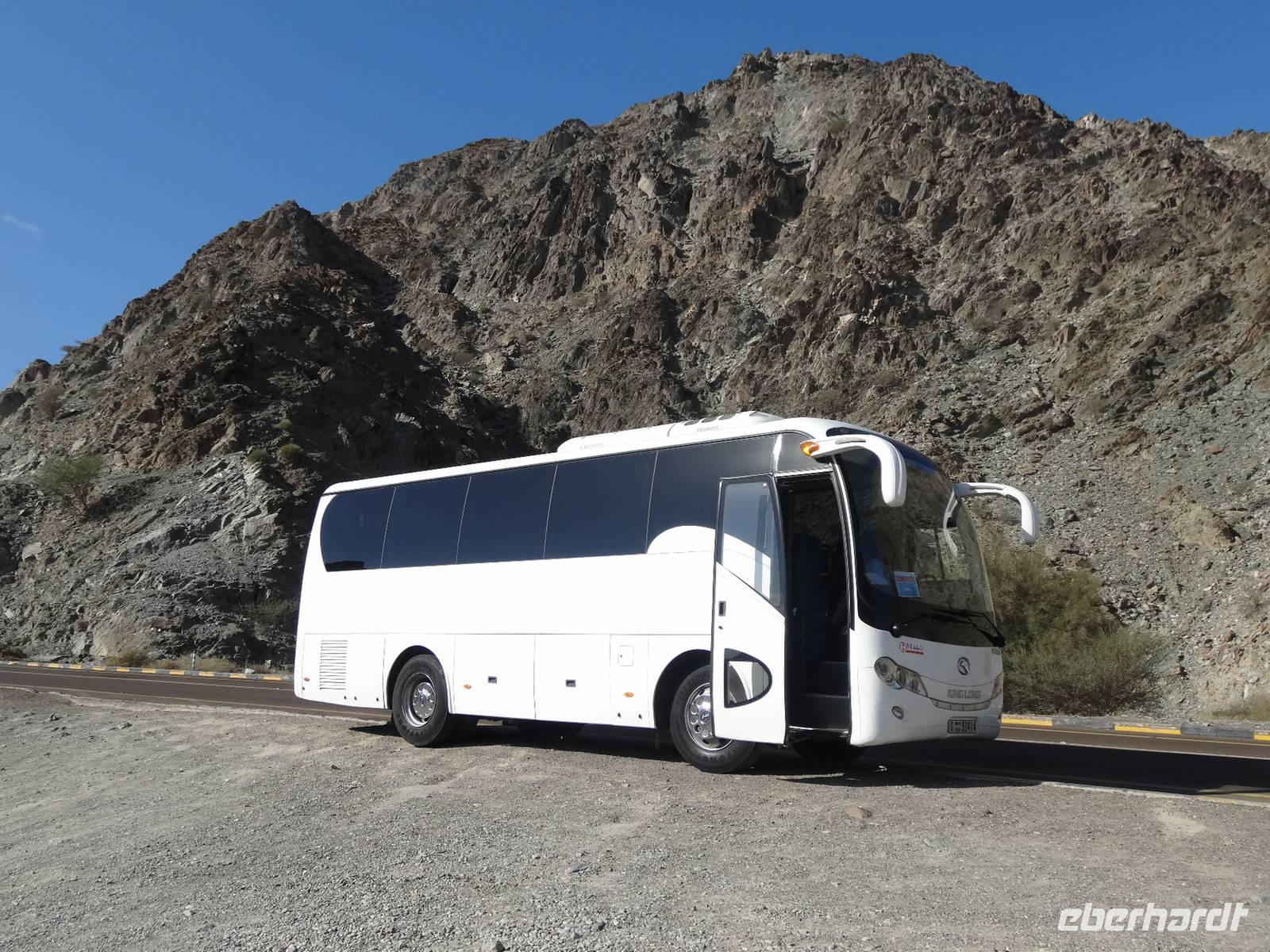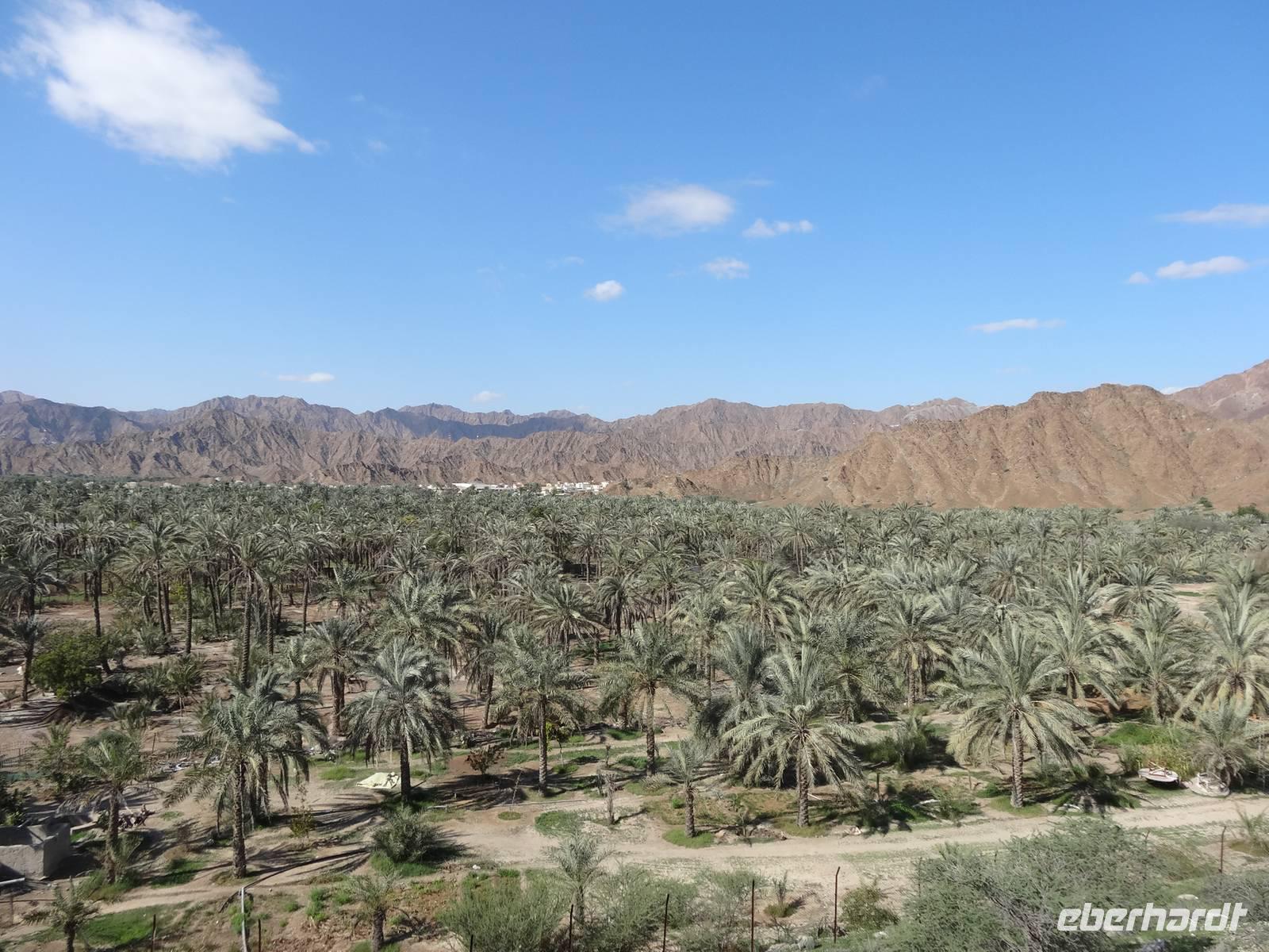 Für einige unserer Gruppe war heute das individuelle Erkunden Dubais oder Erholung am Strand angesagt. Bei unserem Ausflug an die Ostküste der Vereinigten Arabischen Emirate erwartete uns eine komplett andere Landschaft. Nämlich das karge, aber imposante Hajar-Gebirge, das bis in das benachbarte Sultanat Oman reicht. Entlang der Hauptstraße reiht sich nach ca. 2 Stunden Fahrt ein bunter Markt. Hier kann man von Teppichen, über Pflanzen, Obst und Gemüse alles kaufen. Wir kaufen frische Datteln und lassen uns diese schmecken. Weiter nordwärts an der Küste des Golfs von Oman statten wir der Bidiya Moschee einen Besuch ab. Sie ist vermutlich um 1500 errichtet wurden und somit die älteste Moschee der Vereinigten Arabischen Emirate. Auf dem Hügel nebenan erlaubten zwei historische Wachtürme eine schöne Aussicht auf die Palmengärten vor dem Hajar-Gebirge und auf der gegenüberliegenden Seite genießt man den Blick aufs tiefblaue Meer bis zum Horizont.