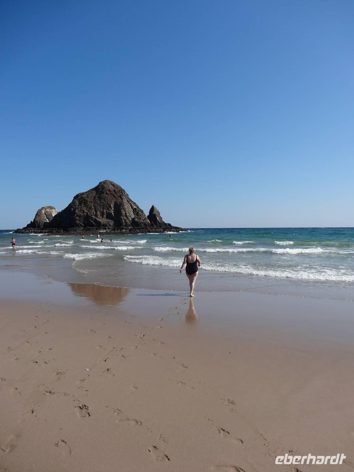 Im Sandy Beach Hotel direkt am Meer lassen wir uns das Mittagessen schmecken und die „Mutigen" unter uns stürzen sich dann in die Fluten des ca. 22°C warmen (oder auch kalten ) Golfs von Oman, der ein Teil des Indischen Ozeans ist. Nach drei Stunden Badevergnügen geht es zurück Richtung Dubai und wir haben noch Zeit, uns für die Silvesterparty vorzubereiten!