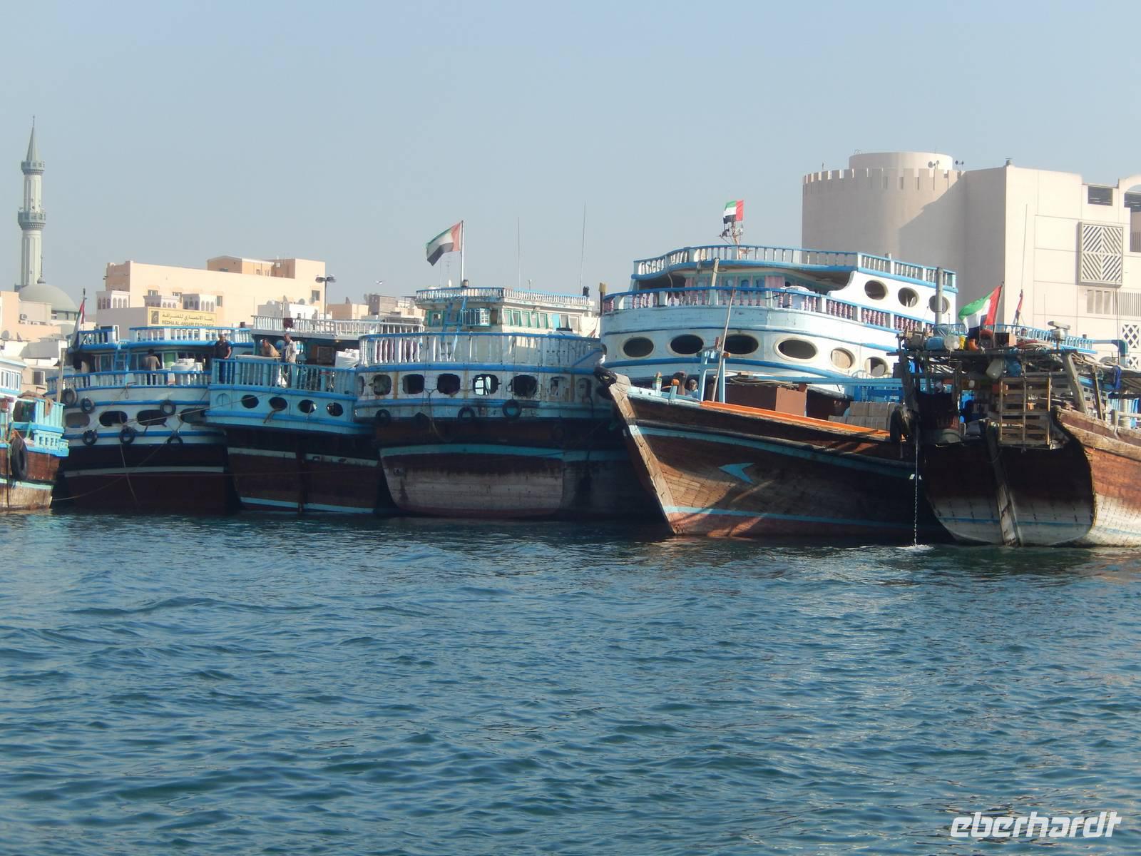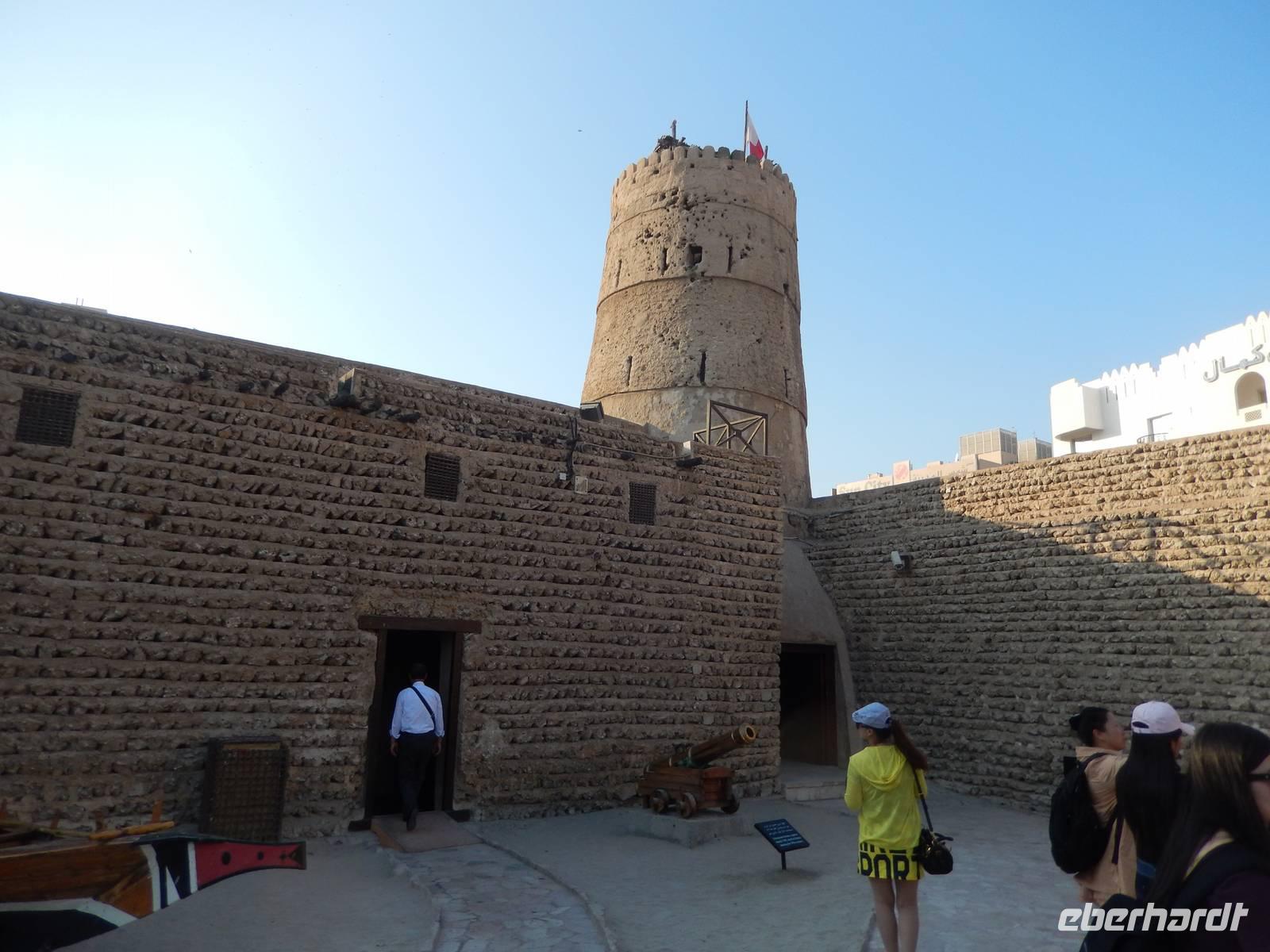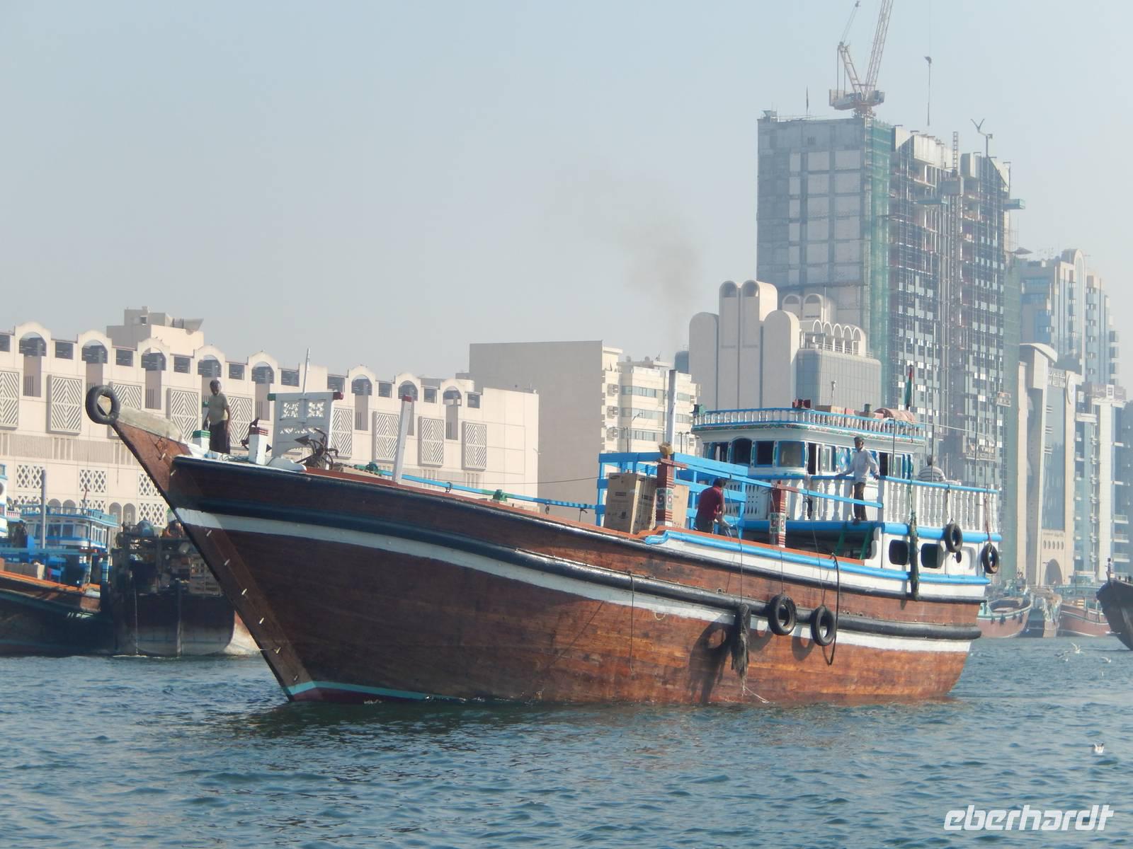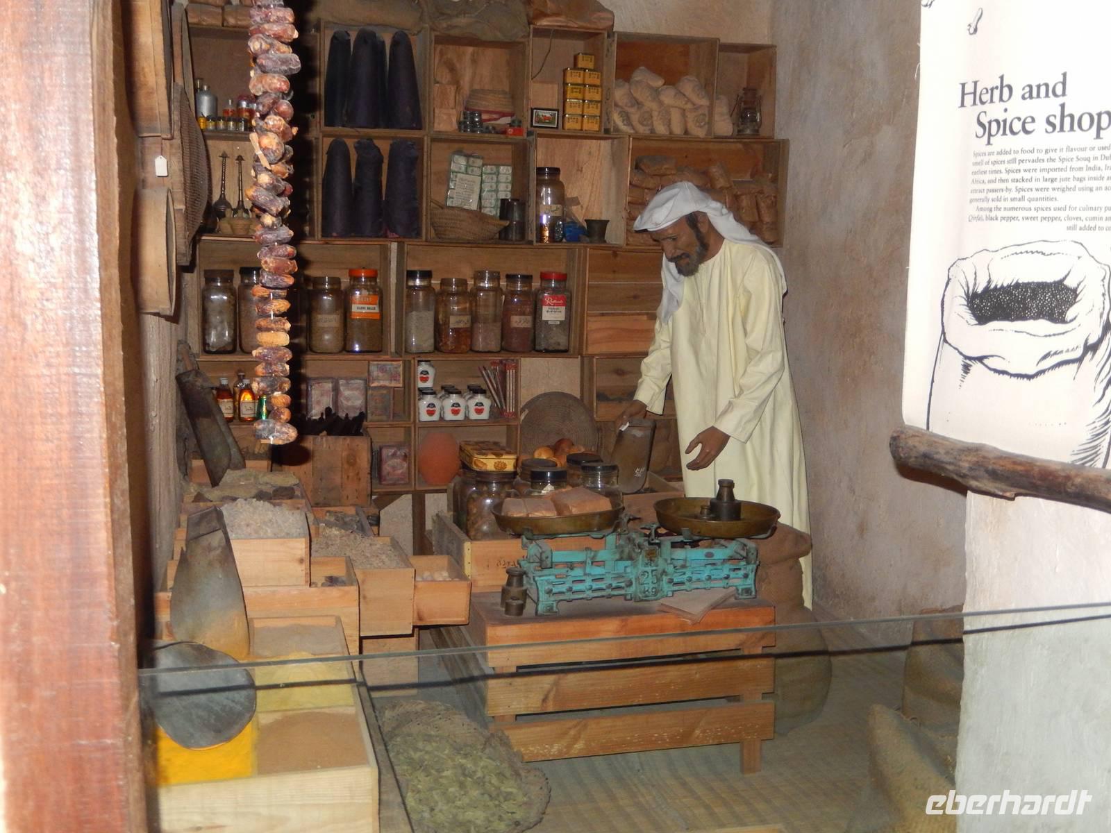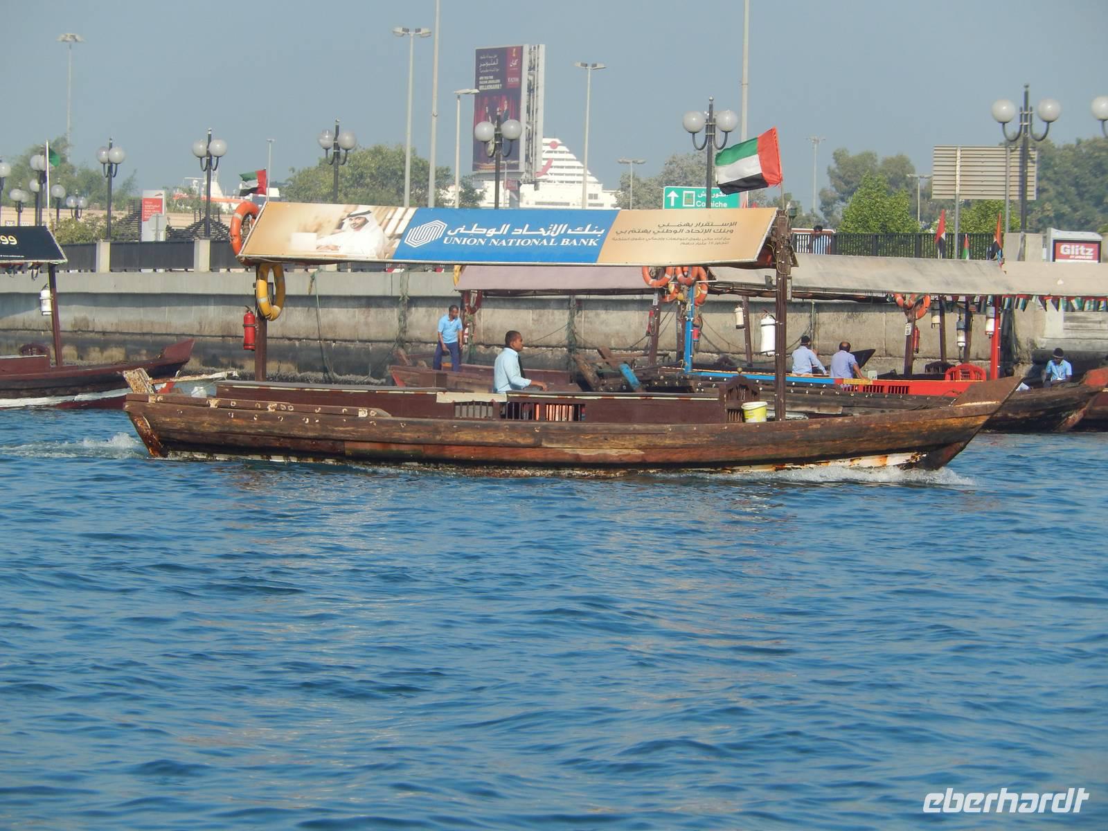 Am Vormittag holt uns unsere liebe Anja am Hotel ab, natürlich immer mit einem Lächeln auf den Lippen und einer Herzlichkeit die seinesgleichen sucht. Mit unseren Fotoapparaten im Gepäck machten wir uns auf zur Besichtigung des Alten Dubai. Zunächste besuchen wir das Dubai-Museum, welches direkt gegenüber von unserem Hotel liegt. Hier sehen wir in einem beeindruckenden Film, wie sich Dubai von 1930 bis heute entwickelt hat. Gemeinsam schlendern wir durch den Stadtteil Bastakiya. In den großen, meist zweistöckigen Häusern wohnten bis Mitte des 20. Jahrhunderts wohlhabende Kaufmannsfamilien aus dem Iran und aus Indien. Bei unserem gemütlichen Spaziergang sehen wir nicht nur die einheimischen Männer in Ihren "Dishdashas" sondern auch die Frauen mit Ihren "Abayas". Um auf die gegenüberliegende Seite des Creeks zu gelangen rüsten wir uns für eine Fahrt mit dem Wassertaxi, der sogenannten "Abra". Die flachen Holzboote mit zwei Sitzreihen und Dieselmotor sind für die vielen asiatischen und arabischen Gastarbeiter ein unentbehrliches Transportmittel. Für uns als Touristen stellen die hölzernen Kähne eine günstige und stimmungsvolle Möglichkeit dar, Dubai vom Wasser aus kennen zu lernen. So genießen wir die fröhliche Fahrt unter der arabischen Sonne und können unsere Augen kaum von Dubais spektakulärer Kulisse lassen. Heil und trocken angekommen, finden wir uns in der bunten Welt der arabischen Märkte wieder.
