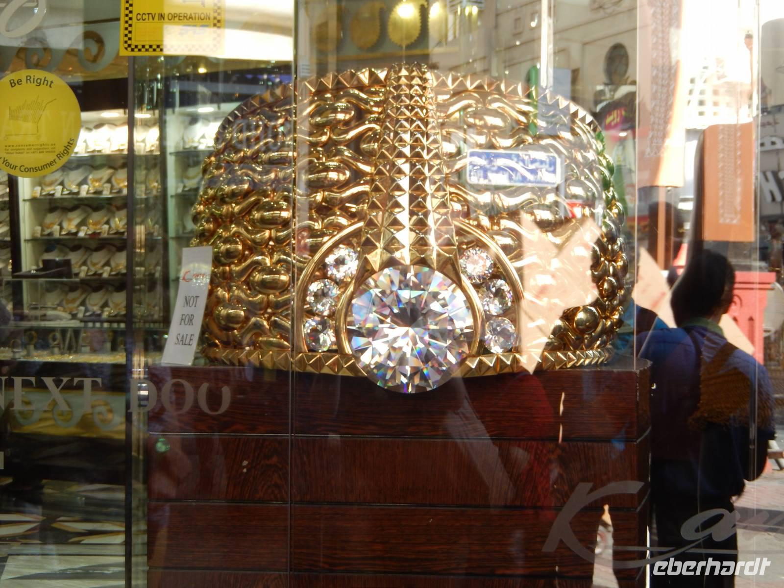 Anschließend gehen wir zum legendären Gold Souk. Hier bekommen die Damen glänzende Augen und die Männer hoffen, dass Sie nach dem Besuch noch einige Dirham in Ihren Portemonnaies wieder finden. Der traditionelle Souk gehört zu den größten Geldmärkten der Welt. Hier gibt es über 300 verschiedene Geschäfte wo die verschiedensten Schmuckarten erworben werden können. Die Preise sind sehr günstig. In Deutschland zahlt man in der Regel für dasselbe Schmuckstück das Doppelte. So bewiesen einige von uns Verhandlungsgeschick und konnten wertvolle Kostbarkeiten erstehen.