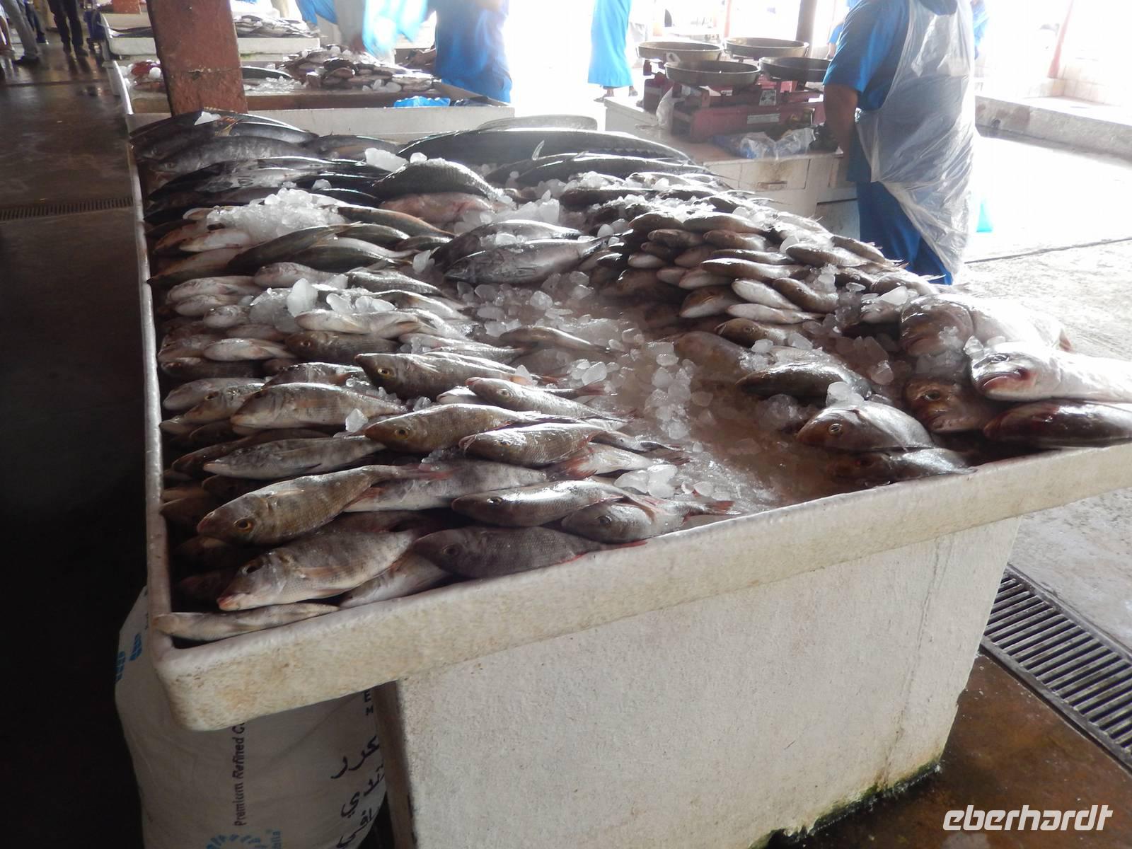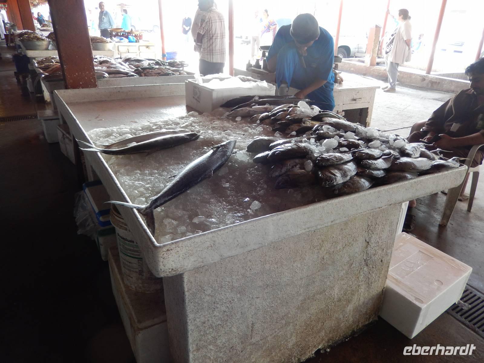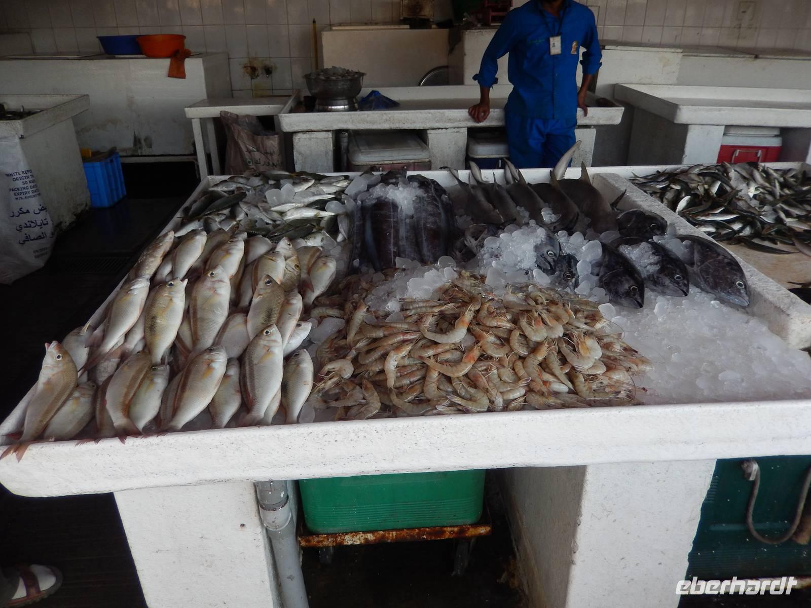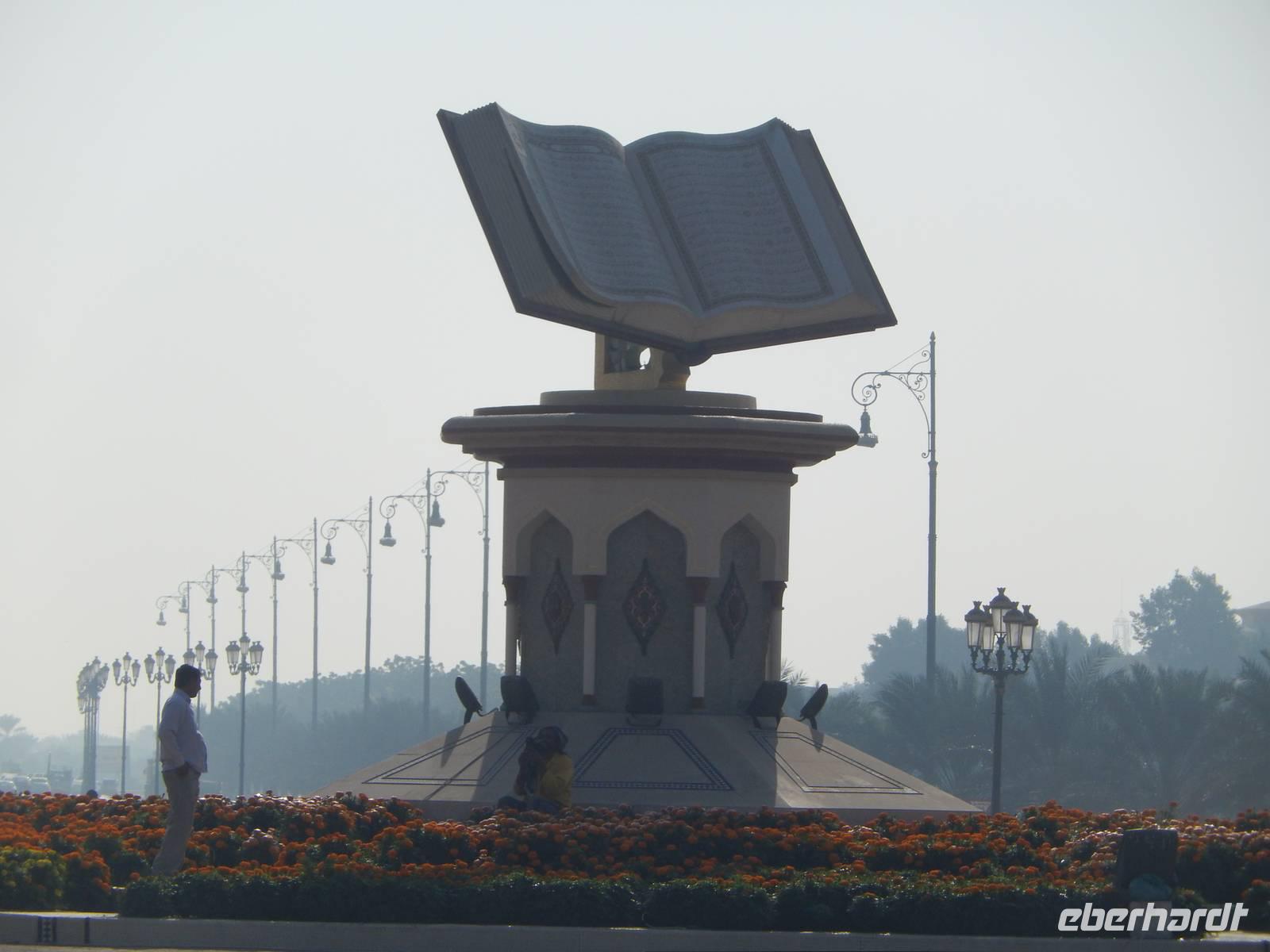 Heute reisen wir in das drittgrößte Emirat der Vereinigten Arabischen Emirate, nach Sharjah. Schnell fällt uns auf, dass Sharjah im Gegensatz zu Dubai und Abu Dhabi weniger aufwendig gestaltet ist. Auffällig sind hier vor allem die großzügigen Grünanlagen und die perfekt restaurierten islamischen Bauwerke. Bei einer Stadtrundfahrt lernen wir das Emirat näher kennen. Wir halten zuerst an der King Faisal Moschee und an dem wunderschönen Kreisverkehr mit seinem Koran, der viel für Tumult gesorgt hat wie wir von Anja erfahren. Unsere nächste Station ist heute der Fischmarkt. Hier erfahren wir allerlei Wissenswertes über die Landwirtschaft. Anja erzählt uns, dass in der Wüste natürlich nicht sonderlich viel wächst und der Großteil aller Obst - und Gemüsesorten exportiert wird. Wir erfahren auch, dass der Fischfang natürlich noch eine große Rolle in den Vereinigten Arabischen Emiraten spielt.