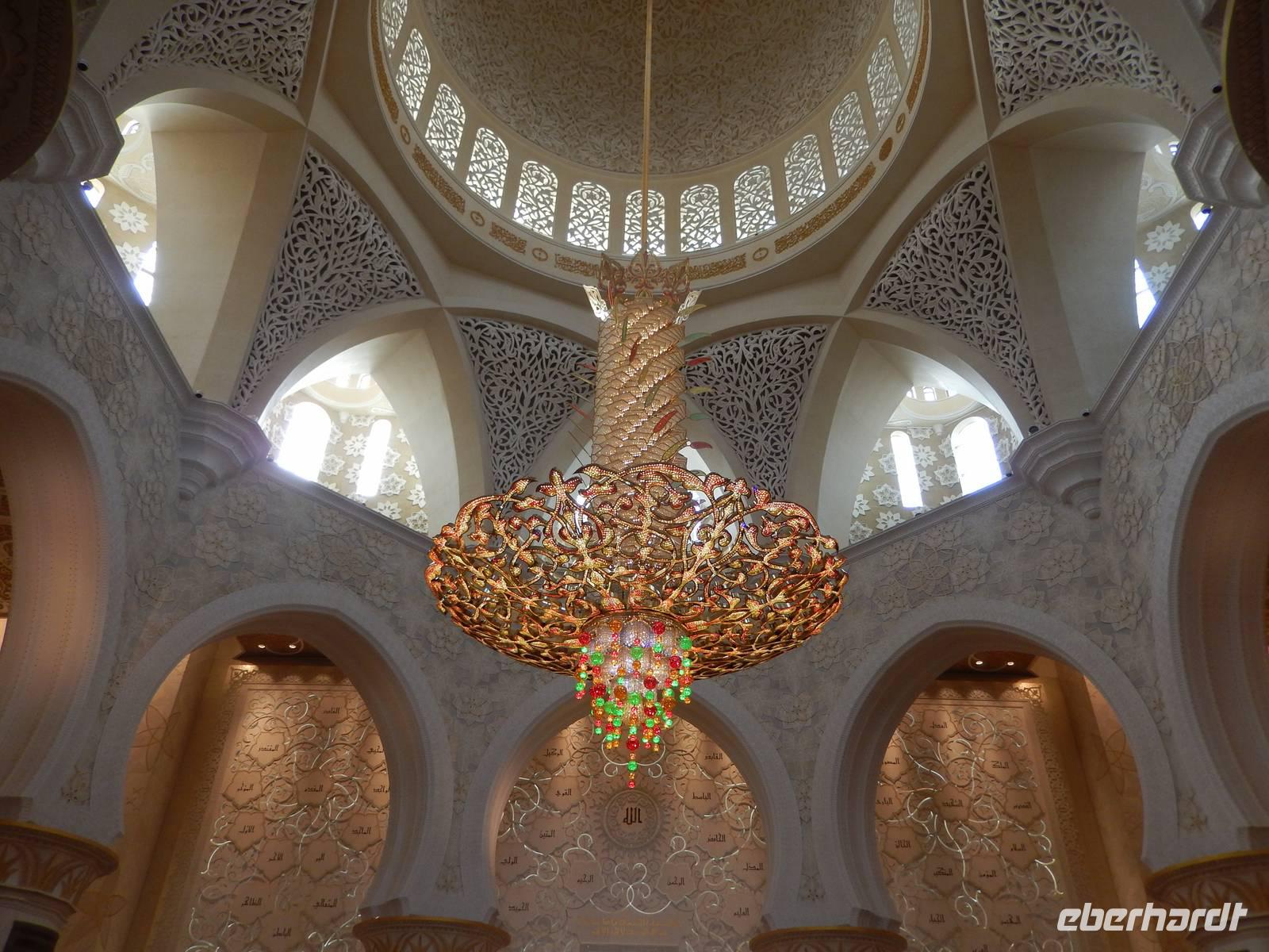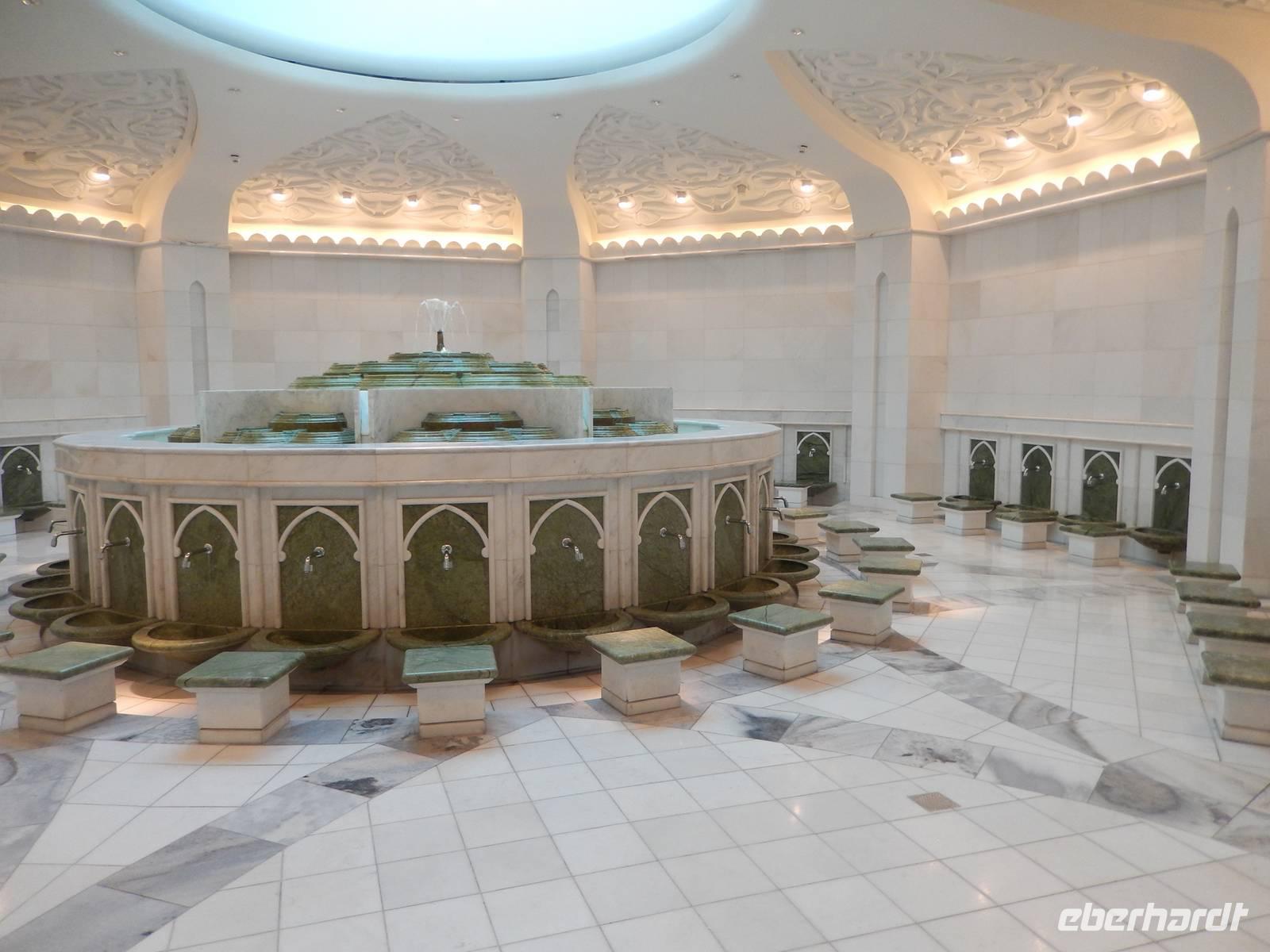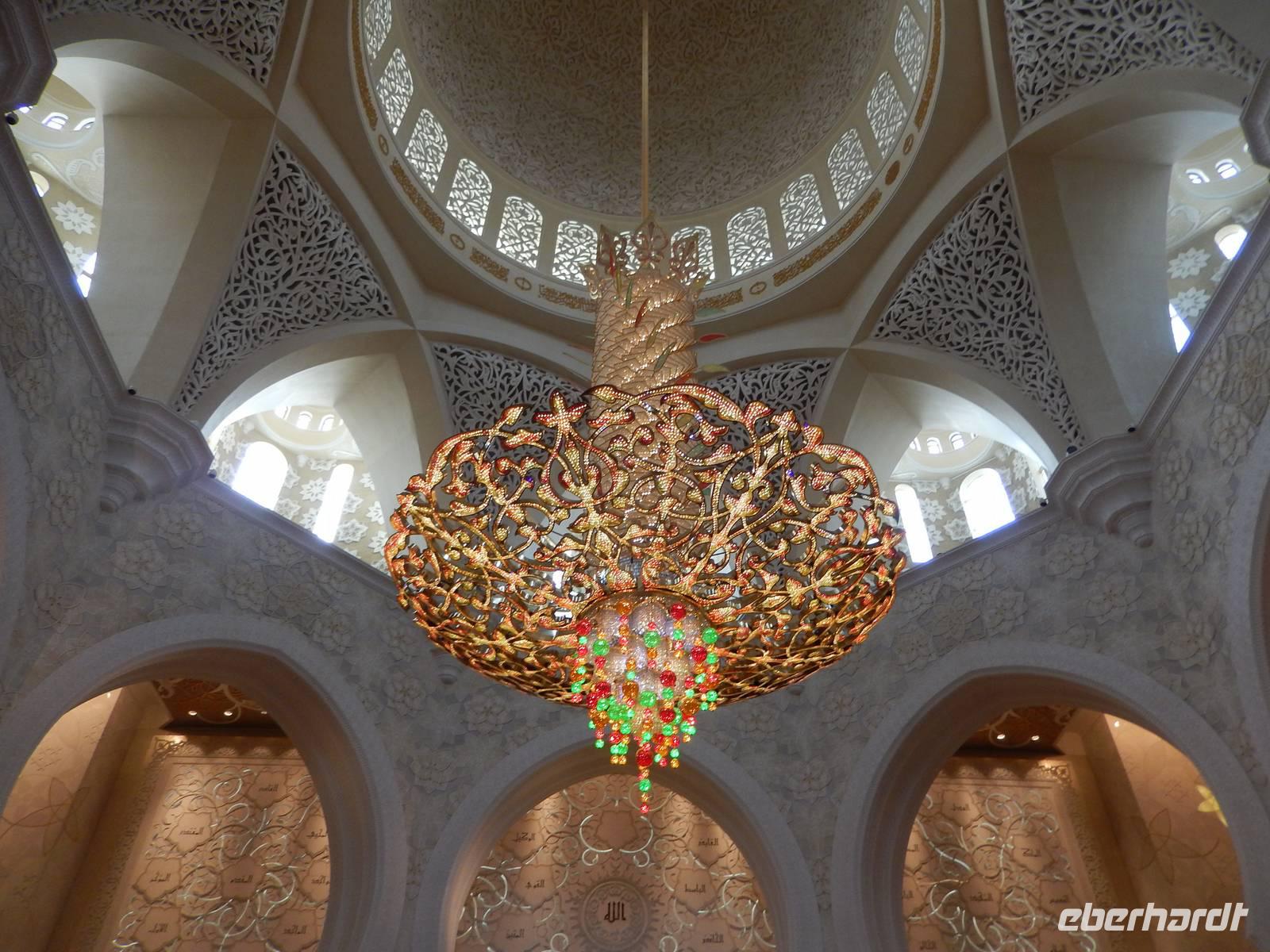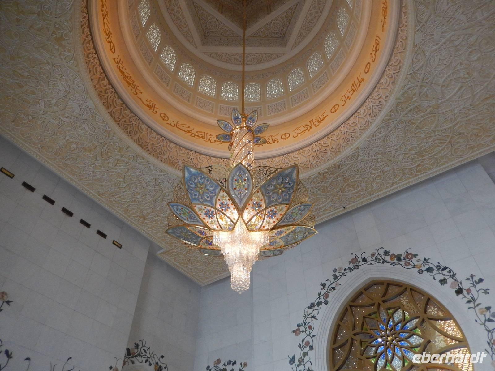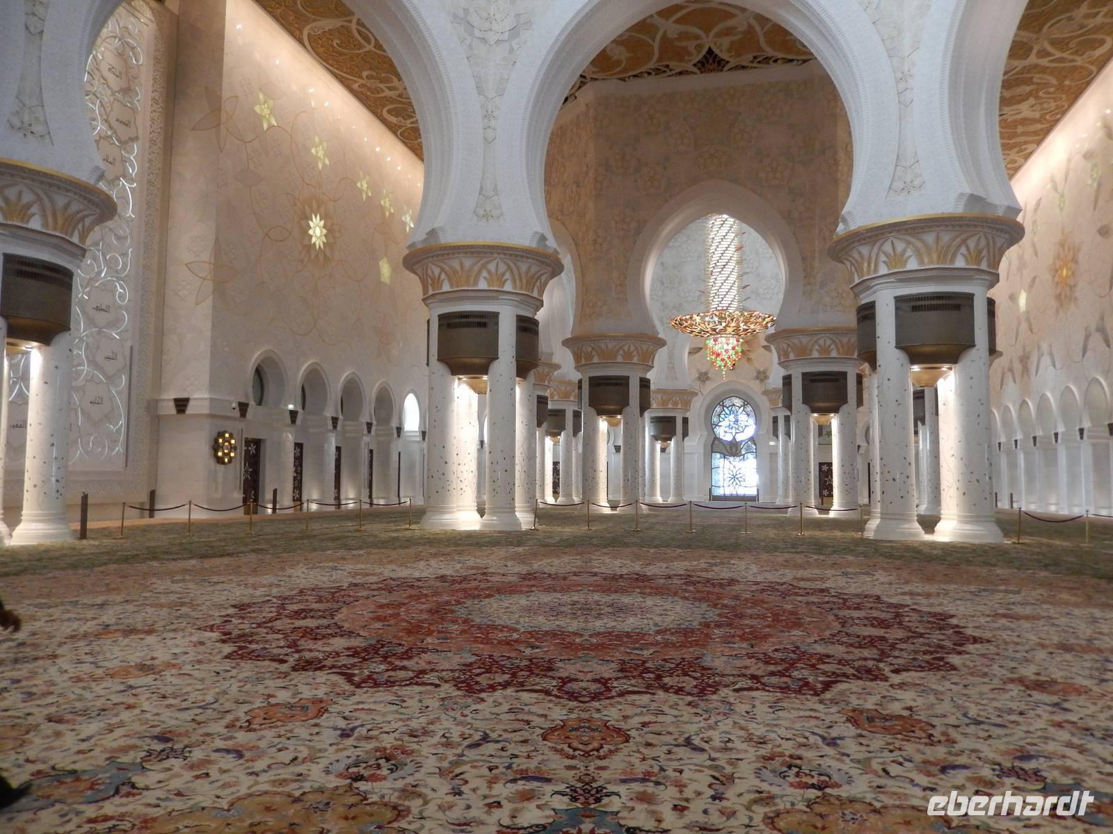 Heute reisen wir nach Abu Dhabi-Stadt, Hauptstadt und Regierungssitz der Vereinigten Arabischen Emirate. Abu Dhabi bedeckt eine flache Sandinsel, die mit dem Festland durch zwei Brücken verbunden ist. Uns fällt auf, dass hier vor allem üppige Grünflächen das Stadtbild prägen. Bevor wir aber in die Stadt hinein fahren, besuchen wir die Falkenklinik von Frau Dr. Müller und erleben eine ereignisreiche Führung mit Live Darbietungen. Am Arabischen Golf genießen die Falken eine ganz besondere Aufmerksamkeit. Wir sehen hier hautnah, wie einem Falken die Krallen geschnitten werden oder wie man deren Gedieder repariert. Auch dürfen wir selbst den Falken auf den Arm nehmen und schöne Fotos schießen. Ein wirkliches Erlebnis. Danach reisen wir weiter nach Yas Island. Ein 40 Milliarden teures Projekt entsteht hier auf der 25 Quadratkilometer großen Insel Yas mit einer Küstenlänge von 32 Kilometern bei Abu Dhabi Stadt. Hier sehen wir Abu Dhabis berühmte und spektakuläre Formel-1-Rennstrecke, die unter einer Brücke zwischen zwei Flügeln des Viceroy-Hotels verläuft. Daneben sehen wir zahlreiche Hotels, den Jachthafen, den Ferrari-Themenpark, den Warner Bros.-Themenpark sowie einen Wasserpark. Wieder fragen wir uns, wer diese Freizeitmöglichkeiten nutzen soll, denn auf Yas Island sahen wir so gut wie keine Menschenseele. Anschließend reisen wir weiter zum Heritage Village und zu einem Aussichtspunkt und sehen die beeindruckende Skyline von Abu Dhabi. Wir spüren das hier Alt und Neu ganz nah beieinander liegen.Danach konnten wir es kaum erwarten zum märchenhaften Luxushotel Emirates Palace zu kommen. Schon von Weitem staunen wir über das mächtige Anwesen und fühlen uns auf einmal ganz klein. Ein Eingangstor wie eine altarabische Zugbrücke, Springbrunnen und Freitreppen wie in einem französischen Schloss. Der Hotelpalast wird gekrönt von 114 Kuppeln und blattvergoldeten Fluren. Es wirkt wie eine Mischung aus Hagia Sophia und Tadsch Mahal, gleichermaßen großartig wie entrückt. Elegant und stilvoll. Bevor wir zu unserer Tesstunde mit allerlei Köstlichkeiten eingeladen sind, schauen wir uns noch ein wenig um. Schon etwas hungrig machten wir uns anschließend auf zu unserer Teestunde. Hier bekamen wir viel mehr serviert, als wir essen konnten. Leckere Törtchen mit ausgelesenen Früchten, hausgemachte Butter und Marmelade sowie köstliche Häppchen mit Lachs und anderen Spezialitäten. Dazu wurde uns ständig frisch gebrühter Kaffee oder Tee gereicht. Ein bisschen fühlten wir uns schon wie kleine Stars. So genossen wir unseren "High Tee" und hofften, dass die Zeit nicht all zu schnell vergeht. Danach geht es weiter zur Moschee. Es dauert nicht lang und und vor unseren Augen erhebt sich unübersehbar die mächtige Sheikh-Zayed-Moschee. Wir staunen über die drei riesigen Kuppeln, 79 kleinere Kuppeln, vier hohe Minarette sowie über die zahlreichen Nebengebäude und Arkaden. Die größte Moschee der Vereinigten Arabischen Emirate bietet Platz für 1000 Gläubige. Im Inneren bedeckt ein 5600 Quadratmeter großer und 47 Tonnen schwerer Teppich den Boden. So gehen wir hinein um uns selbst von dem prächtigen Bauwerk zu überzeugen. Natürlich gehört es dazu, dass wir alle unsere Schuhe ausziehen. Anja erklärte uns viel Wissenwertes über den Islam und seine Bräuche, welche wir in der Moschee schnell wiederfanden.