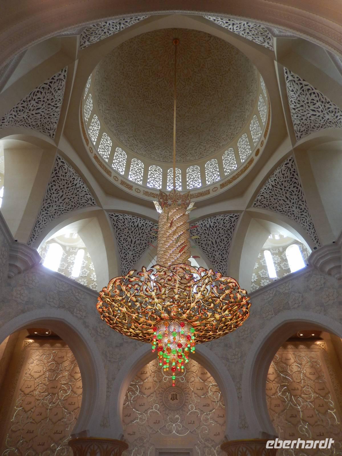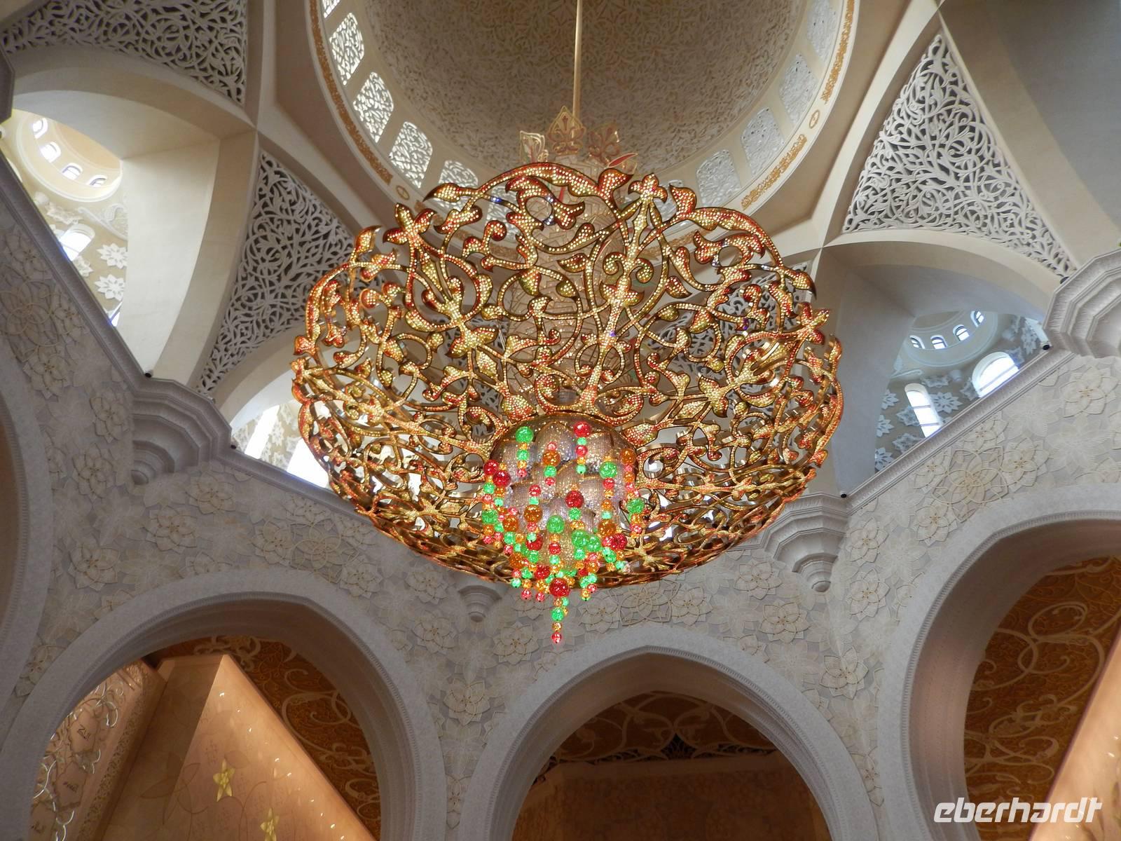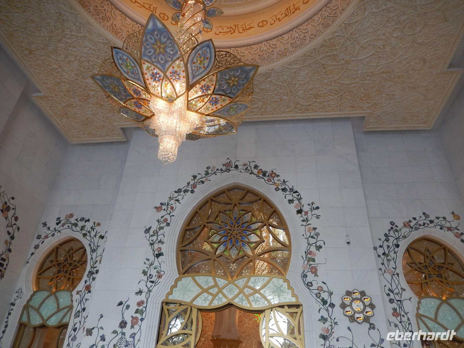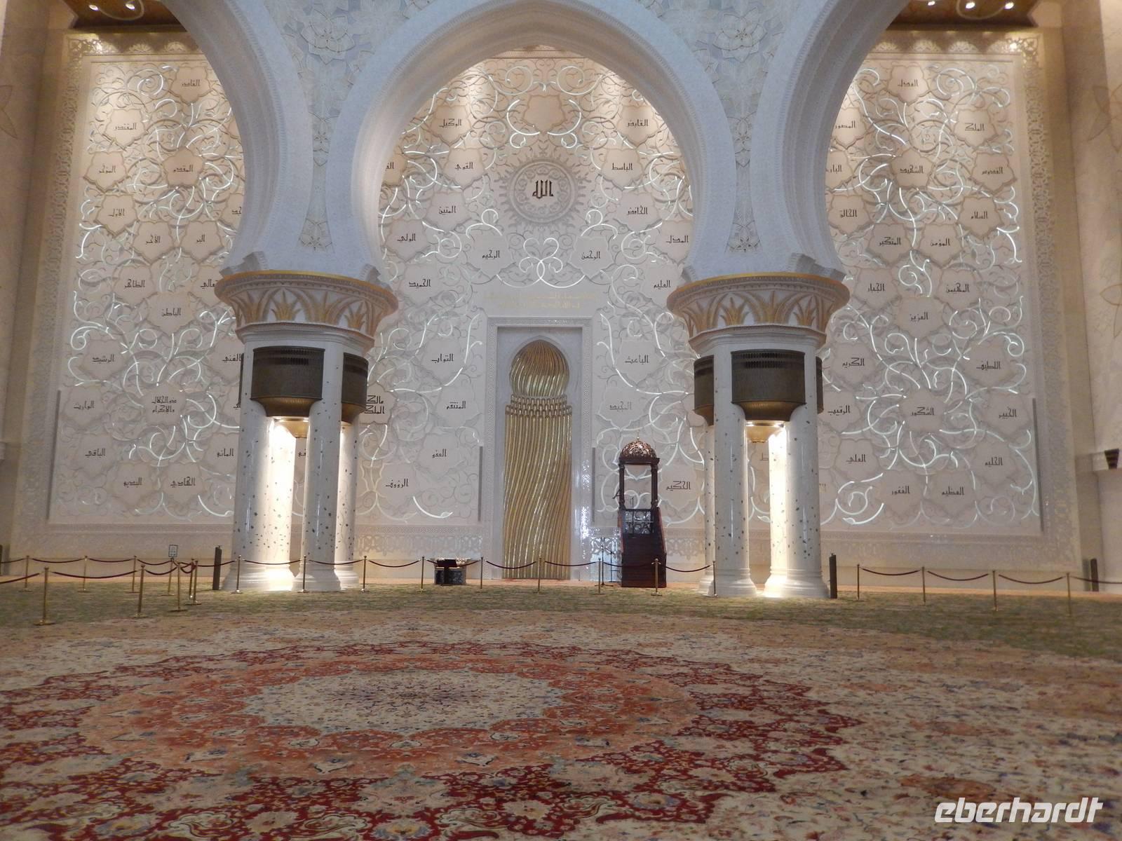 Heute reisen wir nach Abu Dhabi-Stadt, Hauptstadt und Regierungssitz der Vereinigten Arabischen Emirate. Abu Dhabi bedeckt eine flache Sandinsel, die mit dem Festland durch zwei Brücken verbunden ist. Uns fällt auf, dass hier vor allem üppige Grünflächen das Stadtbild prägen. Bevor wir aber in die Stadt hinein fahren, besuchen wir die Falkenklinik von Frau Dr. Müller und erleben eine ereignisreiche Führung mit Live Darbietungen. Am Arabischen Golf genießen die Falken eine ganz besondere Aufmerksamkeit. Wir sehen hier hautnah, wie einem Falken die Krallen geschnitten werden oder wie man deren Gedieder repariert. Auch dürfen wir selbst den Falken auf den Arm nehmen und schöne Fotos schießen. Ein wirkliches Erlebnis. Danach reisen wir weiter nach Yas Island. Ein 40 Milliarden teures Projekt entsteht hier auf der 25 Quadratkilometer großen Insel Yas mit einer Küstenlänge von 32 Kilometern bei Abu Dhabi Stadt. Hier sehen wir Abu Dhabis berühmte und spektakuläre Formel-1-Rennstrecke, die unter einer Brücke zwischen zwei Flügeln des Viceroy-Hotels verläuft. Daneben sehen wir zahlreiche Hotels, den Jachthafen, den Ferrari-Themenpark, den Warner Bros.-Themenpark sowie einen Wasserpark. Wieder fragen wir uns, wer diese Freizeitmöglichkeiten nutzen soll, denn auf Yas Island sahen wir so gut wie keine Menschenseele. Anschließend reisen wir weiter zum Heritage Village und zu einem Aussichtspunkt und sehen die beeindruckende Skyline von Abu Dhabi. Wir spüren das hier Alt und Neu ganz nah beieinander liegen.Danach konnten wir es kaum erwarten zum märchenhaften Luxushotel Emirates Palace zu kommen. Schon von Weitem staunen wir über das mächtige Anwesen und fühlen uns auf einmal ganz klein. Ein Eingangstor wie eine altarabische Zugbrücke, Springbrunnen und Freitreppen wie in einem französischen Schloss. Der Hotelpalast wird gekrönt von 114 Kuppeln und blattvergoldeten Fluren. Es wirkt wie eine Mischung aus Hagia Sophia und Tadsch Mahal, gleichermaßen großartig wie entrückt. Elegant und stilvoll. Bevor wir zu unserer Tesstunde mit allerlei Köstlichkeiten eingeladen sind, schauen wir uns noch ein wenig um. Schon etwas hungrig machten wir uns anschließend auf zu unserer Teestunde. Hier bekamen wir viel mehr serviert, als wir essen konnten. Leckere Törtchen mit ausgelesenen Früchten, hausgemachte Butter und Marmelade sowie köstliche Häppchen mit Lachs und anderen Spezialitäten. Dazu wurde uns ständig frisch gebrühter Kaffee oder Tee gereicht. Ein bisschen fühlten wir uns schon wie kleine Stars. So genossen wir unseren "High Tee" und hofften, dass die Zeit nicht all zu schnell vergeht. Danach geht es weiter zur Moschee. Es dauert nicht lang und und vor unseren Augen erhebt sich unübersehbar die mächtige Sheikh-Zayed-Moschee. Wir staunen über die drei riesigen Kuppeln, 79 kleinere Kuppeln, vier hohe Minarette sowie über die zahlreichen Nebengebäude und Arkaden. Die größte Moschee der Vereinigten Arabischen Emirate bietet Platz für 1000 Gläubige. Im Inneren bedeckt ein 5600 Quadratmeter großer und 47 Tonnen schwerer Teppich den Boden. So gehen wir hinein um uns selbst von dem prächtigen Bauwerk zu überzeugen. Natürlich gehört es dazu, dass wir alle unsere Schuhe ausziehen. Anja erklärte uns viel Wissenwertes über den Islam und seine Bräuche, welche wir in der Moschee schnell wiederfanden.