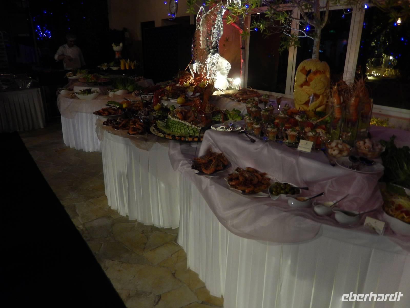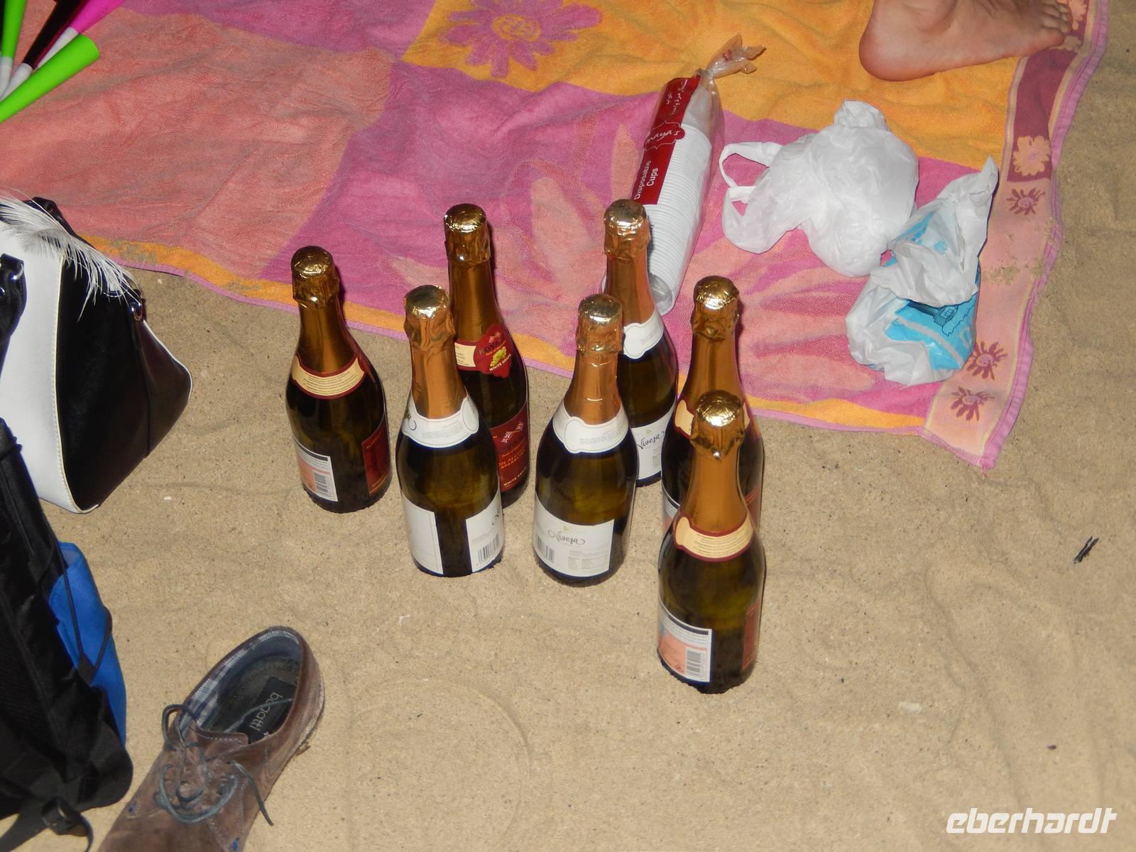 Nach diesem wirklich eriegnisreichen Tag war es nun aber höchste Zeit, dass wir in unser Hotel zurückkehren um uns für unsere Silvesterfeier hübsch zurecht zu machen. Gegen 20:00 Uhr trafen wir uns im wunderbar hergerichteten Al Khaima Saal des Hotels. Hier bekamen die Herren einen Zylinder und die Frauen einen wunderschönen Feder-Haarreif. Gemütlich tranken wir das ein oder andere Glas Wein oder Bier und ließen uns kurze Zeit später das köstliche Galabuffet schmecken. Die Zeit verging wie im Flug und so machten wir uns anschließend auf zum Strand, denn wir wollten ja nicht das Feuerwerk am Burj Khalifa verpassen. Vicky hatte mit Anja noch einige Flaschen Sekt besorgt und wurde im Hotel und im Bus schon etwas schräg angschaut aber der Sekt war natürlich alkoholfrei. Pünktlich gegen 22:30 Uhr erreichten wir unseren Strandabschnitt, wo wir uns mit Handtüchern in den Sand setzten und auf das Feuerwerk warteten. Der Burj Khalifa war direkt vor unseren Augen und so konnten wir um 00:00 Uhr das tolle Feuerwerk in vollen Zügen genießen. Auch unser Busfahrer Omar feierte mit uns und der Sekt schmeckte doch am Ende gar nicht so schlecht oder? Wer hätte das gedacht, dass wir bei 25 Grad einmal Silvester feiern? Trotzdem stellten wir fest, dass in Dubai nicht ganz so gefeiert wird wie es in Deutschland der Brauch ist. Auf den Straßen gibt es weder ein Feuerwerk, noch Silvesterknaller. So machten wir uns anschließend auf zurück zu unserem Hotel, wo wir gegen 02:00 Uhr ankamen. Im Bus bekam jeder Gast noch ein kleines Kamel als Glücksbringer für das Neue Jahr. Einige feierten noch im Hotelpub weiter oder suchten die Nachtruhe. Prosit Neujahr!