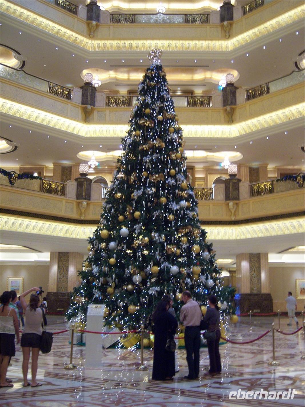 Heute reisen wir nach Abu Dhabi-Stadt, Hauptstadt und Regierungssitz der Vereinigten Arabischen Emirate. Die Stadt bedeckt eine flache Sandinsel, die mit dem Festland durch zwei Brücken verbunden ist. Uns fällt auf, dass hier vor allem üppige Grünflächen das Stadtbild prägen. Es dauert nicht lang und und vor unseren Augen erhebt sich unübersehbar die mächtige Sheikh-Zayed-Moschee. Wir staunen über die drei riesigen Kuppeln, 79 kleinere Kuppeln, vier hohe Minarette sowie über die zahlreichen Nebengebäude und Arkaden. Die größte Moschee der Vereinigten Arabischen Emirate bietet Platz für 1000 Gläubige. Im Inneren bedeckt ein 5600 Quadratmeter großer und 47 Tonnen schwerer Teppich den Boden. So gehen wir hinein um uns selbst von dem prächtigen Bauwerk zu überzeugen. Natürlich gehört es dazu, dass die Frauen sich verschleiern und wir alle unsere Schuhe ausziehen. So schwungen wir uns in unsere "Abayas" und die Männer hatten so Ihre Schwierigkeiten Ihre Frauen wiederzufinden. Martina erklärte uns im Vorhinein viel Wissenwertes über den Islam und seine Bräuche, welche wir in der Moschee schnell wiederfanden.Nach diesem ersten Höhepunkt des Tages fuhren wir gespannt weiter zum Heritage Village. Das Freilichtmuseum bietet uns einen Souk, dessen Werkstätten uns in die Kunst altarabischer Holz-, Metall- und Webarbeiten einführen. Aber vor allem begeistert uns hier der Blick auf die einzigartige Skyline von Dubai und wir spüren das hier Alt und Neu ganz nah beieinander liegen. Nach einigen Einkäufen in der Abu Dhabi Marina Mall konnten wir es kaum erwarten zum märchenhaften Luxushotel Emirates Palace zu kommen. Schon von Weitem stauen wir über das mächtige Anwesen und fühlen uns auf einmal ganz klein. Ein Eingangstor wie eine altarabische Zugbrücke, Springbrunnen und Freitreppen wie in einem französischen Schloss. Der Hotelpalast wird gekrönt von 114 Kuppeln und blattvergoldeten Fluren. Es wirkt wie eine Mischung aus Hagia Sophia und Tadsch Mahal, gleichermaßen großartig wie entrückt. Elegant und stilvoll.Bevor wir zu unserer Tesstunde mit allerlei Köstlichkeiten eingeladen sind, zeigt uns Martina im Inneren noch eine Ausstellung über die neuen Projekte, die auf Abu Dhabi?s vorgelagerter Insel Saadiyat Island in den nächsten Jahren entstehen sollen. Ein Sheikh-Zayed-Museum, ein Guggenheim Museum sowie der Louvre sollen den kulturellen Teil der Insel ausmachen.Immer wieder fragen wir uns, gibt es denn überhaupt soviele Menschen für diese zahlreichen Sehenswürdigkeiten? Aber auch hier geht es darum, Aufmerksamkeit zu erregen und immer wieder mit Neuem zu überraschen. So überlegen sich doch einige von uns, noch einmal wiederzukommen und wir schmieden erste Pläne. Schon etwas hungrig machten wir uns nun auf zu unserer Teestunde. Hier bekamen wir viel mehr serviert, als wir essen konnten. Leckere Törtchen mit ausgelesenen Früchten, hausgemachte Butter und Marmelade sowie köstliche Häppchen mit Lachs und anderen Spezialitäten. Dazu wurde uns ständig frisch gebrühter Kaffee oder Tee gereicht. Ein bisschen fühlten wir uns schon wie kleine Stars. So genossen wir unseren "High Tee" und hofften, dass die Zeit nicht all zu schnell vergeht.Nach diesem Schmaus hatten wir noch ein wenig Zeit um uns umzusehen. Besonders staunten wir über den elf Millionen teuren Weihnachtsbaum, welcher sich im Foyer des Luxushotels befindet. Nur bei genauerem Hinsehen erkent man die Diamanten Colliers, die den Baum zieren. Der Baum wird streng von zahlreichen Sicherheitsbeamten bewacht, so dass wir keine Möglichkeit haben die Schmuckstücke aus nächster Nähe zu betrachten. So machten wir uns auf dem Weg nach draußen um uns für ein Gruppenfoto aufzustellen, welches diesen einzigartigen Moment festhalten sollte. Auf einen Höhepunkt folgte heute gleich der Nächste. So reisen wir weiter nach Yas Island. Ein 40 Milliarden teures Projekt entsteht hier auf der 25 Quadratkilometer großen Insel Yas mit einer Küstenlänge von 32 Kilometern bei Abu Dhabi Stadt. Hier sehen wir Abu Dhabis berühmte und spektakuläre Formel-1-Rennstrecke, die unter einer Brücke zwischen zwei Flügeln des Yas-Hotels verläuft. Daneben sehen wir zahlreiche Hotels, den Jachthafen, den Ferrari-Themenpark, den Warner Bros.-Themenpark sowie einen Wasserpark. Wieder fragen wir uns, wer diese Freizeitmöglichkeiten nutzen soll, denn auf Yas Island sahen wir so gut wie keine Menschenseele.Nach diesem ereignisreichen Tag fuhren wir anschließend zurück nach Dubai und konnten bei unserer Fahrt das Lichtermeer der Sheikh Zayed Road bewundern. In unserem Hotel angekommen, genossen wir im Restaurant Bastakyia ein wunderbares Abendessen bevor wir alle mit zahlreichen Eindrücken in unsere Betten fielen.