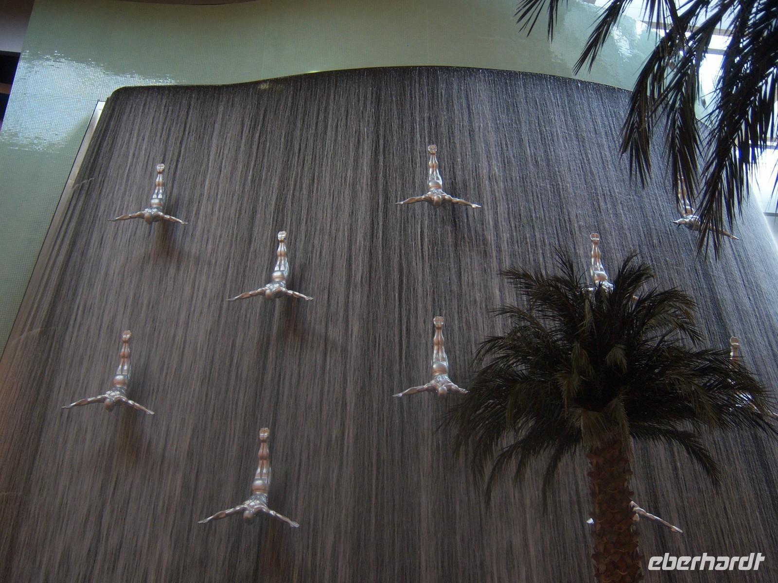 Der letzte Tag des Jahres steht heute ganz im Zeichen des Modernen Dubai. Heute fahren wir entlang der Sheikh Zayed Road zuerst zum Dubai Financial Centre und können die riesiegen Hochhäuser aus nächster Nähe betrachten. Vorbei am Burj Khalifa sowie am Burj al Arab reisen wir anschließend weiter zur Dubai Marina. Sie entstand an einer vier Kilometer langen künstlichen Lagune. Hier wurden neben dem Yachthafen - Hotels, Parks, Supermärkte, Bürogebäude und Wohnhäuser gebaut. Mit durchschnittlichen Höhen von um die 150 Meter fühlt man sich hier ein wenig an Hongkong oder Manhattan erinnert. So bummeln wir entspannt entlang der Lagune.Als Nächstes erwartet uns heute The Palm Jumeirah - die Palme. An der Küste von Jumeirah erstreckt Sie sich 4,5 Kilometer ins Meer und ist die Erste von mehreren künstlichen Inseln, die fertiggestellt wurde. Über eine Brücke gelangen wir auf den Stamm der Insel. Auf den insgesamt 16 Wedeln stehen ziemlich dicht nebeneinander Häsuer und Villen, die zu den begehrtesten Immobilien des Emirats gehören. Martina erzählt uns, dass noch nicht alle der Häuser und Villen verkauft sind, so dass man diese teilweise zu sehr guten Preisen erwerben kann. Ein beinahe kreisförmiges, 150 Meter kreisförmiges Riff aus Sand und Steinen soll die Insel vor dem zerstörerischen Einfluss eines ungebremst anbrandenden Meeres schützen. Wir sehen, dass die Palme weitestgehend fertig gestellt ist, aber einige Baustellen doch noch zu bewältigen sind. Neben dieser Palme sollen noch zwei weitere geschaffen werden. Allerdings wurden diese Pläne aufgrund der Wirtschaftskrise erst einmal auf Eis gelegt. Am Scheitelpunkt der Palme kommen wir am spektakulären Themenhotel Atlantis an. Ein gewaltiger rosfarbener Palast, der mit seiner Gestaltung Assoziationen an versunkene Unterwasserwelten wecken will. Leider haben Nicht-Hotelgäste keinen Zutritt aber so schießen wir unsere Fotos zumindest von außen.Martina führt uns noch weiter auf dem Außenring der Palme entlang und so können wir noch atemberaubende Fotos von der Skyline von Dubai schießen. Die Sicht war einfach super!Nach diesen einzigartigen Erlbenissen erwartete uns kurze Zeit später die Dubai Mall, in der Nähe des Burj Khalifa gelegen.Sie beherbergt über 1200 Geschäfte. Martina erklärt uns alles ganz genau, so dass wir uns gut zurecht finden konnten. So erkunden wir die Mall auf eigene Faust. Wir sehen das legendäre Dubai Aquarium, in dem sich 33 000 Meerestiere tummeln. Durch einen Tunnel ergeben sich weitere Einblicke in die Unterwasserwelt. Am Nachmittag erwartet uns noch ein ganz besonderer Höhepunkt dieser wunderschönen Reise: Das von dem US-amerikanischen Architekten Adrian Smith entworfene neue Wahrzeichen Dubais, mit 828 Metern das höchste Gebäude der Welt, der legendäre Burj Kahlifa.Schon oft haben wir Ihn auf unserer Reise gesehen, aber erst aus nächster Nähe zeigt er uns seine spektakuläre Größe. Wie eine Rakete ragt der sich nach oben verjüngende Turm am Beginn der Sheikh Zayed Road in den Himmel.So fahren wir mit einem etwas mulmigen Gefühl mit dem Fahrstuhl in einer Minute, in 10 Metern pro Sekunde, nach oben bis zur 124. Etage, die sich auf 442 Metern Höhe befindet. Hier oben angekommen wurde vielen von uns schon etwas anders. Die 360-Grad-Plattform ist wandhoch verglast und hat Zugang zu einem offenen Balkon, von dem aus wir den einmaligen Ausblick genießen. Dieses Erlebnis werden wir sicher noch lange in unseren Köpfen tragen! Wieder sicher unten auf dem Erdboden angekommen erwartet uns zum Ende des Jahres noch ein besonderes Ereignis. Burj Khalifa ist auch das Zentrum des neu geschaffenen Stadtteils Downtown Burj Khalifa, zu dem ein künstlicher See mit der 150 Meter hohen Dubai Fountaingehört. Hier erfreuen wir uns an dem abendlich in regelmäßigen Abständen stattfindenden Licht - und Wasserspiel, welches uns hervorragend auf unseren Silvesterabend einstimmt. Untermalt von klassischer und arabischer Musik, tanzen Wasserfontänen, in Szene gesetzt von Tausenden von Lichtern. Ein herrliches Schauspiel! Nach diesem wirklich eriegnisreichen Tag war es nun aber höchste Zeit, dass wir in unser Hotel zurückkehren um uns für unsere Silvesterfeierhübsch zurecht zu machen. Gegen 20:30 Uhr trafen wir uns im wunderbar hergerichteten Al Khaima Saal des Hotels. Das Motto lautete Black and White - Schwarz und Weiß - und so bekamen die Herren einen schwarzen Zylinder und die Frauen einen wunderschönen Feder-Haarreif. Gemütlich tranken wir das ein oder andere Glas Wein oder Bier und ließen uns kurze Zeit später das köstliche Galabuffet schmecken. Sogar ein Gewinnspiel gab es und das Lustige war, dass fast jeder von uns etwas gewann. Dazu muss man sagen, dass die Gewinne alle etwas mit Aktivitäten im Hotel oder in Dubai zu tun hatten. So gewannen wir Wüstensafaris, Massagen im Hotel oder verschiedene Essen im Hotel. Martina freut sich somit am nächsten Tag über die Geschenke Aber vielleicht war es auch ein Anreiz um im Neuen Jahr noch einmal wiederzukommen oder Bekannten und Verwandten von der Reise zu erzählen und Sie einzuladen zu einer Safari. Die Zeit verging wie im Flug und so spendierte Eberhardt pünktlich um 24:00 Uhr jedem ein Glas Sekt und wir begrüßten feierlich das Neue Jahr in Dubai. Wer hätte das gedacht, dass wir bei 25 Grad einmal Silvester feiern? Trotzdem stellten wir fest, dass in Dubai nicht ganz so gefeiert wird wie es in Deutschland der Brauch ist. Auf den Straßen gibt es weder ein Feuerwerk, noch Silvesterkanaller. Lediglich am Burj al Arab und am Burj Khalifa konnte man dieses Schauspiel bewundern. Doch das tat unserer Stimmung keinerlei Abbruch und so feierten wir noch bis in die frühen Morgenstunden. Prosit Neujahr!