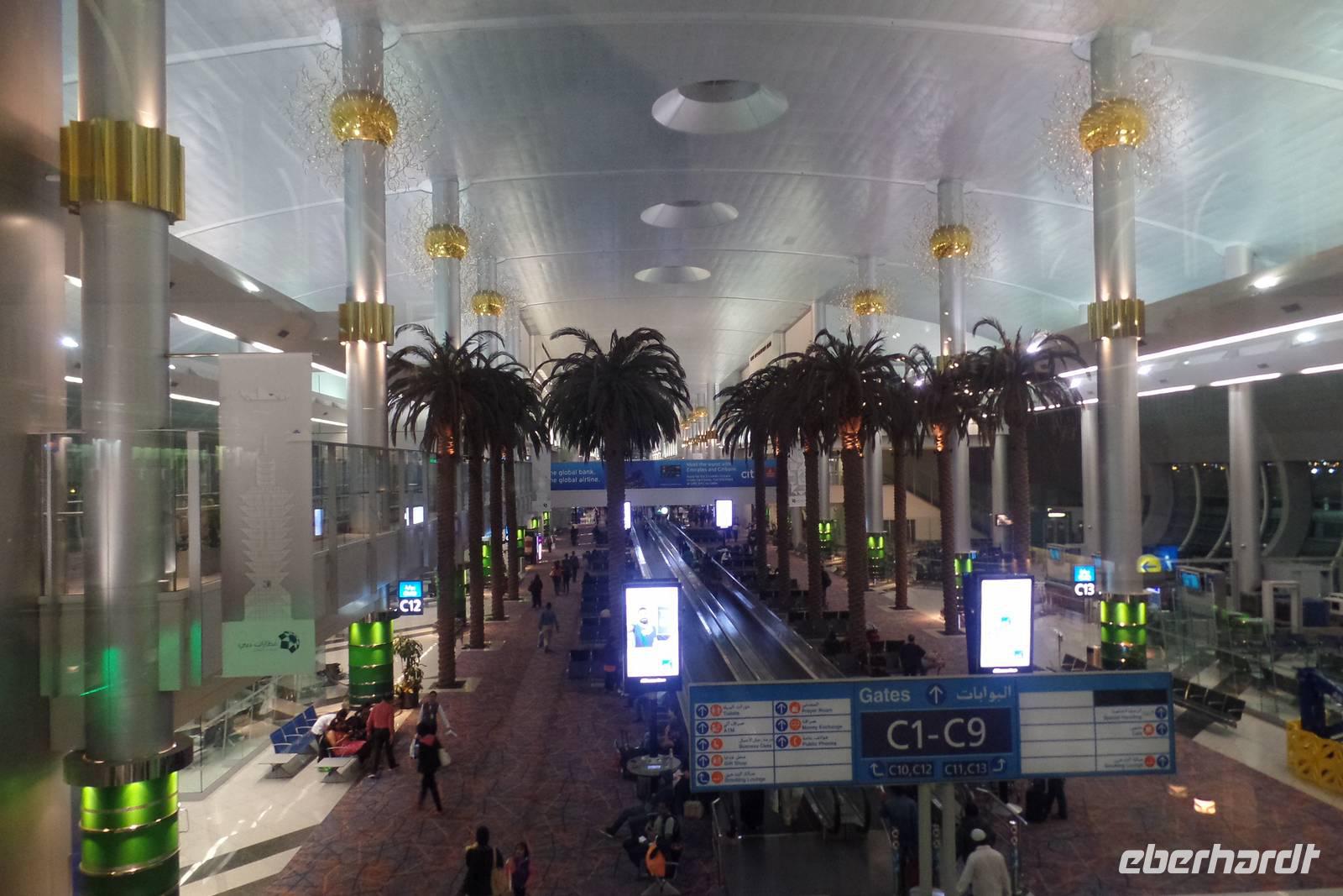 Zu einer gemütlichen Zeit am 2. Weihnachtsfeiertag machten wir uns auf, um unsere jeweiligen Flughäfen zu erreichen. Ob Leipzig, Dresden, Düsseldorf oder Frankfurt, von überall her kamen die Gäste. Am Flughafen Frankfurt trafen wir uns dann zum allerersten Mal gemeinsam und bestiegen auch gleich schon unseren Flieger Richtung Vereinigte Arabische Emirate. Es war ein sehr ruhiger Flug und durch Essen, Trinken und Entertainment-Programm vergingen die 6 Stunden auch recht schnell.