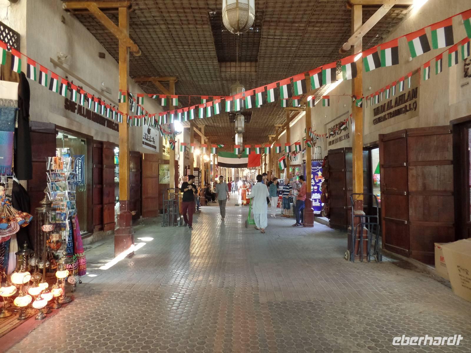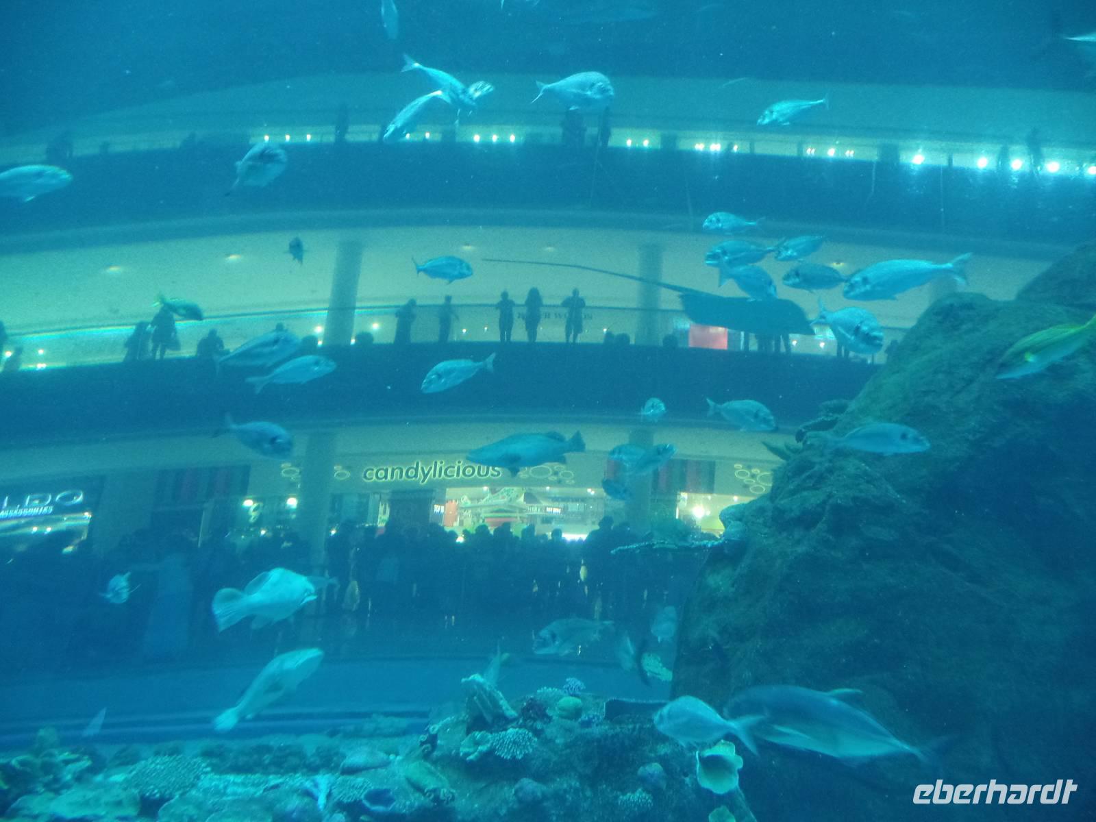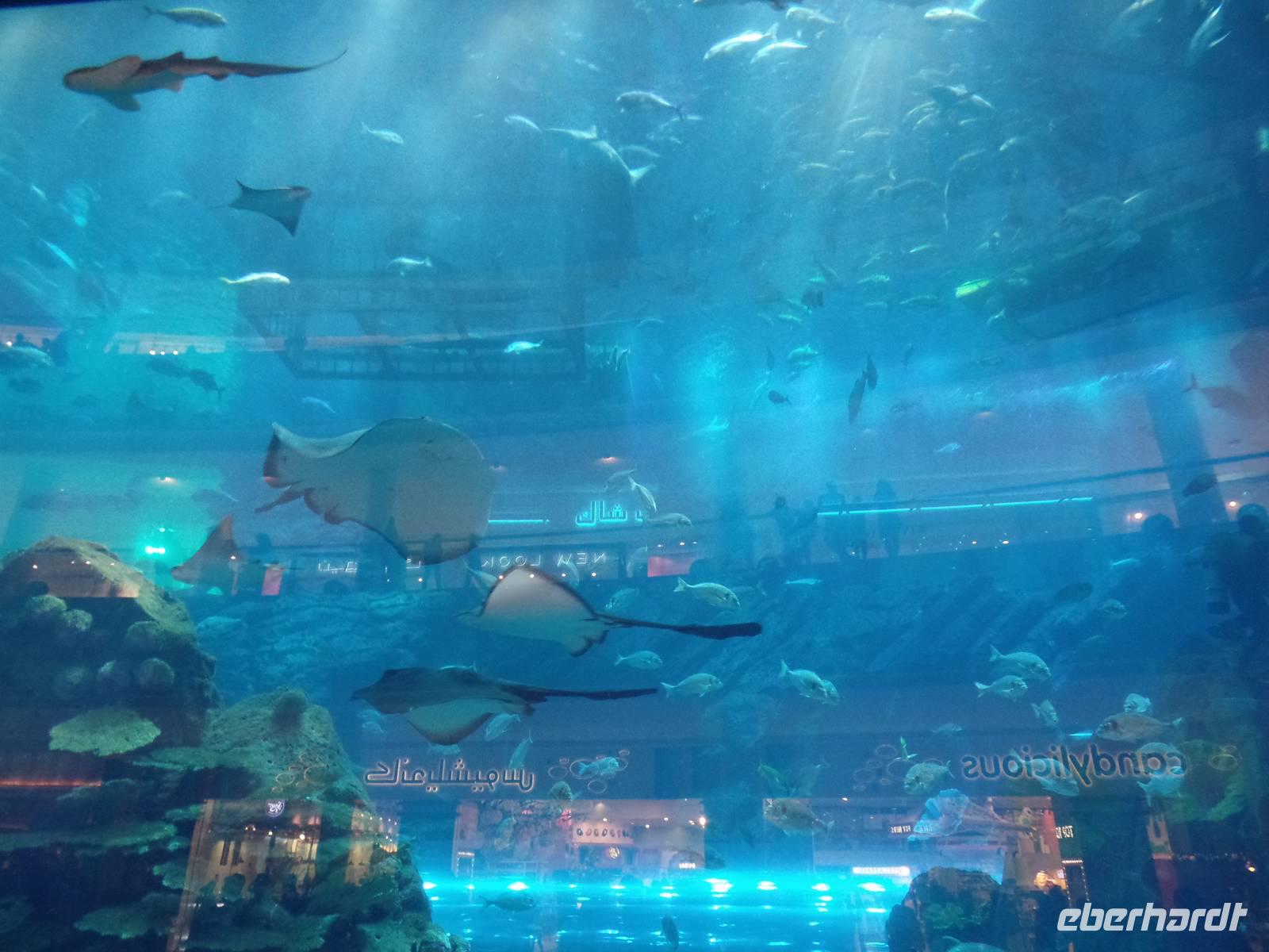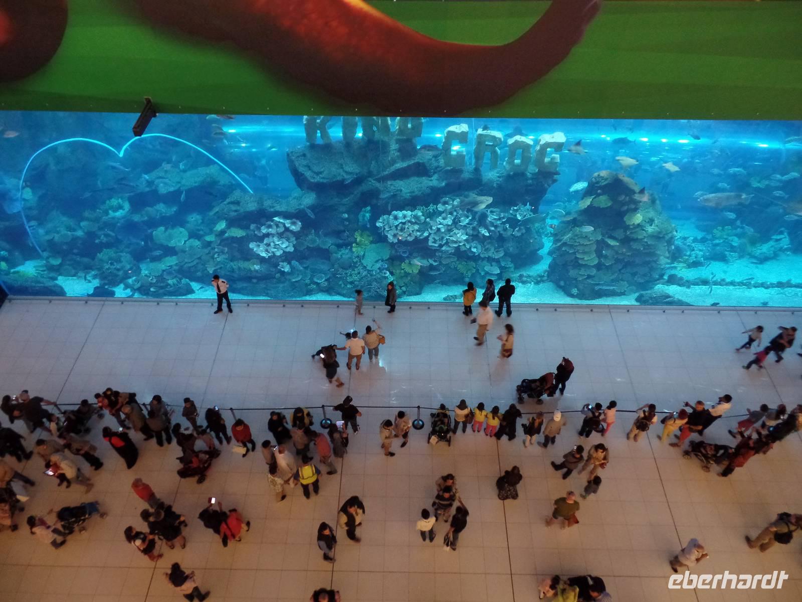Nach einem ausgiebigen ersten Frühstück, starteten wir direkt vor unserem Hotel. Anlaufpunkt war das Dubai Museum direkt vor den Füßen unseres Hotels. Das Museum ist deutlich interessanter als manch anderes Museum. Mit vielen Bildern und authentischen Eindrücken wird dem Besucher die kurze Geschichte des Emirats Dubai auf eine ganz besondere Art und Weise näher gebracht. Nun ging es zu Fuß über die Souks des Alten Dubais, angefangen bei Souk für Textilien bis hin zum Souk für Gewürze und dem Goldsouk, welcher den Abschluss bildete. Zwischen den beiden Souks nutzten wir den hiesigen ÖPNV, welcher uns, hier in Form eines Wassertaxis, von dem Textilmarkt zum Gewürzmarkt brachte. Für den einen oder anderen fanden sich Gewürze für zu Hause oder kleine Andenken in Form einer Glasfigur des Burj al Arab oder Burj Khalifa. Nach den ersten Kilometern zu Fuß holte uns dann unser Bus ab, welcher uns zur Dubai Mall brachte. Hier angekommen nahmen wir erst eine Kleinigkeit zu uns, ehe wir unseren Weg durch das riesige Kaufhaus fortsetzen. Beginnend mit dem Zoo, in welchem Pinguine, Krokodile und viele andere Tiere leben, begaben wir uns weiter durch den Tunnel des Aquariums. Hier hatten wir einen tollen Blick auf Haie, Rochen und mutige Taucher.