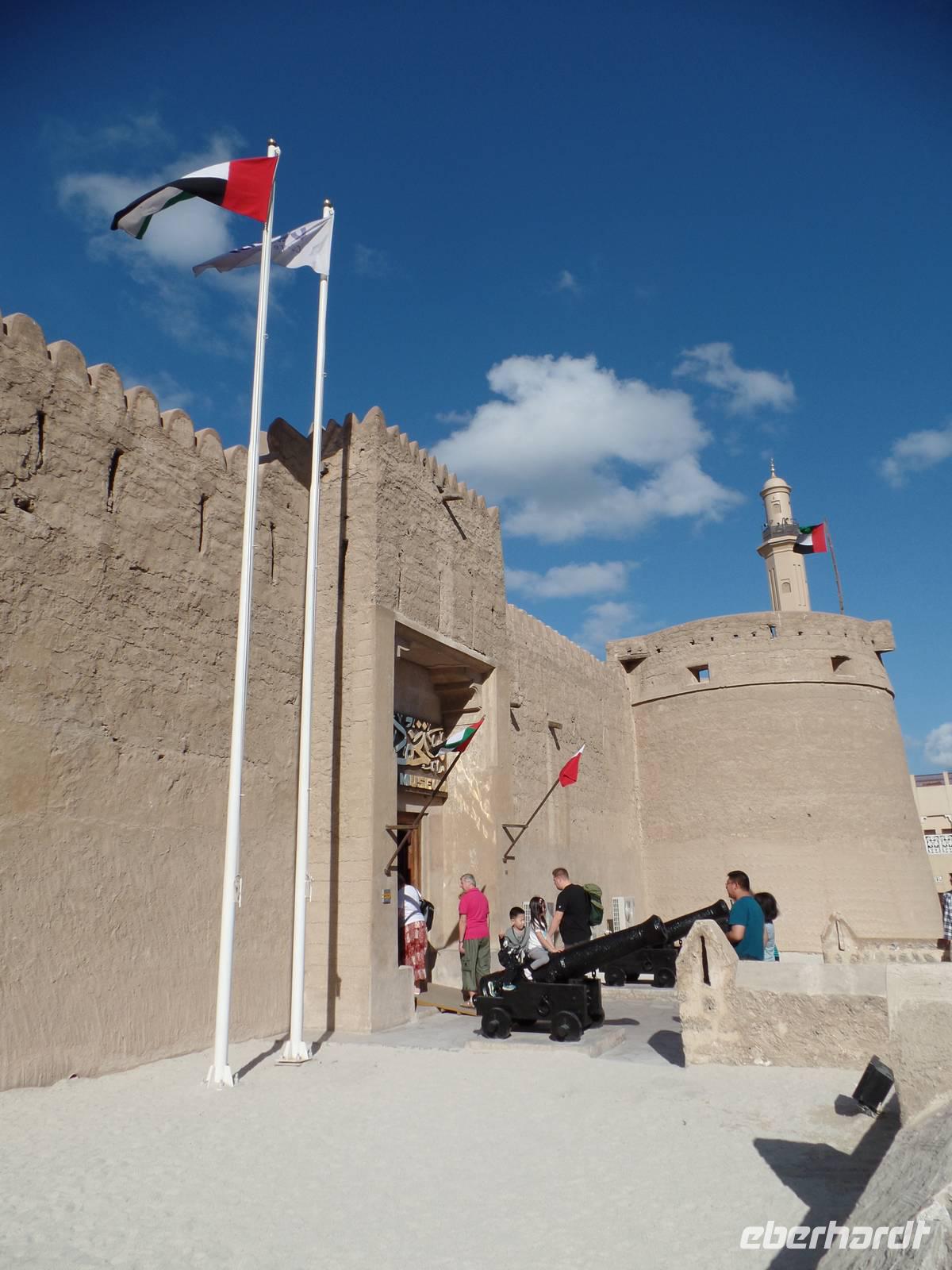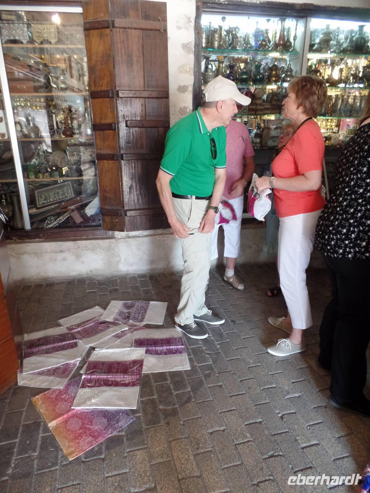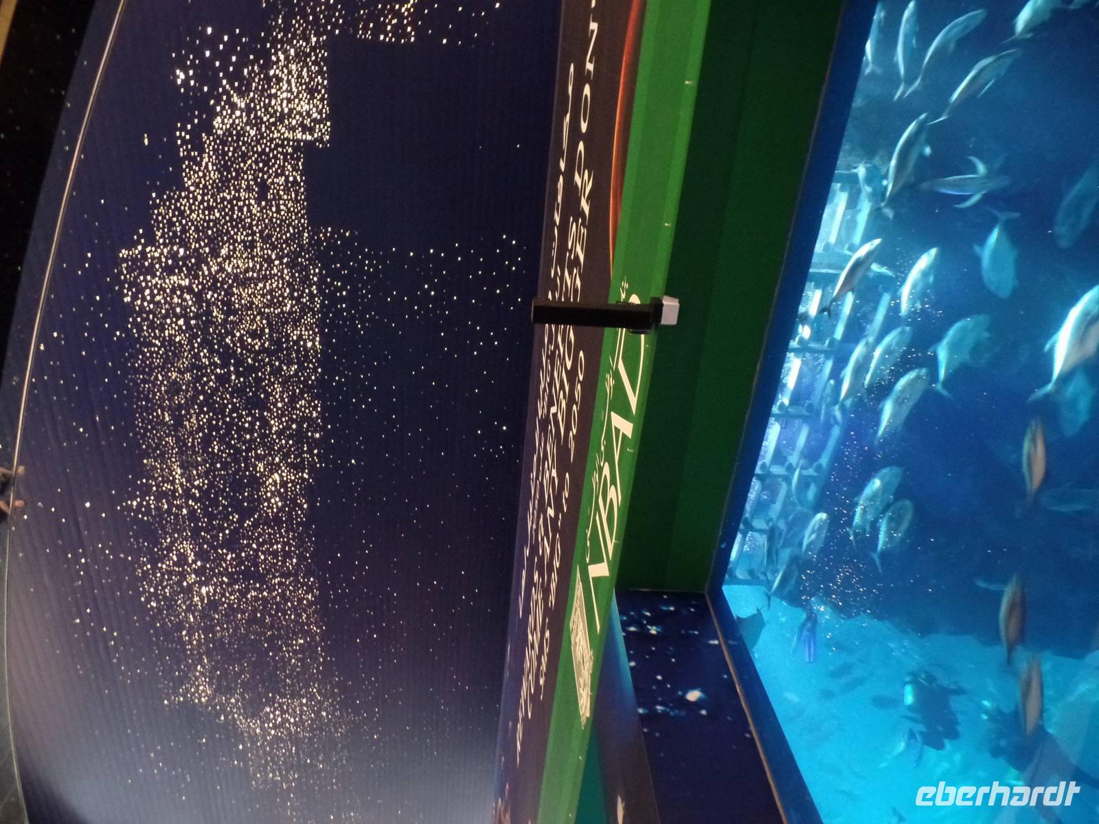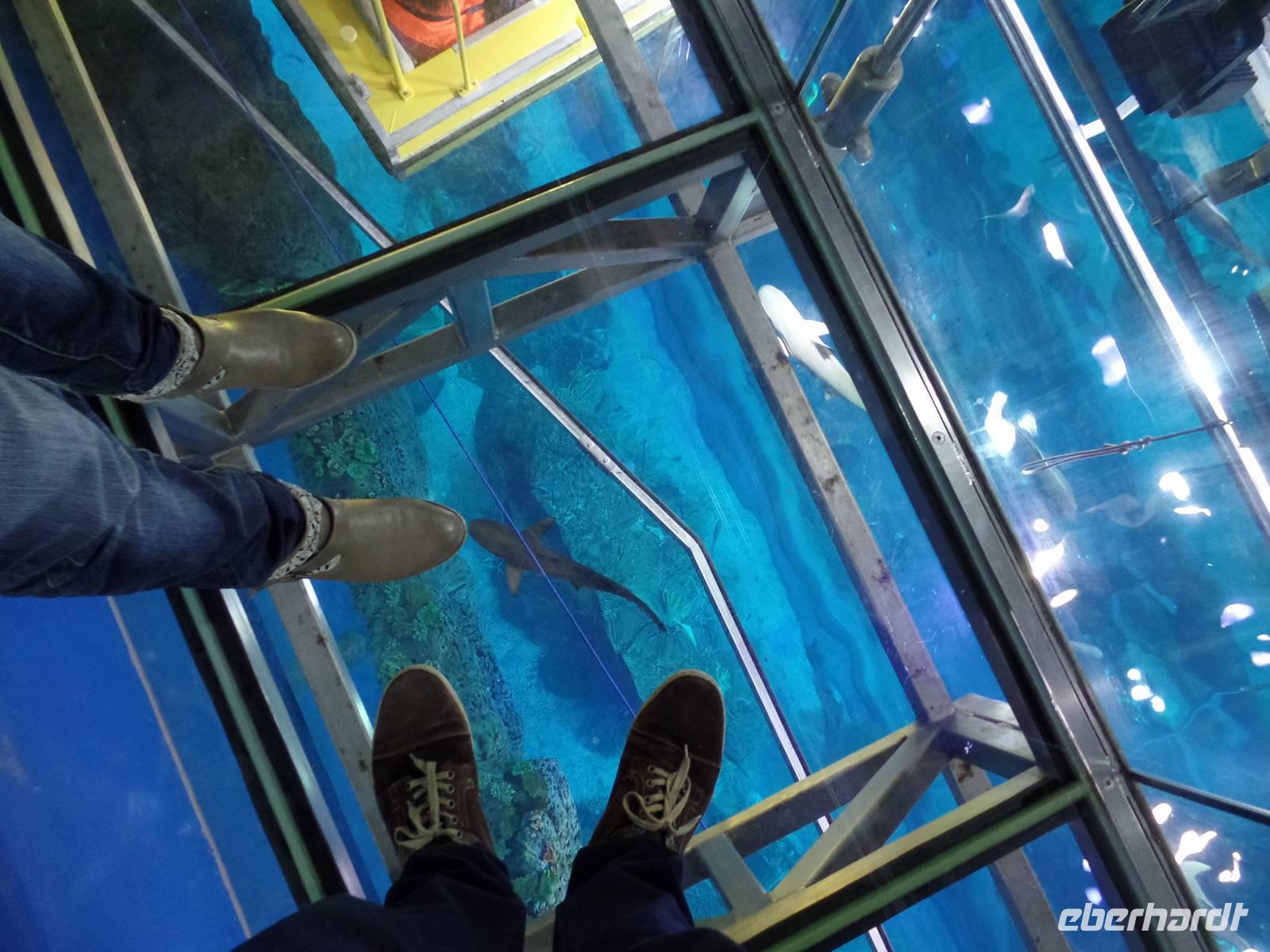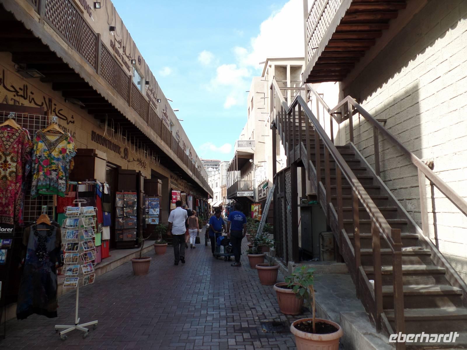Nach einem ausgiebigen ersten Frühstück, starteten wir direkt vor unserem Hotel. Anlaufpunkt war das Dubai Museum direkt vor den Füßen unseres Hotels. Das Museum ist deutlich interessanter als manch anderes Museum. Mit vielen Bildern und authentischen Eindrücken wird dem Besucher die kurze Geschichte des Emirats Dubai auf eine ganz besondere Art und Weise näher gebracht. Nun ging es zu Fuß über die Souks des Alten Dubais, angefangen bei Souk für Textilien bis hin zum Souk für Gewürze und dem Goldsouk, welcher den Abschluss bildete. Zwischen den beiden Souks nutzten wir den hiesigen ÖPNV, welcher uns, hier in Form eines Wassertaxis, von dem Textilmarkt zum Gewürzmarkt brachte. Für den einen oder anderen fanden sich Gewürze für zu Hause oder kleine Andenken in Form einer Glasfigur des Burj al Arab oder Burj Khalifa. Nach den ersten Kilometern zu Fuß holte uns dann unser Bus ab, welcher uns zur Dubai Mall brachte. Hier angekommen nahmen wir erst eine Kleinigkeit zu uns, ehe wir unseren Weg durch das riesige Kaufhaus fortsetzen. Beginnend mit dem Zoo, in welchem Pinguine, Krokodile und viele andere Tiere leben, begaben wir uns weiter durch den Tunnel des Aquariums. Hier hatten wir einen tollen Blick auf Haie, Rochen und mutige Taucher.