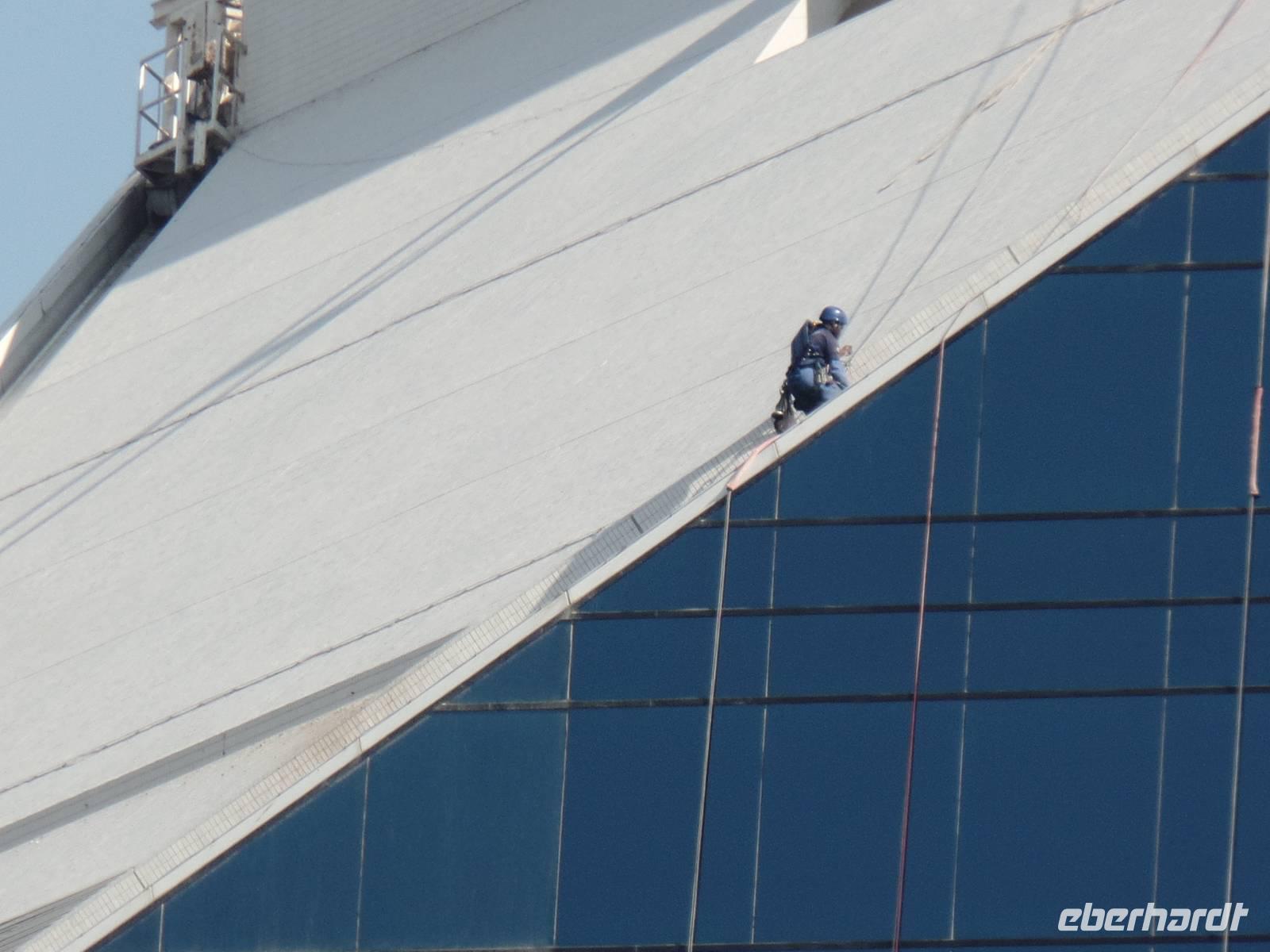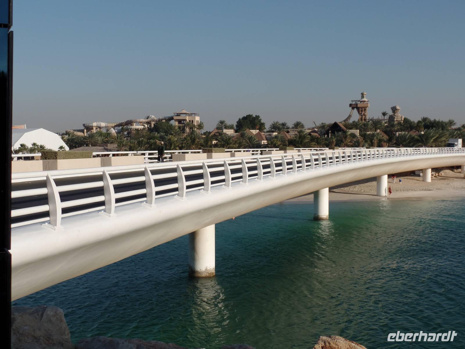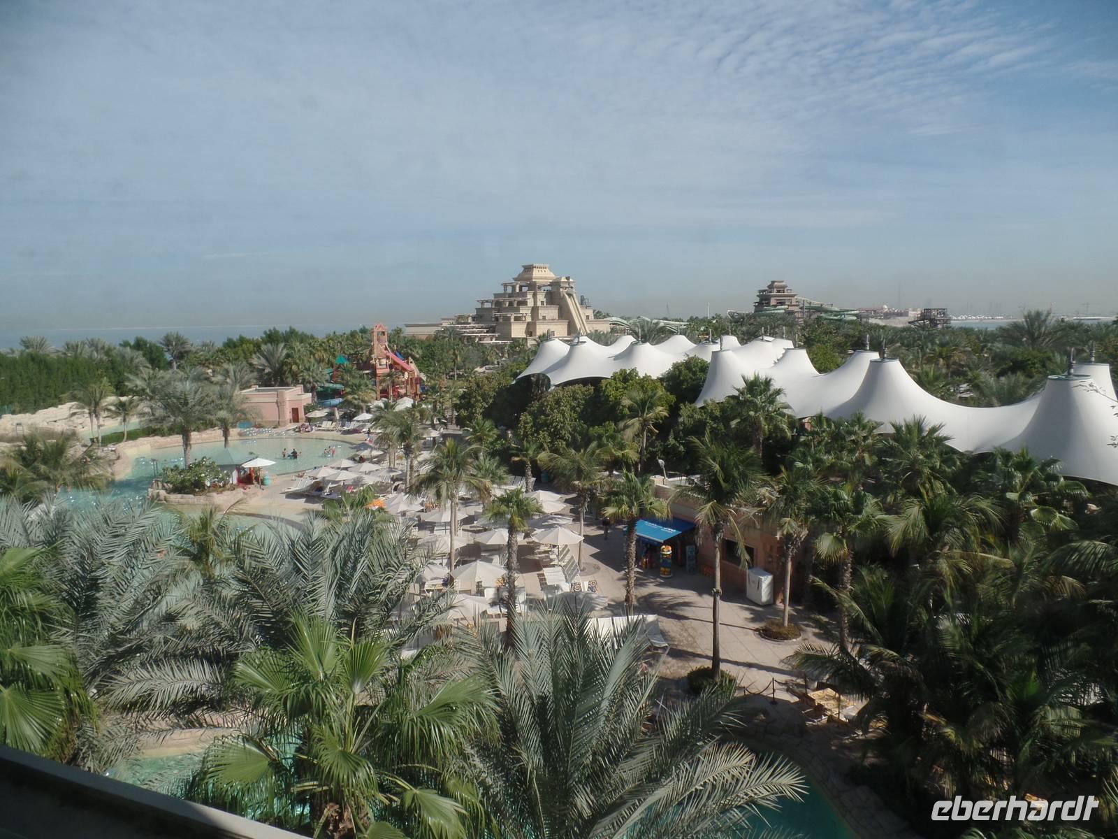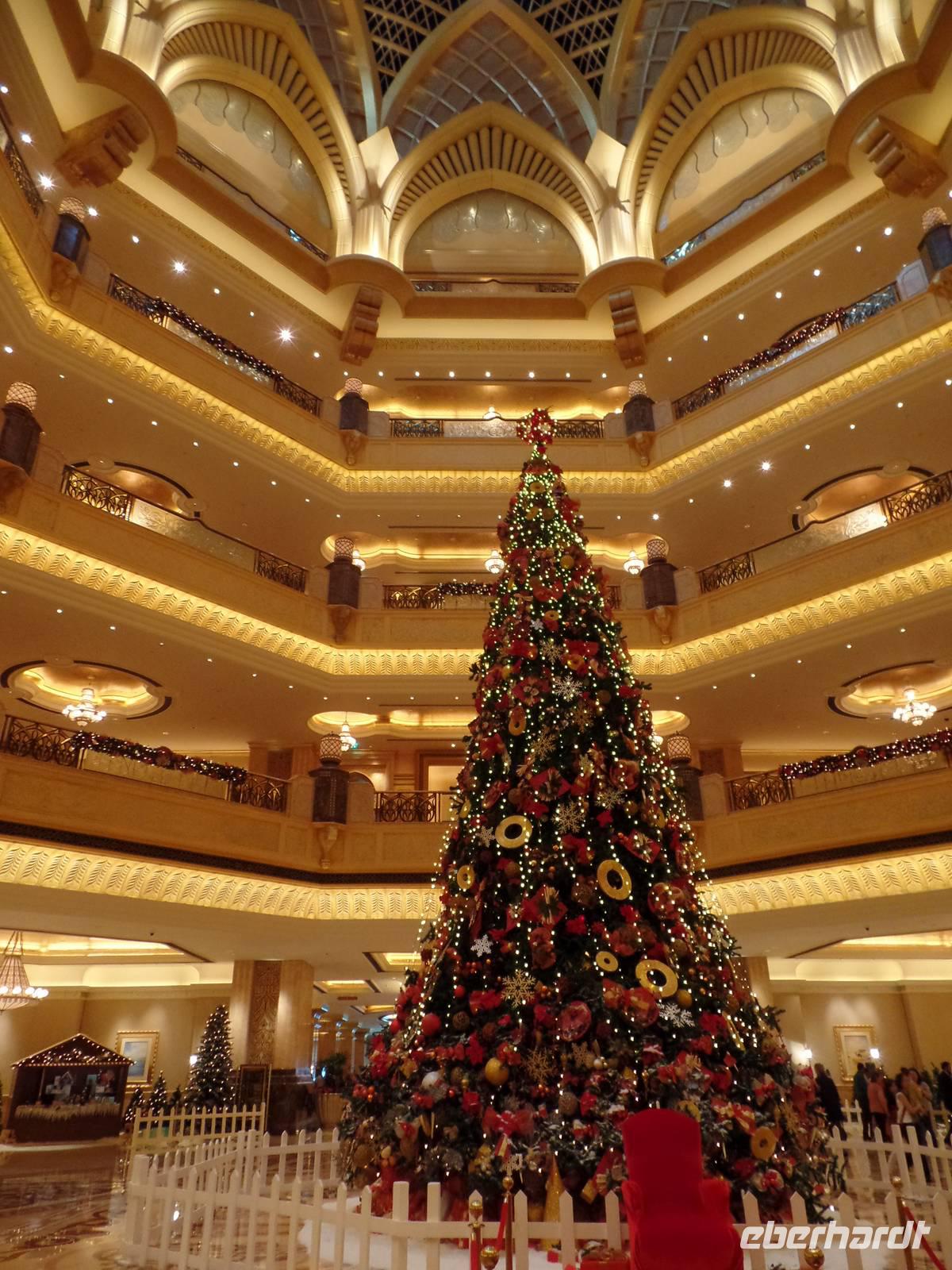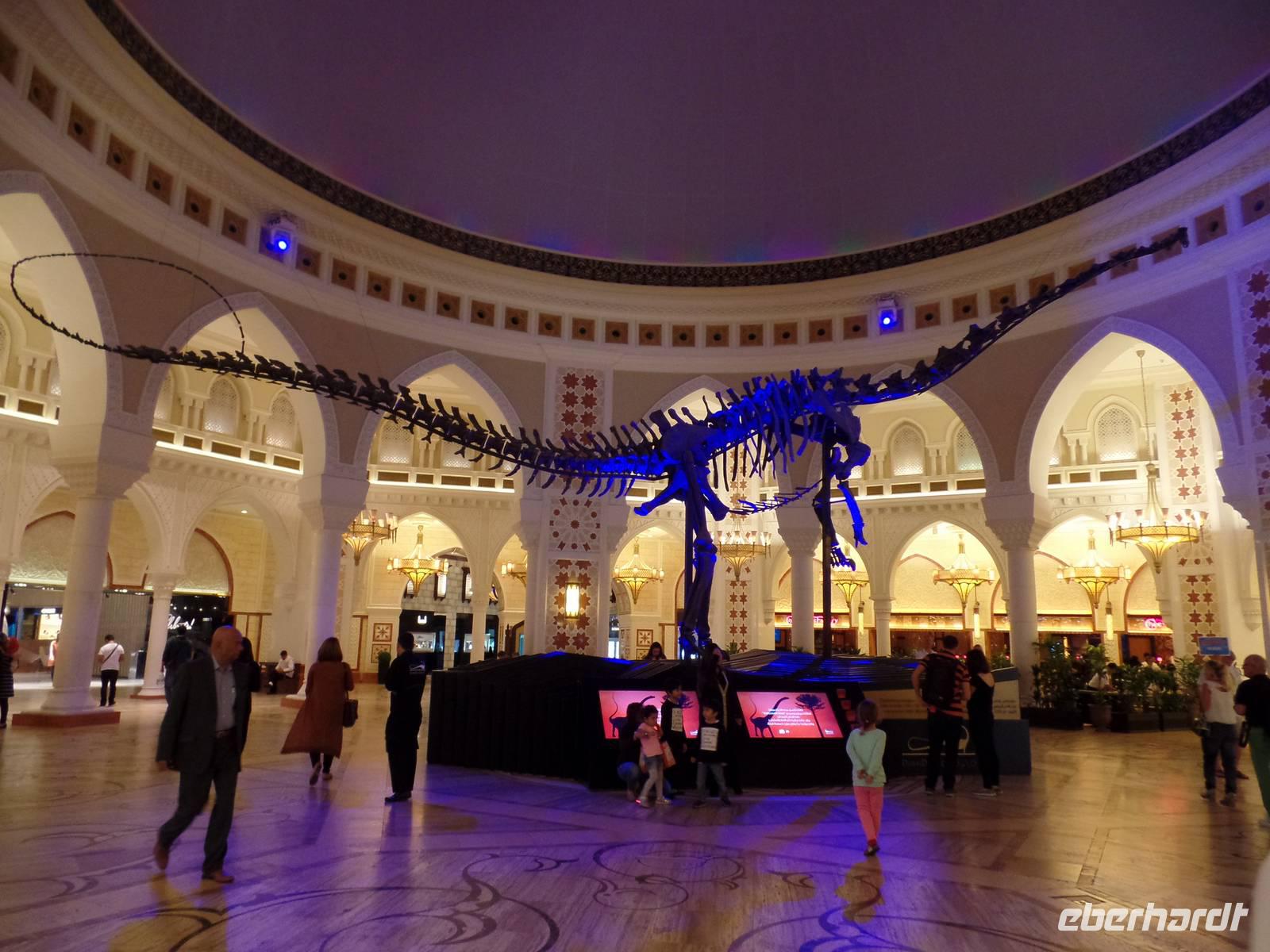 Heute war der Silvestertag gekommen und wir hatten auf unserem Plan noch das Neue Dubai stehen, ehe wir das neue Jahr begrüßen durften. Also ging es am Morgen vom Hotel los in Richtung The Palm, eine aufgeschüttete Insel in Form einer Palme. Wir fuhren entlang des Palmenstammes, um zum bekannten Hotel Atlantis zu kommen. Hier konnten wir leider keine Fotos vom Hotelinneren machen, weil es kein Hineinkommen für Nicht-Hotelgäste gibt. Doch wir wollten das Hotel dennoch fotografieren und so lud ich meine Gäste auf eine Fahrt mit der Monorail ein. Die fahrerlose Einschienenbahn gleitet auf Viadukten über die künstlich angelegte Insel und ist ein Highlight für sich. Während der Fahrt konnten wir ein herrliches Bild vom The Palm Atlantis Hotel bekommen und auch einen Überblick über die Palmenwedel, auf denen Eigenheime errichtet worden sind. Unser Bus nahm uns an der Endstation wieder auf und wir fuhren weiter zur Dubai Marina. Der Stadtteil Dubais bekam seinen Namen vom künstlichen Kanal, an dessen Uferpromenade sich ein großer Yachthafen und viele kleinere Bootsanlegestellen befinden. Abgerundet wird das ganze Areal von vielen Geschäften und Cafés, sowie mehreren Wolkenkratzern. Das letzte Ziel des heutigen Ausfluges war die Mall of Emirates. Hier gaben wir den Gästen die Möglichkeit, mit uns anschließend wieder ins Hotel zu fahren oder noch ein wenig den Nachmittag zu genießen. Jede Mall in Dubai hat ihre kleinen Besonderheiten und so hat die Mall of Emirates eine eigene Ski Halle. Wer also wollte, konnte bei einer Außentemperatur von nicht ganz 30 Grad die Ski oder das Snowboard anschnallen und die Hügel hinunter fahren.