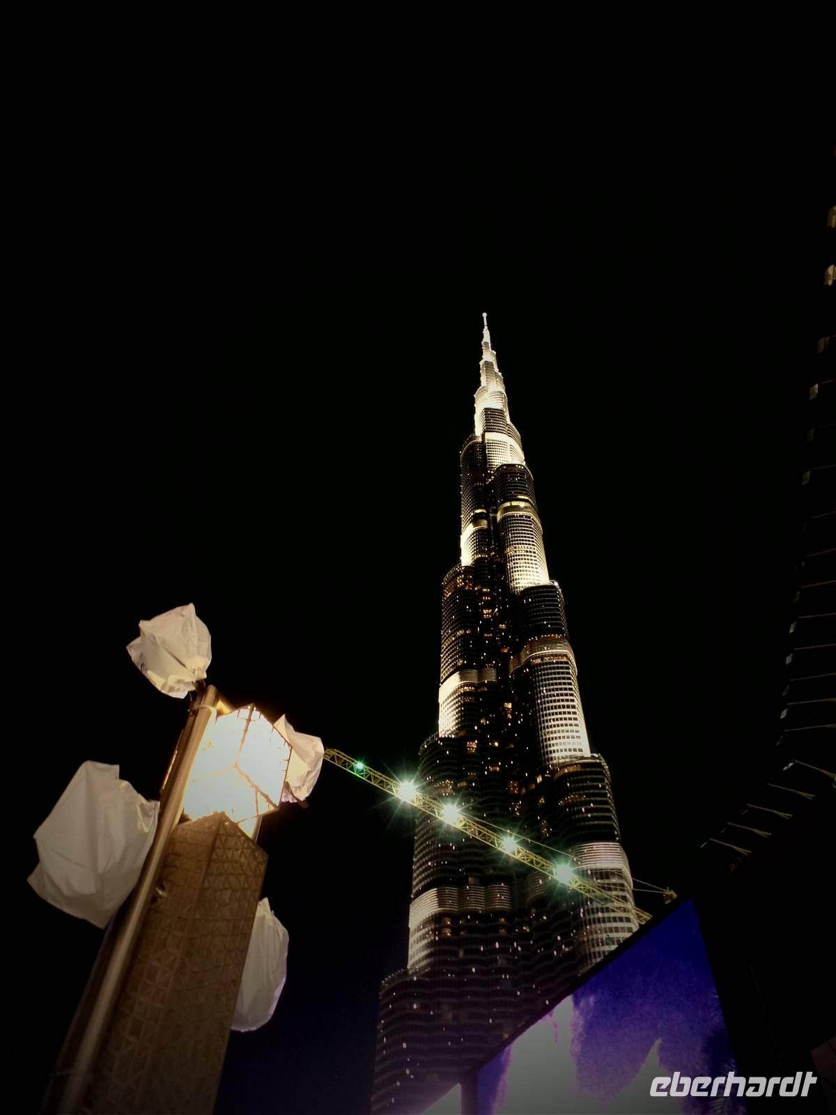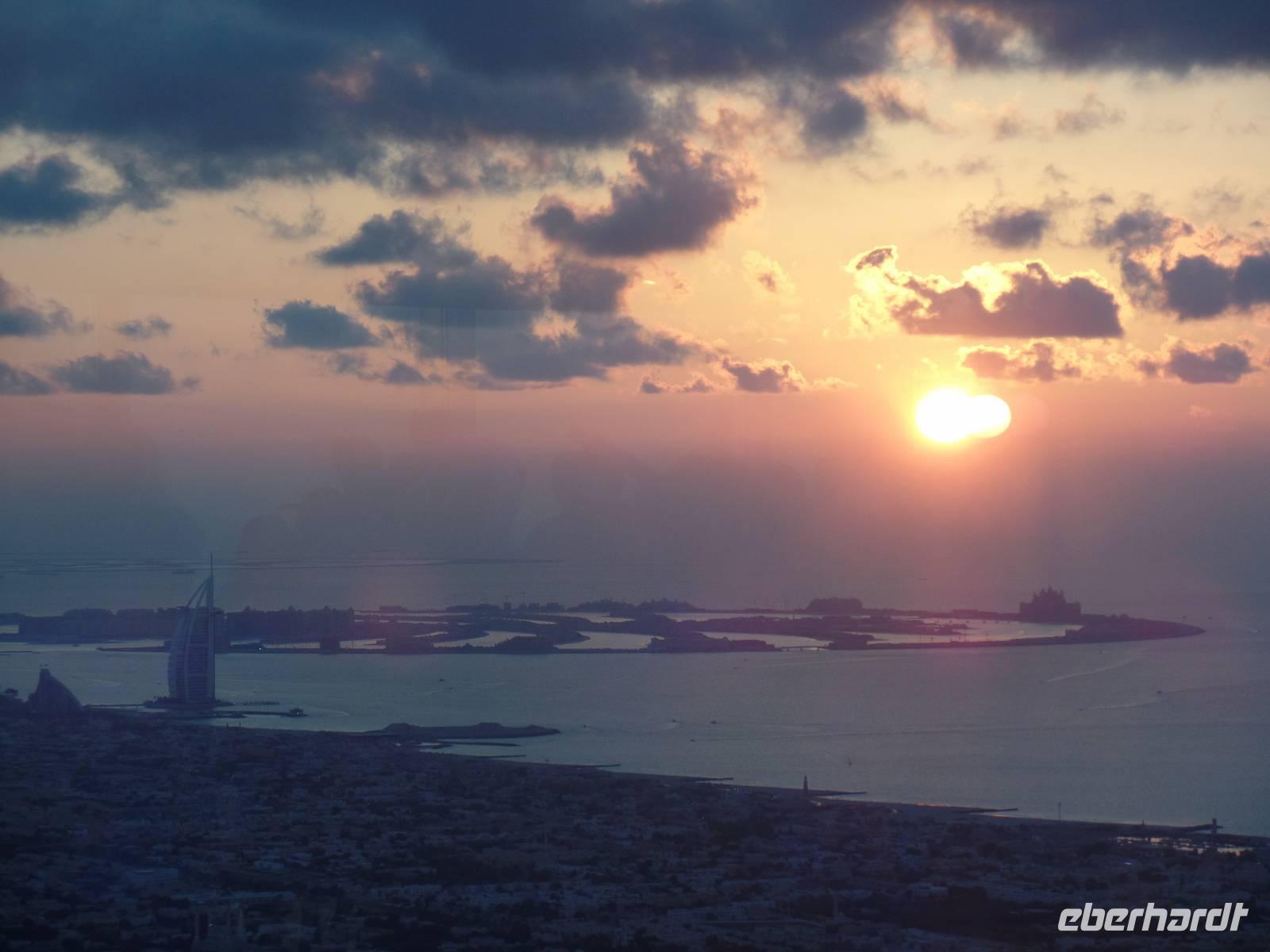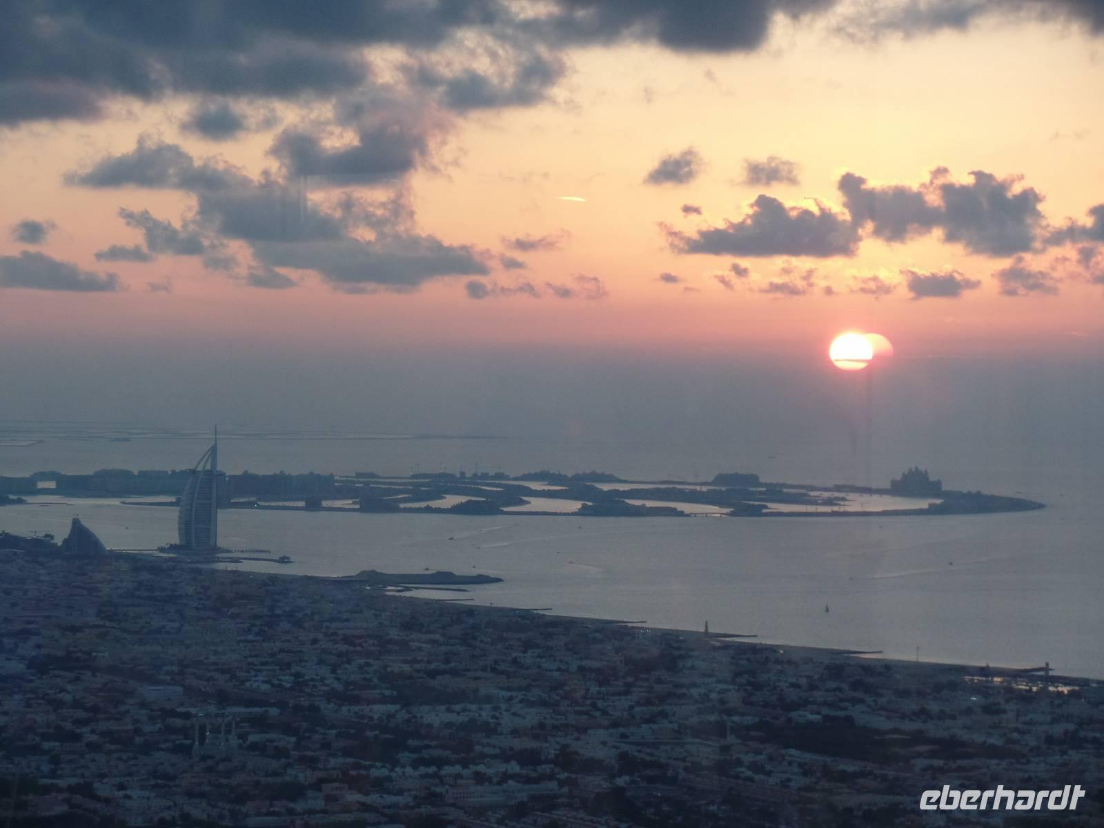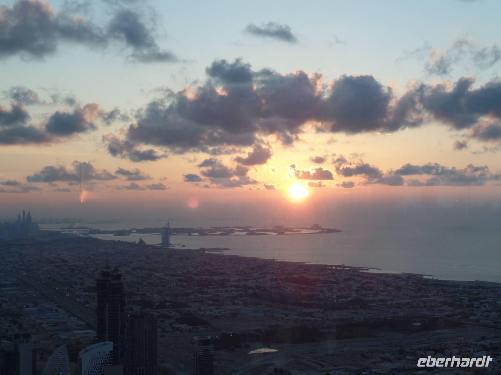 Am Abend läuteten wir dann die letzten Stunden des Jahres 2015 ein. Mit einem ausgesprochen imposanten Galadinner im Hotel verkürzten wir die Zeit, ehe wir uns in die Stadt begaben, um das Feuerwerk am Burj Khalifa zu sehen. Wir fuhren mit dem Bus zum Jumeirah Beach, welcher einen perfekten Blick auf den Burj Khalifa bot. Als wir am Strand ankamen, gab es einen kleinen Schock, denn wir hörten, dass nicht weit des Burj Khalifas ein Hotel in Flammen steht. Ob das Feuerwerk nun dennoch stattfinden würde, war ungewiss. Doch nach kurzer Zeit, gab es dann die Nachricht, dass Dubai dennoch wie geplant ins neue Jahr starten wird. Um die Zeit ein wenig zu verkürzen, wollten Sandra und ich unsere Gäste am Strand zum Bleigießen einladen. Leider machte uns der Wind einen kleinen Strich durch die Rechnung und so mussten wir das Bleigießen ein wenig abwandeln. Nun wurde die Zukunft nicht durch Gießen voraus gesagt, sondern mit tippen auf die Möglichkeiten. Die letzten 10 Sekunden des Jahres wurden mit einem blinkenden Licht am Burj Khalifa eingeläutet und wir konnten das Feuerwerk genießen. Doch das war längst nicht alles, hinter uns, über dem Meer, eröffnete sich nach Ende des Feuerwerks am Burj Khalifa eine Überraschung in Form eines weiteren Feuerwerkes. Zum Abschluss gab es dann auch noch die Leuchtraketen über dem Burj al Arab und der Palmeninsel. Es war schon etwas Besonderes, barfuß am Strand zu stehen und das Feuerwerk am höchsten Gebäude der Welt zu bestaunen.