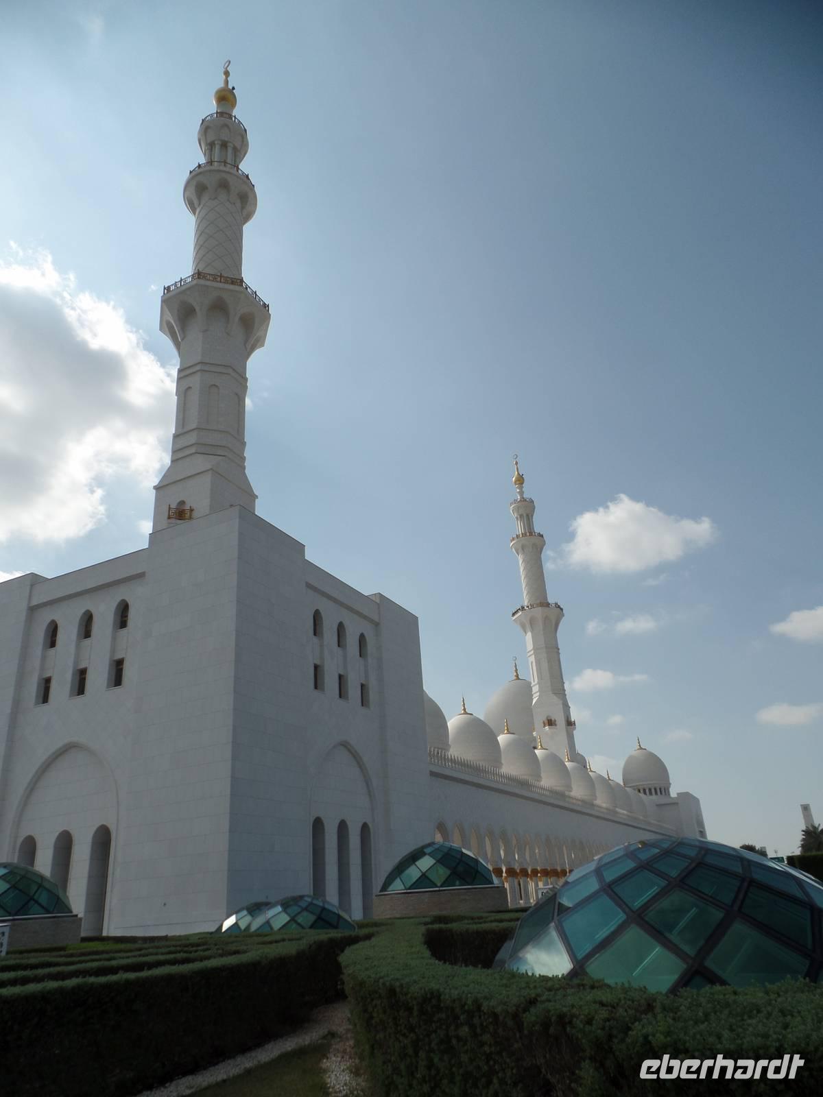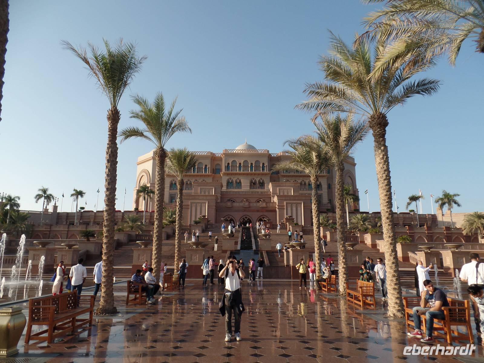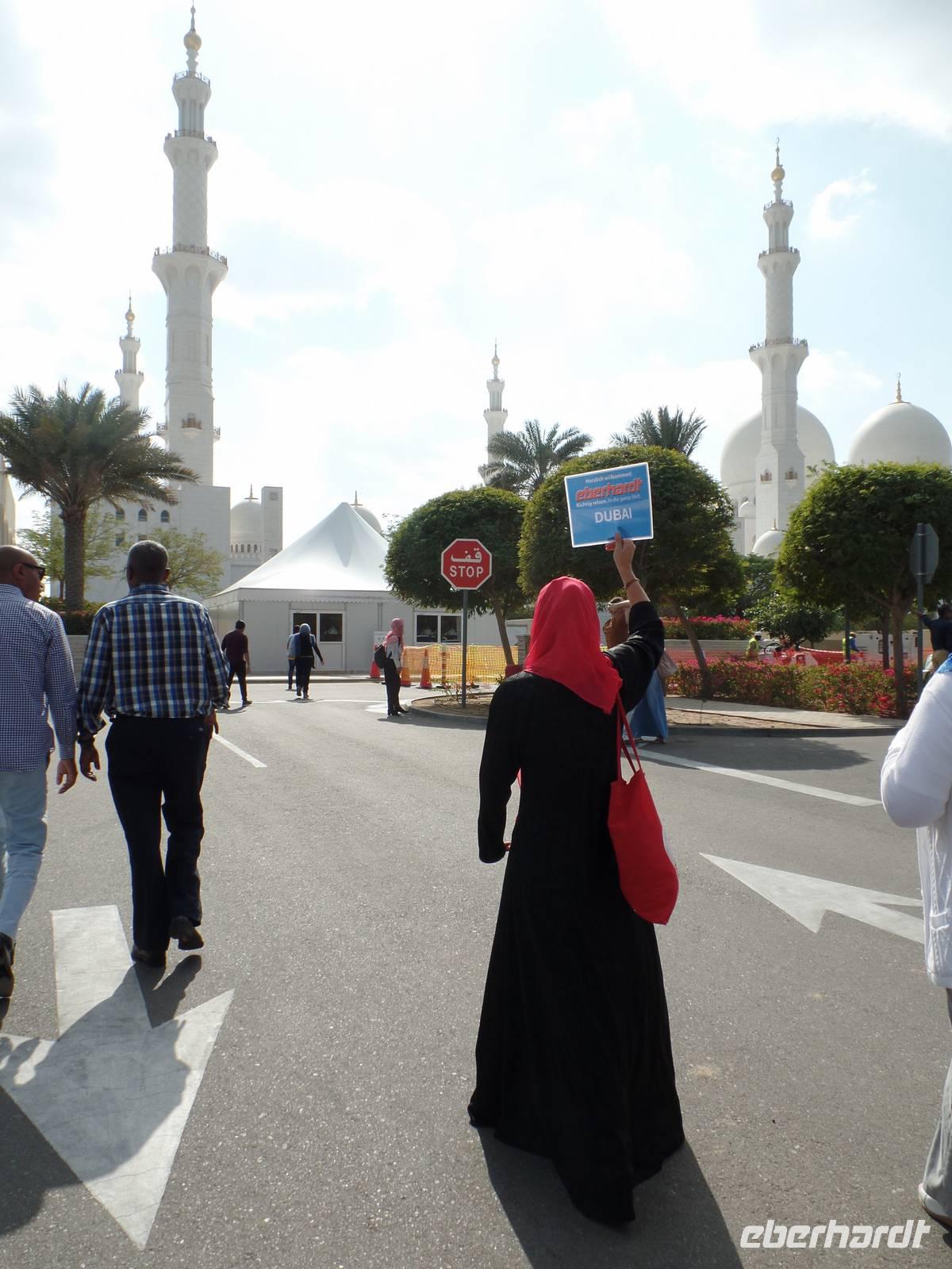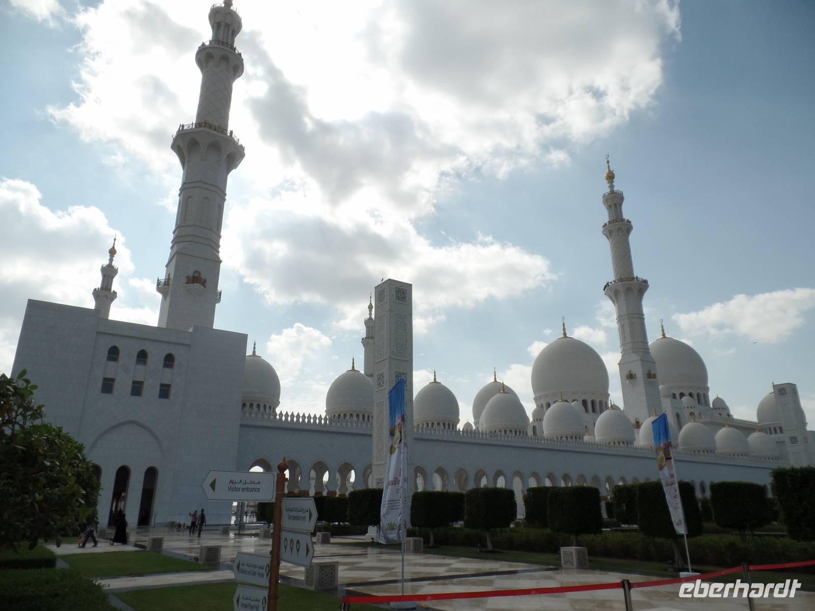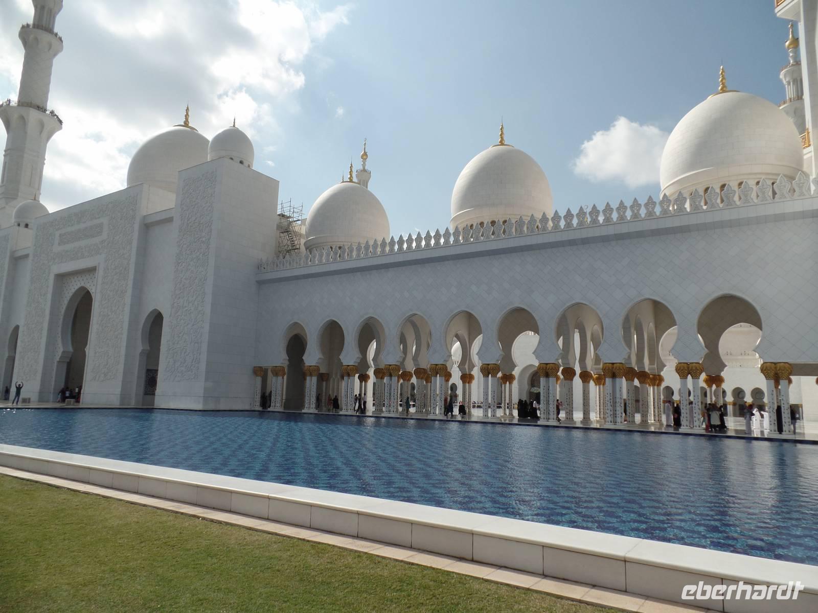 Unser Ausflug in das Nachbaremirat war damit aber noch lange nicht zu Ende, sondern hatte gerade erst begonnen. Wir wollten schließlich einen genauen Einblick erhalten. Weiter ging es also zur großen Moschee von Scheich Zayed. Die Moschee ist unglaublich, durch die hohen Säulen mit ihren Verzierungen und dem handgeknüpften Teppich und dem imposanten Kronleuchter aus Swarovski Kristallen. Der Gesamtpreis der Moschee beläuft sich bis zum heutigen Tag auf 320 Millionen, weitere Kosten werden aktuell durch die Erweiterung des Prunkbaus entstehen. An sich denke ich persönlich, dass dieser Bau aber bedeutend mehr gekostet haben muss. Der ein oder andere probierte auch die hauseigenen Toiletten und ich muss sagen, wer in der Nähe ist, sollte mal vorbei schauen. Er wird definitiv überrascht sein.
