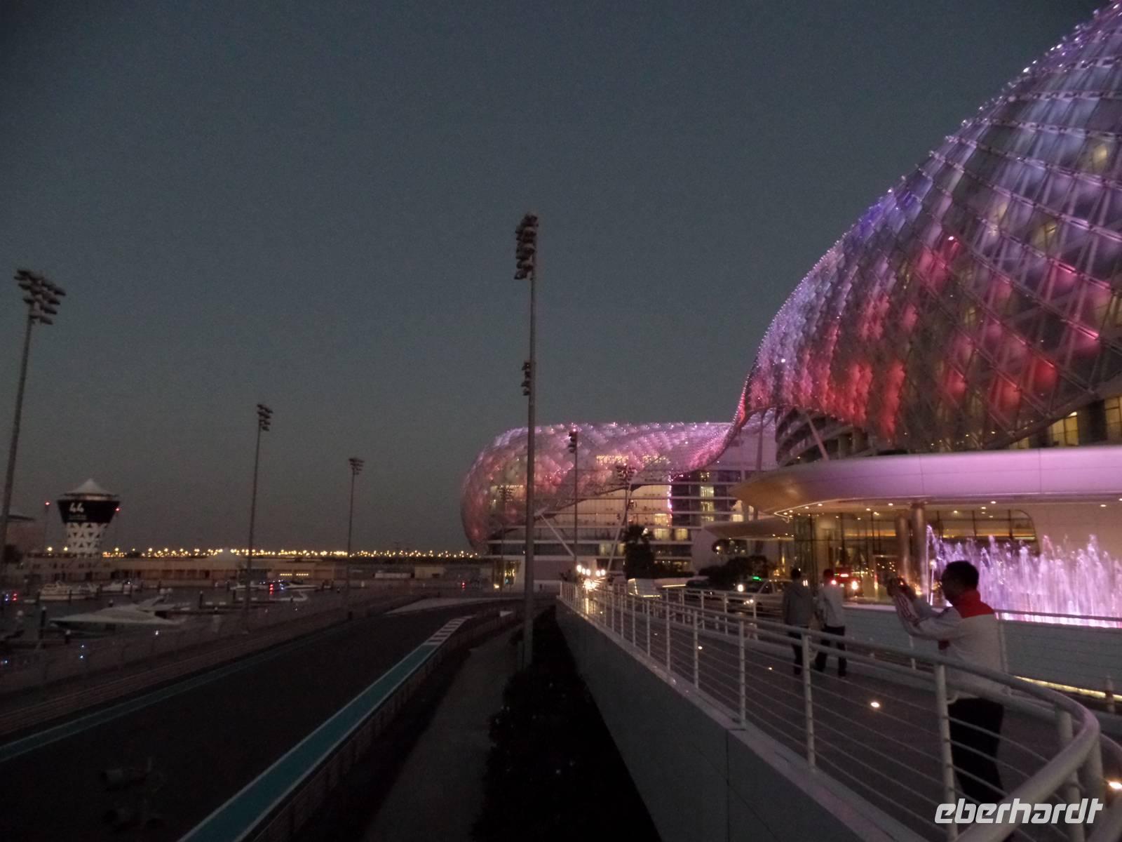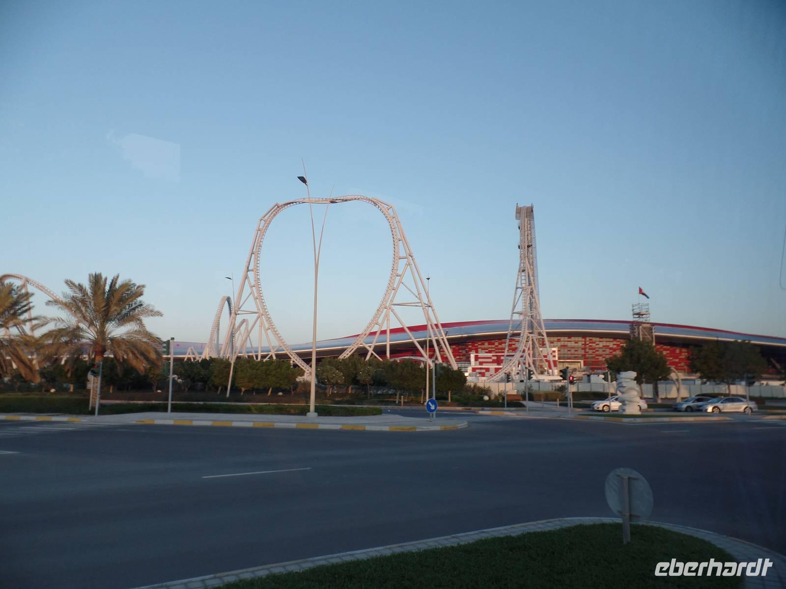 Bevor es wieder Richtung Dubai und Hotel ging, fuhren wir noch auf einen kurzen Abstecher zur Ferrari World und liefen einmal quer durch den ersten Bereich. Leider gibt es keine Möglichkeiten für die Öffentlichkeit auf die Rennstrecke von Abu Dhabi zu gelangen, doch durch unsere super Reiseleiterin und unseren Busfahrer, der sich keine Gedanken machte, konnten wir einen kurzen Stopp an der Strecke machen.