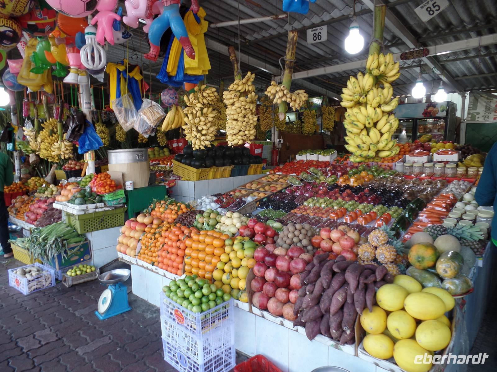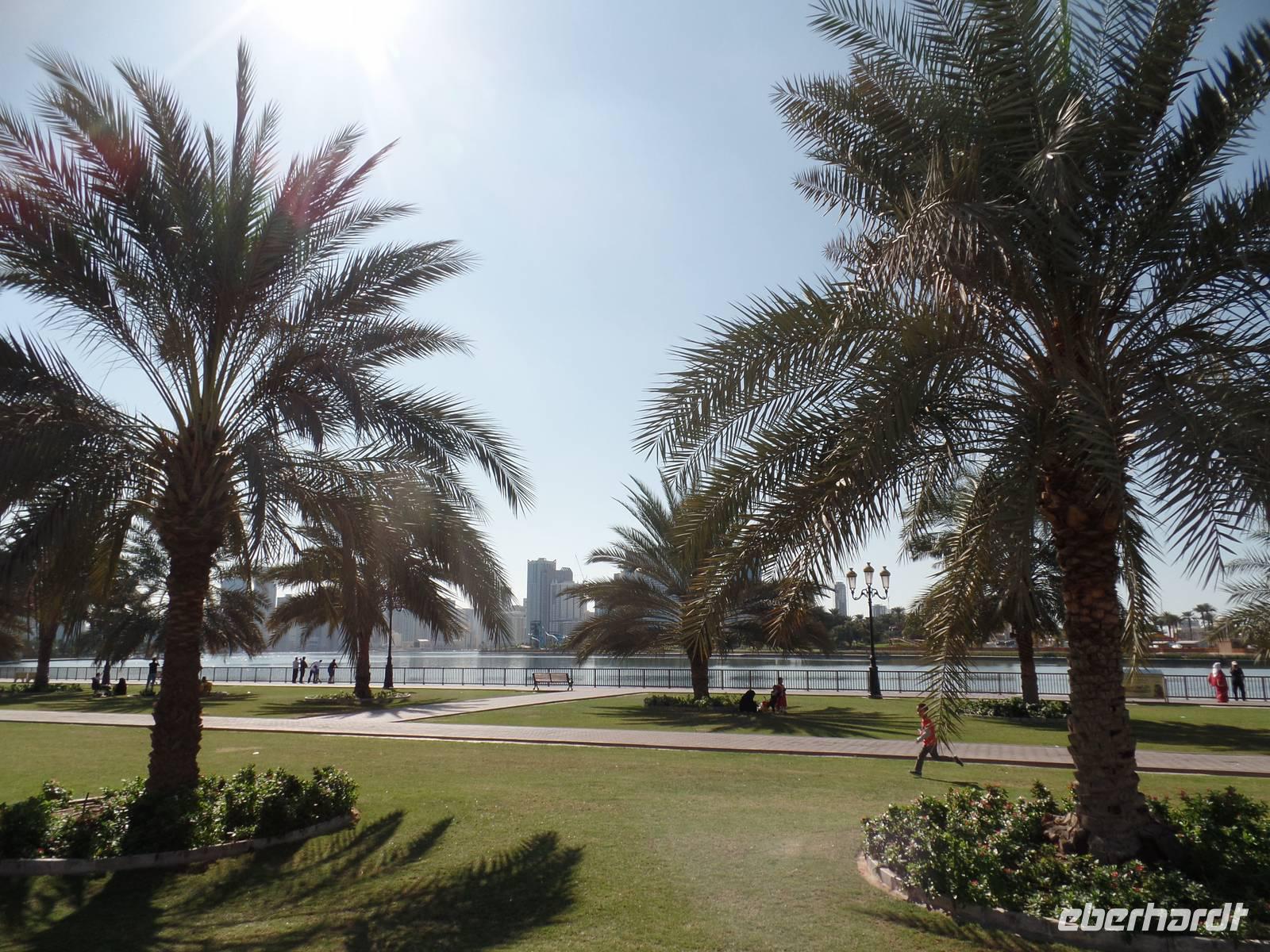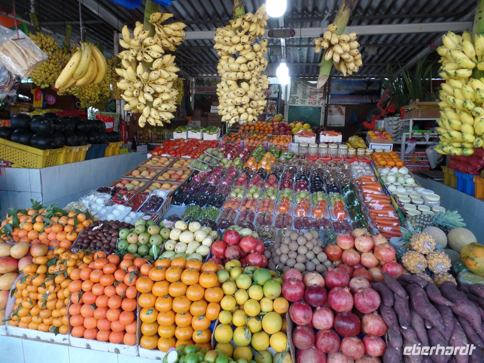 Heute ging es in das Nachbaremirat Sharjah. Hier sind die Regeln, nach welchen die Menschen leben, doch um einiges strenger. Es darf beispielsweise kein Alkohol in das Emirat gebracht werden. Da wir auch nicht vorhatten, diese Regel zu brechen, stand uns einem schönen Ausflug nichts mehr im Wege. Unser erster Stopp war an der King-Faisal-Moschee, welche wir hier aber nur von außen besichtigen konnten, da es Nicht-Muslimen in Sharjah verboten ist, eine Moschee zu betreten. Bevor es auf den Fisch- und Gemüsemarkt ging, fuhren wir auf einen kleinen Souk, wo sich ein Großteil der Gäste mit Tüchern eindeckte.Der Fisch - und Gemüsemarkt war danach für alle beteiligten eine Premiere. Für uns, weil wir noch nicht hier waren, und für Ayleen, weil es seit 25 Tagen einen neuen und moderneren Markt gibt. Der alte Fischmarkt wurde abgerissen und war somit nicht mehr unter freiem Himmel und hygienisch nicht im besten Zustand, sondern es gab nun eine moderne und saubere Halle in der auf der einen Seite der Fisch- und Fleischmarkt und auf der anderen Seite frisches Obst und Gemüse gekauft werden konnte. Hier konnte man seinen Fisch abgeben und dieser wurde dann vor seinen Augen fachgerecht entschuppt und auseinander genommen.