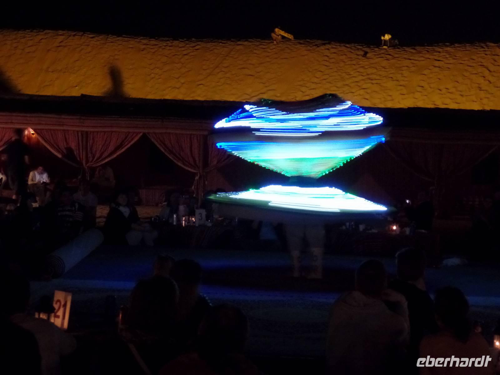 Bevor es wieder nach Dubai ging, wo am Nachmittag die Wüste auf uns wartete, fuhren wir noch weiter zum Blauen Souk. Hier konnten sich alle nochmals mit Gold, Tüchern oder anderen kleinen Souvenirs eindecken. Anschließend speisten wir zu Mittag im Hotel. Heute waren leichte Speisen angesagt, da es bei einer Jeep Safari auch schon mal wackeln kann. Vom Hotel aus ging es mit den hochmotorisierten Jeeps in Richtung Oman in die Wüste. Hier wurde zunächst die Luft aus den Rädern gelassen ehe es die Dünen rauf und runter ging. Alle hatten wir unseren Spaß und schließlich kamen die Jeeps mitten in der Wüste zum Stehen und wir konnten einige Fotos von uns und dem Sonnenuntergang machen. Denn das war während der Wüstensafari mit der Kamera leider nicht immer so einfach. Nachher ging es in ein Wüstencamp, in dem wir abends mit einem kleinen Programm unterhalten wurden und auch essen und trinken konnten. Die Zeit am Abend vertrieben wir uns ganz unterschiedlich. Die einen ließen sich ein Henna Tattoo malen und die anderen testeten die Wasserpfeifen und schauten sich genüsslich die Darbietung der Bauchtanzkünstlerin an. Nach dem Essen und einem Blick in die Sterne ging es dann auch wieder ins Hotel zurück.