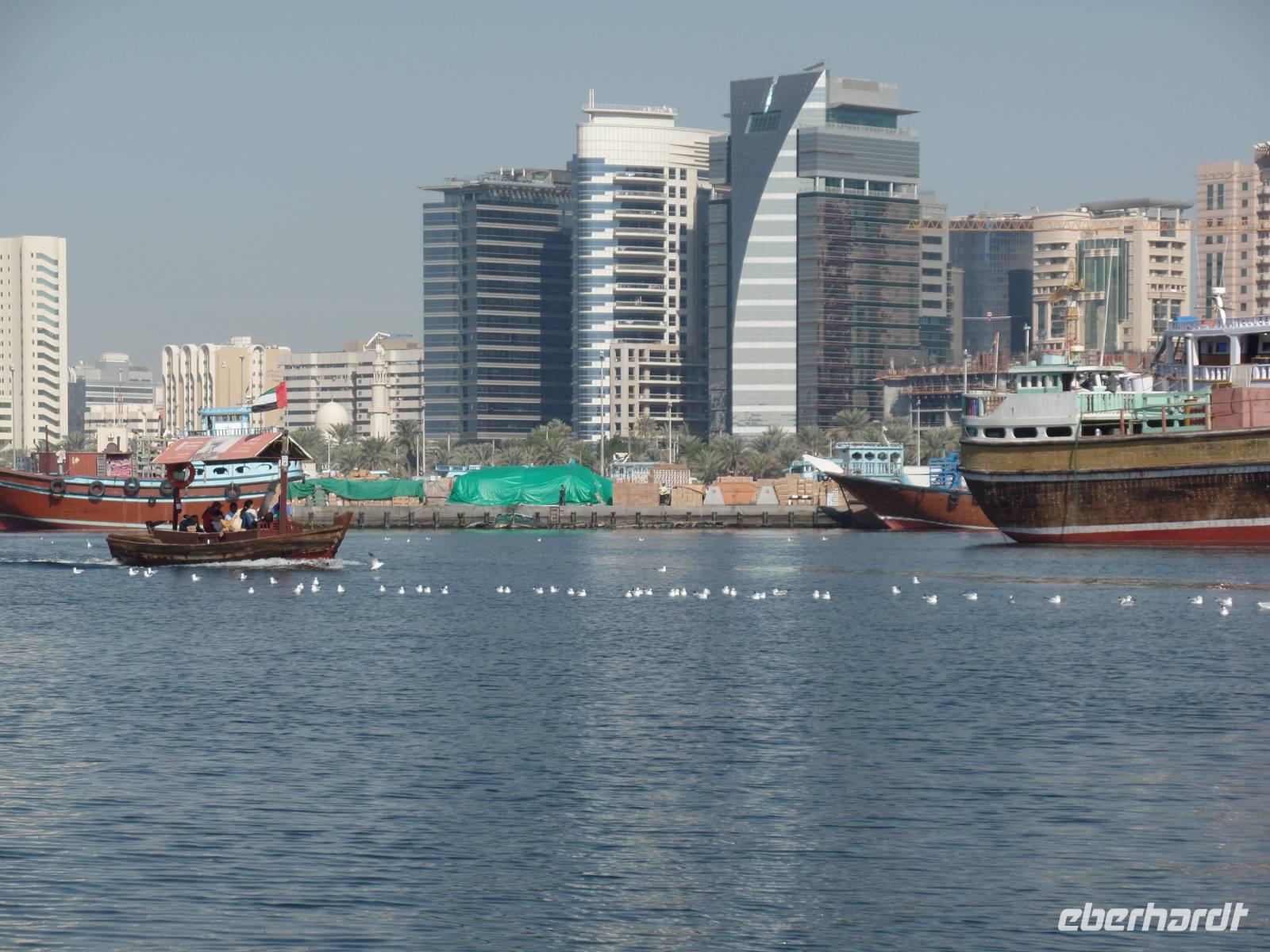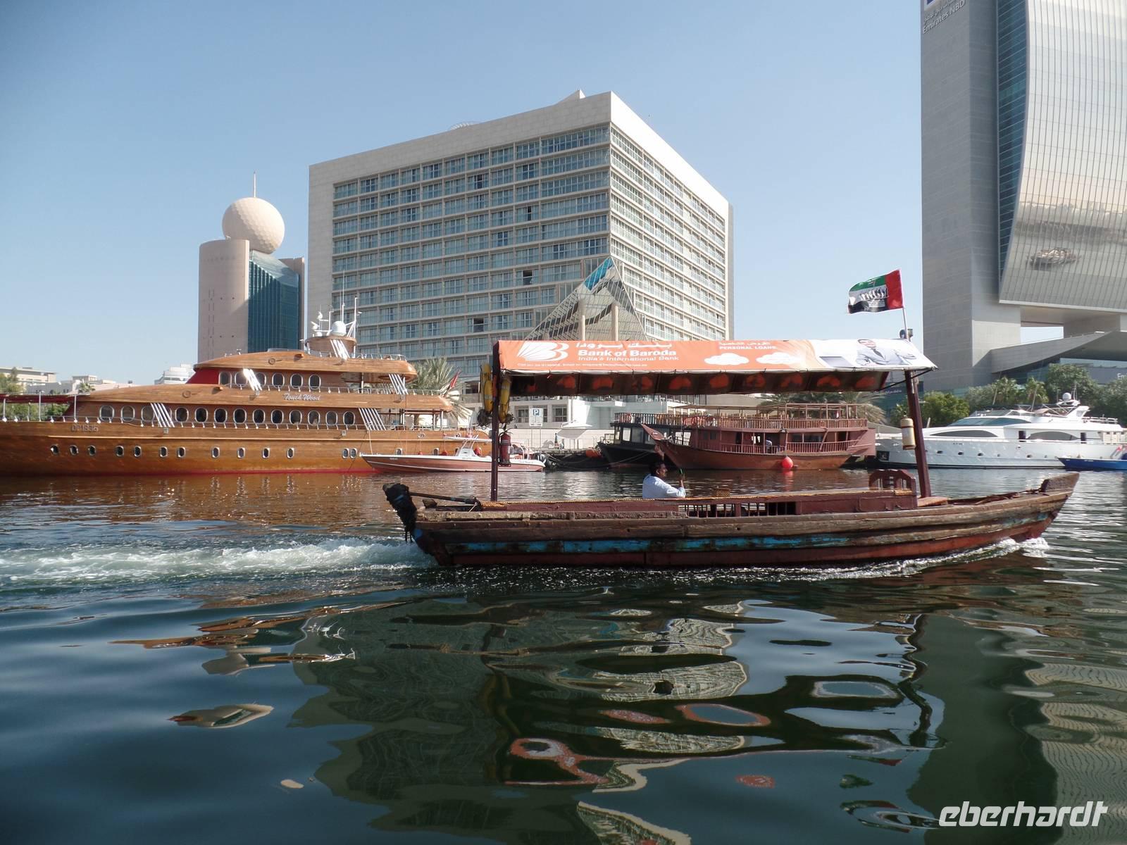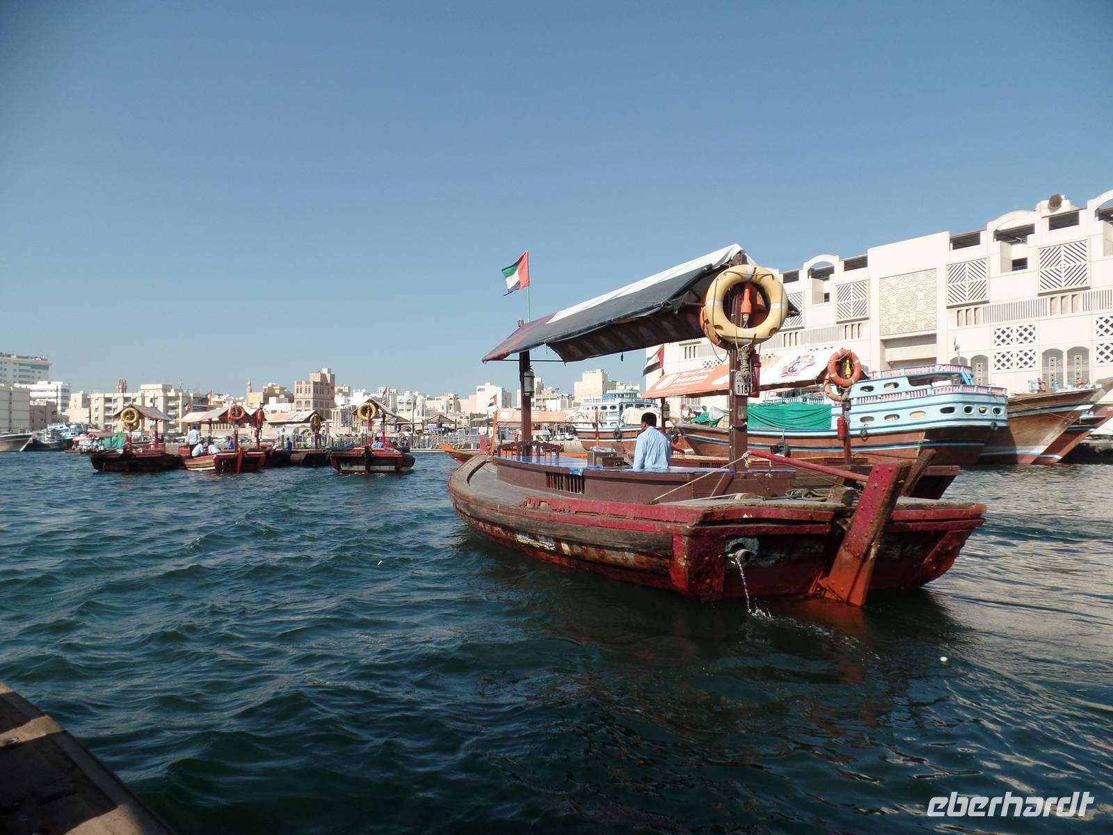 Heute gab es für die Gäste, die wollten, Mittagessen im ersten und einzigen 7-Sterne-Hotel der Welt. Für alle anderen hieß es einen Tag zur freien Verfügung. Doch zunächst folgten alle dem Aufruf des Reisebegleiters und so schipperten alle eine Stunde auf dem Dubai Creek und ließen die Seele baumeln.