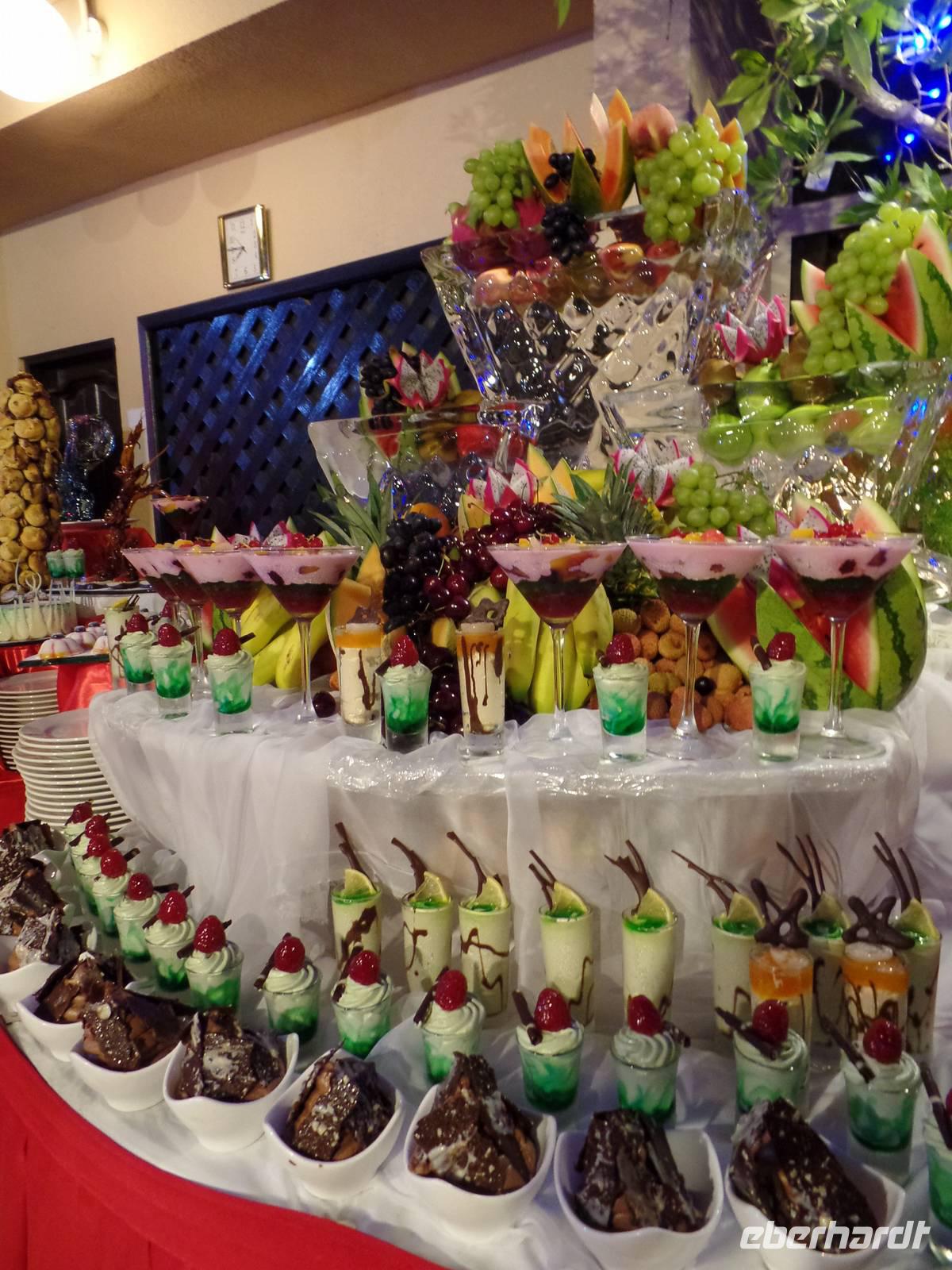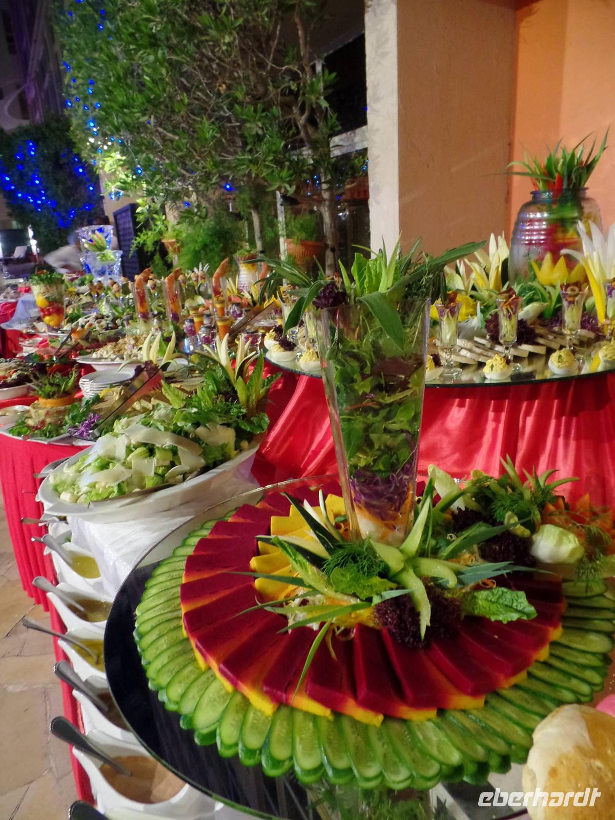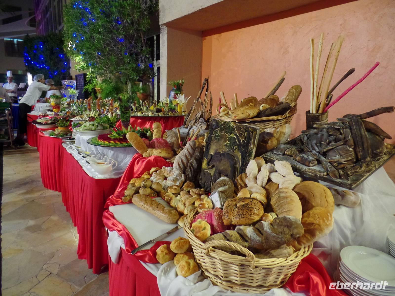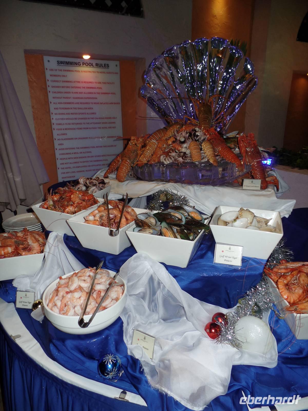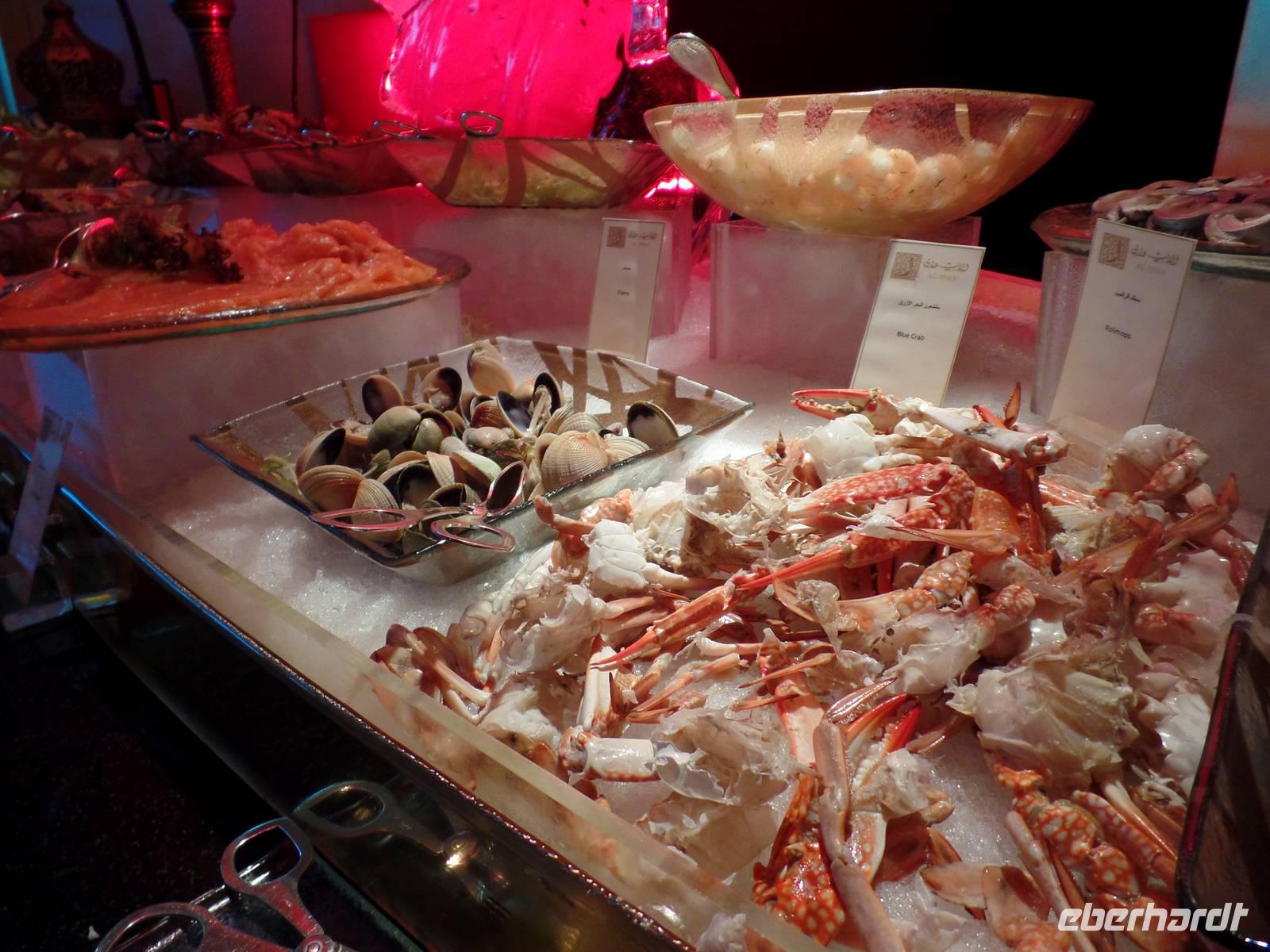 Gegen Mittag hieß es dann elegante Kleidung für die Damen und Herren, welche das Hotel in Form eines Segels bestaunen wollten. Viel hatte man schon gehört oder in den Medien gesehen, aber vorstellen konnte man es sich nur schwer. „Es ist nicht alles Gold, was glänzt", so lautet ein bekannter Spruch. Doch wer einmal die Möglichkeit hatte im Burj al Arab zu sein, der weiß, dass eben doch alles Gold ist, was glänzt. Hier speisten wir nun gemeinsam von einem sehr reichhaltigen Buffet mit verschiedenen Salaten, Suppen, Fleisch- und Fischgerichten, Obst und Dessert und immer wenn man an seinen Platz zurückkehrte, war die Stoffserviette wieder neu gefaltet. Bevor es wieder zum Bus ging, gab es noch kurz Freizeit im Hotel. Das Unglaublichste wurde zur Wirklichkeit. Eine Kundin schaffte es, eine Suite zu bestaunen. Der absolute Höhepunkt war anschließend, als der Butler ihr noch Frucht zum Essen angeboten hat.