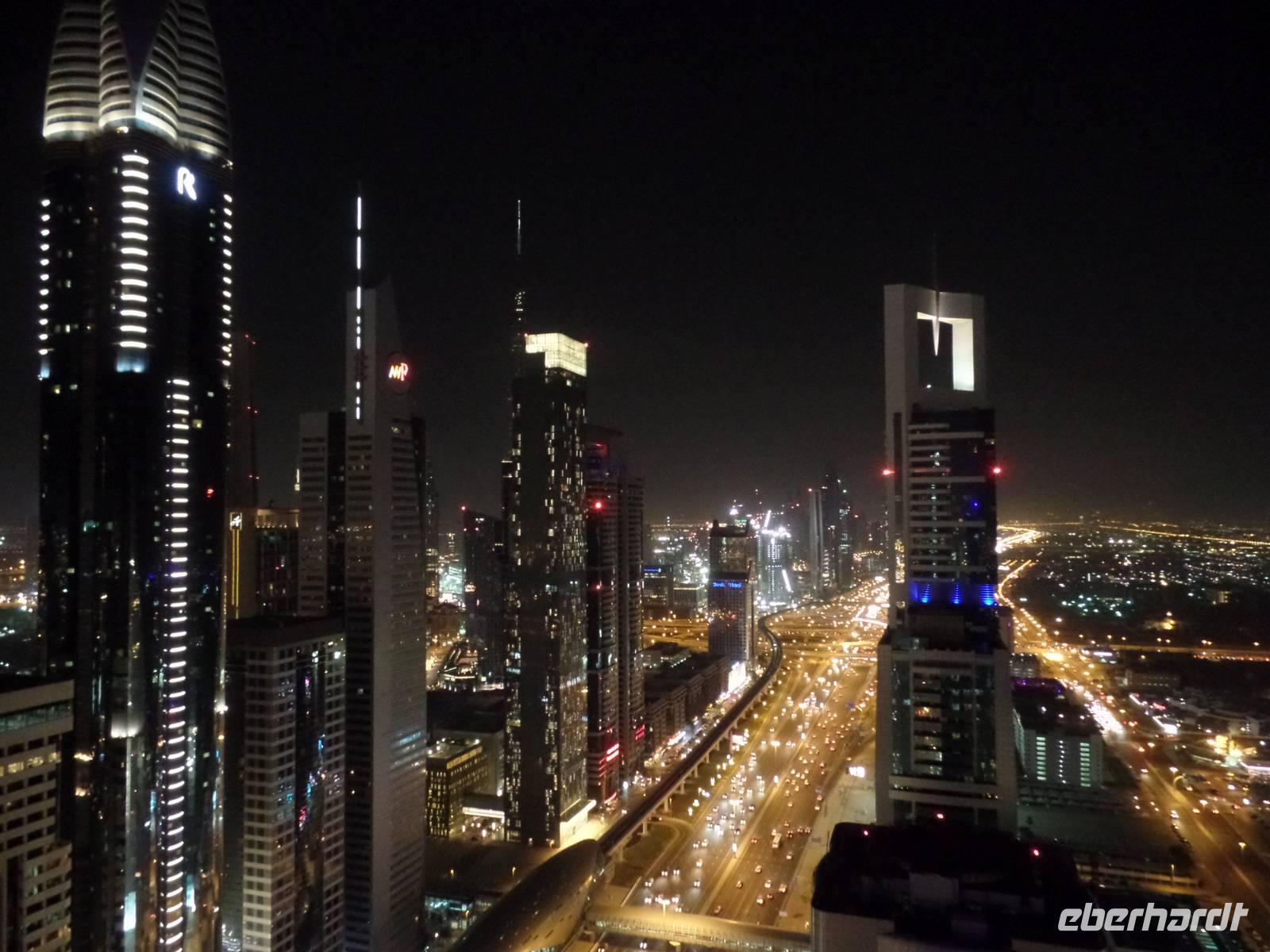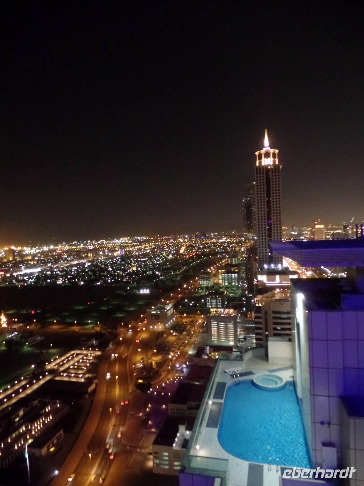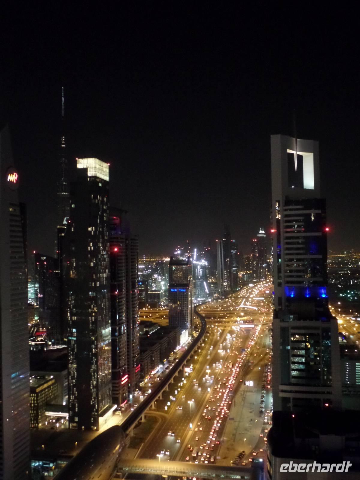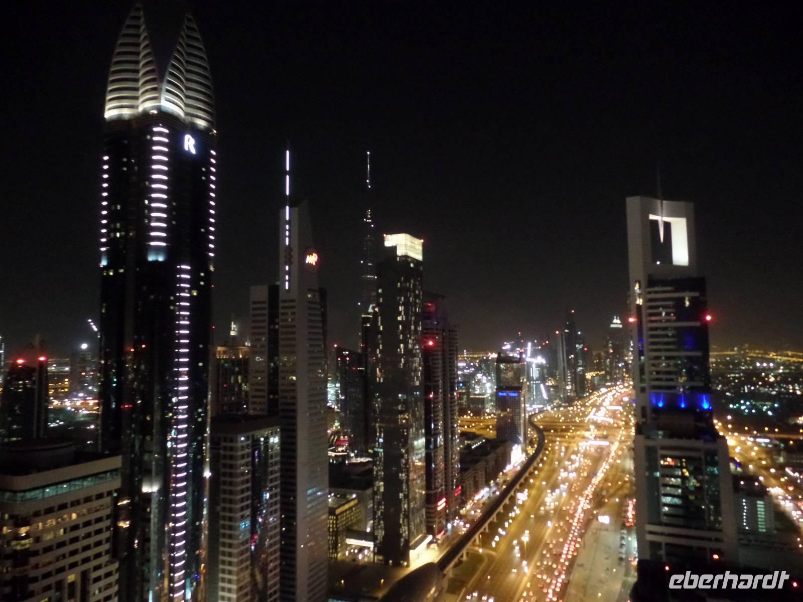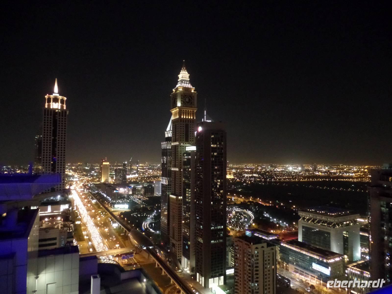 Sandra und ich luden die Gäste, die die Zeit bis es zum Flughafen ging nicht im Hotel verbringen wollten, noch ein, mit uns zu einer Bar zu fahren und einen letzten Blick über das schöne Emirat Dubai bei Nacht zu werfen. Der Ausblick von der Skybar war einfach überragend und ein wirklich schöner Abschluss einer tollen Reise.