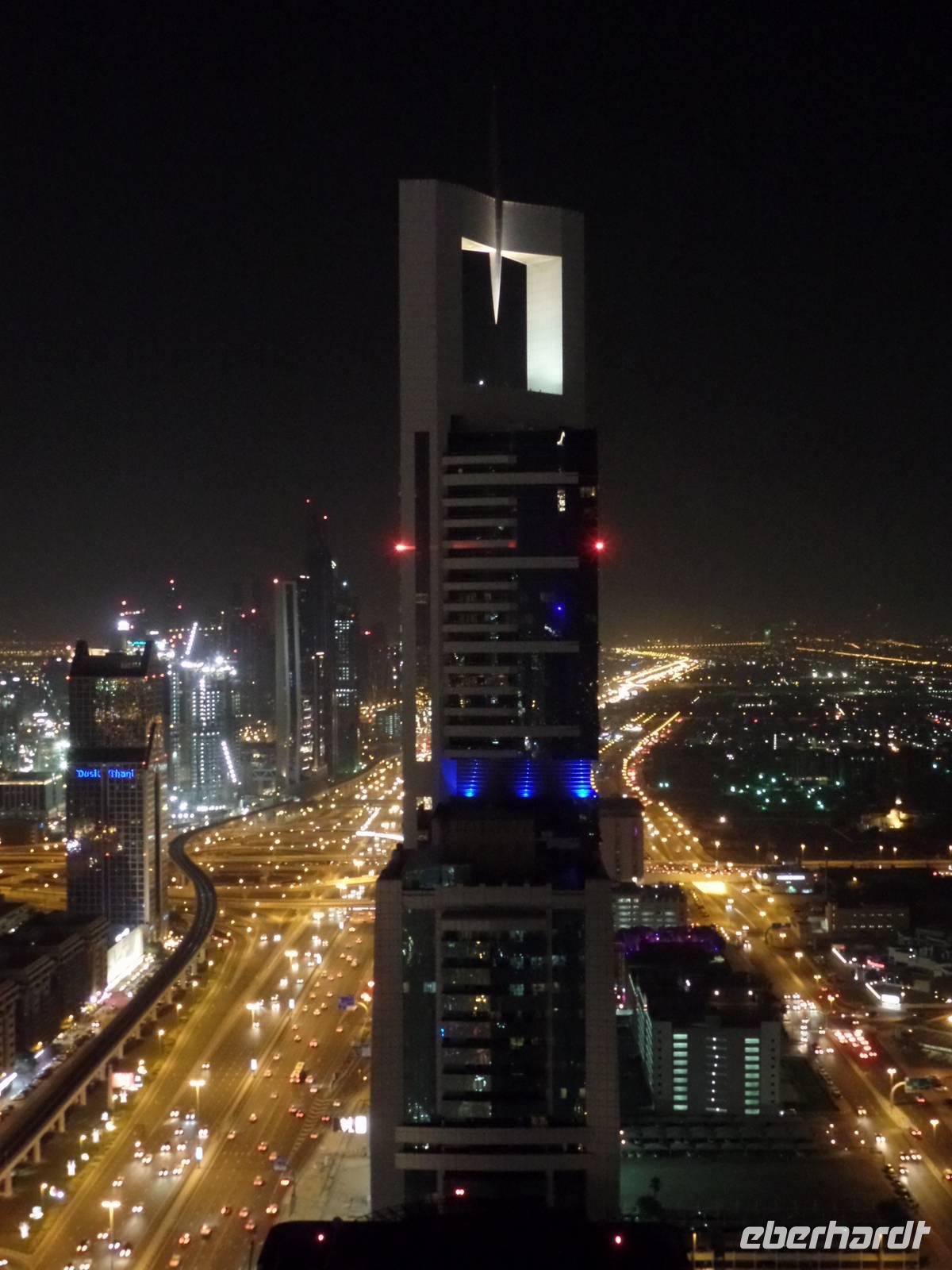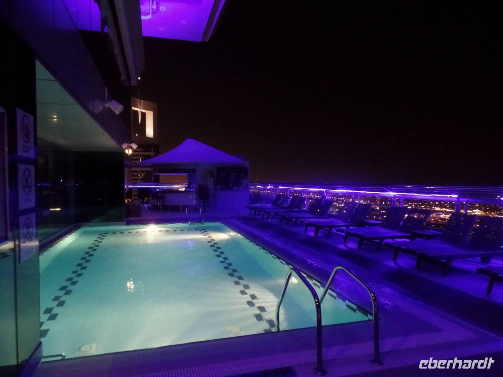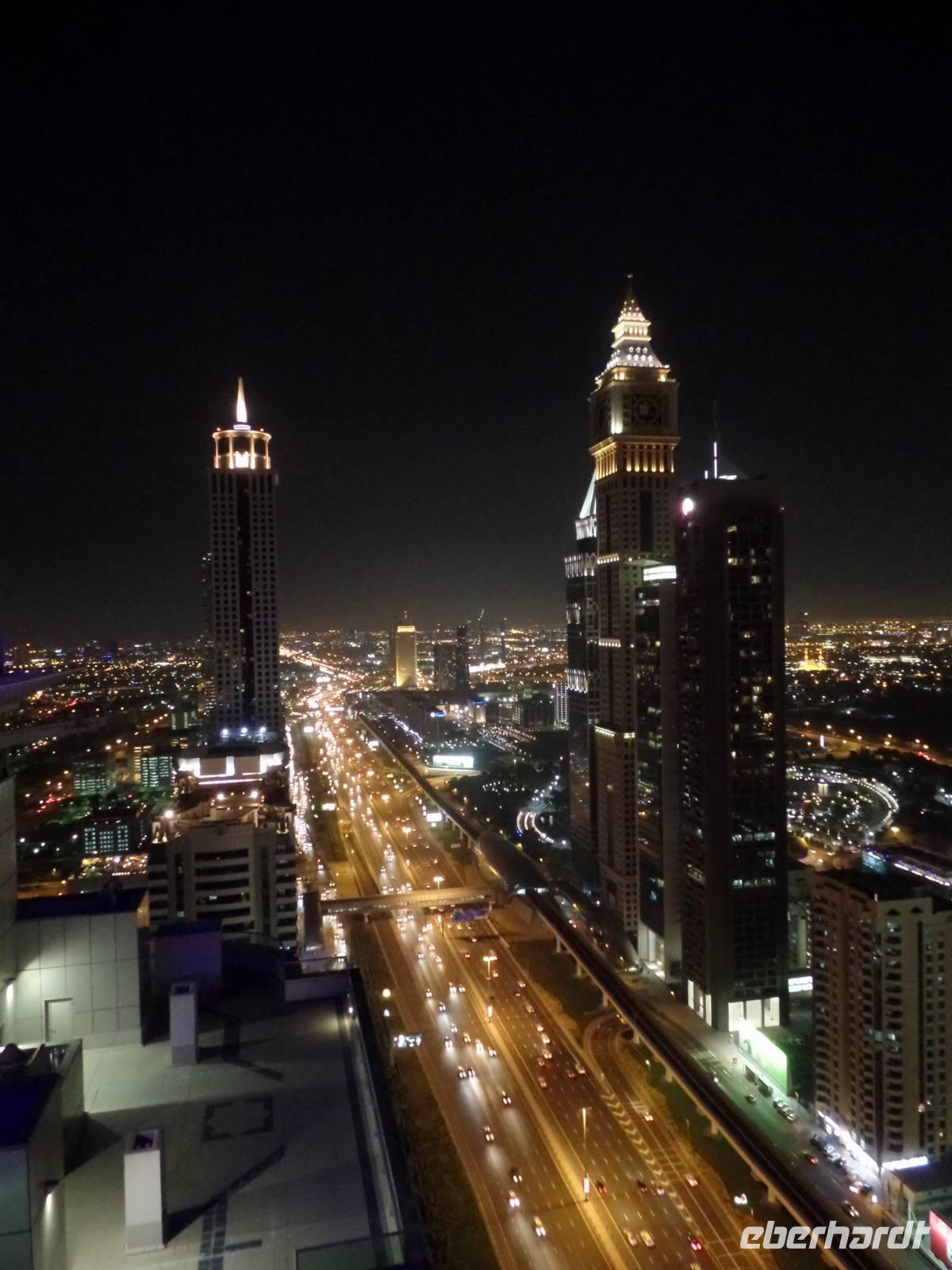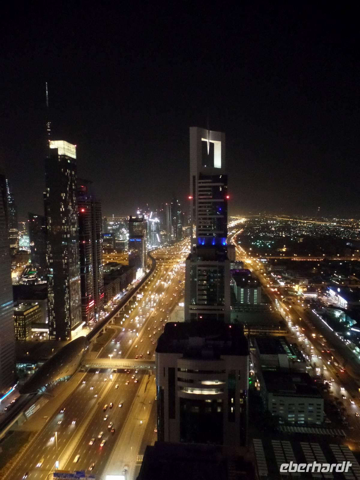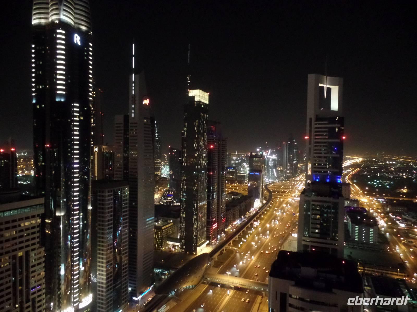 Sandra und ich luden die Gäste, die die Zeit bis es zum Flughafen ging nicht im Hotel verbringen wollten, noch ein, mit uns zu einer Bar zu fahren und einen letzten Blick über das schöne Emirat Dubai bei Nacht zu werfen. Der Ausblick von der Skybar war einfach überragend und ein wirklich schöner Abschluss einer tollen Reise.