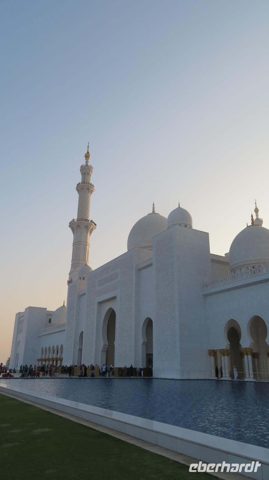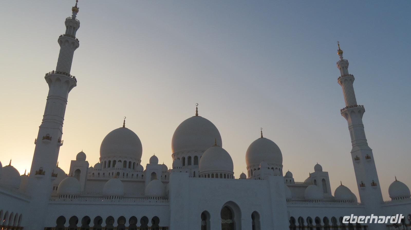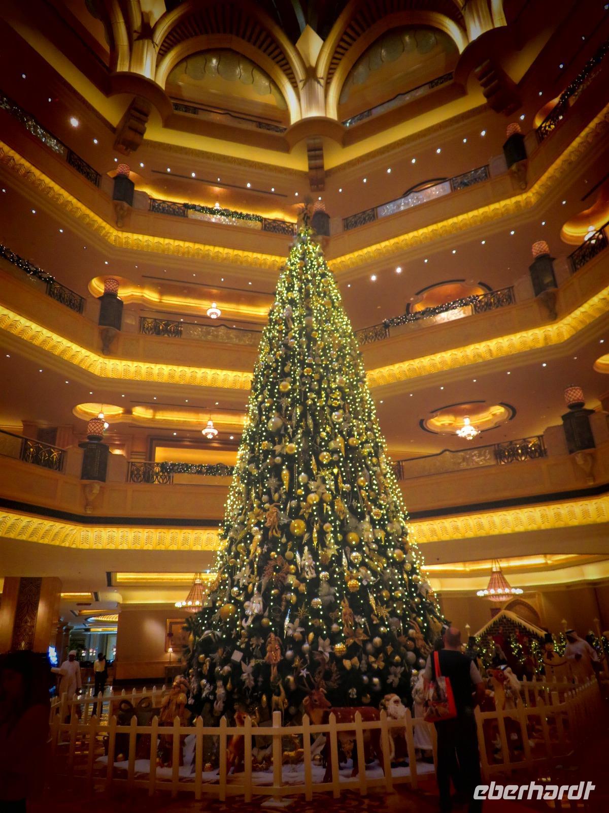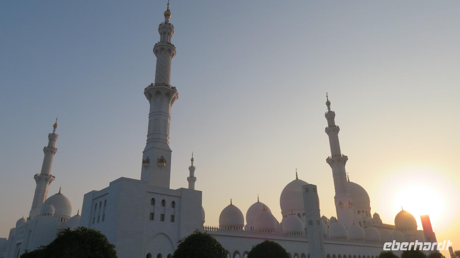 Nach einer wirklich sehr kurzen Nacht klingelt der Wecker und das Hotel lädt uns zum Frühstück ein. Ich war vor rund drei Jahren schon einmal in einem anderen Hotel in Dubai und ich muss ehrlich zugeben, dass ich vom Frühstück im Hotel Gloria sehr angetan bin. Hier gibt es internationales Frühstück: warme Gerichte für Gäste aus Asien, eine Omlette-Station, Wurst, Käse, Obst und dunkles Brot und Brötchen. Also so werden unsere Tage hier sehr gut starten. Um 08:00 Uhr erwartet uns unsere örtliche Reiseleiterin für die nächsten Tage, die liebe Anja, um uns zu begrüßen. Wir sind noch sehr verschlafen aber dennoch freuen wir uns auf unseren Ausflug nach Abu Dhabi. Nachdem wir im Bus Platz genommen haben, starten wir auch schon vorbei an der Dubai Marina, die wir aufgrund des starken Nebels nur erahnen können in Richtung Abu Dhabi. Anja beginnt schon mit ihren Erläuterungen und was ich persönlich sehr gut finde, wir können auch zwischendurch immer wieder unsere Fragen loswerden. Anja erzählt von sich auch immer wieder Kuriositäten so z.B. auch, dass der Scheich von Abu Dhabi für einen gewissen Zeitraum den Doppeldecker für Blitzbilder eingeführt hat. Wer also einmal geblitzt wurde, kann sich auch noch ein zweites Mal blitzen lassen und bezahlt nur einmal - was für ein Spaß. Als wir in das Emirat Abu Dhabi kommen, was man an den Straßenlaternen und dem Straßenbelag erkennt, klart sich das Wetter langsam auf und die Sonne kommt hervor. Unser erstes Ziel ist die Falkenklinik der deutschen Ärztin Frau Dr. Müller. Hier erleben wir eine Führung und lernen viel über Falken kennen. Zunächst werden wir in einen Raum geführt, wo es im Allgemeinen um die Klinik und die Falken geht. Danach führt uns der Guide in den Behandlungsraum, wo einige Falken auf ihre Behandlung warten. An denen erklärt er uns sowohl die Unterschiede zwischen männlichen und weiblichen Falken als auch den Falkenarten an sich. Danach werden wir Zeugen einer Falkenuntersuchung. Das Tier wird narkotisiert und die Krallen werden ihm geschliffen. Auch wird uns hier erklärt, was passiert, wenn eine Feder bricht. Für unsere Fragen nehmen sich die Ärzte auch Zeit. Als wir in einen Raum gebracht werden, in dem zahlreiche Pokale ausgestellt sind, haben wir auch die Gelegenheit in einen Saal hineinzuschauen, in dem ein Falke gerade geröntgt wird. Ein weiterer Punkt bei unserer Führung ist ein Haus, in dem die Falken untergebracht sind und wo das soziale Verhalten der Tiere beobachtet wird. Wer zum Schluss noch den Mut besitzt, kein sich einen Falken auf den Arm setzen lassen. Zurück im Bus ist unser nächstes Ziel Yas-Island, die Heimat der Formel-1-Rennstrecke. Nachdem wir die Erlaubnis haben, auf die kleine Insel aufzufahren, steigen wir aus dem Bus aus und werden erst einmal überrascht, was Weihnachten unter der Sonne bedeutet. Überall stehen noch geschmückte Tannenbäume und das typisch weihnachtliche Grüngesteck ist mit künstlichem Schnee besprüht. Wir nehmen uns jetzt die Zeit für einen Fotostopp mit dem Motiv der Rennstrecke. Irgendeine Übungsrallye wird gerade gefahren denn wir hören die Motoren immer wieder vorbei rauschen. Ein leichtes Gänsehautgefühl überkommt uns. Danach fahren wir weiter nach Abu Dhabi-Stadt. Vorbei an der Ferrari-World und dem Louvre sehen wir schon die Hochhäuser von Abu Dhabi. Eigentlich wollen wir jetzt einen Stopp am Heritage Village machen aber leider ist dieses heute geschlossen. Wahrscheinlich wird hier gerade eine (Silvester-)Veranstaltung vorbereitet. Also machen wir unsere Pause in der Abu Dhabi-Mall und nutzen gleich einmal die Zeit zum Geldtausch oder zum Umziehen für unseren High-5-Tea im 7-Sterne-Hotel „Emirates Palace". Als wir hier vorfahren, begrüßen uns Wasserfontänen und wir müssen erst einmal die obligatorischen Beweisbilder knipsen. Im Inneren der Lobby steht noch der große Weihnachtsbaum, an dem uns Anja vorbei führt. Nun genießen wir unsere Tee-Stunde. Zunächst bekommen wir einen Cappuccino mit Goldblättern serviert. Danach langen wir bei der dreistöckigen Etegere zu. Ganz oben gibt es herzhafte Snacks und Sandwiches, in der Mitte eine Art Brötchen zu denen uns Cremes serviert werden und in der unteren Etage sind süße Highlights drapiert. Dazu werden weiter Tee und Kaffee gereicht. Wir fühlen uns sehr gut aufgehoben und irgendwie besonders - und das ist es auch. Gut gestärkt steht nun unser letzter Programmpunkt auf der Liste: wir besuchen die Sheikh-Zayed-Moschee, eine der schönsten Moscheen weltweit. Sie erinnert mich persönlich irgendwie an Märchen aus 1.001 Nacht. Während Anja unseren Rundgang erläutert, halte ich im hinteren Teil die Fotografen zusammen, die sich hier wahrlich „austoben" können. Nachdem wir durch den Innenhof gewandelt sind, sehen wir im Inneren der Moschee die Gebetsuhr, wunderschöne Wandgemälde und bunte Kronleuchter - einfach einmalig und kaum in Worte zu fassen. Ich kann nur jedem den Besuch dieser Moschee empfehlen. Als wir gehen, hören wir im Hintergrund noch den Muezzin singen. Da der Tag heute doch recht lang ist, nutzt ein Großteil meiner Gruppe die Fahrt zurück nach Dubai für ein Schläfchen den schlussendlich ist der Tag noch nicht zu Ende für uns: wir haben noch unser Abendessen im „Shape-Restaurant" im The-adress-Hotel in der Dubai Marina. Wir sitzen draußen auf der Terrasse und genießen den Ausblick auf die beleuchtete Marina und dem Restaurant „Pier 7", wo wir den Silvesterabend verbringen werden. Das Essen hier schmeckt wirklich gut - eine gut ausgewählte Location von unserer örtlichen Agentur. Dennoch sind wir auch glücklich, als wir am Abend endlich in unsere Betten fallen.