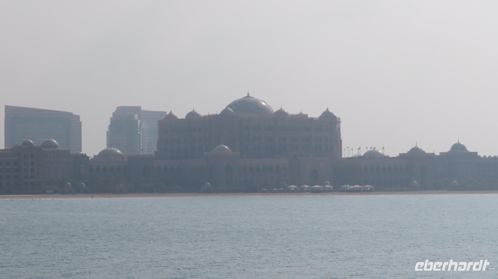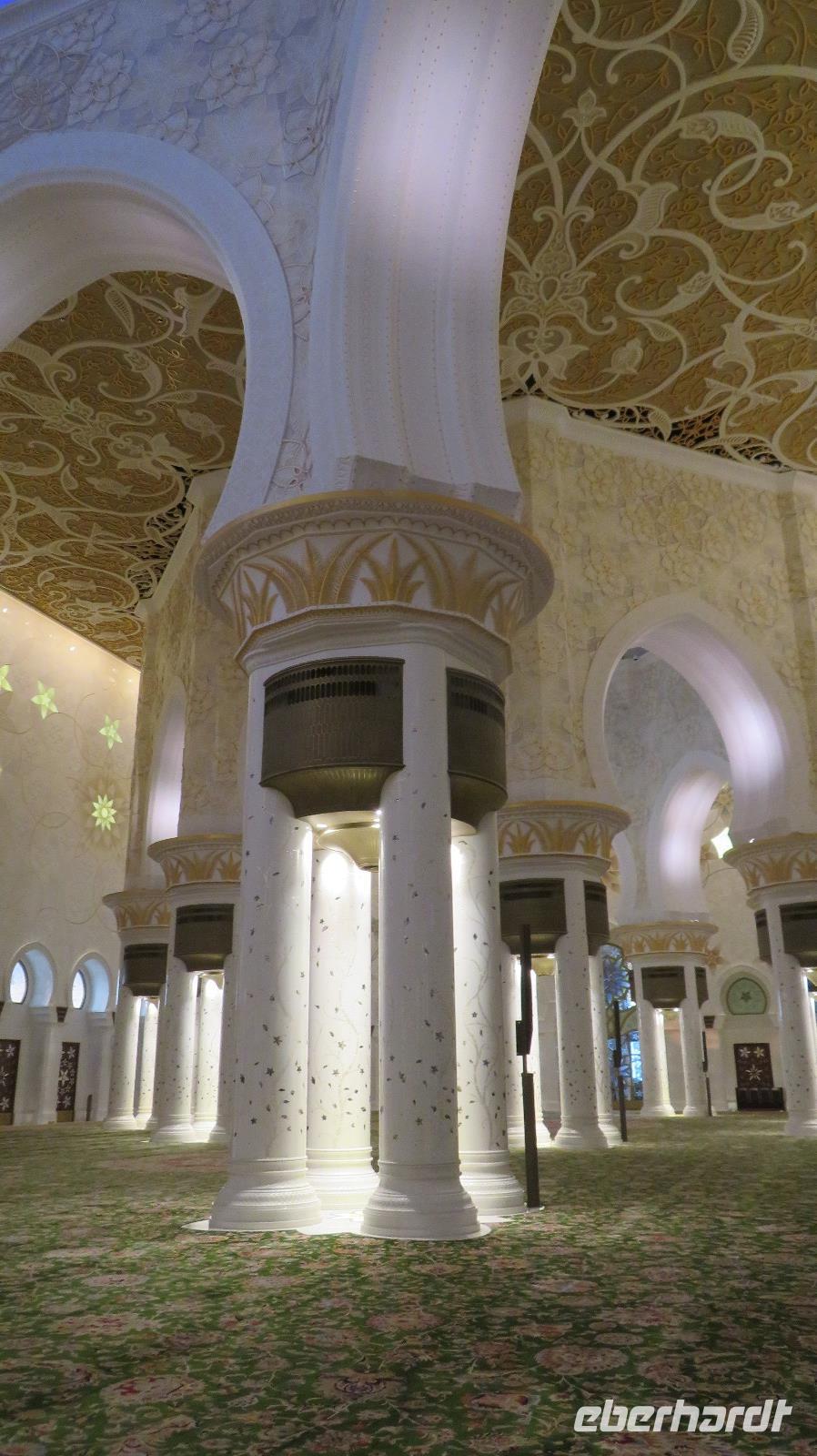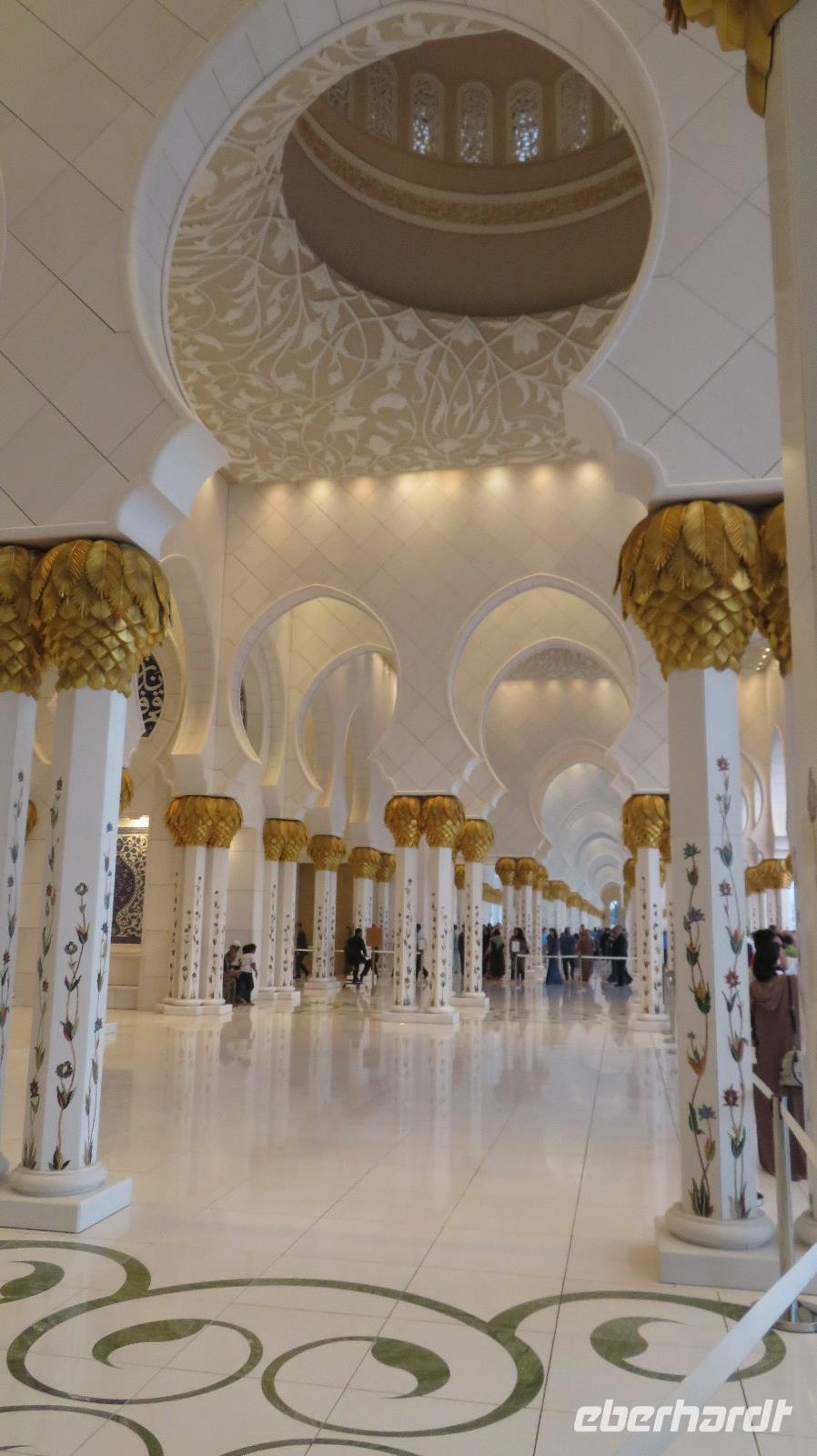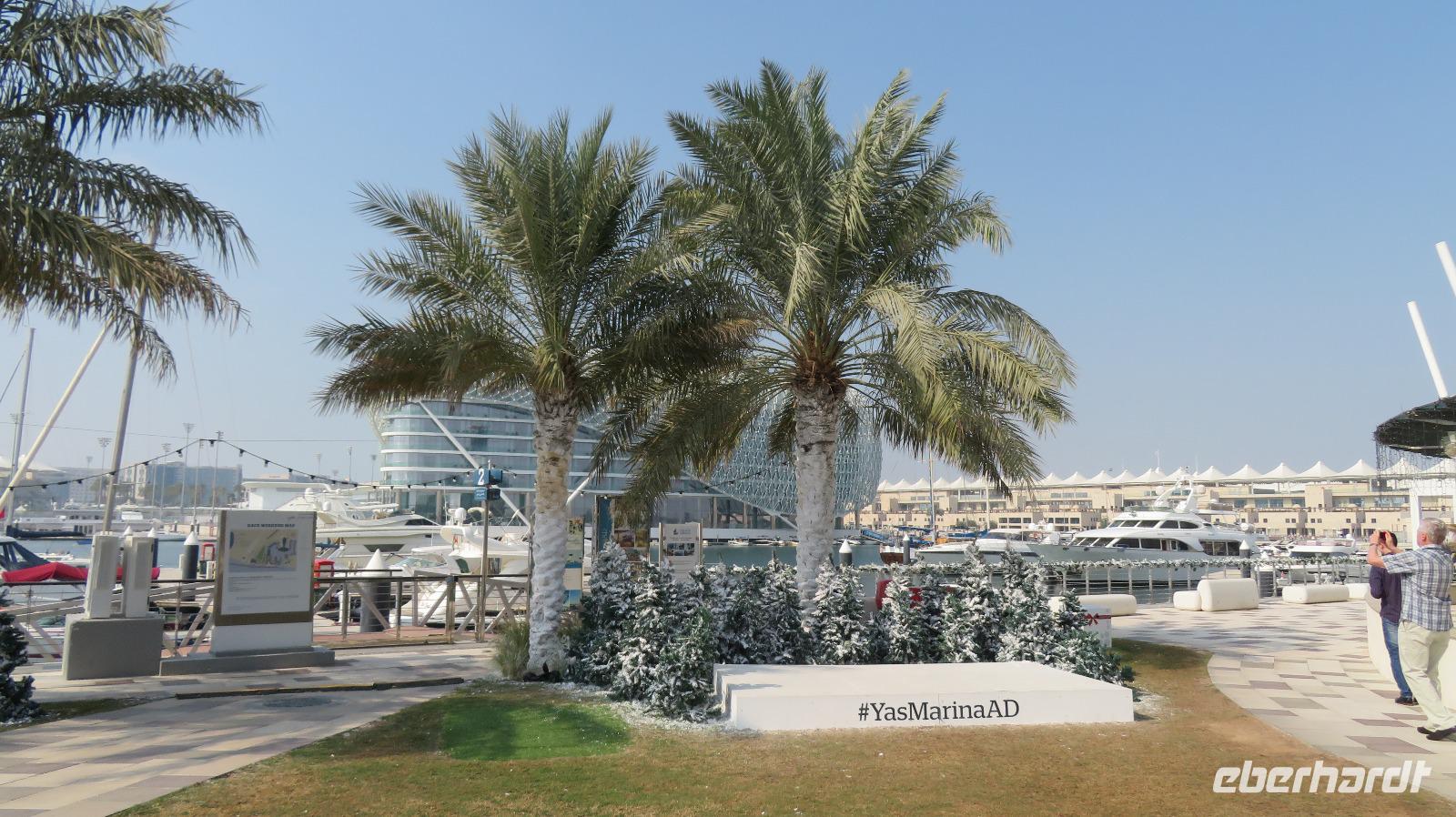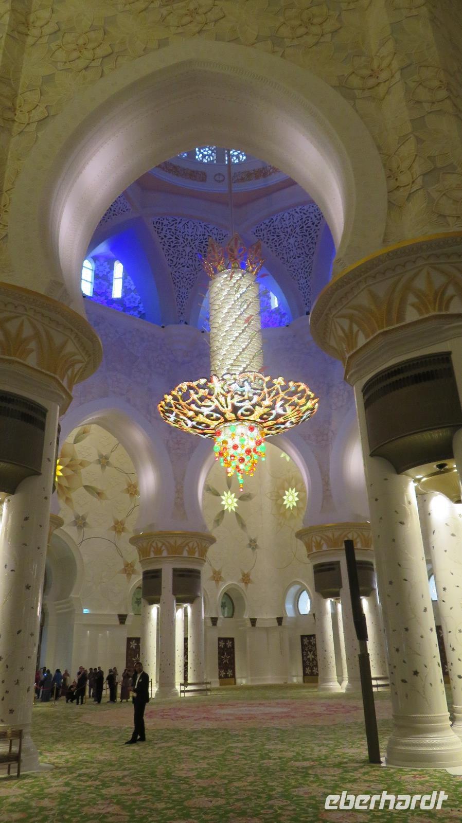 Nach einer wirklich sehr kurzen Nacht klingelt der Wecker und das Hotel lädt uns zum Frühstück ein. Ich war vor rund drei Jahren schon einmal in einem anderen Hotel in Dubai und ich muss ehrlich zugeben, dass ich vom Frühstück im Hotel Gloria sehr angetan bin. Hier gibt es internationales Frühstück: warme Gerichte für Gäste aus Asien, eine Omlette-Station, Wurst, Käse, Obst und dunkles Brot und Brötchen. Also so werden unsere Tage hier sehr gut starten. Um 08:00 Uhr erwartet uns unsere örtliche Reiseleiterin für die nächsten Tage, die liebe Anja, um uns zu begrüßen. Wir sind noch sehr verschlafen aber dennoch freuen wir uns auf unseren Ausflug nach Abu Dhabi. Nachdem wir im Bus Platz genommen haben, starten wir auch schon vorbei an der Dubai Marina, die wir aufgrund des starken Nebels nur erahnen können in Richtung Abu Dhabi. Anja beginnt schon mit ihren Erläuterungen und was ich persönlich sehr gut finde, wir können auch zwischendurch immer wieder unsere Fragen loswerden. Anja erzählt von sich auch immer wieder Kuriositäten so z.B. auch, dass der Scheich von Abu Dhabi für einen gewissen Zeitraum den Doppeldecker für Blitzbilder eingeführt hat. Wer also einmal geblitzt wurde, kann sich auch noch ein zweites Mal blitzen lassen und bezahlt nur einmal - was für ein Spaß. Als wir in das Emirat Abu Dhabi kommen, was man an den Straßenlaternen und dem Straßenbelag erkennt, klart sich das Wetter langsam auf und die Sonne kommt hervor. Unser erstes Ziel ist die Falkenklinik der deutschen Ärztin Frau Dr. Müller. Hier erleben wir eine Führung und lernen viel über Falken kennen. Zunächst werden wir in einen Raum geführt, wo es im Allgemeinen um die Klinik und die Falken geht. Danach führt uns der Guide in den Behandlungsraum, wo einige Falken auf ihre Behandlung warten. An denen erklärt er uns sowohl die Unterschiede zwischen männlichen und weiblichen Falken als auch den Falkenarten an sich. Danach werden wir Zeugen einer Falkenuntersuchung. Das Tier wird narkotisiert und die Krallen werden ihm geschliffen. Auch wird uns hier erklärt, was passiert, wenn eine Feder bricht. Für unsere Fragen nehmen sich die Ärzte auch Zeit. Als wir in einen Raum gebracht werden, in dem zahlreiche Pokale ausgestellt sind, haben wir auch die Gelegenheit in einen Saal hineinzuschauen, in dem ein Falke gerade geröntgt wird. Ein weiterer Punkt bei unserer Führung ist ein Haus, in dem die Falken untergebracht sind und wo das soziale Verhalten der Tiere beobachtet wird. Wer zum Schluss noch den Mut besitzt, kein sich einen Falken auf den Arm setzen lassen. Zurück im Bus ist unser nächstes Ziel Yas-Island, die Heimat der Formel-1-Rennstrecke. Nachdem wir die Erlaubnis haben, auf die kleine Insel aufzufahren, steigen wir aus dem Bus aus und werden erst einmal überrascht, was Weihnachten unter der Sonne bedeutet. Überall stehen noch geschmückte Tannenbäume und das typisch weihnachtliche Grüngesteck ist mit künstlichem Schnee besprüht. Wir nehmen uns jetzt die Zeit für einen Fotostopp mit dem Motiv der Rennstrecke. Irgendeine Übungsrallye wird gerade gefahren denn wir hören die Motoren immer wieder vorbei rauschen. Ein leichtes Gänsehautgefühl überkommt uns. Danach fahren wir weiter nach Abu Dhabi-Stadt. Vorbei an der Ferrari-World und dem Louvre sehen wir schon die Hochhäuser von Abu Dhabi. Eigentlich wollen wir jetzt einen Stopp am Heritage Village machen aber leider ist dieses heute geschlossen. Wahrscheinlich wird hier gerade eine (Silvester-)Veranstaltung vorbereitet. Also machen wir unsere Pause in der Abu Dhabi-Mall und nutzen gleich einmal die Zeit zum Geldtausch oder zum Umziehen für unseren High-5-Tea im 7-Sterne-Hotel „Emirates Palace". Als wir hier vorfahren, begrüßen uns Wasserfontänen und wir müssen erst einmal die obligatorischen Beweisbilder knipsen. Im Inneren der Lobby steht noch der große Weihnachtsbaum, an dem uns Anja vorbei führt. Nun genießen wir unsere Tee-Stunde. Zunächst bekommen wir einen Cappuccino mit Goldblättern serviert. Danach langen wir bei der dreistöckigen Etegere zu. Ganz oben gibt es herzhafte Snacks und Sandwiches, in der Mitte eine Art Brötchen zu denen uns Cremes serviert werden und in der unteren Etage sind süße Highlights drapiert. Dazu werden weiter Tee und Kaffee gereicht. Wir fühlen uns sehr gut aufgehoben und irgendwie besonders - und das ist es auch. Gut gestärkt steht nun unser letzter Programmpunkt auf der Liste: wir besuchen die Sheikh-Zayed-Moschee, eine der schönsten Moscheen weltweit. Sie erinnert mich persönlich irgendwie an Märchen aus 1.001 Nacht. Während Anja unseren Rundgang erläutert, halte ich im hinteren Teil die Fotografen zusammen, die sich hier wahrlich „austoben" können. Nachdem wir durch den Innenhof gewandelt sind, sehen wir im Inneren der Moschee die Gebetsuhr, wunderschöne Wandgemälde und bunte Kronleuchter - einfach einmalig und kaum in Worte zu fassen. Ich kann nur jedem den Besuch dieser Moschee empfehlen. Als wir gehen, hören wir im Hintergrund noch den Muezzin singen. Da der Tag heute doch recht lang ist, nutzt ein Großteil meiner Gruppe die Fahrt zurück nach Dubai für ein Schläfchen den schlussendlich ist der Tag noch nicht zu Ende für uns: wir haben noch unser Abendessen im „Shape-Restaurant" im The-adress-Hotel in der Dubai Marina. Wir sitzen draußen auf der Terrasse und genießen den Ausblick auf die beleuchtete Marina und dem Restaurant „Pier 7", wo wir den Silvesterabend verbringen werden. Das Essen hier schmeckt wirklich gut - eine gut ausgewählte Location von unserer örtlichen Agentur. Dennoch sind wir auch glücklich, als wir am Abend endlich in unsere Betten fallen.