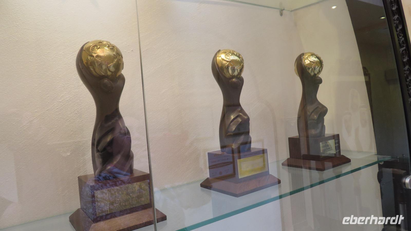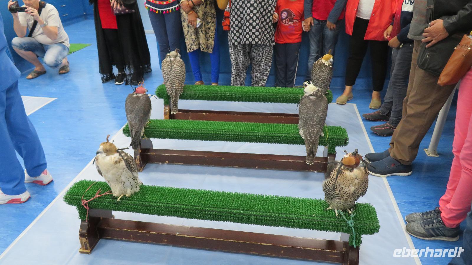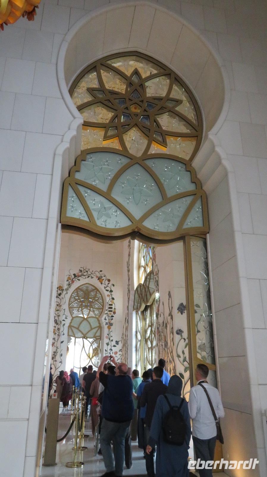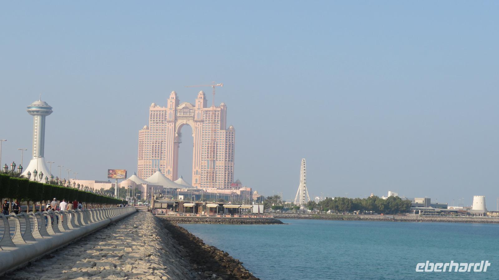 Nach einer wirklich sehr kurzen Nacht klingelt der Wecker und das Hotel lädt uns zum Frühstück ein. Ich war vor rund drei Jahren schon einmal in einem anderen Hotel in Dubai und ich muss ehrlich zugeben, dass ich vom Frühstück im Hotel Gloria sehr angetan bin. Hier gibt es internationales Frühstück: warme Gerichte für Gäste aus Asien, eine Omlette-Station, Wurst, Käse, Obst und dunkles Brot und Brötchen. Also so werden unsere Tage hier sehr gut starten. Um 08:00 Uhr erwartet uns unsere örtliche Reiseleiterin für die nächsten Tage, die liebe Anja, um uns zu begrüßen. Wir sind noch sehr verschlafen aber dennoch freuen wir uns auf unseren Ausflug nach Abu Dhabi. Nachdem wir im Bus Platz genommen haben, starten wir auch schon vorbei an der Dubai Marina, die wir aufgrund des starken Nebels nur erahnen können in Richtung Abu Dhabi. Anja beginnt schon mit ihren Erläuterungen und was ich persönlich sehr gut finde, wir können auch zwischendurch immer wieder unsere Fragen loswerden. Anja erzählt von sich auch immer wieder Kuriositäten so z.B. auch, dass der Scheich von Abu Dhabi für einen gewissen Zeitraum den Doppeldecker für Blitzbilder eingeführt hat. Wer also einmal geblitzt wurde, kann sich auch noch ein zweites Mal blitzen lassen und bezahlt nur einmal - was für ein Spaß. Als wir in das Emirat Abu Dhabi kommen, was man an den Straßenlaternen und dem Straßenbelag erkennt, klart sich das Wetter langsam auf und die Sonne kommt hervor. Unser erstes Ziel ist die Falkenklinik der deutschen Ärztin Frau Dr. Müller. Hier erleben wir eine Führung und lernen viel über Falken kennen. Zunächst werden wir in einen Raum geführt, wo es im Allgemeinen um die Klinik und die Falken geht. Danach führt uns der Guide in den Behandlungsraum, wo einige Falken auf ihre Behandlung warten. An denen erklärt er uns sowohl die Unterschiede zwischen männlichen und weiblichen Falken als auch den Falkenarten an sich. Danach werden wir Zeugen einer Falkenuntersuchung. Das Tier wird narkotisiert und die Krallen werden ihm geschliffen. Auch wird uns hier erklärt, was passiert, wenn eine Feder bricht. Für unsere Fragen nehmen sich die Ärzte auch Zeit. Als wir in einen Raum gebracht werden, in dem zahlreiche Pokale ausgestellt sind, haben wir auch die Gelegenheit in einen Saal hineinzuschauen, in dem ein Falke gerade geröntgt wird. Ein weiterer Punkt bei unserer Führung ist ein Haus, in dem die Falken untergebracht sind und wo das soziale Verhalten der Tiere beobachtet wird. Wer zum Schluss noch den Mut besitzt, kein sich einen Falken auf den Arm setzen lassen. Zurück im Bus ist unser nächstes Ziel Yas-Island, die Heimat der Formel-1-Rennstrecke. Nachdem wir die Erlaubnis haben, auf die kleine Insel aufzufahren, steigen wir aus dem Bus aus und werden erst einmal überrascht, was Weihnachten unter der Sonne bedeutet. Überall stehen noch geschmückte Tannenbäume und das typisch weihnachtliche Grüngesteck ist mit künstlichem Schnee besprüht. Wir nehmen uns jetzt die Zeit für einen Fotostopp mit dem Motiv der Rennstrecke. Irgendeine Übungsrallye wird gerade gefahren denn wir hören die Motoren immer wieder vorbei rauschen. Ein leichtes Gänsehautgefühl überkommt uns. Danach fahren wir weiter nach Abu Dhabi-Stadt. Vorbei an der Ferrari-World und dem Louvre sehen wir schon die Hochhäuser von Abu Dhabi. Eigentlich wollen wir jetzt einen Stopp am Heritage Village machen aber leider ist dieses heute geschlossen. Wahrscheinlich wird hier gerade eine (Silvester-)Veranstaltung vorbereitet. Also machen wir unsere Pause in der Abu Dhabi-Mall und nutzen gleich einmal die Zeit zum Geldtausch oder zum Umziehen für unseren High-5-Tea im 7-Sterne-Hotel „Emirates Palace". Als wir hier vorfahren, begrüßen uns Wasserfontänen und wir müssen erst einmal die obligatorischen Beweisbilder knipsen. Im Inneren der Lobby steht noch der große Weihnachtsbaum, an dem uns Anja vorbei führt. Nun genießen wir unsere Tee-Stunde. Zunächst bekommen wir einen Cappuccino mit Goldblättern serviert. Danach langen wir bei der dreistöckigen Etegere zu. Ganz oben gibt es herzhafte Snacks und Sandwiches, in der Mitte eine Art Brötchen zu denen uns Cremes serviert werden und in der unteren Etage sind süße Highlights drapiert. Dazu werden weiter Tee und Kaffee gereicht. Wir fühlen uns sehr gut aufgehoben und irgendwie besonders - und das ist es auch. Gut gestärkt steht nun unser letzter Programmpunkt auf der Liste: wir besuchen die Sheikh-Zayed-Moschee, eine der schönsten Moscheen weltweit. Sie erinnert mich persönlich irgendwie an Märchen aus 1.001 Nacht. Während Anja unseren Rundgang erläutert, halte ich im hinteren Teil die Fotografen zusammen, die sich hier wahrlich „austoben" können. Nachdem wir durch den Innenhof gewandelt sind, sehen wir im Inneren der Moschee die Gebetsuhr, wunderschöne Wandgemälde und bunte Kronleuchter - einfach einmalig und kaum in Worte zu fassen. Ich kann nur jedem den Besuch dieser Moschee empfehlen. Als wir gehen, hören wir im Hintergrund noch den Muezzin singen. Da der Tag heute doch recht lang ist, nutzt ein Großteil meiner Gruppe die Fahrt zurück nach Dubai für ein Schläfchen den schlussendlich ist der Tag noch nicht zu Ende für uns: wir haben noch unser Abendessen im „Shape-Restaurant" im The-adress-Hotel in der Dubai Marina. Wir sitzen draußen auf der Terrasse und genießen den Ausblick auf die beleuchtete Marina und dem Restaurant „Pier 7", wo wir den Silvesterabend verbringen werden. Das Essen hier schmeckt wirklich gut - eine gut ausgewählte Location von unserer örtlichen Agentur. Dennoch sind wir auch glücklich, als wir am Abend endlich in unsere Betten fallen.
