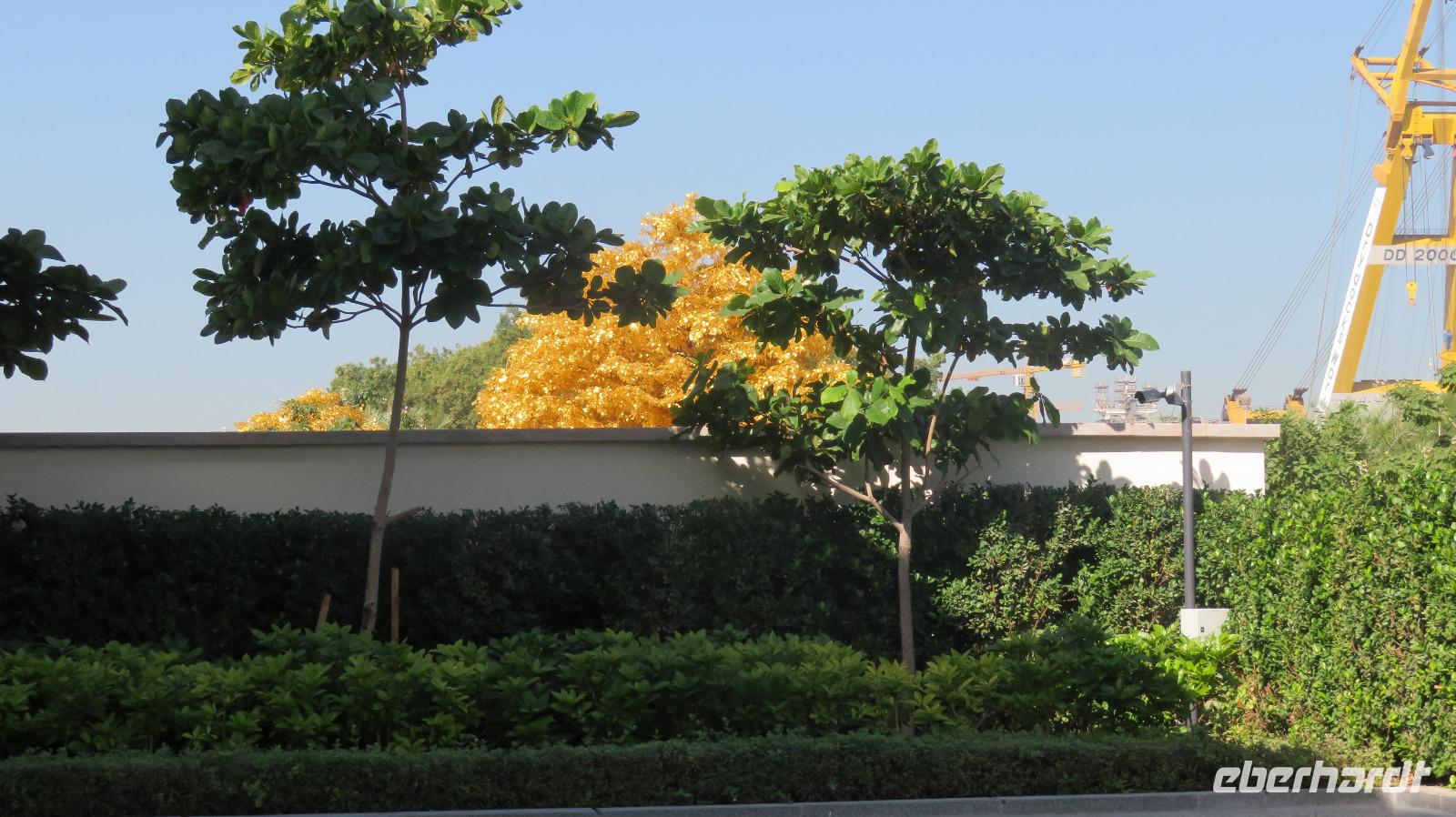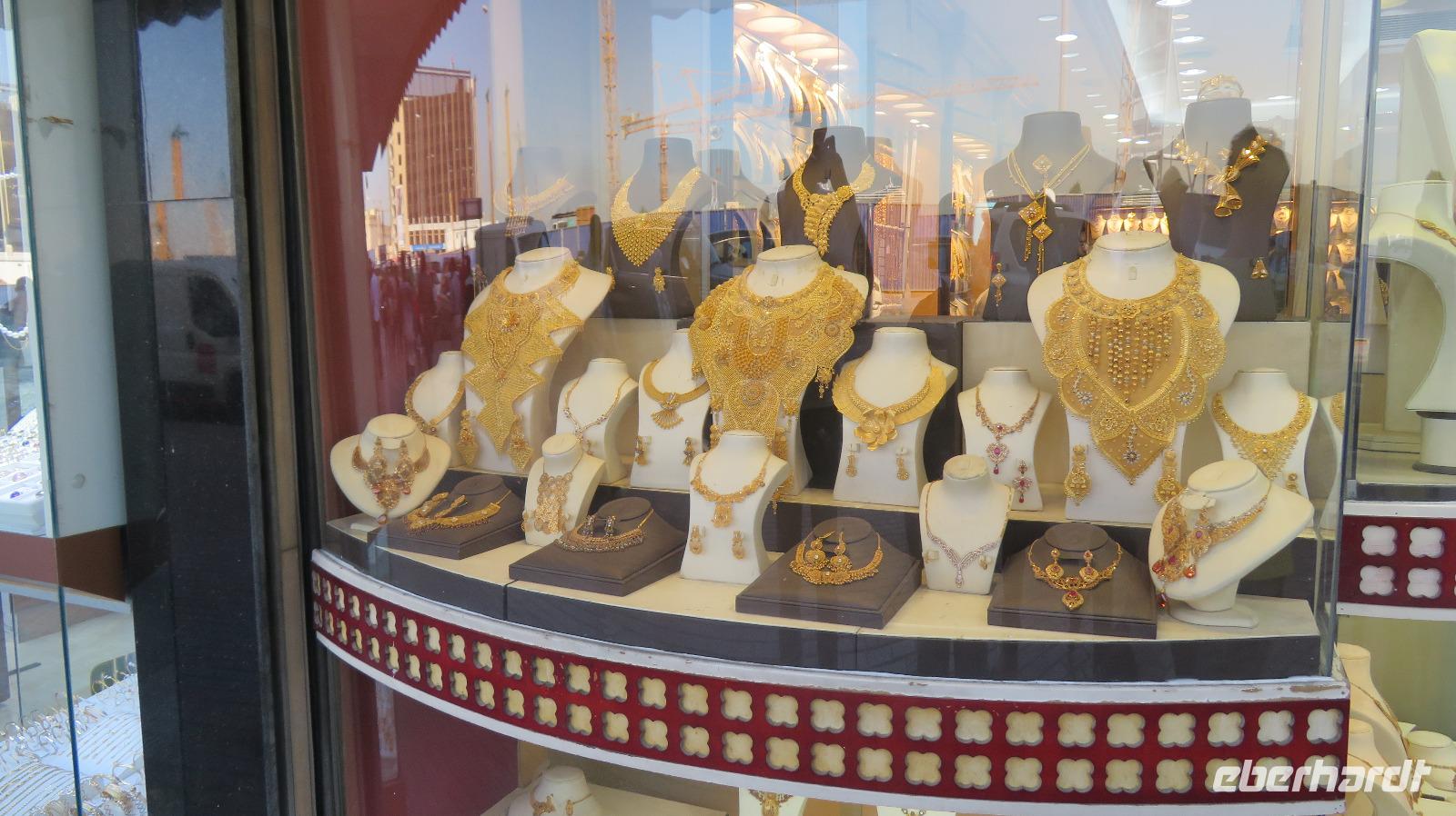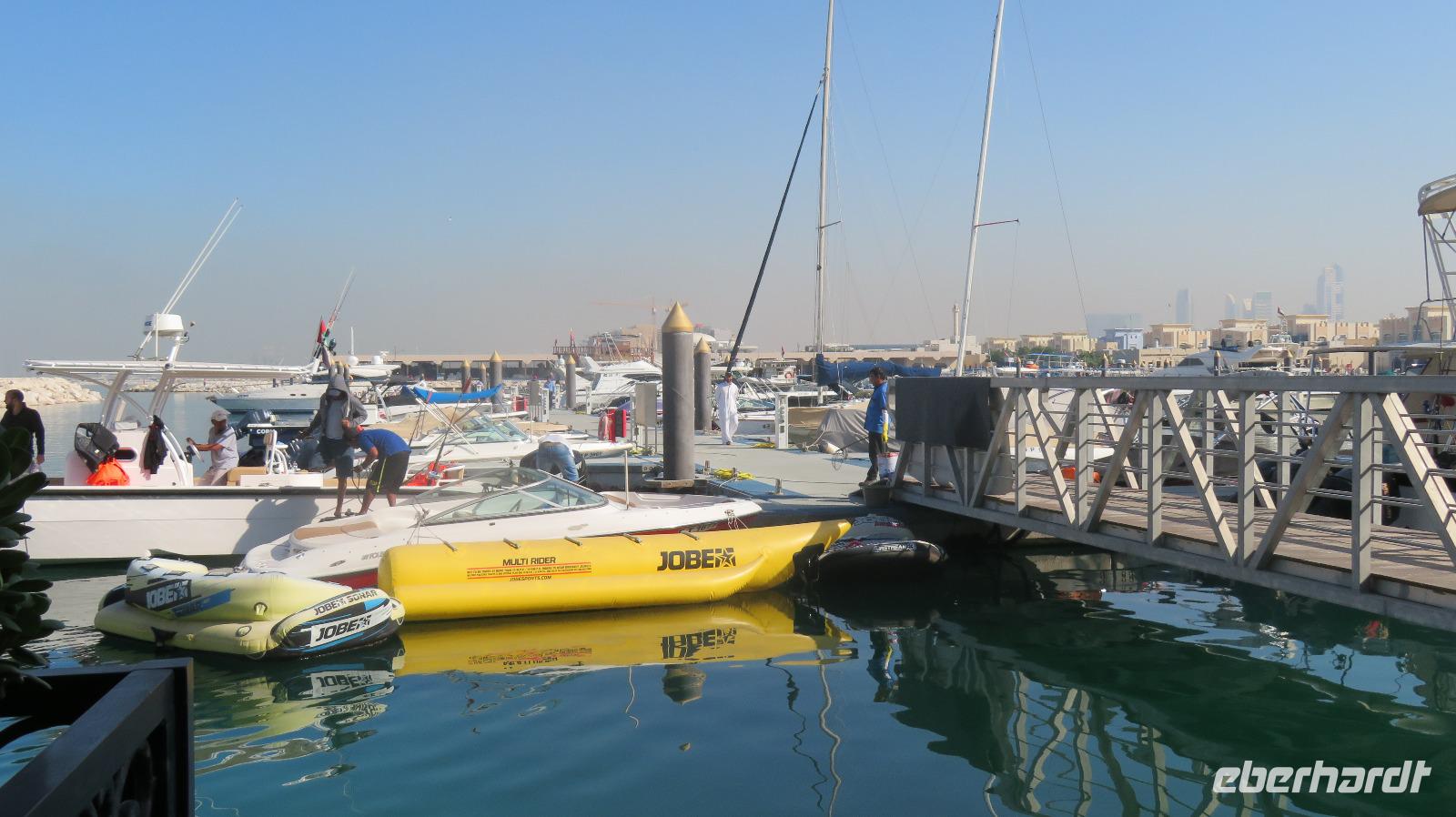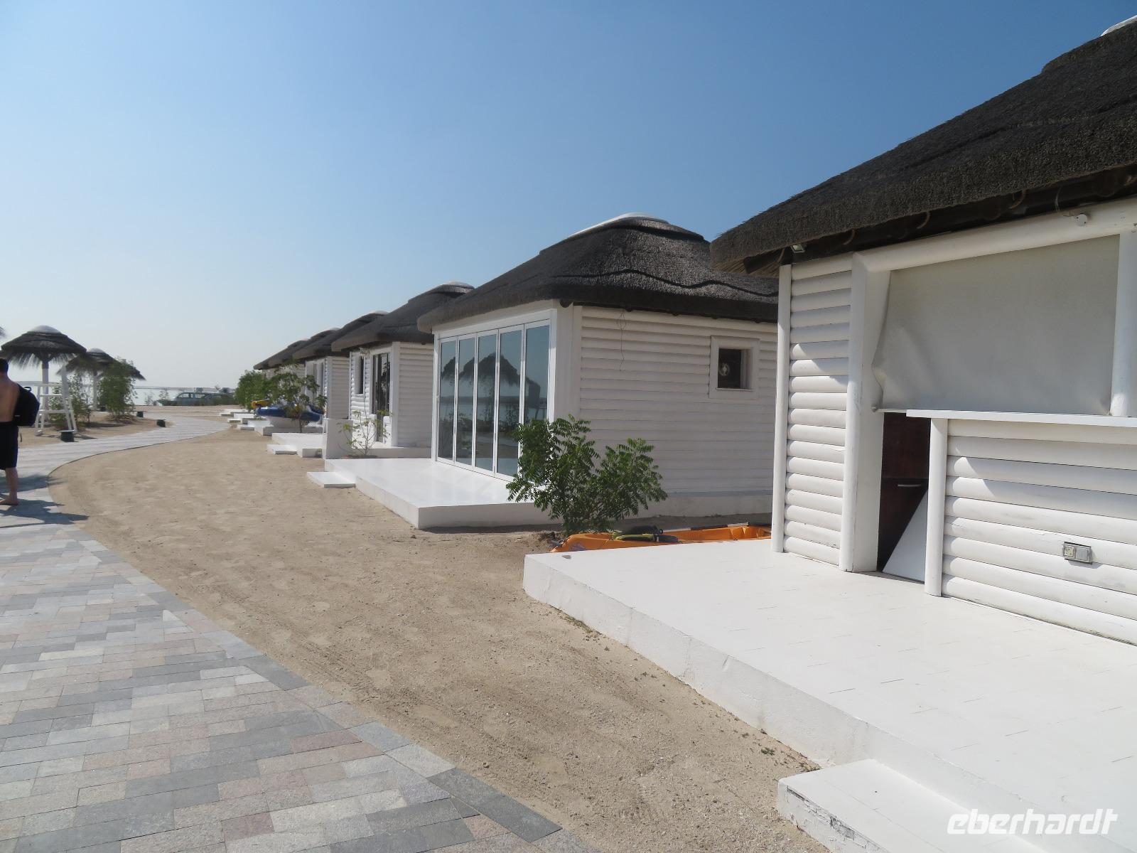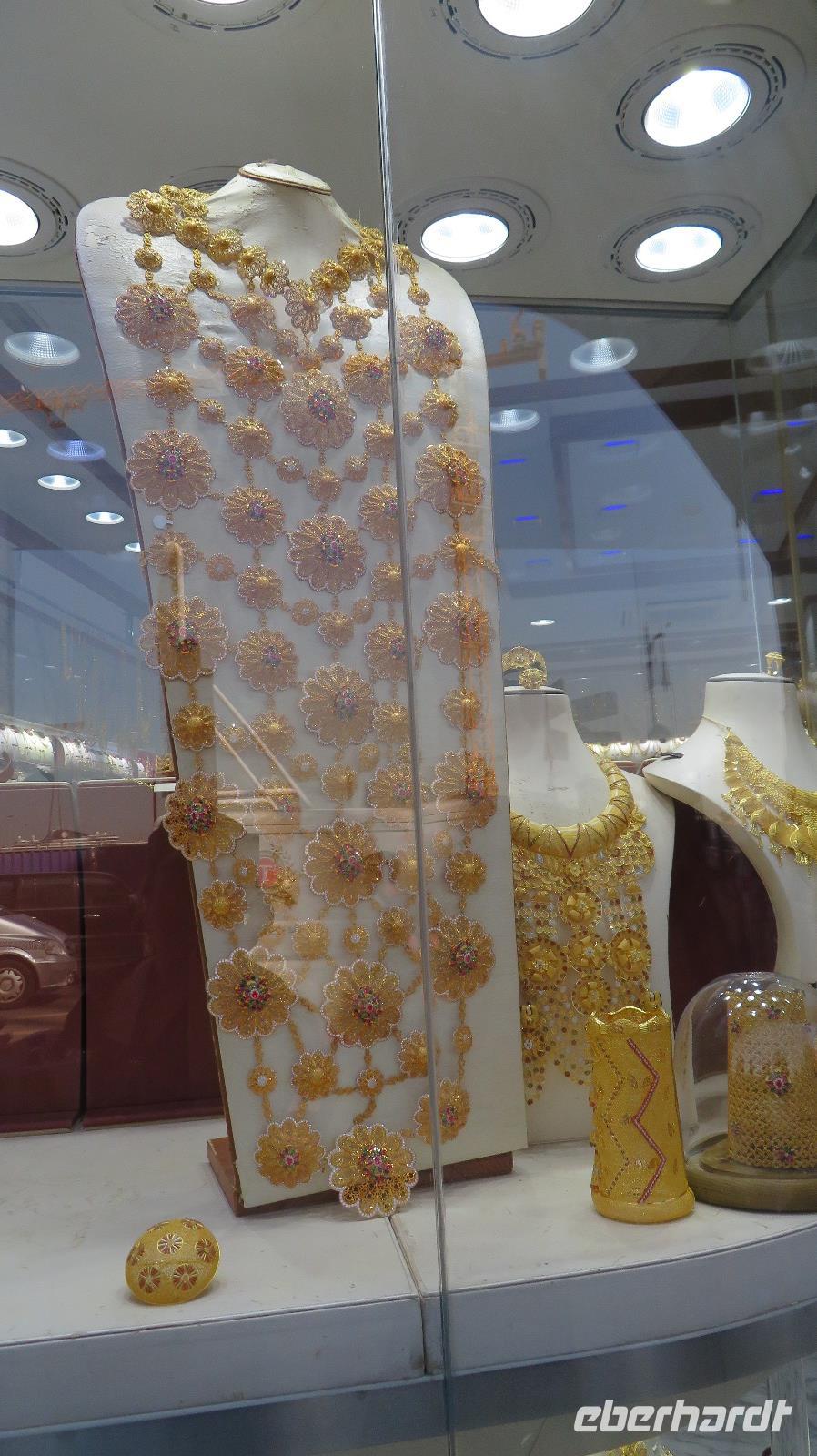Heute ist Anja sehr nett zu uns: der Ausflug in das moderne Dubai beginnt erst um 10 Uhr. Da sind wir dann auch alle ausgeschlafen,-). Wir begrüßen unseren Bus-Chauffeur, der uns zunächst zur Dubai Marina, einem der neueren Stadtteile bringt. Hier halten wir und haben Zeit, ein wenig die Marina entlang zu spazieren, die vielen (unfertigen) Hochhäuser und die zahlreichen Yachten zu bewundern. Hier lebt wirklich nur jemand, er auch wirklich Geld hat. Zurück im Bus lotst uns Anja durch den Stadtteil Marina, vorbei am Stadtteil Dubai Media City (wo unser Hotel liegt) hinaus auf die bekannte Palme, deren Stamm wir nun mit dem Bus befahren. Die Straßen, die links und rechts abgehen, führen zu den Palmenwedeln, private Wohngebiete die man nur gegen Vorlage von Berechtigungsausweisen befahren darf. Unser Ziel ist das berühmte Altantis-Hotel am Ende der Palme, das von beiden Seiten von Stränden begrenzt ist. Wir steigen hier aus und schlendern im hinteren Teil des Hotels, in der Einkaufsmeile entlang. Dies ist der einzige Zugang für diejenigen Gäste, die hier im Hotel keine Übernachtung gebucht haben. Zurück verlassen wir die Palme mit der Monorail. Von hier oben haben wir einen besseren Blick auf die Villen und Wedel der Palme, die wir dann von hier aus auch fotografieren können. Zurück im Bus fahren wir parallel zum arabischen Gold in Richtung altes Dubai. Allerdings ist dies nicht unser Ziel sondern wir halten am Hotel „Burj al Arab", das erste teure Hotel hier in Dubai. Anja erzählt uns aus ihrer Ankunftszeit, als das Burj al Arab das einzige Gebäude an seinem jetzigen Standort war, ohne die vielen zusätzlichen Hotels drumherum, den großen Straßen und den vielen Autos -irgendwie ist das heute gar nicht mehr vorstellbar.