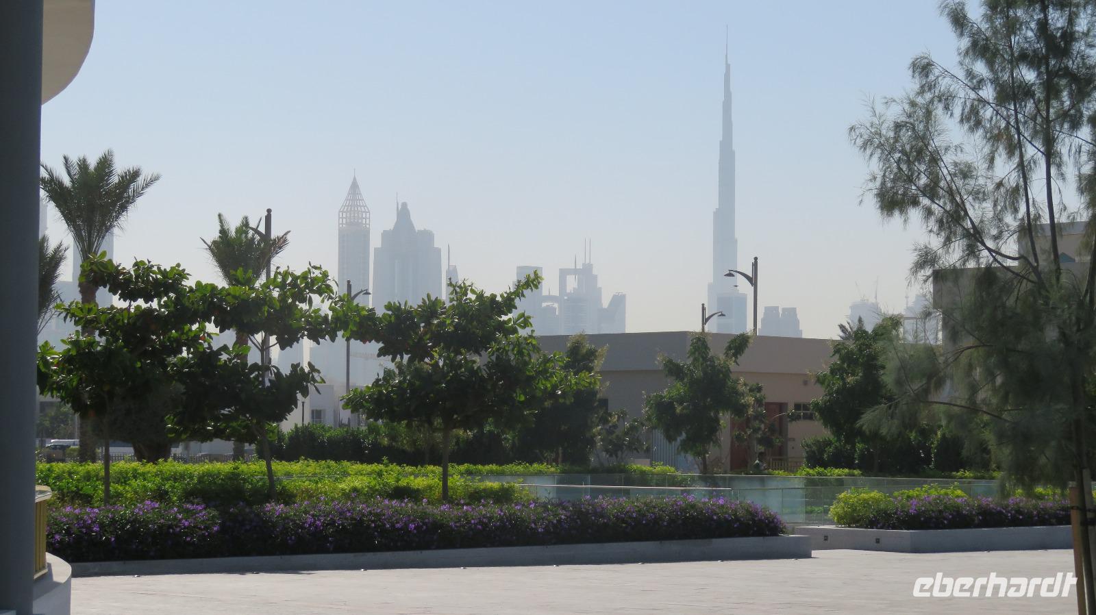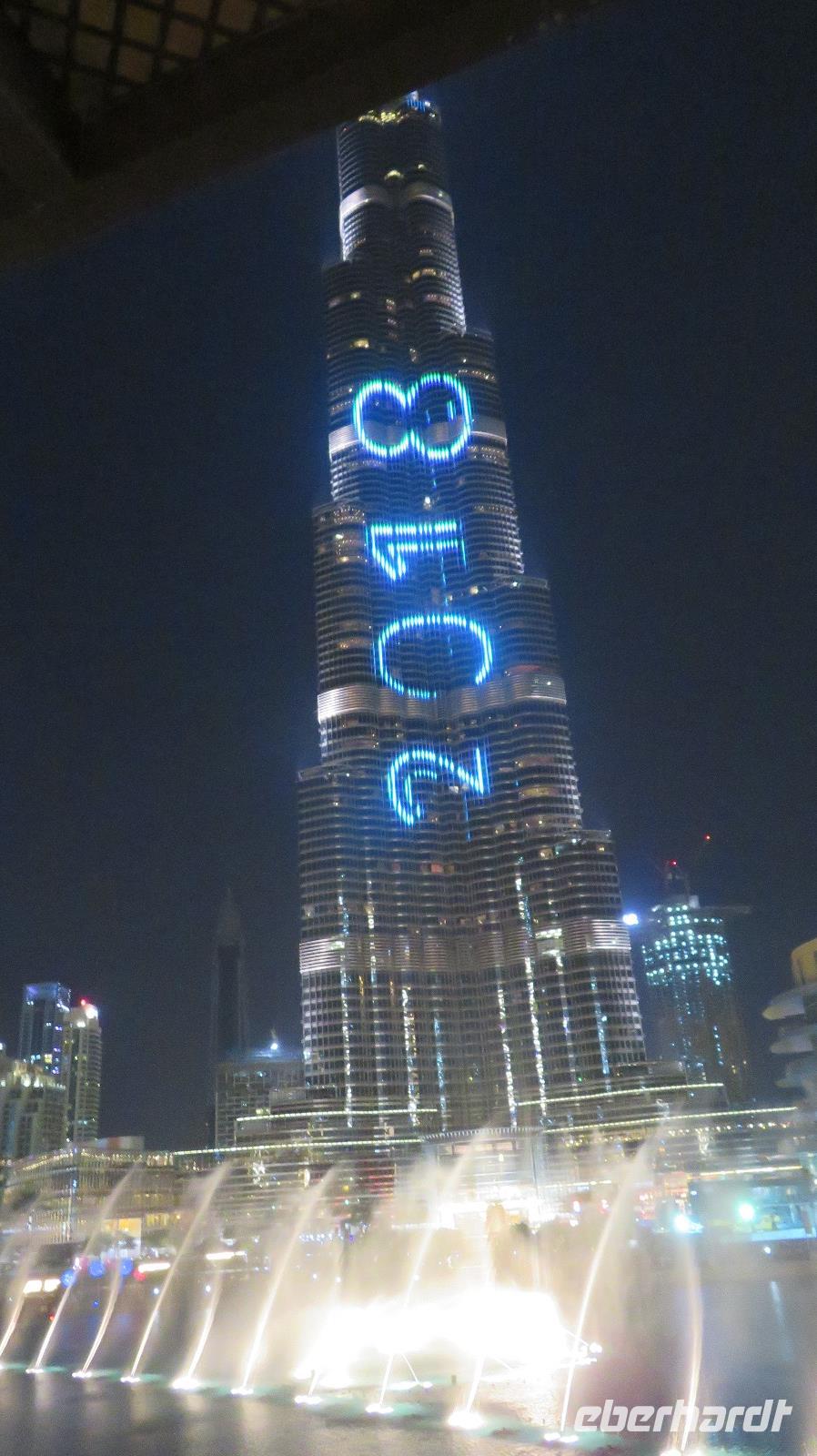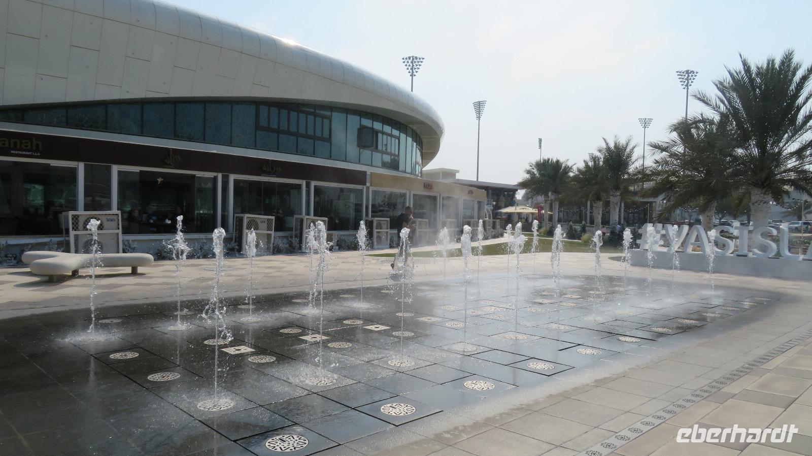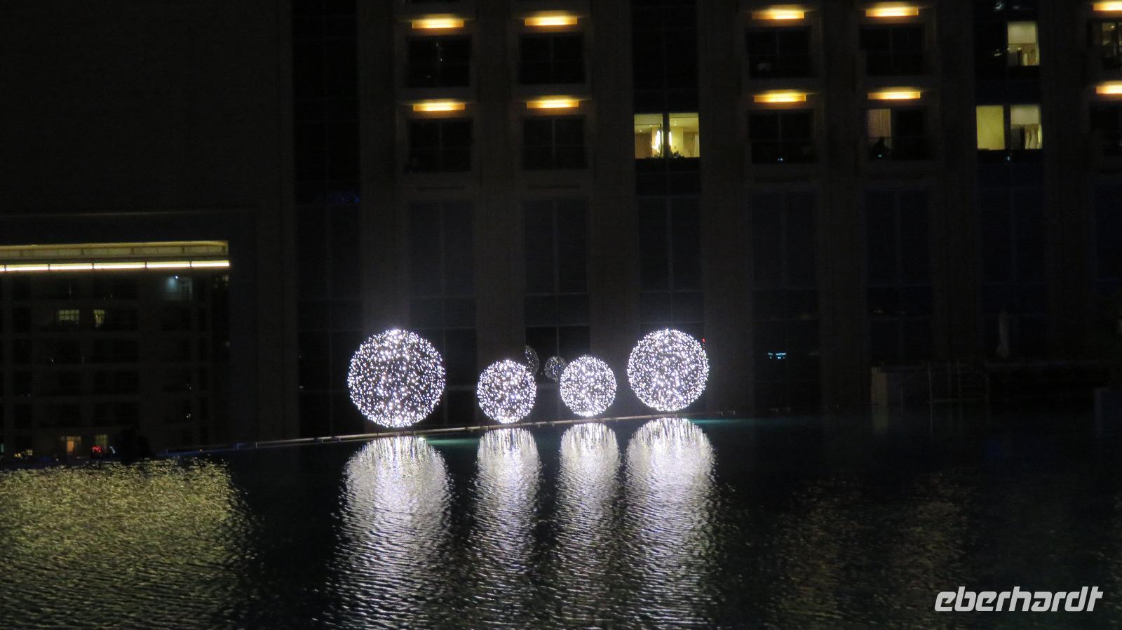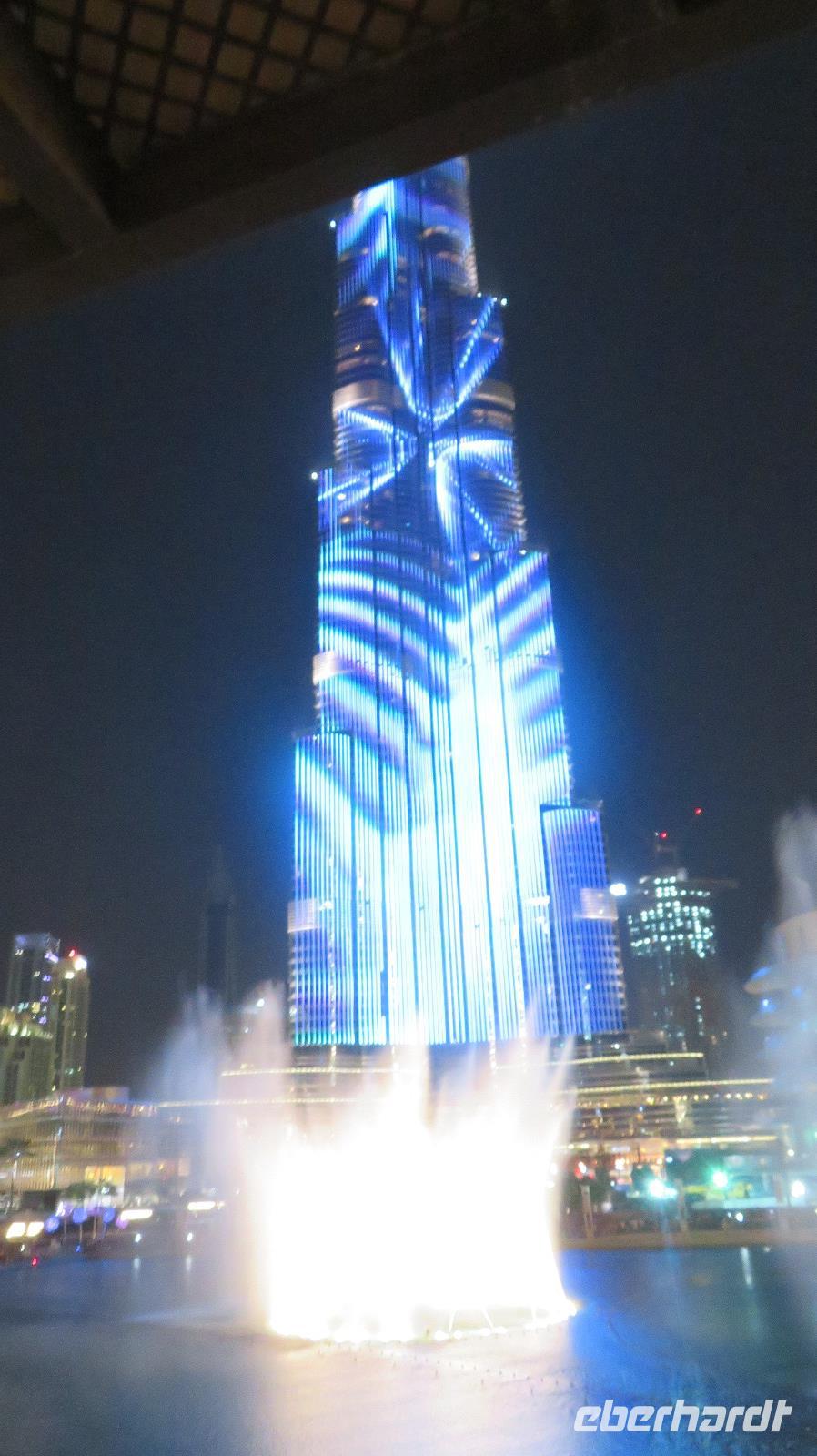 Danach treffen wir uns alle wieder und bestaunen zusammen die Wasserspiele, die halbstündlich vor dem Burj Khalifa aufgeführt werden. Da alle Gäste aus meiner Gruppe die Erlebnis-Halbpension gebucht haben, spazieren wir dann in den Souk und nehmen in der zweiten Etage auf der Terrasse eines Restaurants Platz. Hier genießen wir nicht nur Köstlichkeiten aus der libanesischen Küche sondern sehen auch ohne viel Aufwand und hunderten anderen Menschen um uns herum noch einmal die Wasserspiele, die auch immer zu anders untermalt von unterschiedlichen Musikstücken dargeboten werden.