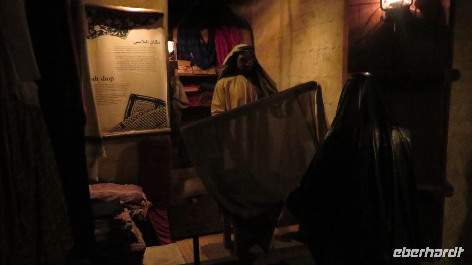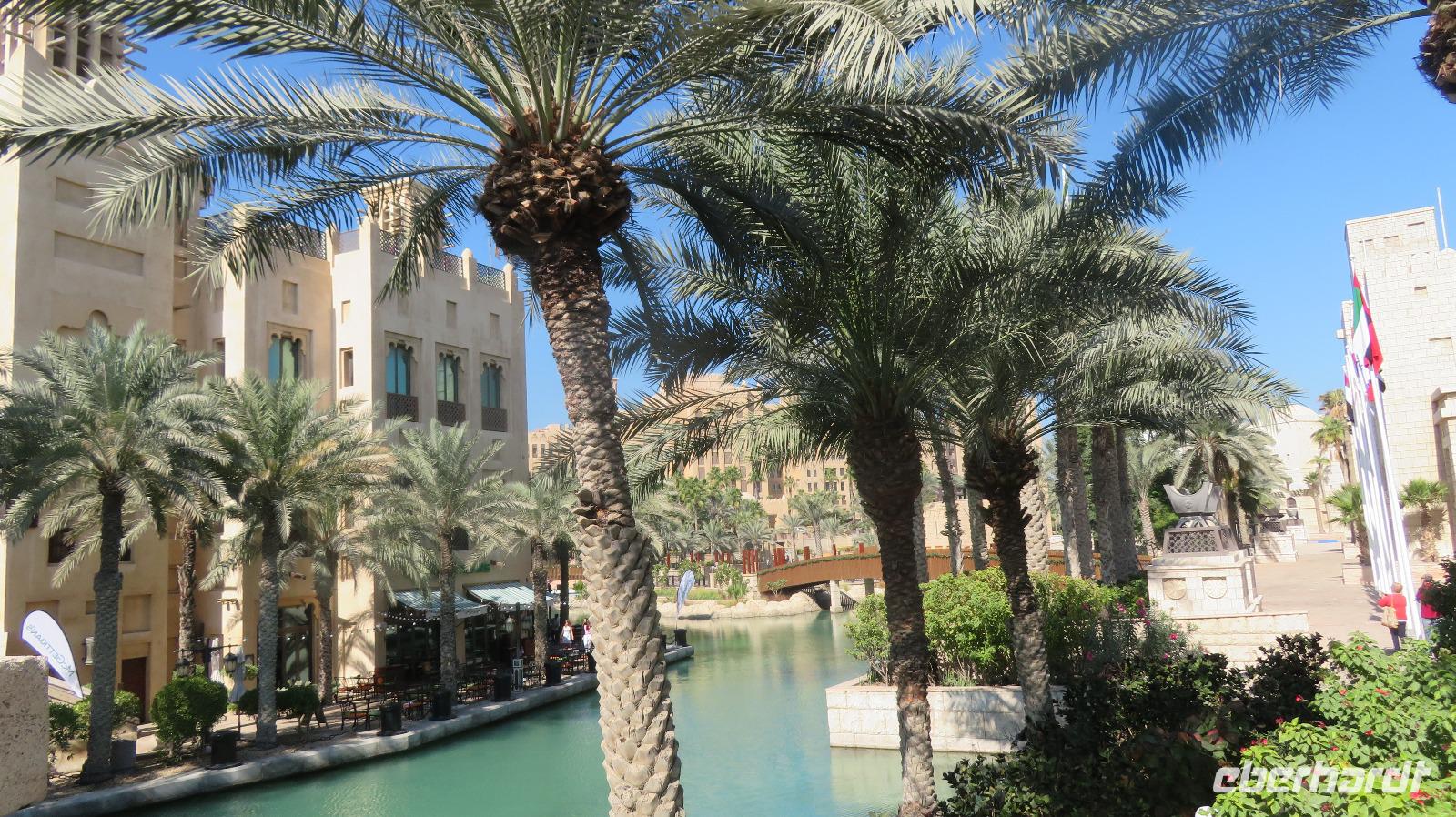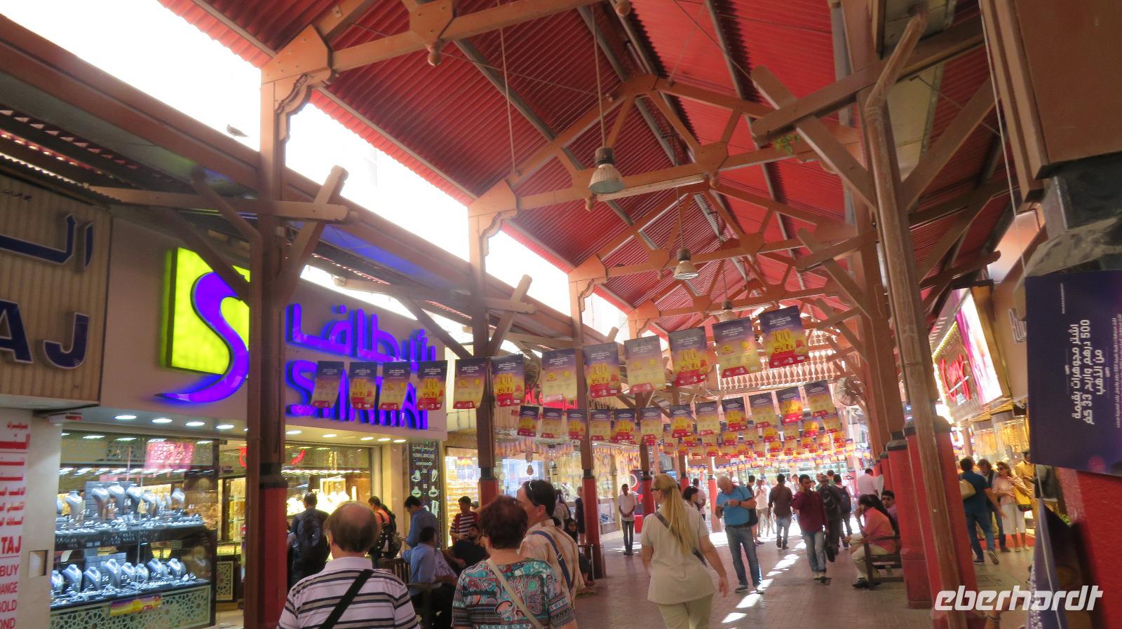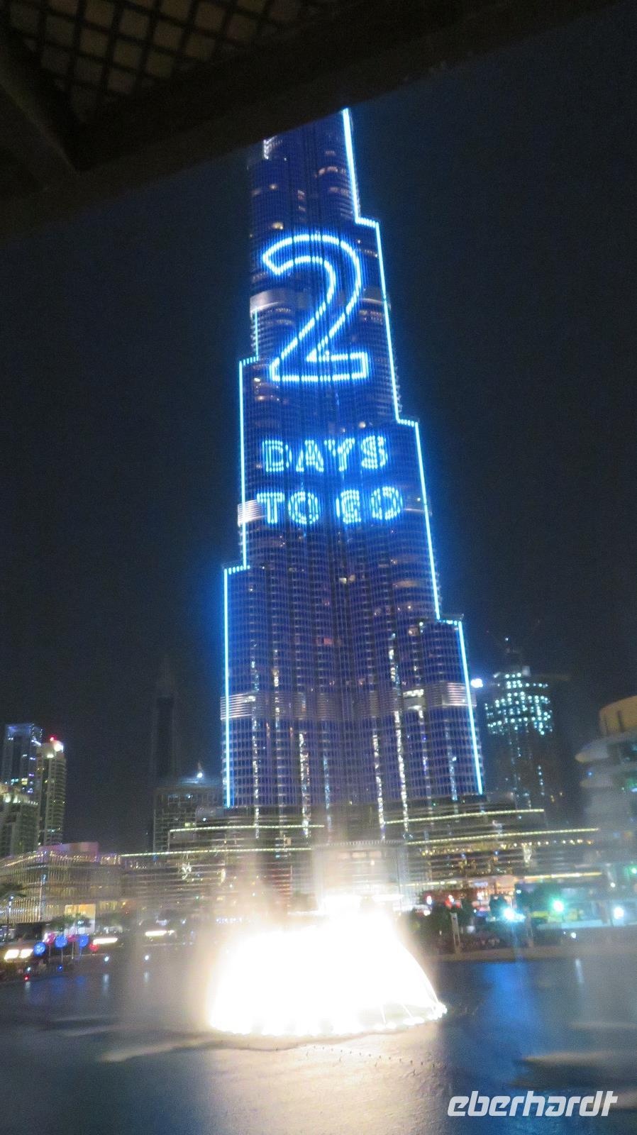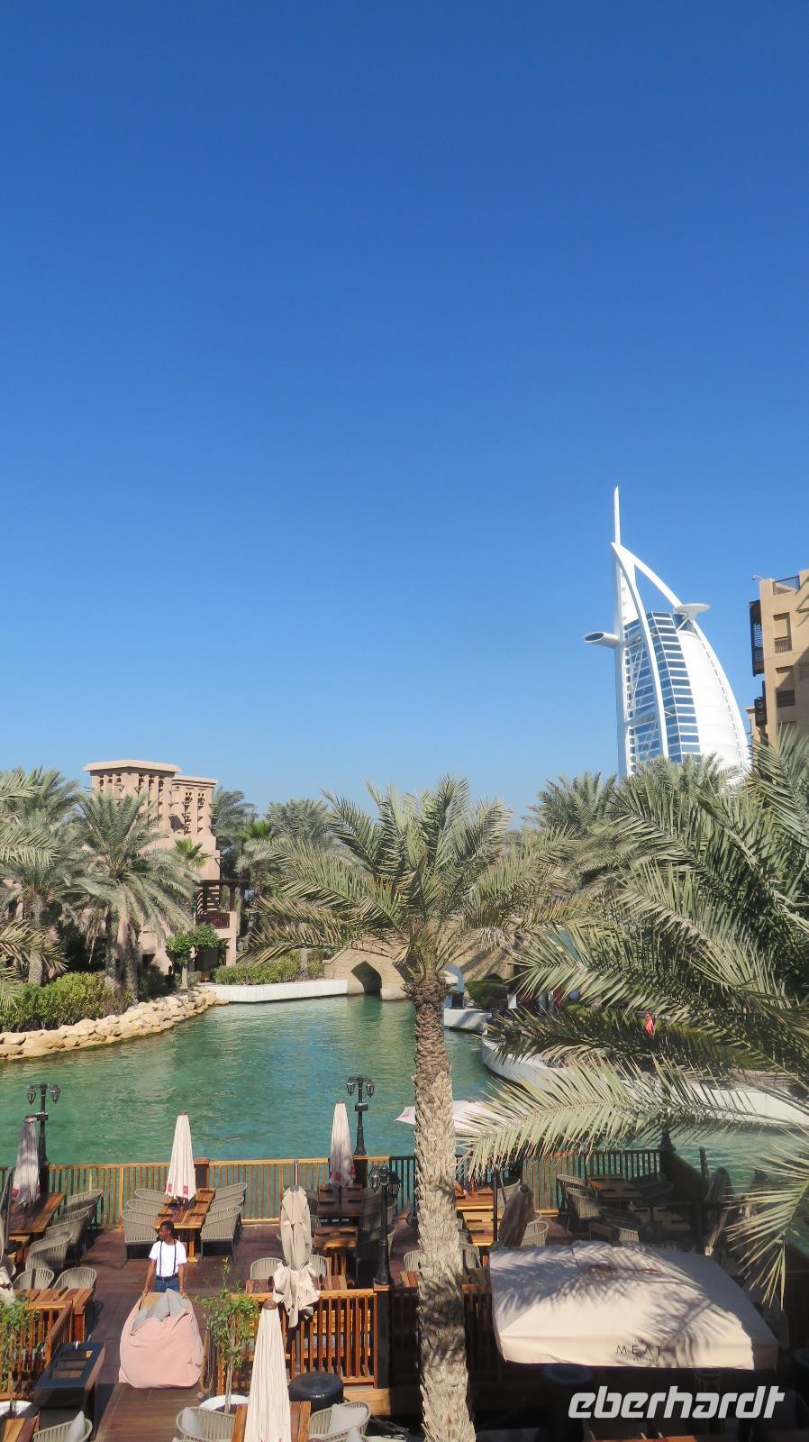 Danach treffen wir uns alle wieder und bestaunen zusammen die Wasserspiele, die halbstündlich vor dem Burj Khalifa aufgeführt werden. Da alle Gäste aus meiner Gruppe die Erlebnis-Halbpension gebucht haben, spazieren wir dann in den Souk und nehmen in der zweiten Etage auf der Terrasse eines Restaurants Platz. Hier genießen wir nicht nur Köstlichkeiten aus der libanesischen Küche sondern sehen auch ohne viel Aufwand und hunderten anderen Menschen um uns herum noch einmal die Wasserspiele, die auch immer zu anders untermalt von unterschiedlichen Musikstücken dargeboten werden.
