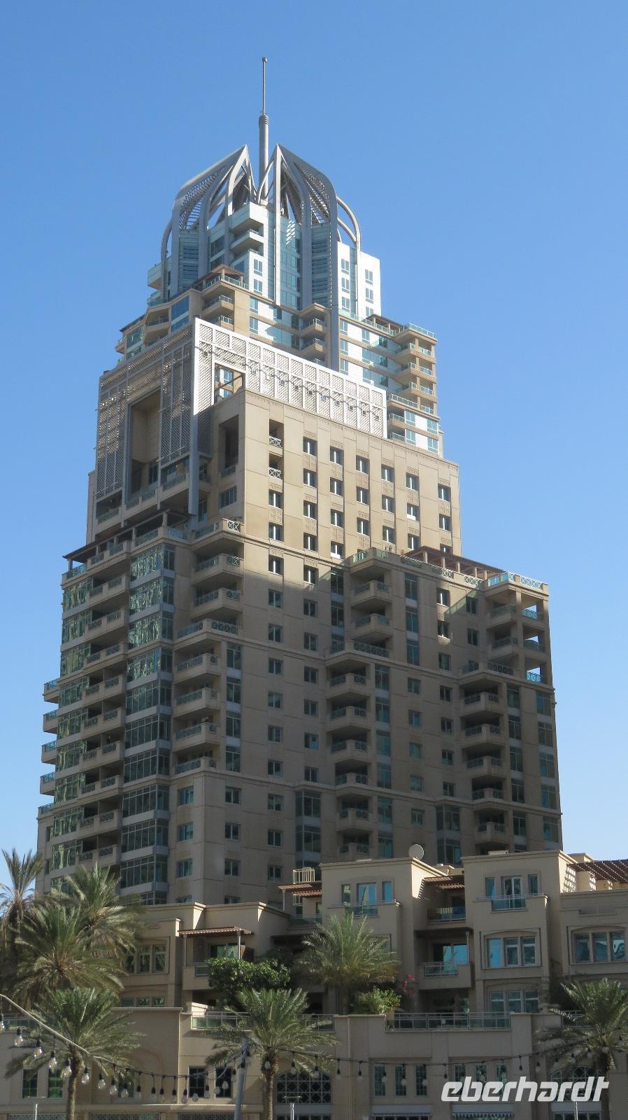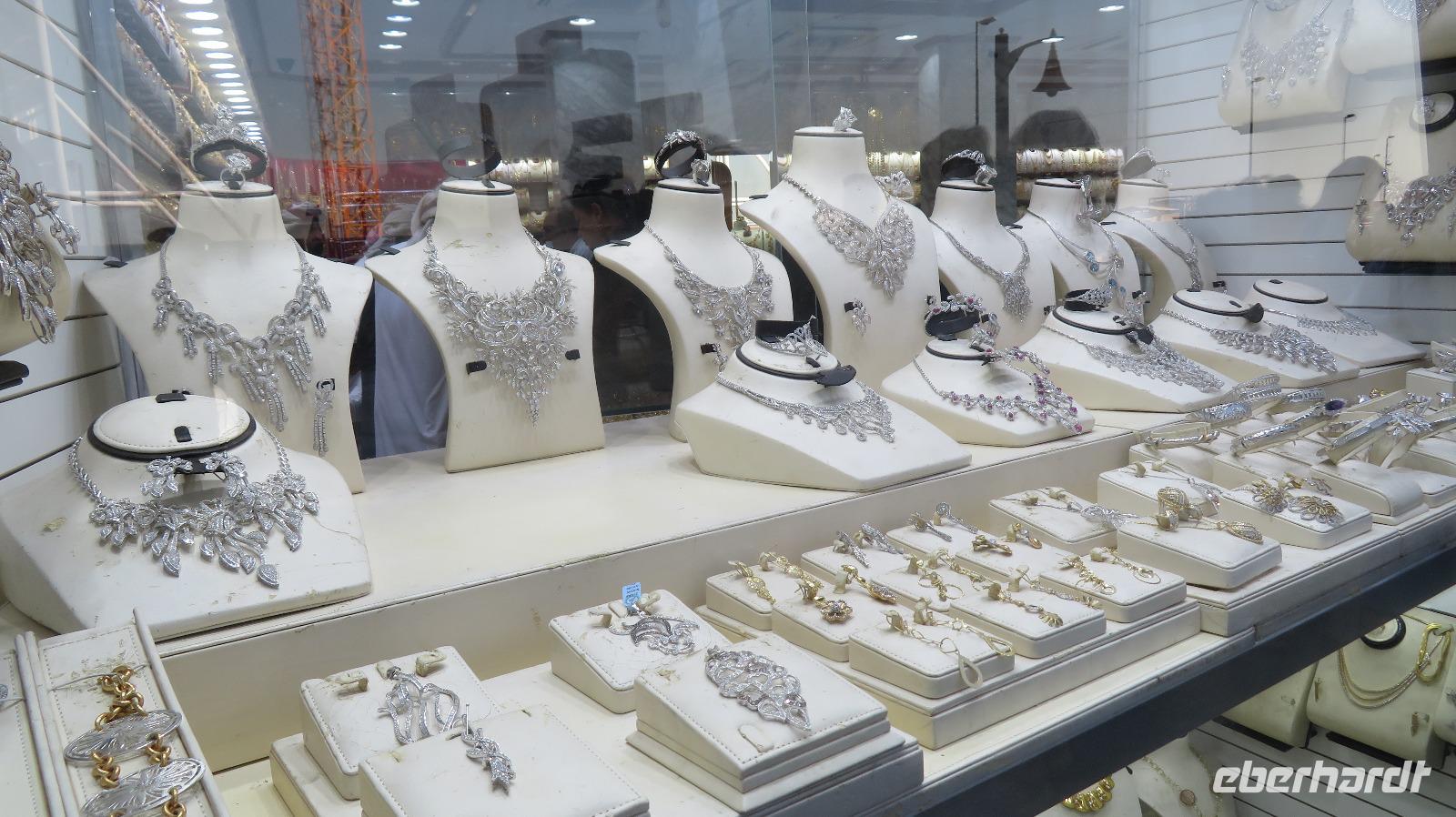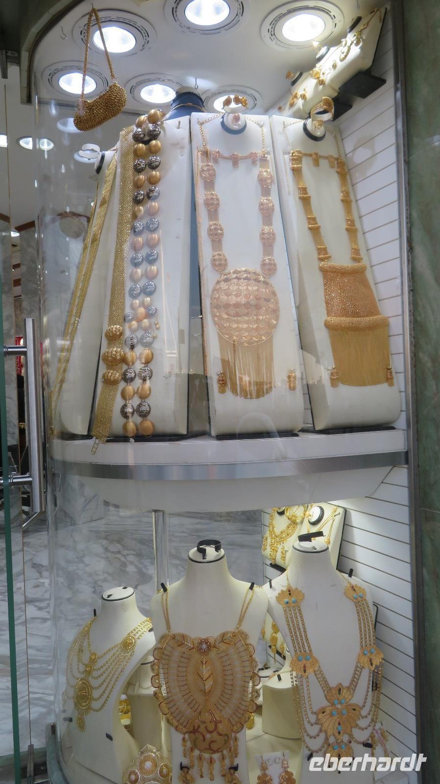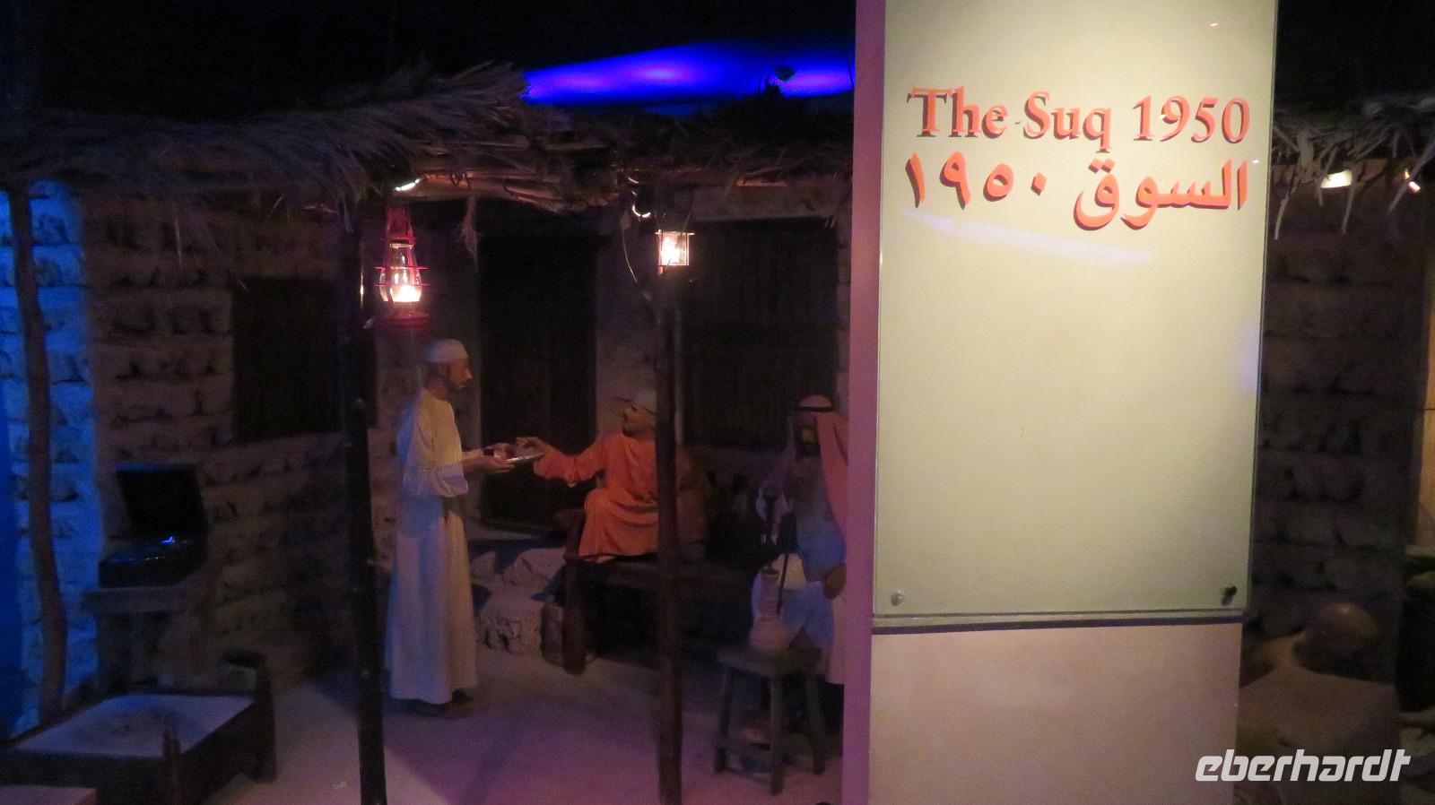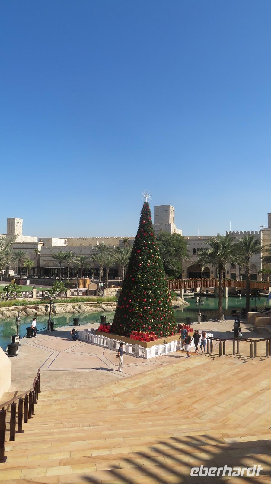 Danach treffen wir uns alle wieder und bestaunen zusammen die Wasserspiele, die halbstündlich vor dem Burj Khalifa aufgeführt werden. Da alle Gäste aus meiner Gruppe die Erlebnis-Halbpension gebucht haben, spazieren wir dann in den Souk und nehmen in der zweiten Etage auf der Terrasse eines Restaurants Platz. Hier genießen wir nicht nur Köstlichkeiten aus der libanesischen Küche sondern sehen auch ohne viel Aufwand und hunderten anderen Menschen um uns herum noch einmal die Wasserspiele, die auch immer zu anders untermalt von unterschiedlichen Musikstücken dargeboten werden.