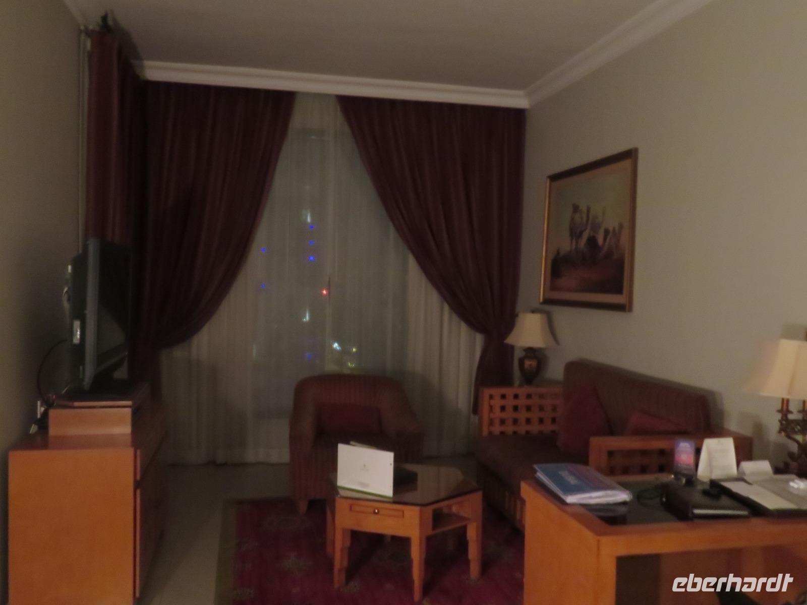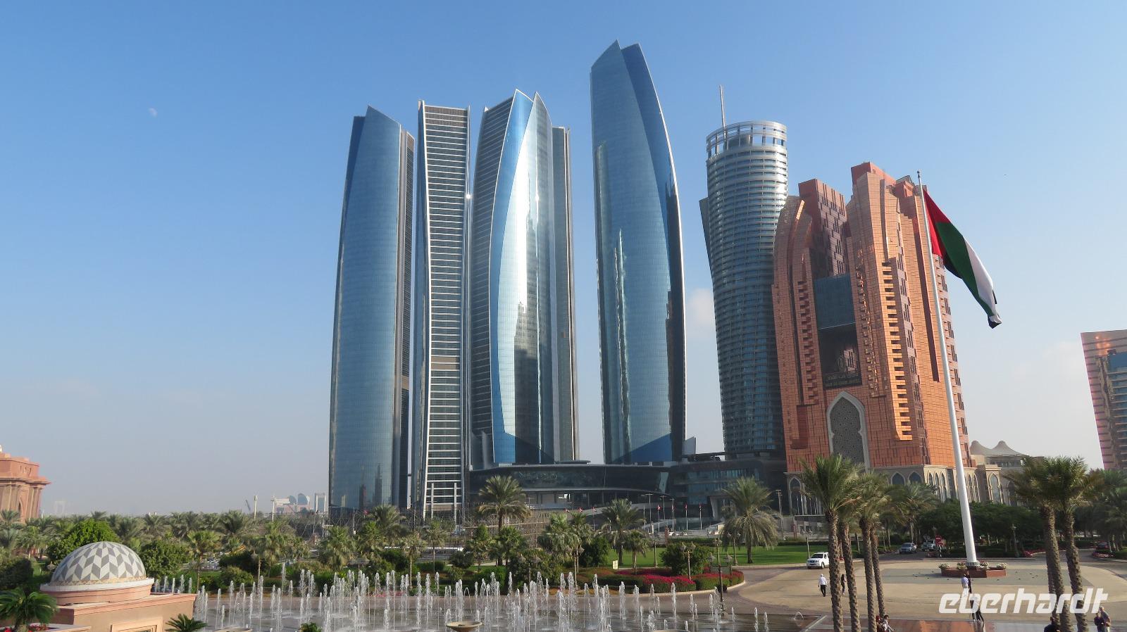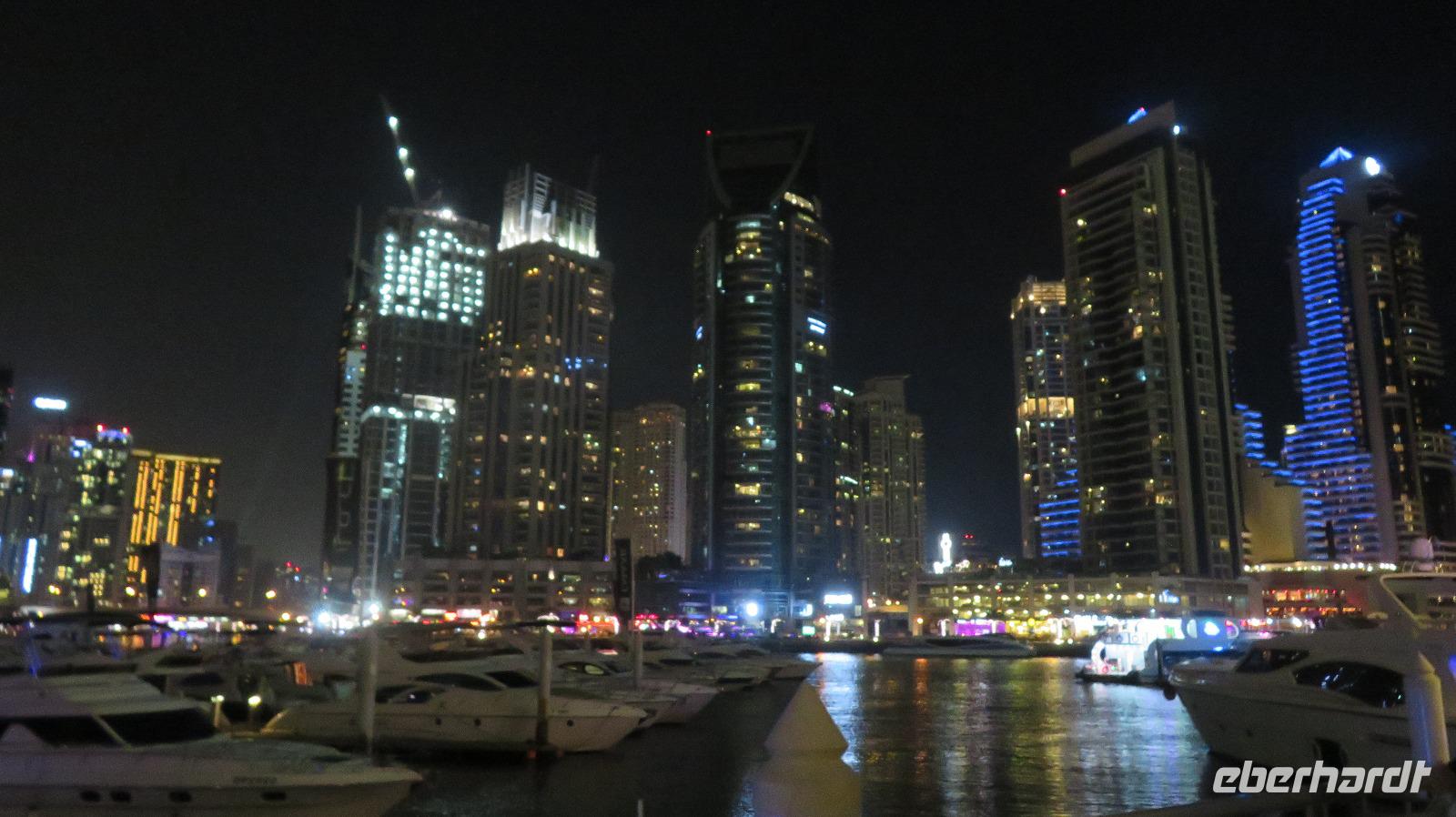 Die Weihnachtsfeiertage liegen hinter uns und das letzte Highlight des Jahres 2017 direkt vor uns: eine Silvesterreise nach Dubai und Abu Dhabi. Da sind die Erwartungen natürlich sehr hoch. Am Morgen des heutigen Tages treffe ich mich mit drei weiteren Gästen aus meiner Reisegruppe am Dresdner Flughafen. Nachdem wir eingecheckt und uns bei einem kleinen Frühstück gestärkt haben, hebt unser Flieger pünktlich nach Frankfurt ab. Hier gehen wir gemeinsam durch die Passkontrolle zu unserem Abfluggate nach Dubai und treffen auf weitere sieben neugierige Gäste. Das Boarding ist schon im Gang und so machen wir es uns im Flieger bequem. Der rund 6stündige Flug in die Vereinigten Arabischen Emirate ist ruhig und wir erhalten guten Service an Bord der Maschine. Kurz vor 23 Uhr Ortszeit setzt der Flieger in Dubai auf. Nun sind ein Zugfahrt und eine längere Wegstrecke bis zur Immigration zu hinterlegen. Die jungen Herren bei der Einreisebehörde sind gut gelaunt und schlussendlich gelangen wir zu den Kofferbändern, wo fast all unsere Koffer bereits auf uns warten. Im Ausgangsbereich erwartet uns bereits ein weiterer Reisegast aus der Schweiz sowie Aileen, unsere Begleiterin auf diesem Transfer zum Hotel. Nach rund 30minütiger Fahrt entlang der Sheikh-Zayed-Road und vorbei an zahlreichend beleuchtenden Häusern erreichen wir unser 4-Sterne-Hotel „Gloria" im Stadtteil Media City. Leider zieht sich der Checkin hin so dass schlussendlich jeder froh ist, seine Zimmerkarte zu erhalten und ins Bett zu gehen. Kurz vor um zwei erreichen auch noch weitere vier Gäste aus unserer Gruppe das Hotel. Nun aber wirklich schnell ins Bett denn lange schlafen können wir leider nicht.