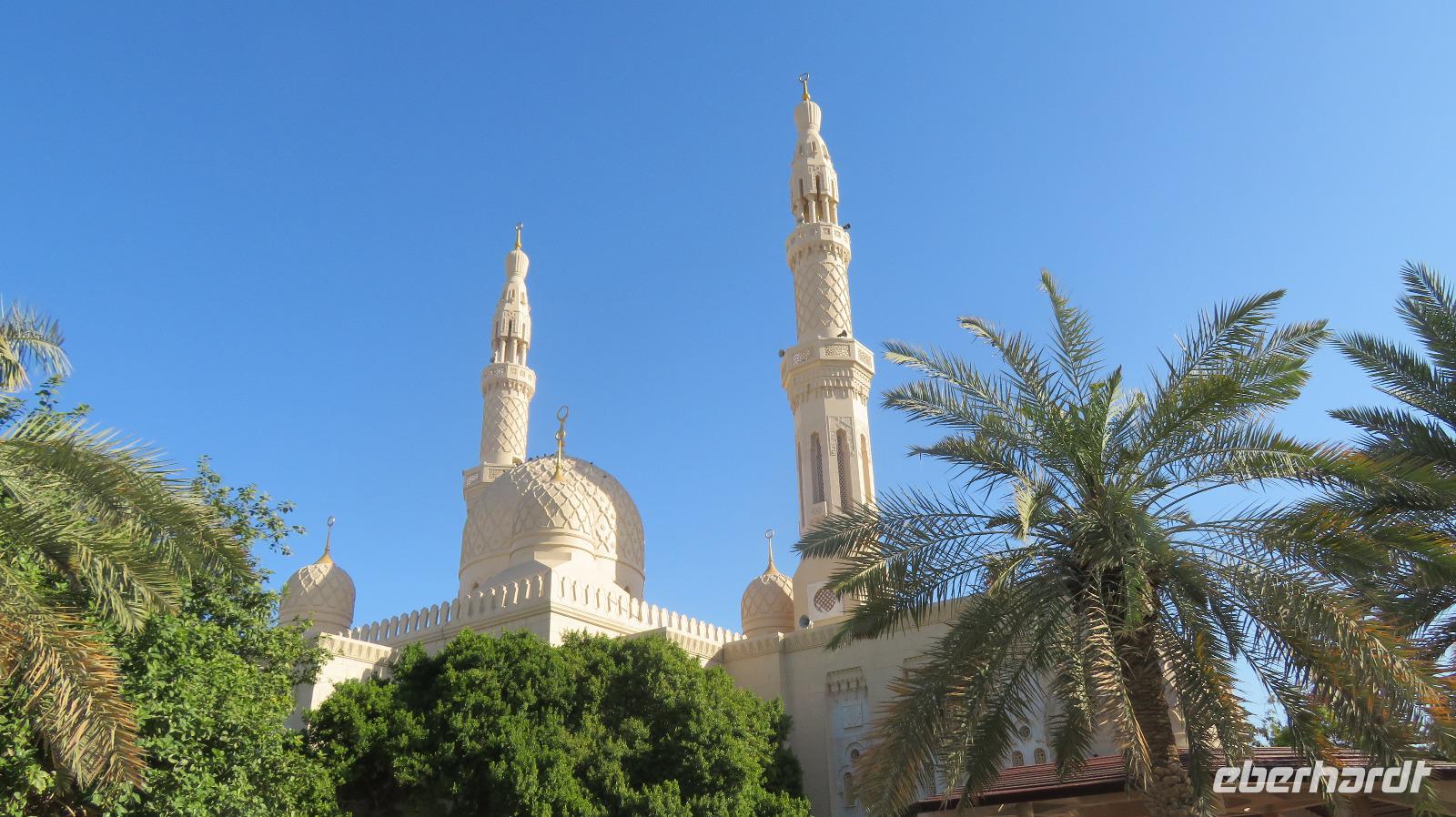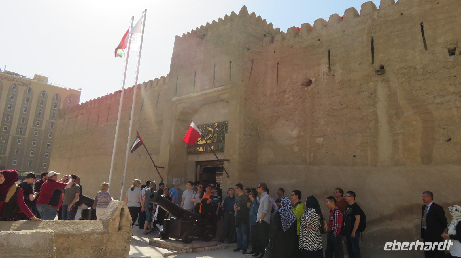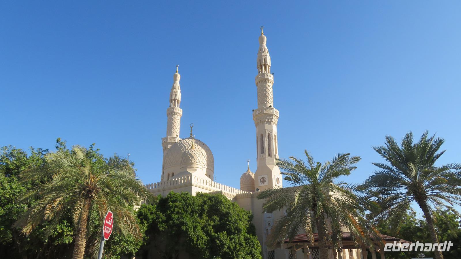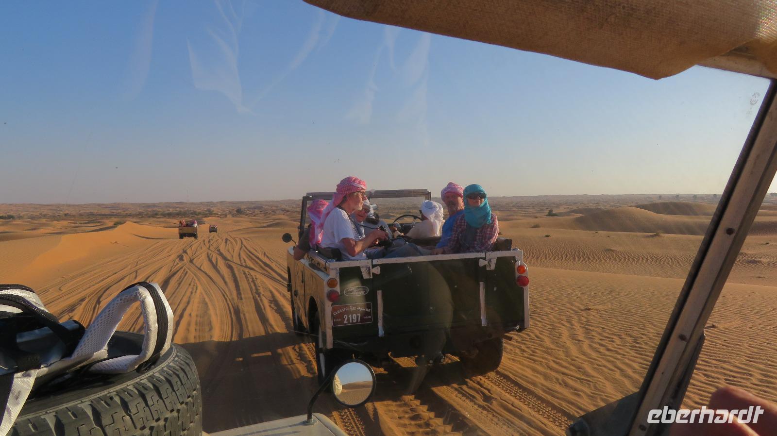 Nach zwei aufregenden Tagen in Abu Dhabi und im modernen Dubai wollen wir heute den älteren Teil der Stadt erkunden. Gemeinsam mit Anja halten wir zunächst an der wunderschönen Jumeirah-Moschee, ein Sinnbild des Orients, für einen Fotostopp. Dies ist schon einmal ein schöner Einklang auf einen spannenden Tag. Als nächstes besuchen wir das im Vorjahr neu eröffnete Etihad-Museum. Das Haus handelt um den Zusammenschluss der sieben Vereinigten Arabischen Emirate von den ersten Beratungsgesprächen über die Vereinigung im Jahr 1971 bis in die heutige Zeit. Das Museum ist sehr multimedial und neben persönlichen Gegenstände der verschiedenen Scheichs, sehen wir hier auch ein Film zum Thema, sehen scheicheigene Autos und Helikopter als auch die Scheichs selber in überdimensionalen Portraits. Im Außenbereich des Museums können wir auch in den Saal hineinblicken, in dem damals der Vertrag zur Vereinigung unterschrieben wurde. Besonderes Highlight ist aber auch ein Baum, dessen Blätter von Weitem wie aus Gold wirken. Das ist wirklich einmalig und irgendwie nur in Dubai real. Dann erreichen wir schließlich wirklich den Altstadtteil von Dubai. Mit Anja spazieren wir durch die Straßen des Goldmarktes und staunen über die gigantischen Gold- und Silberstücke, die in den Schaufenstern der Läden zum Verkauf ausgestellt sind. Leider bleibt uns aufgrund der Fülle des heutigen Programms kaum Zeit für einen ausgedehnten Schaufensterbummel. Mit Anja geht es weiter zum Gewürzmarkt, eine kleine Seitenstraße, in dem man zahlreiche verschiedene Gewürze probieren und kaufen kann. Leider fehlt uns auch hier die notwendige Zeit, denn wir müssen weiter - zu einer Abra. Das sind die hiesigen Wassertaxis mit der wir den Dubai Creek überqueren. Auf der anderen Seites des Flusses angekommen laufen wir weiter bis zum Dubai Museum, das über die Geschichte von Dubai und dessen Entwicklung erzählt. Das ist wirklich hochinteressant denn man kann sich kaum noch vorstellen, das vor noch nicht allzu langer Zeit hier vorrangig Wüste war, die von Beduinen belebt wurde und wie schnell hier doch die Moderne ihren Weg gefunden hat. Nach unserem Besuch im Dubai-Museum fahren wir zurück in unser Hotel, denn am Nachmittag erleben wir einen weiteren Höhepunkt auf unserer Reise: wir unternehmen eine exklusive Wüstensafari. In stilechten Landrovern fahren wir hinaus in die Wüste. Wir erreichen das Tour zur Wüste und steigen in offene Landrover-Jeeps um mit originalen Motoren aus den 50iger Jahren. In diesen unternehmen wir eine kleine Rundfahrt in dem Wüstenabschnitt, beobachten Oryxe aus nächster Nähe und stehen barfuß im Wüstensand während die Sonne langsam unter geht. Als nächstes erleben wir noch einmal eine Falkenshow. Wir sitzen in der ersten Reihe, genießen eine Apfelsaftschorle und lauschen den Erzählungen eines Camp- Mitarbeiters, der uns noch einmal alles zu den Falken erzählt. Wer möchte, kann sich auch hier noch einmal mit den Falken fotografieren lassen. Letztes Ziel unserer Wüstenreise ist ein Camp, wo wir zum Abendessen erwartet werden. Unser Guide zeigt uns unsere Tische und wir genießen ein Dinner vom Buffet mit Gemüse, Reise und verschiedenen Fleischsorten. Wer mag, kann vor dem Abendessen einen Ritt auf einem Kamel wagen. Und/oder sich ein Henna-Tatoo machen lassen. In der Mitte des Camps befindet sich die Chillout-Lounge, wo man das Rauchen mit einer Shisha genießen kann. Bevor wir zurück in Richtung Stadt fahren, erleben wir verschiedene traditionelle Trommeldarbietungen und es wir sogar zum Mitmachen und Mittanzen aufgefordert. Ein wirklich schöner und abwechslungsreicher Abend neigt sich dem Ende.