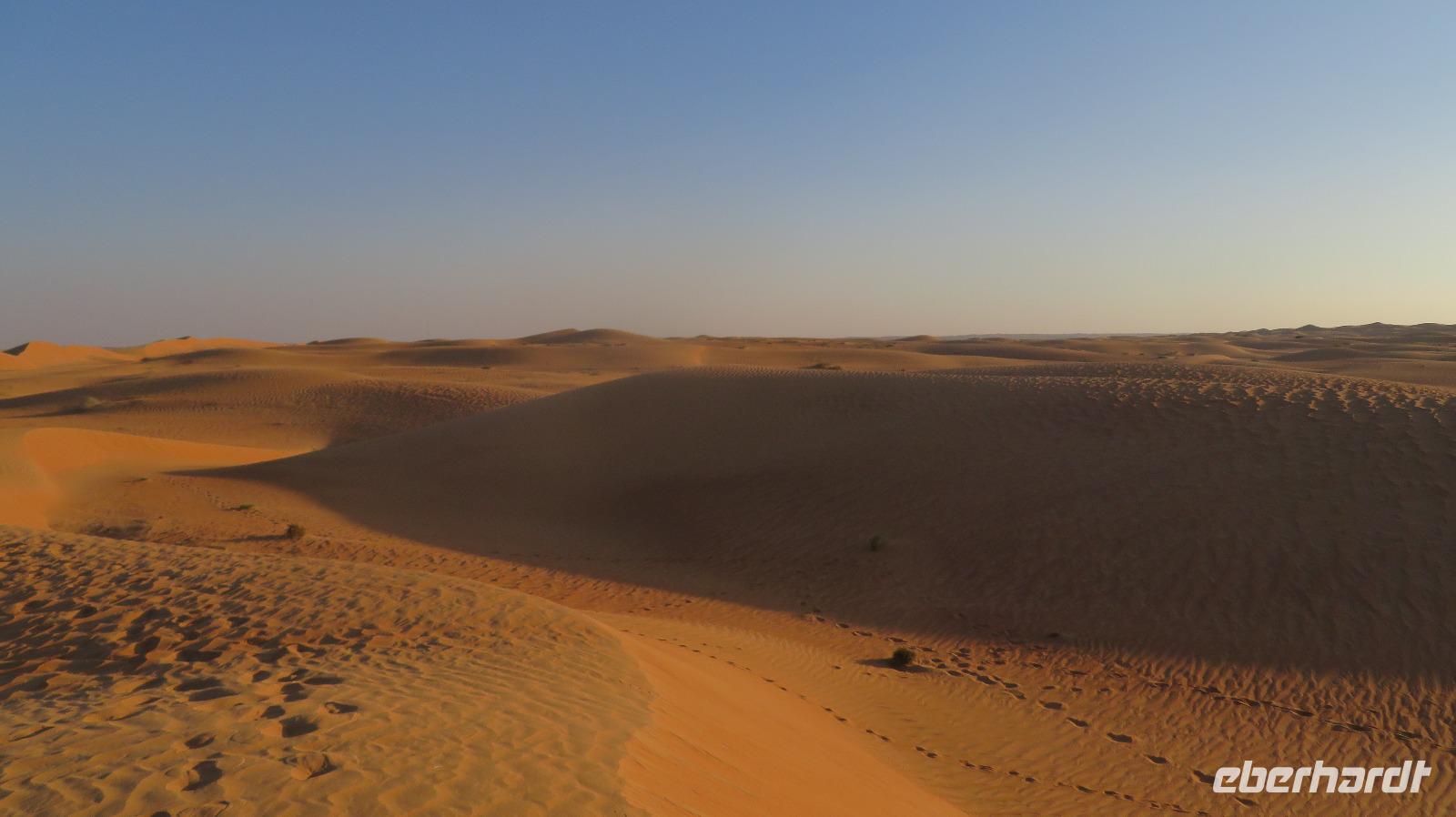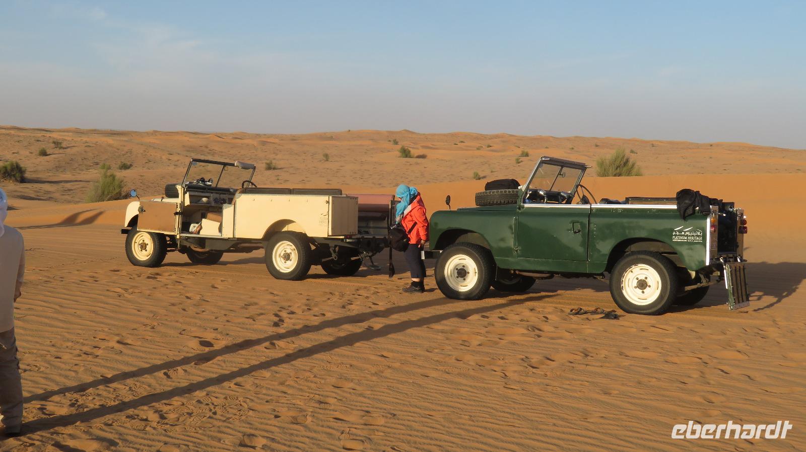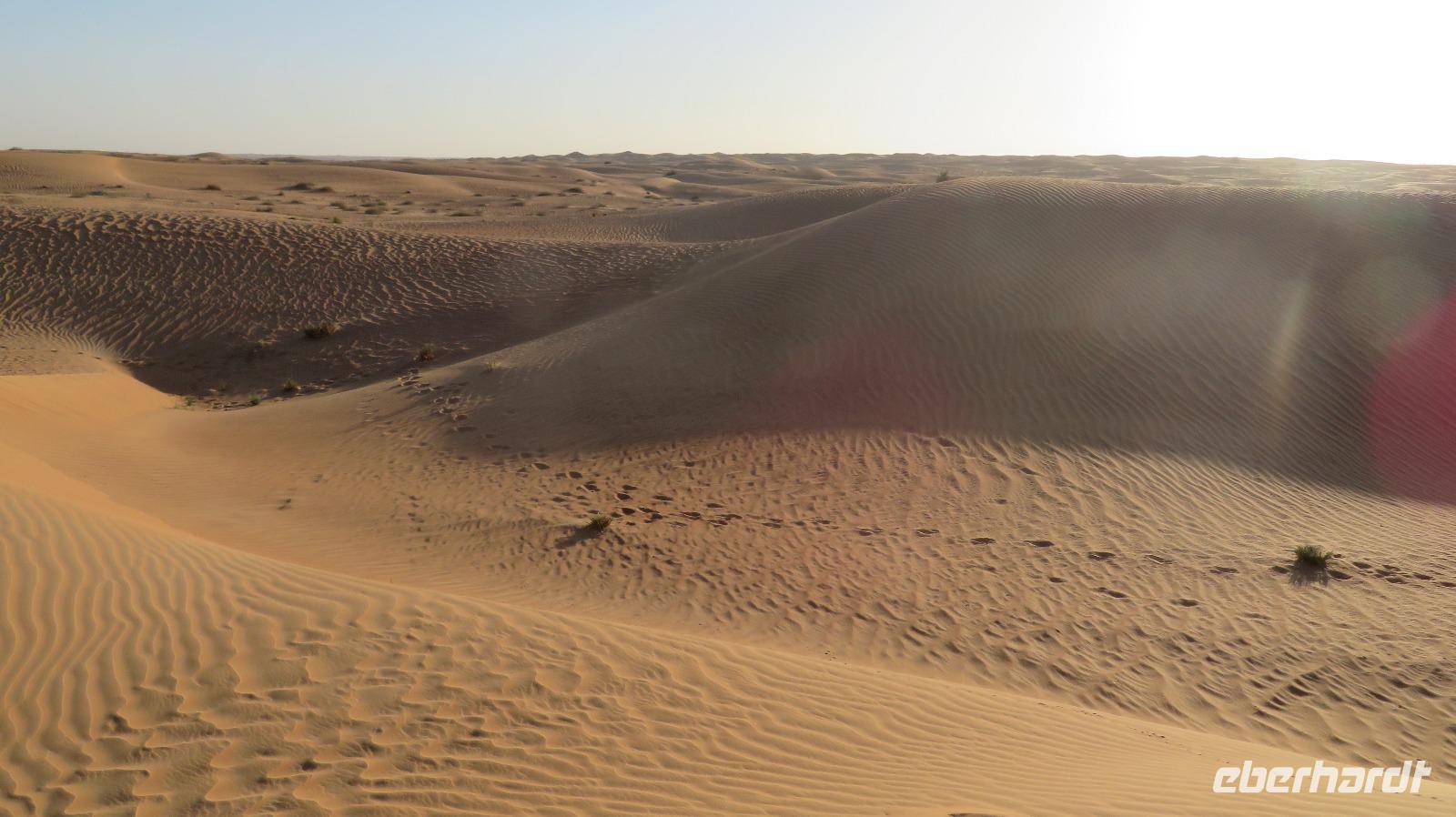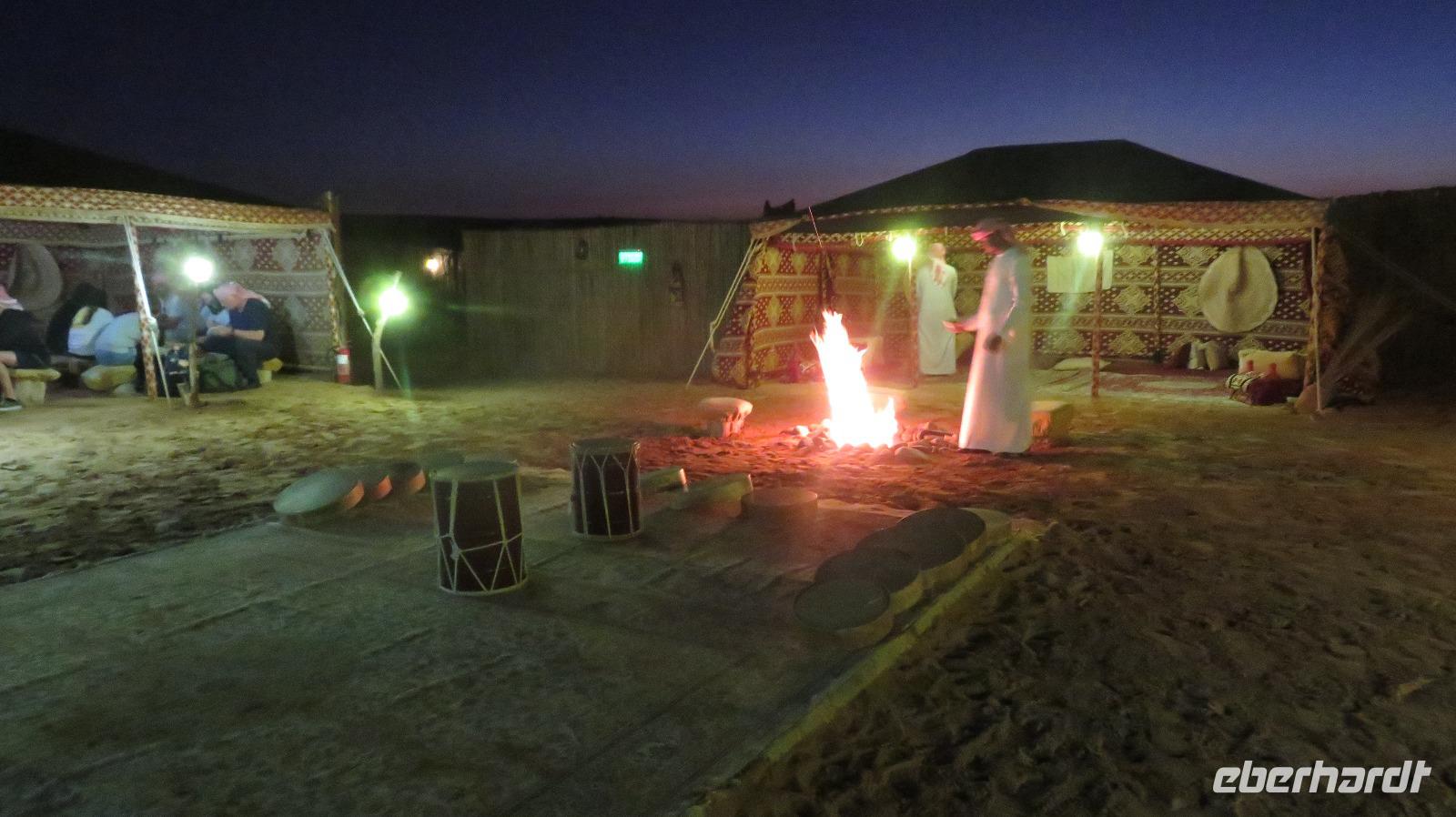 Nach zwei aufregenden Tagen in Abu Dhabi und im modernen Dubai wollen wir heute den älteren Teil der Stadt erkunden. Gemeinsam mit Anja halten wir zunächst an der wunderschönen Jumeirah-Moschee, ein Sinnbild des Orients, für einen Fotostopp. Dies ist schon einmal ein schöner Einklang auf einen spannenden Tag. Als nächstes besuchen wir das im Vorjahr neu eröffnete Etihad-Museum. Das Haus handelt um den Zusammenschluss der sieben Vereinigten Arabischen Emirate von den ersten Beratungsgesprächen über die Vereinigung im Jahr 1971 bis in die heutige Zeit. Das Museum ist sehr multimedial und neben persönlichen Gegenstände der verschiedenen Scheichs, sehen wir hier auch ein Film zum Thema, sehen scheicheigene Autos und Helikopter als auch die Scheichs selber in überdimensionalen Portraits. Im Außenbereich des Museums können wir auch in den Saal hineinblicken, in dem damals der Vertrag zur Vereinigung unterschrieben wurde. Besonderes Highlight ist aber auch ein Baum, dessen Blätter von Weitem wie aus Gold wirken. Das ist wirklich einmalig und irgendwie nur in Dubai real. Dann erreichen wir schließlich wirklich den Altstadtteil von Dubai. Mit Anja spazieren wir durch die Straßen des Goldmarktes und staunen über die gigantischen Gold- und Silberstücke, die in den Schaufenstern der Läden zum Verkauf ausgestellt sind. Leider bleibt uns aufgrund der Fülle des heutigen Programms kaum Zeit für einen ausgedehnten Schaufensterbummel. Mit Anja geht es weiter zum Gewürzmarkt, eine kleine Seitenstraße, in dem man zahlreiche verschiedene Gewürze probieren und kaufen kann. Leider fehlt uns auch hier die notwendige Zeit, denn wir müssen weiter - zu einer Abra. Das sind die hiesigen Wassertaxis mit der wir den Dubai Creek überqueren. Auf der anderen Seites des Flusses angekommen laufen wir weiter bis zum Dubai Museum, das über die Geschichte von Dubai und dessen Entwicklung erzählt. Das ist wirklich hochinteressant denn man kann sich kaum noch vorstellen, das vor noch nicht allzu langer Zeit hier vorrangig Wüste war, die von Beduinen belebt wurde und wie schnell hier doch die Moderne ihren Weg gefunden hat. Nach unserem Besuch im Dubai-Museum fahren wir zurück in unser Hotel, denn am Nachmittag erleben wir einen weiteren Höhepunkt auf unserer Reise: wir unternehmen eine exklusive Wüstensafari. In stilechten Landrovern fahren wir hinaus in die Wüste. Wir erreichen das Tour zur Wüste und steigen in offene Landrover-Jeeps um mit originalen Motoren aus den 50iger Jahren. In diesen unternehmen wir eine kleine Rundfahrt in dem Wüstenabschnitt, beobachten Oryxe aus nächster Nähe und stehen barfuß im Wüstensand während die Sonne langsam unter geht. Als nächstes erleben wir noch einmal eine Falkenshow. Wir sitzen in der ersten Reihe, genießen eine Apfelsaftschorle und lauschen den Erzählungen eines Camp- Mitarbeiters, der uns noch einmal alles zu den Falken erzählt. Wer möchte, kann sich auch hier noch einmal mit den Falken fotografieren lassen. Letztes Ziel unserer Wüstenreise ist ein Camp, wo wir zum Abendessen erwartet werden. Unser Guide zeigt uns unsere Tische und wir genießen ein Dinner vom Buffet mit Gemüse, Reise und verschiedenen Fleischsorten. Wer mag, kann vor dem Abendessen einen Ritt auf einem Kamel wagen. Und/oder sich ein Henna-Tatoo machen lassen. In der Mitte des Camps befindet sich die Chillout-Lounge, wo man das Rauchen mit einer Shisha genießen kann. Bevor wir zurück in Richtung Stadt fahren, erleben wir verschiedene traditionelle Trommeldarbietungen und es wir sogar zum Mitmachen und Mittanzen aufgefordert. Ein wirklich schöner und abwechslungsreicher Abend neigt sich dem Ende.